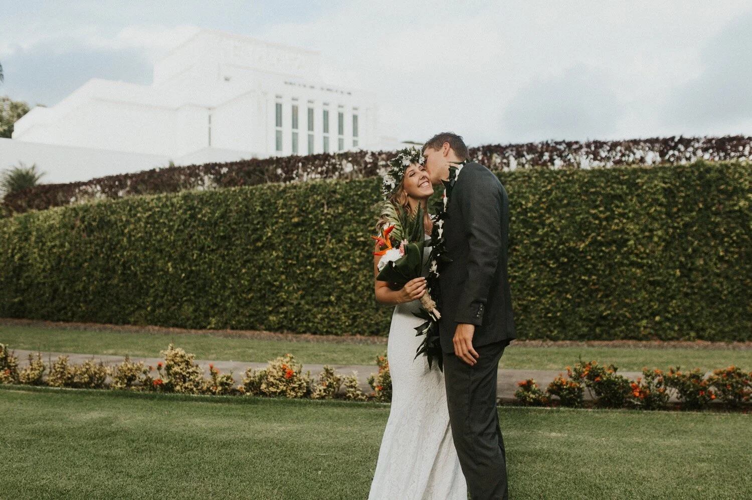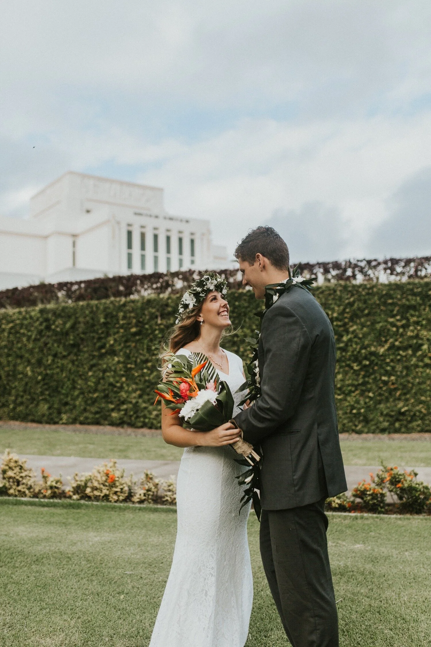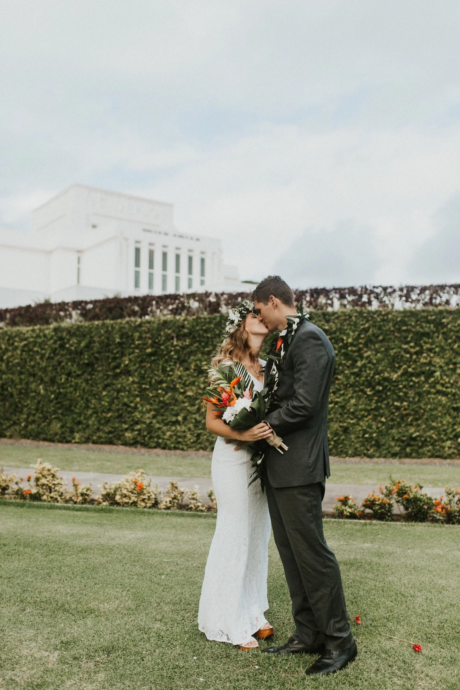 Saren and Joe had the most intimate, beautiful fall wedding at the Laie Hawaii Temple. They followed their sealing with a small beach ring ceremony on temple beach with their closest family and friends. From the moment I first contacted Saren and Joe, I knew that we would be a perfect fit. They love love and they love each other. They seriously had goggly eyes at each other all day long and it was the easiest thing in the world to capture.