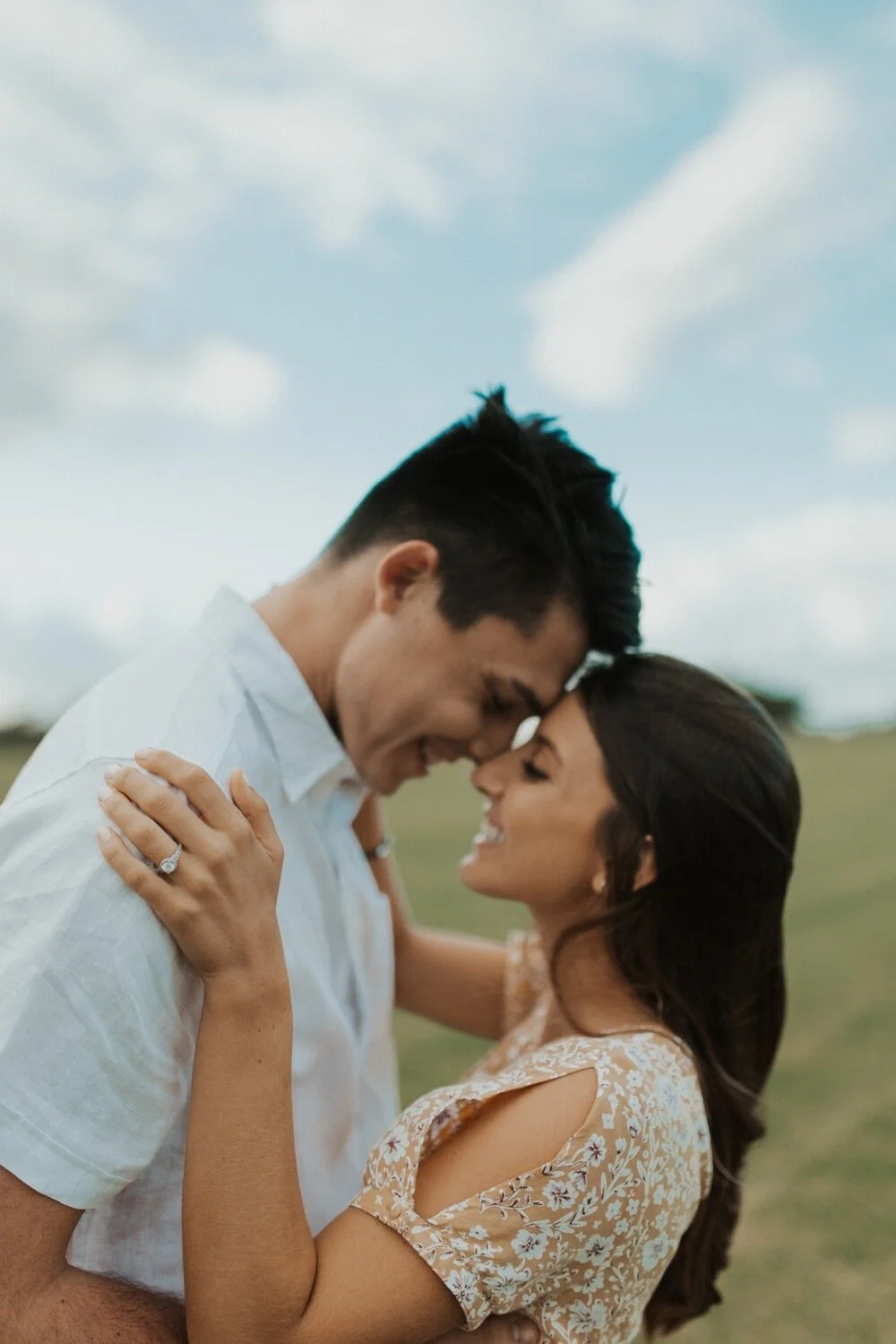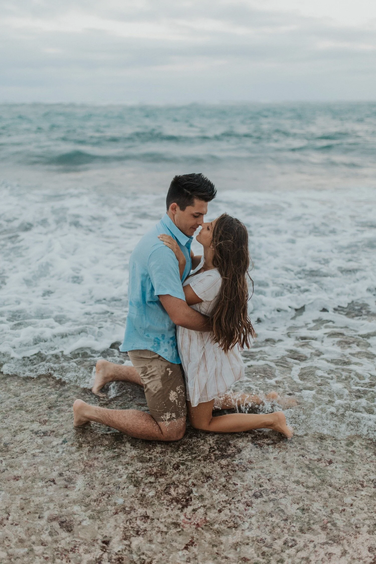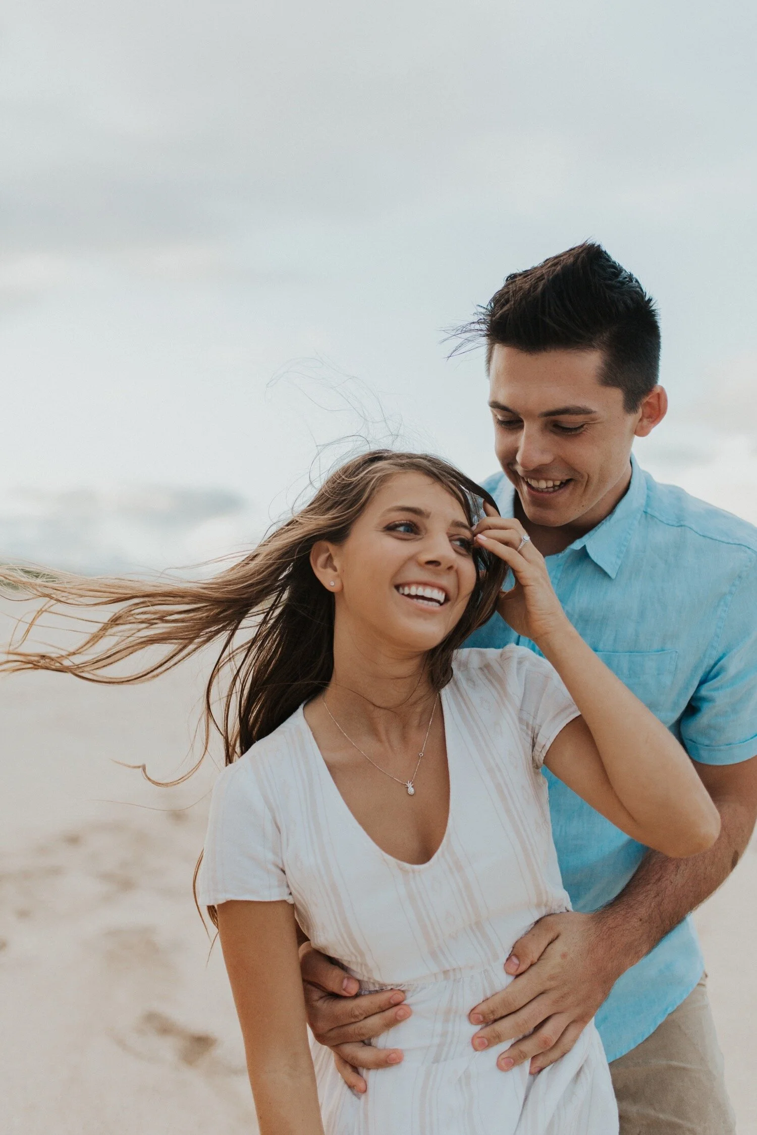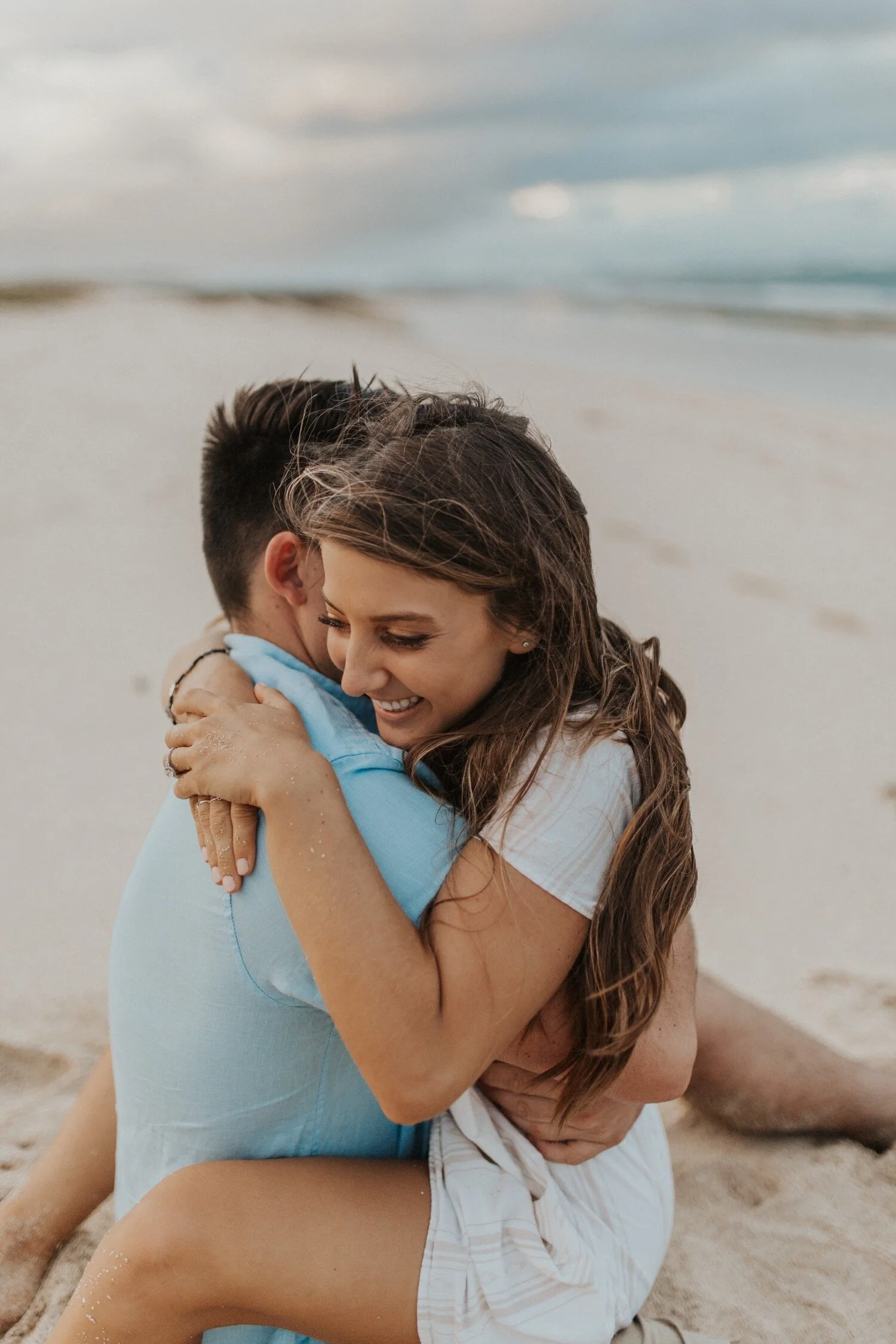 The most gorgeous beach engagement session on the beautiful north shore Oahu with Amanda and Carter. Where can I even begin with these two. The day was gorgeous. rain clouds were all around us and it sure showed up the beautiful north shore of Oahu. These two ran up and down the beach, rolled in the sand, and ended the night in the water. A + C were two of the sweetest most loving individuals ever. You could feel the joy that they brought each other. The island definitely showed off for these two and I couldn’t have asked for a beautiful night on the north shore of Oahu for them. So excited for their wedding and the amazing life these two are going to have together.
