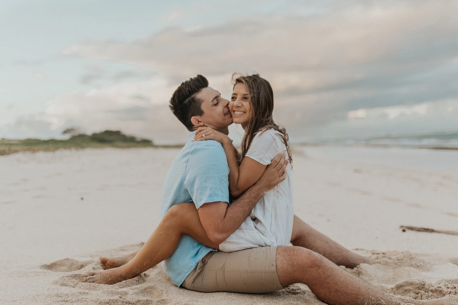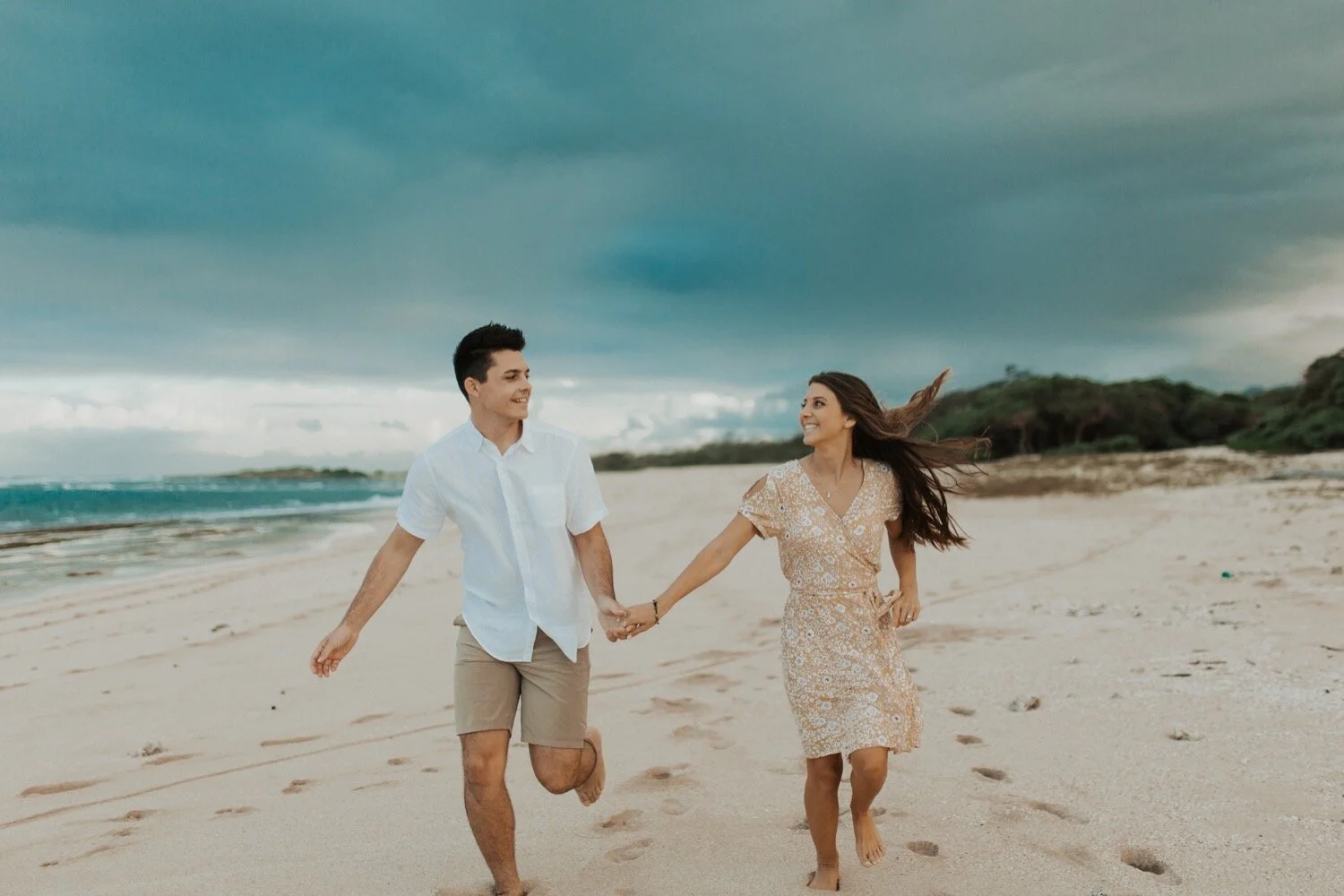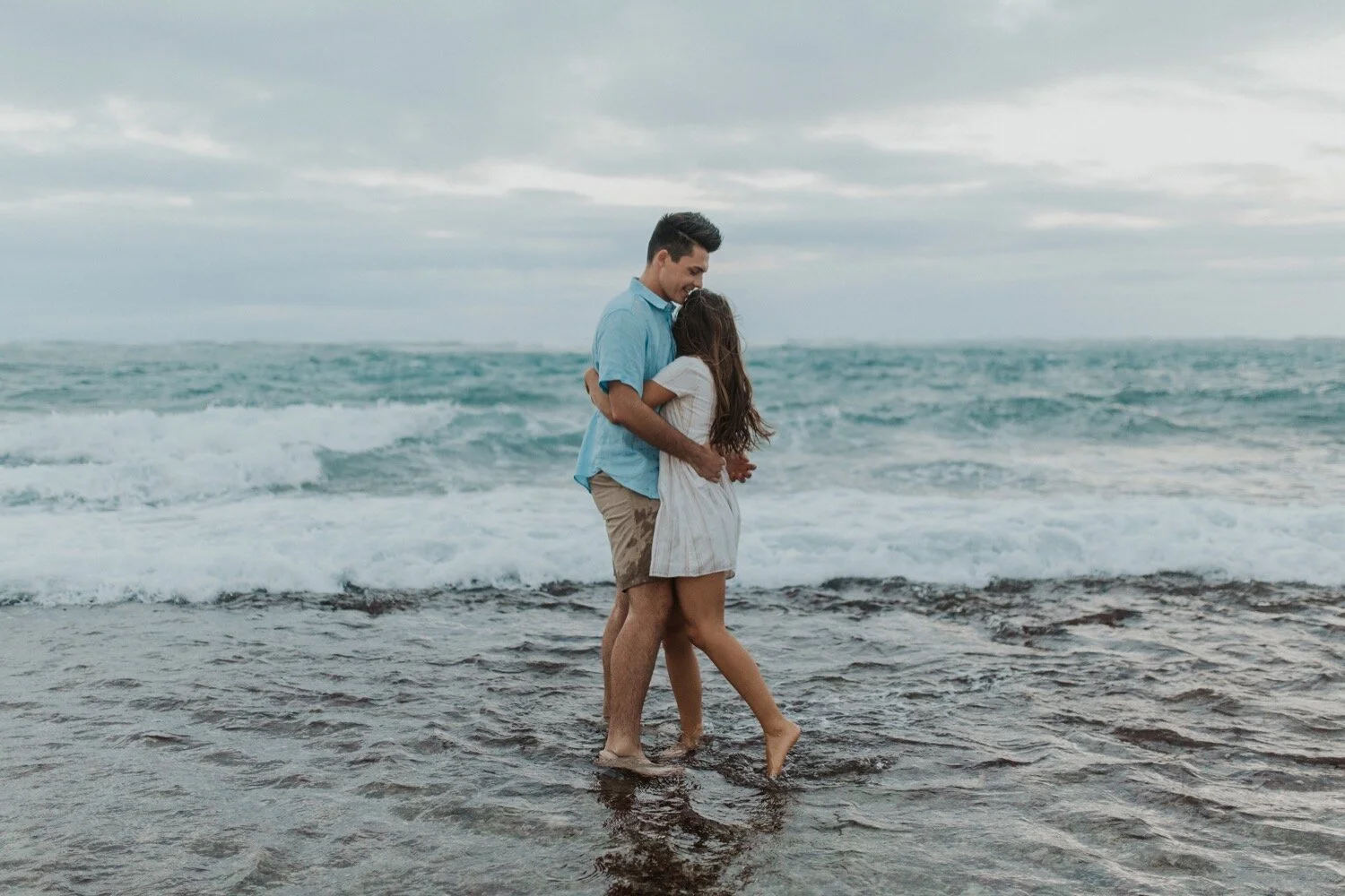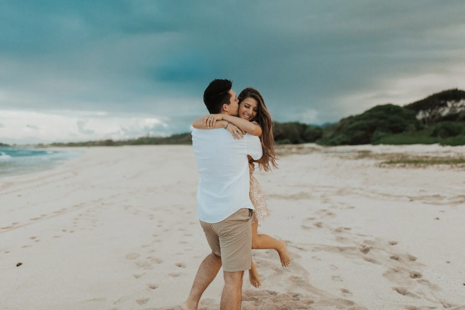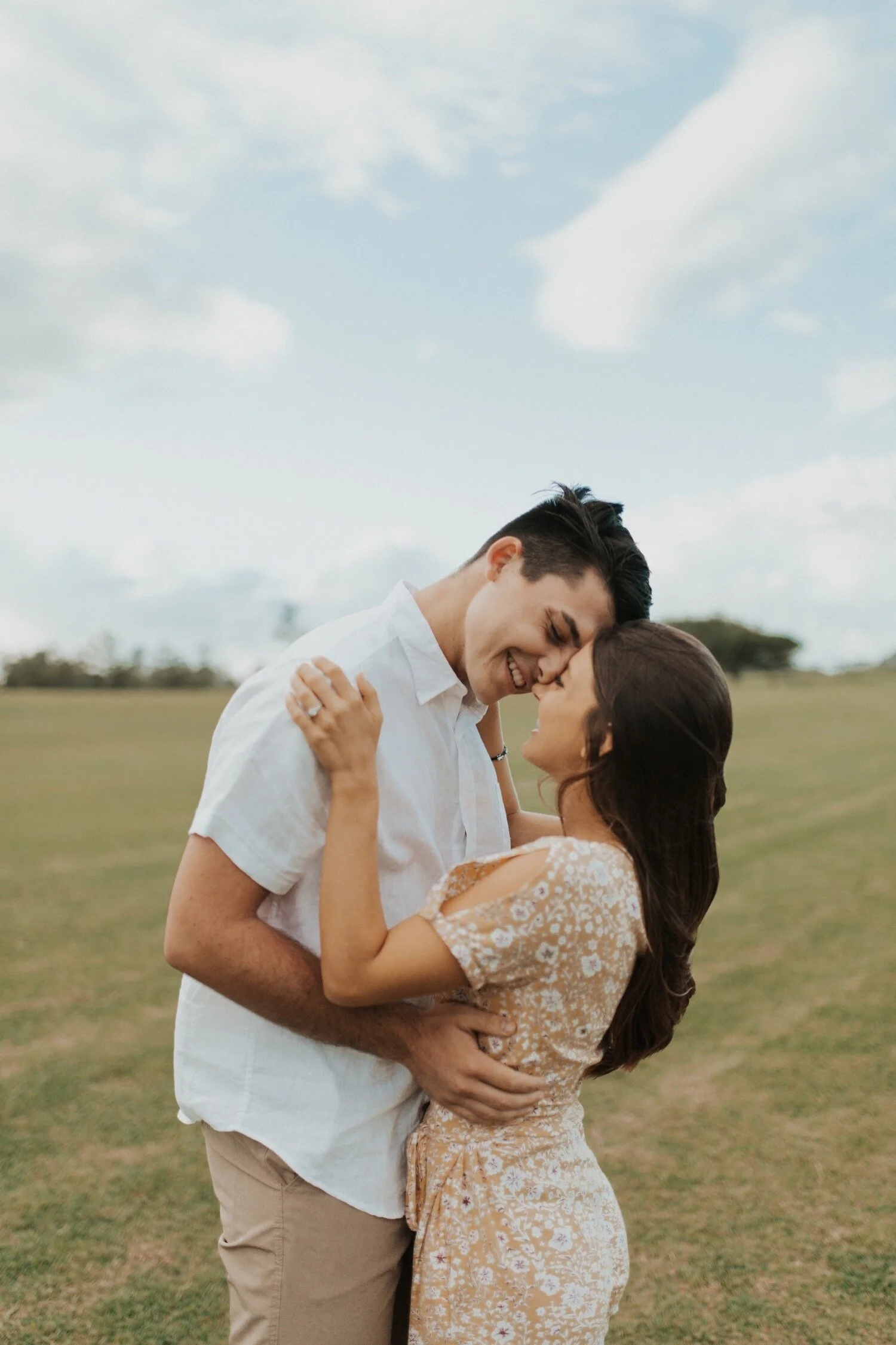 The most gorgeous beach engagement session on the beautiful north shore Oahu with Amanda and Carter. Where can I even begin with these two. The day was gorgeous. rain clouds were all around us and it sure showed up the beautiful north shore of Oahu. These two ran up and down the beach, rolled in the sand, and ended the night in the water. A + C were two of the sweetest most loving individuals ever. You could feel the joy that they brought each other. The island definitely showed off for these two and I couldn’t have asked for a beautiful night on the north shore of Oahu for them. So excited for their wedding and the amazing life these two are going to have together.