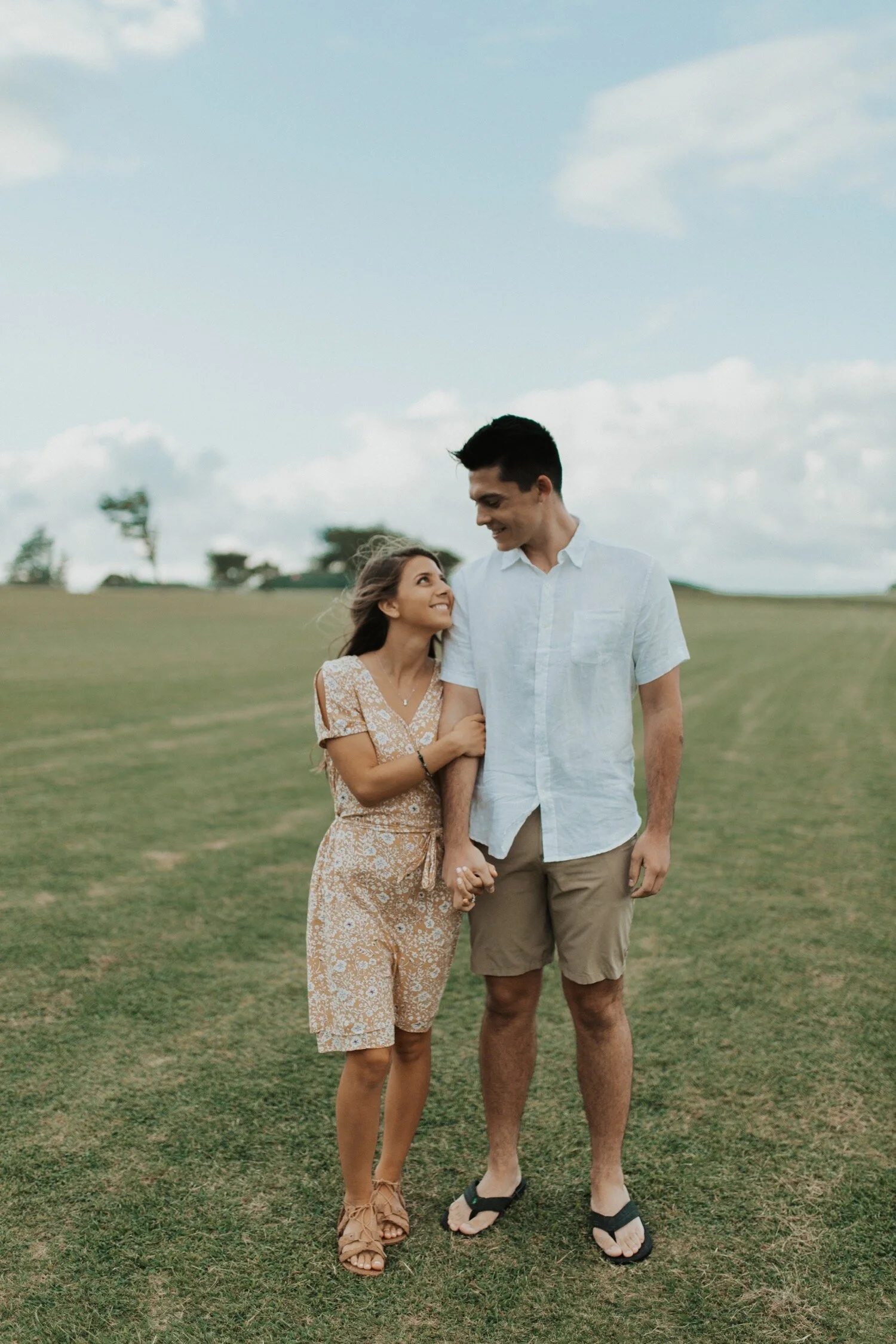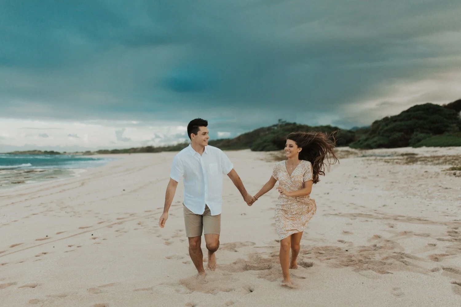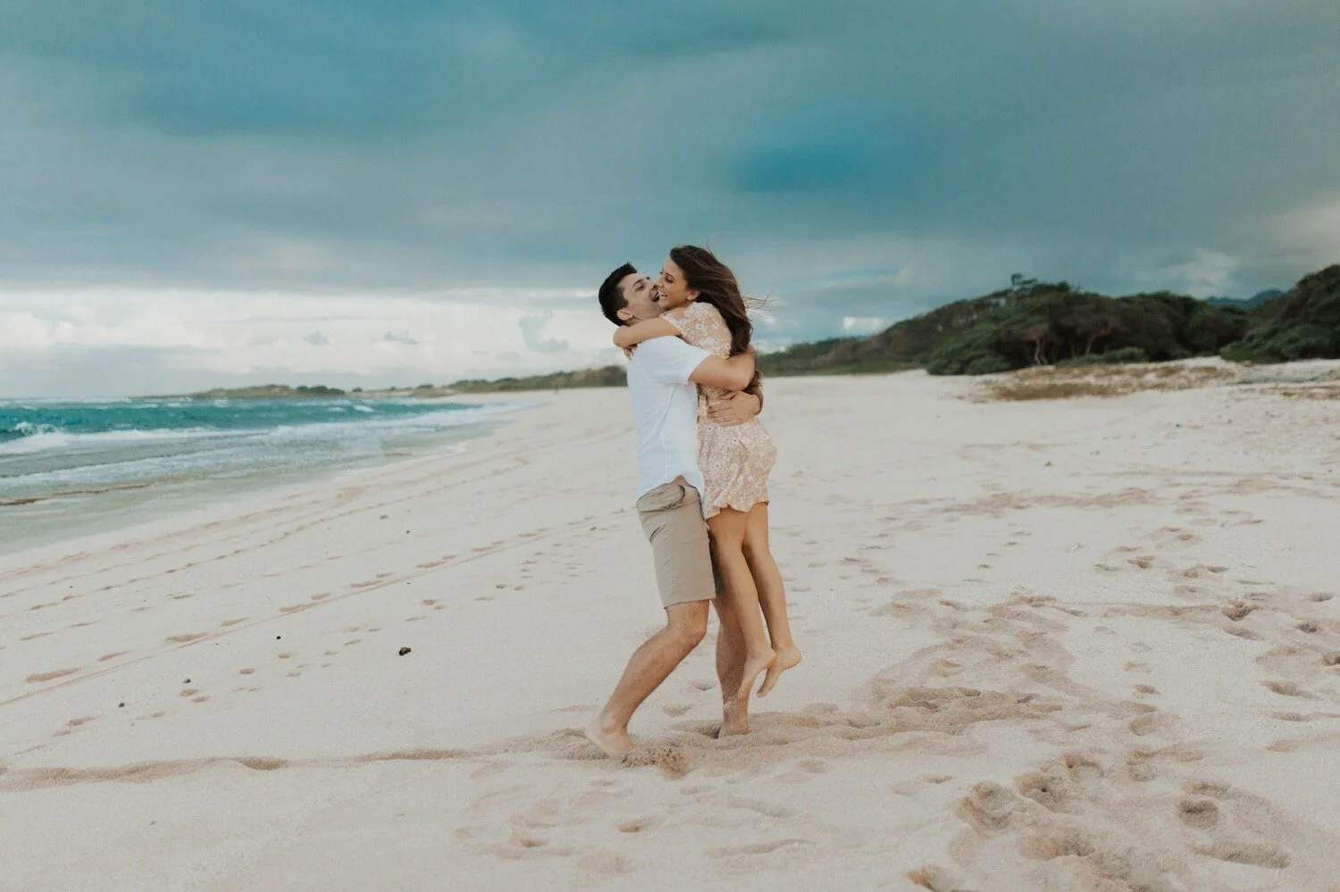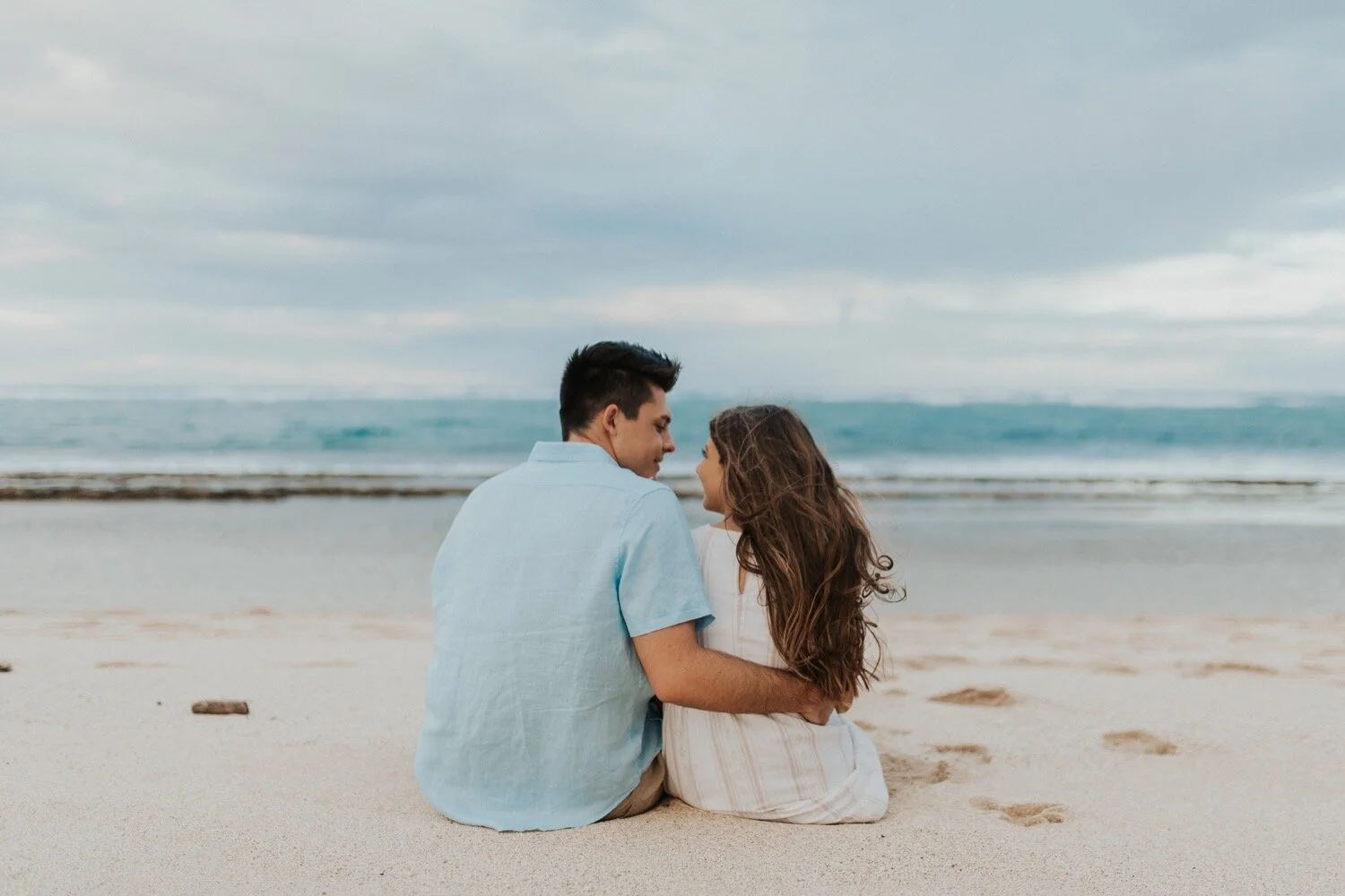 The most gorgeous beach engagement session on the beautiful north shore Oahu with Amanda and Carter. Where can I even begin with these two. The day was gorgeous. rain clouds were all around us and it sure showed up the beautiful north shore of Oahu. These two ran up and down the beach, rolled in the sand, and ended the night in the water. A + C were two of the sweetest most loving individuals ever. You could feel the joy that they brought each other. The island definitely showed off for these two and I couldn’t have asked for a beautiful night on the north shore of Oahu for them. So excited for their wedding and the amazing life these two are going to have together.