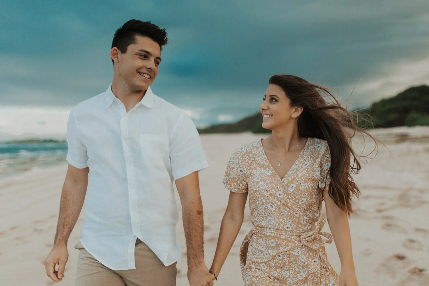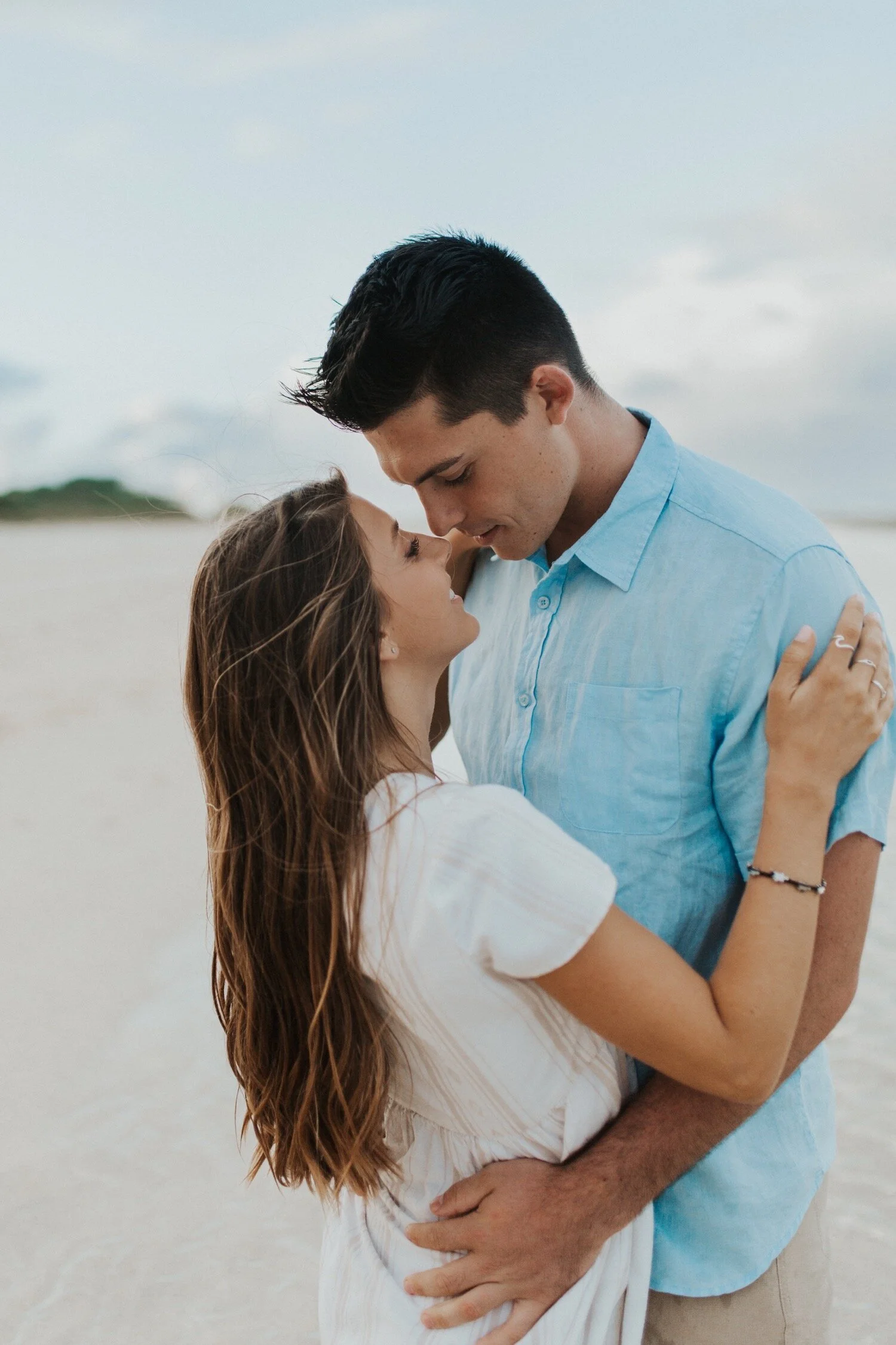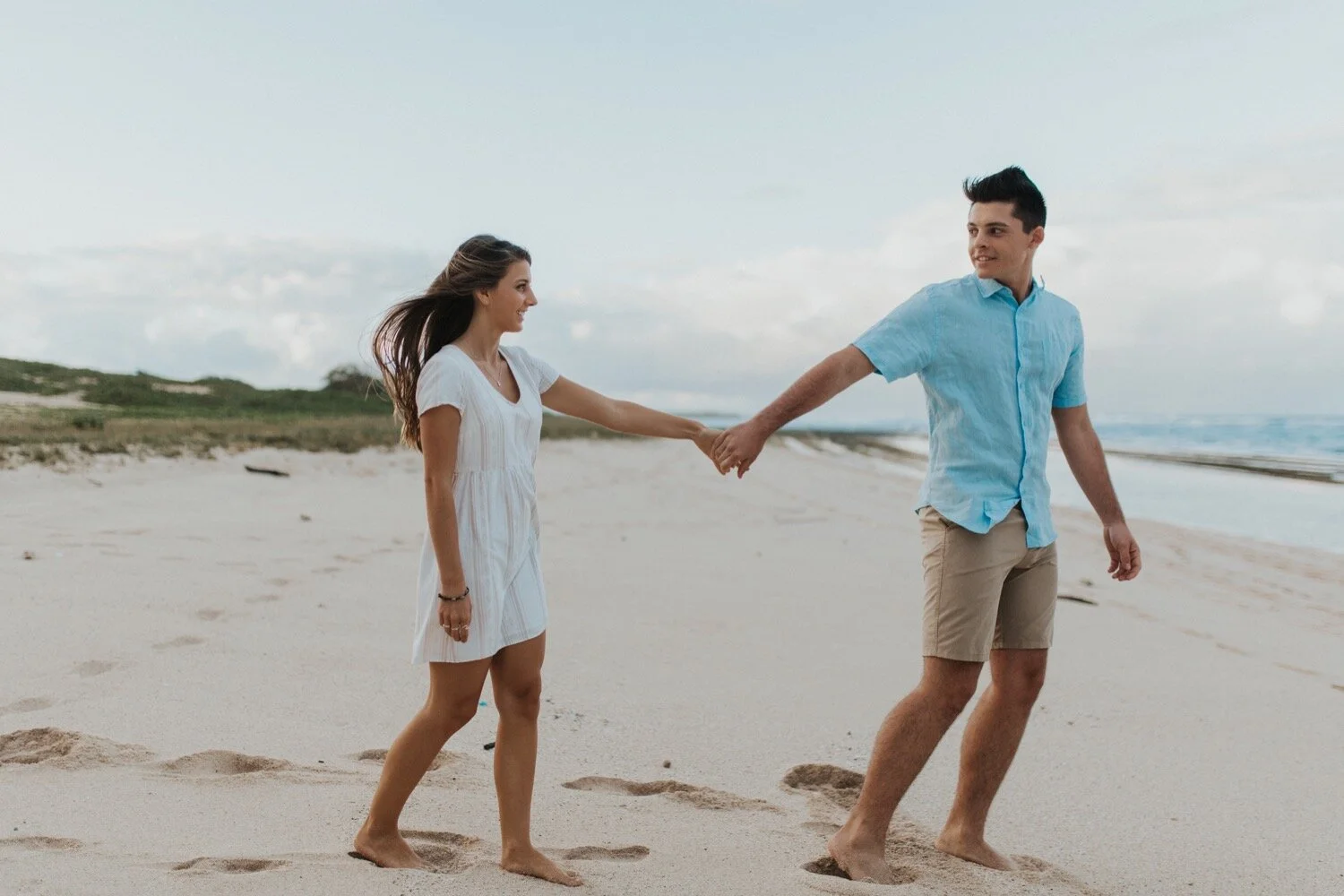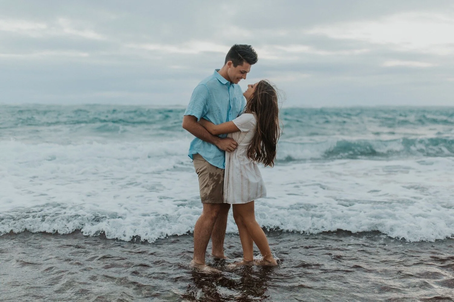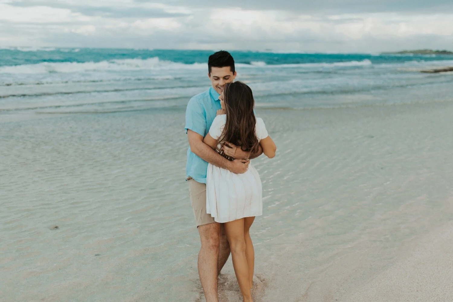 The most gorgeous beach engagement session on the beautiful north shore Oahu with Amanda and Carter. Where can I even begin with these two. The day was gorgeous. rain clouds were all around us and it sure showed up the beautiful north shore of Oahu. These two ran up and down the beach, rolled in the sand, and ended the night in the water. A + C were two of the sweetest most loving individuals ever. You could feel the joy that they brought each other. The island definitely showed off for these two and I couldn’t have asked for a beautiful night on the north shore of Oahu for them. So excited for their wedding and the amazing life these two are going to have together.