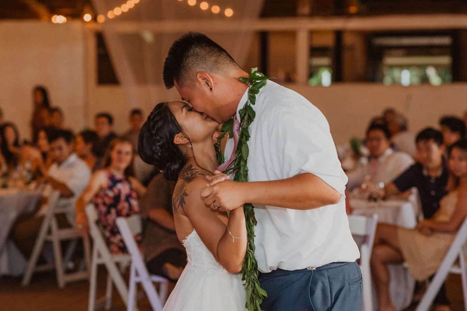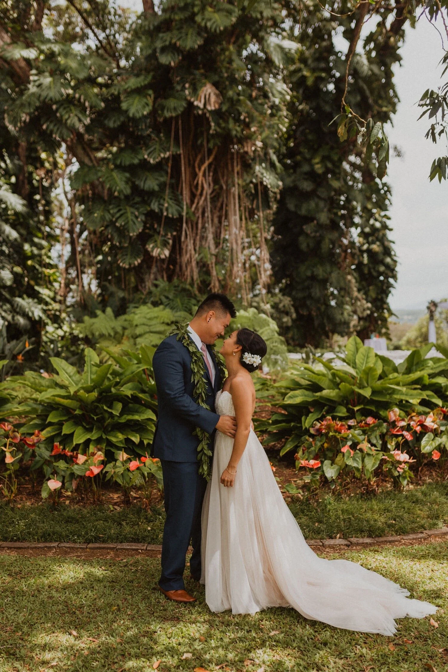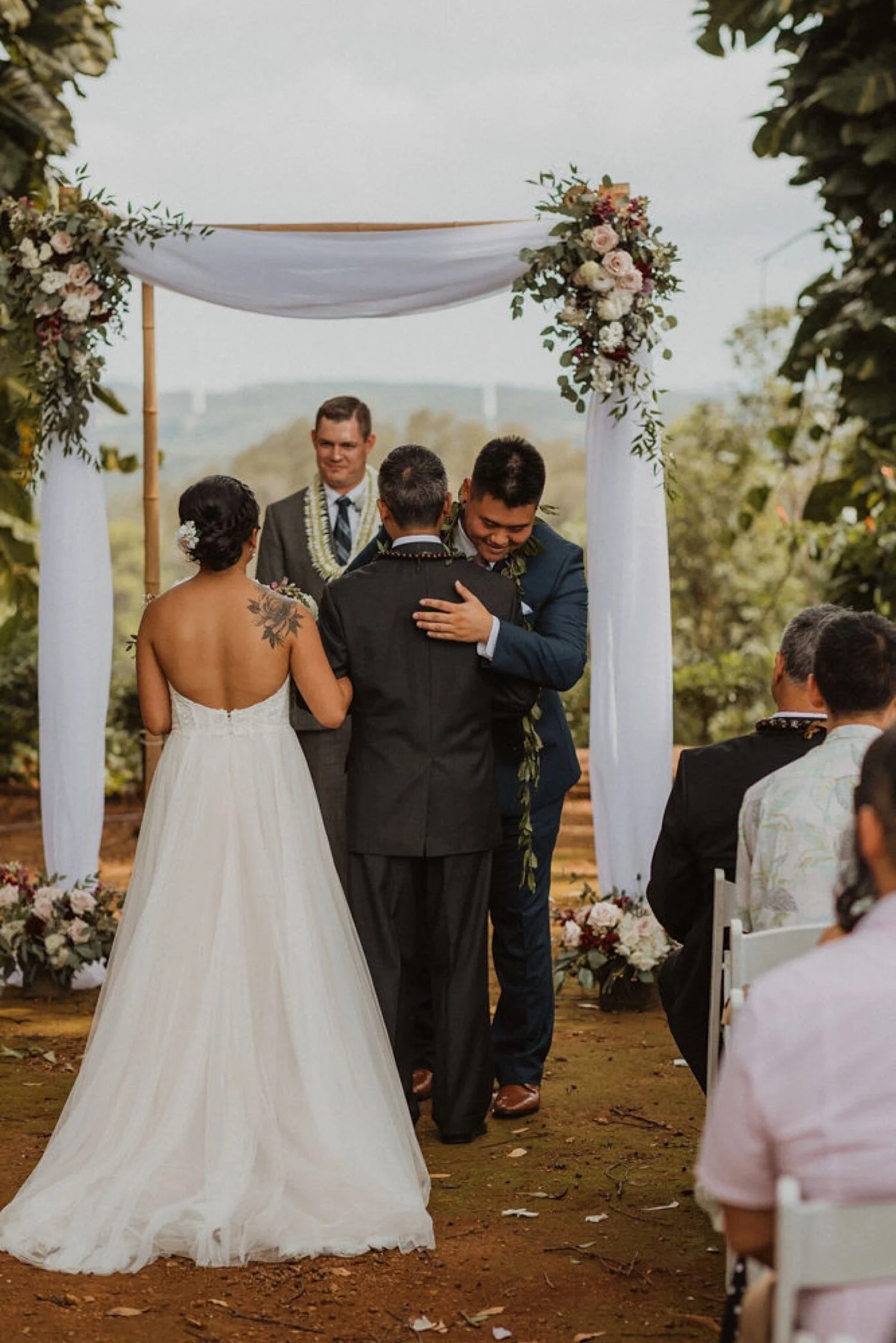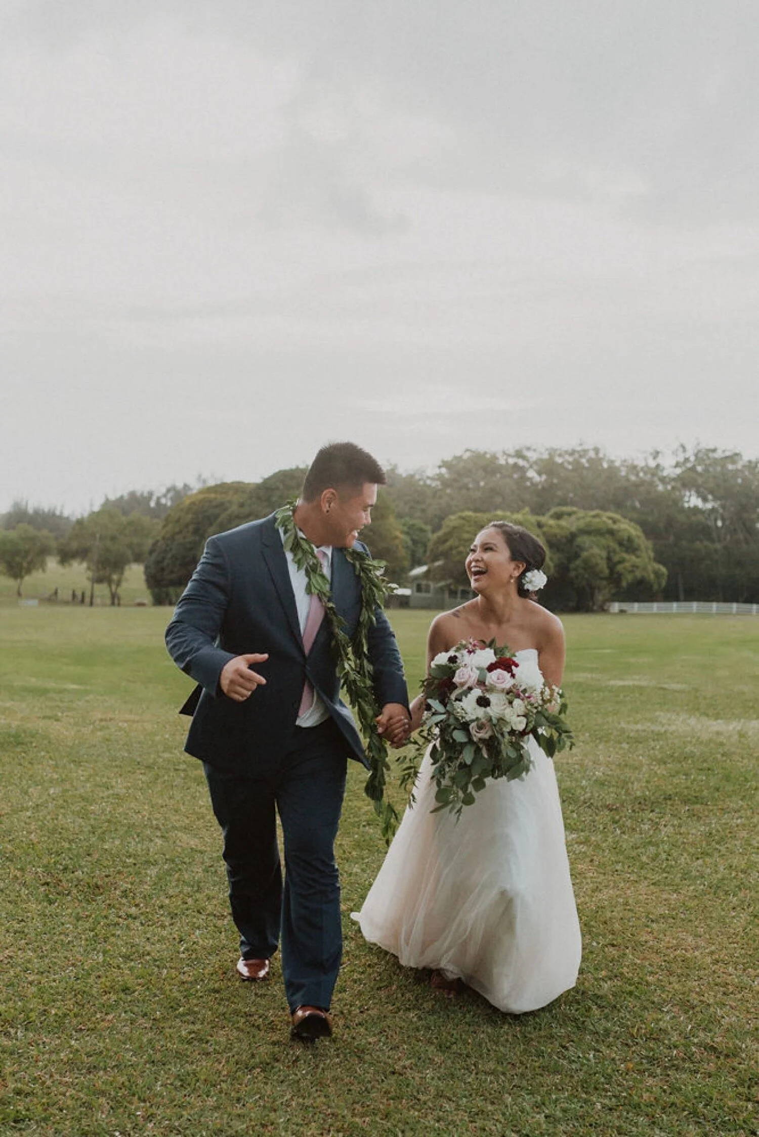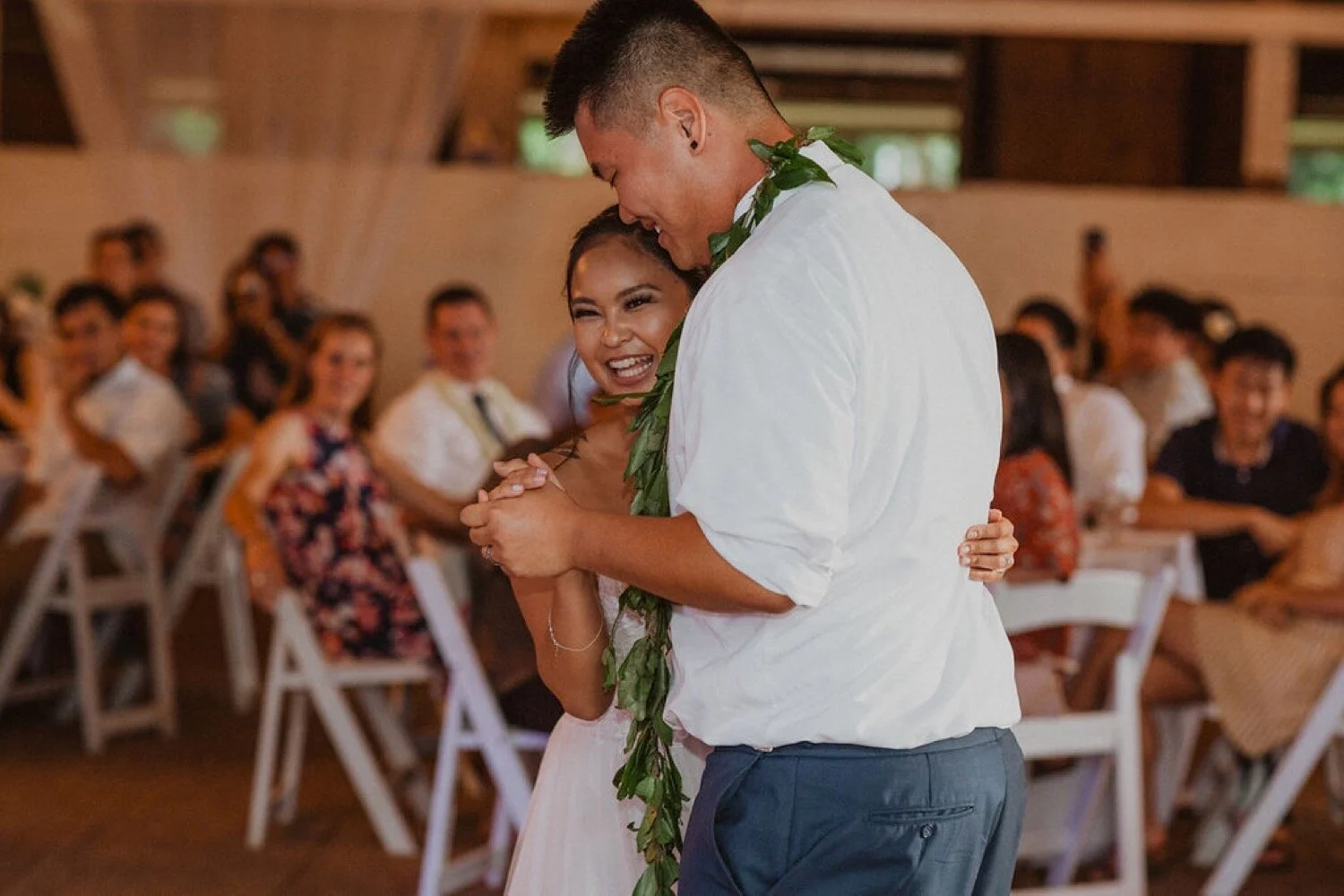 This gorgeous Sunset Ranch Hawaii wedding was the perfect location for an intimate wedding on a gorgeous summer day. Aaron and Kaisha are two local, born and raised Oahu couple that moved to Oregon to go to school. They came back to Hawaii for their small, intimate wedding at the gorgeous sunset ranch located on the north shore of Oahu, Hawaii. They were surrounded by their family, friends, and those they love most. Family from Hawaii all came in as well as friends from Oregon. The weather gods were so kind to us. The day started out so clear and beautiful and right as we went into the barn for the reception it started to rain. A small little break happened around sunset time so we could sneak out and capture the gorgeous Sunset Ranch at sunset. This intimate wedding was so memorable and sweet.