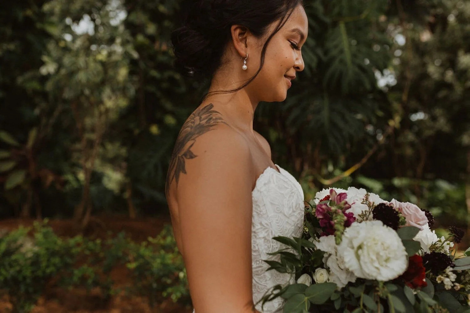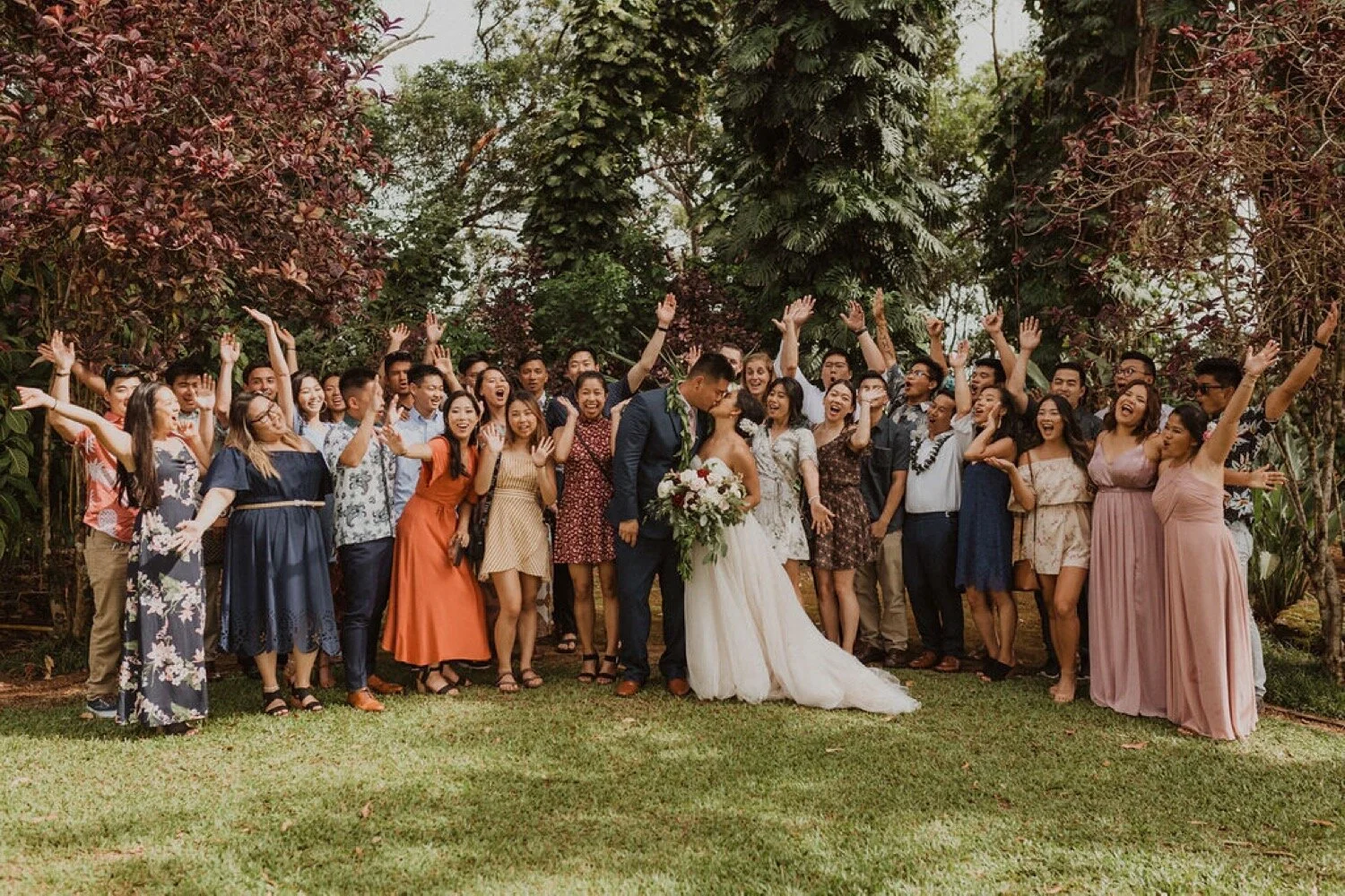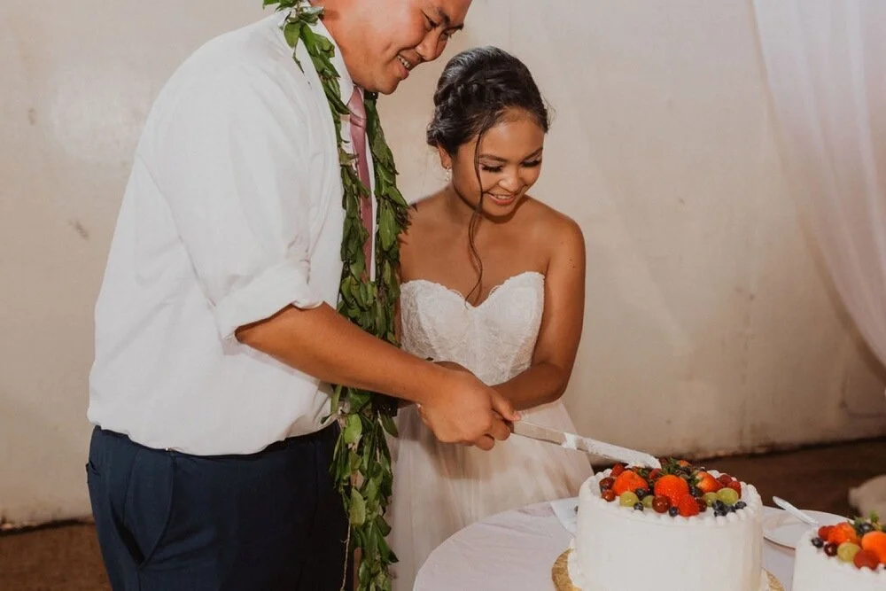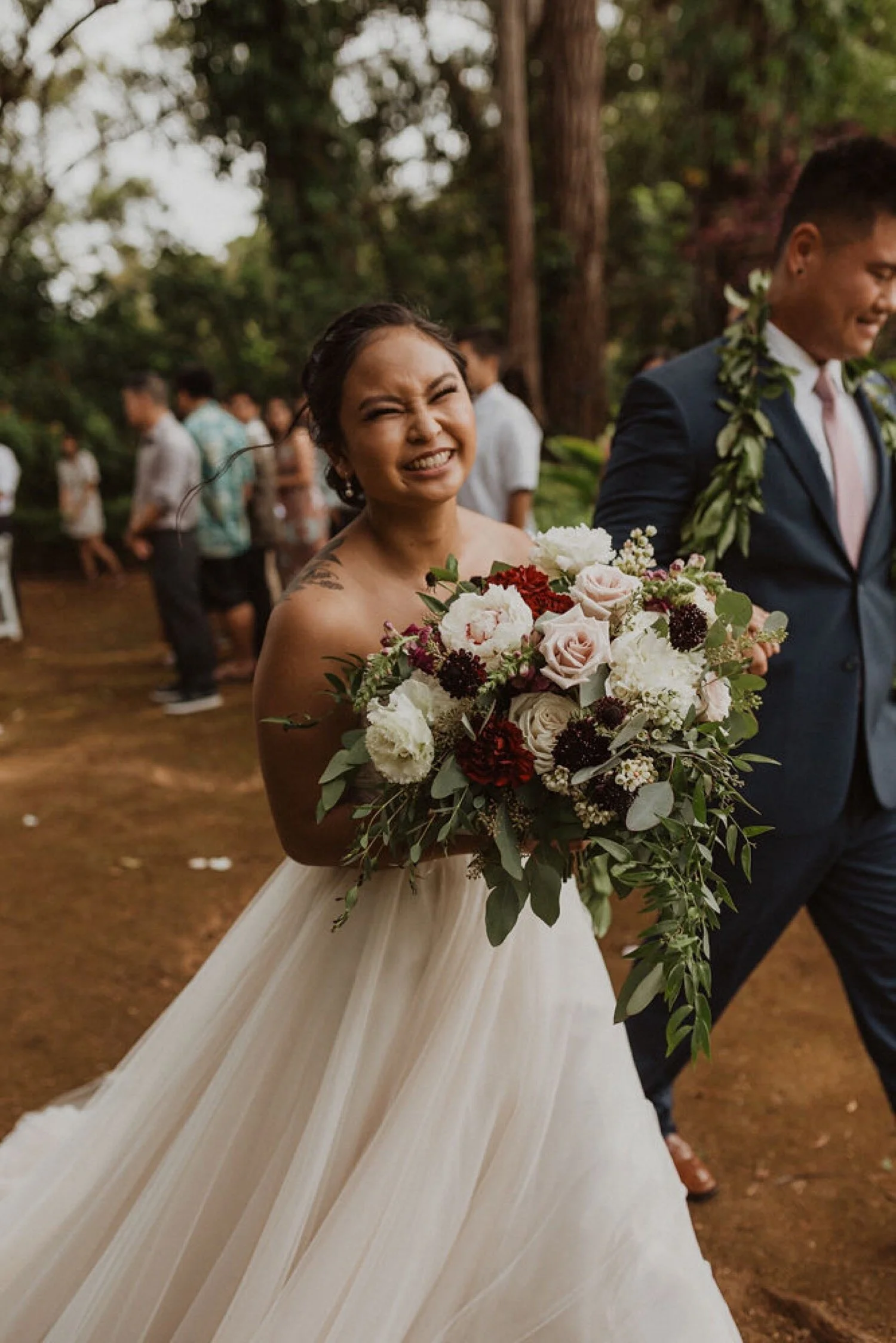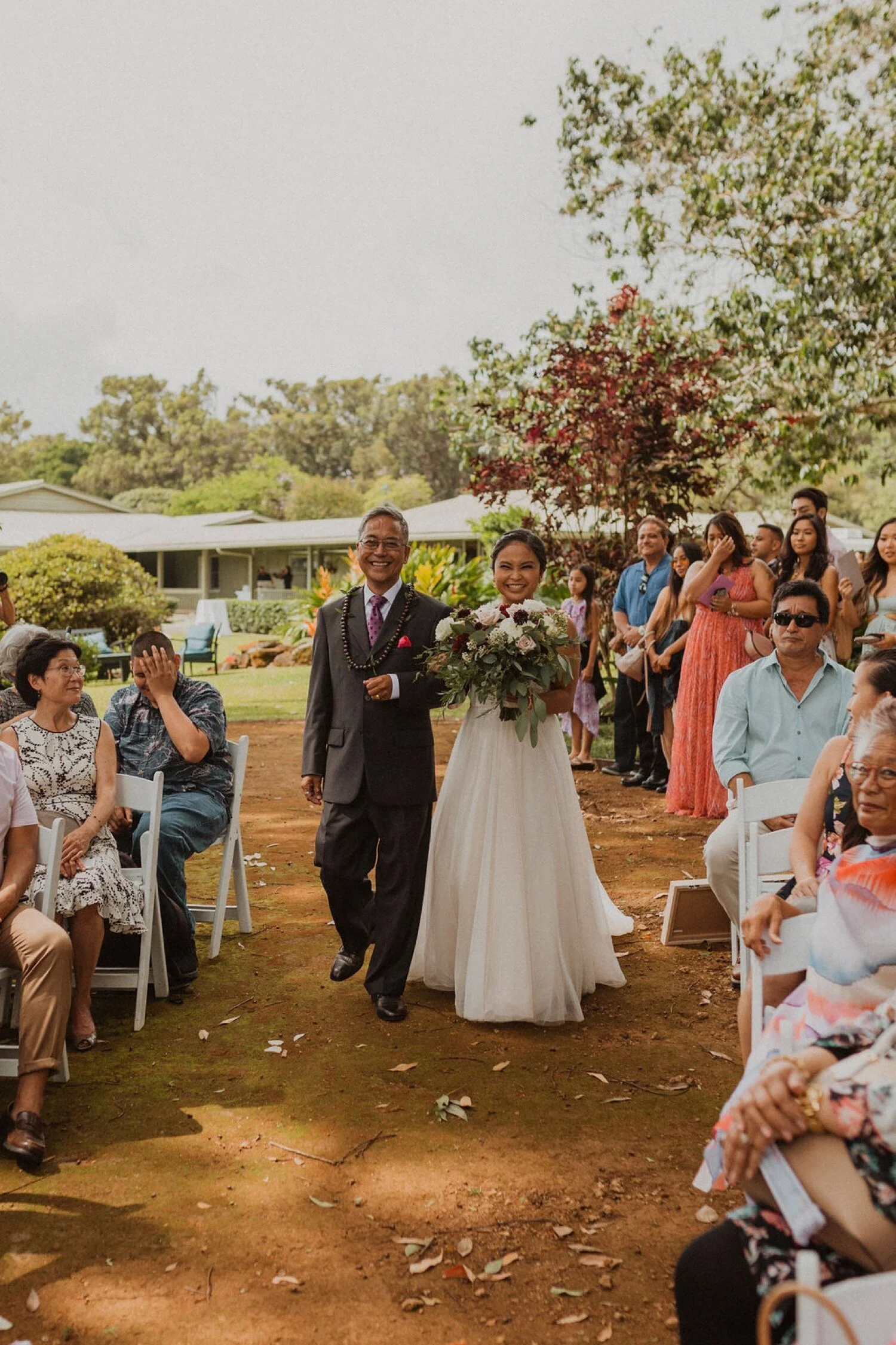 This gorgeous Sunset Ranch Hawaii wedding was the perfect location for an intimate wedding on a gorgeous summer day. Aaron and Kaisha are two local, born and raised Oahu couple that moved to Oregon to go to school. They came back to Hawaii for their small, intimate wedding at the gorgeous sunset ranch located on the north shore of Oahu, Hawaii. They were surrounded by their family, friends, and those they love most. Family from Hawaii all came in as well as friends from Oregon. The weather gods were so kind to us. The day started out so clear and beautiful and right as we went into the barn for the reception it started to rain. A small little break happened around sunset time so we could sneak out and capture the gorgeous Sunset Ranch at sunset. This intimate wedding was so memorable and sweet.