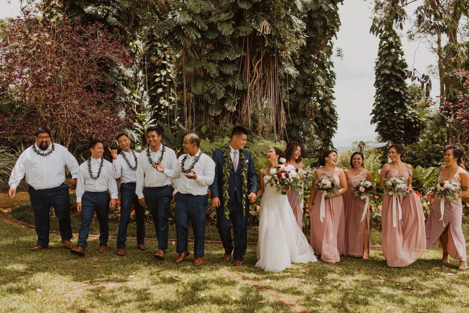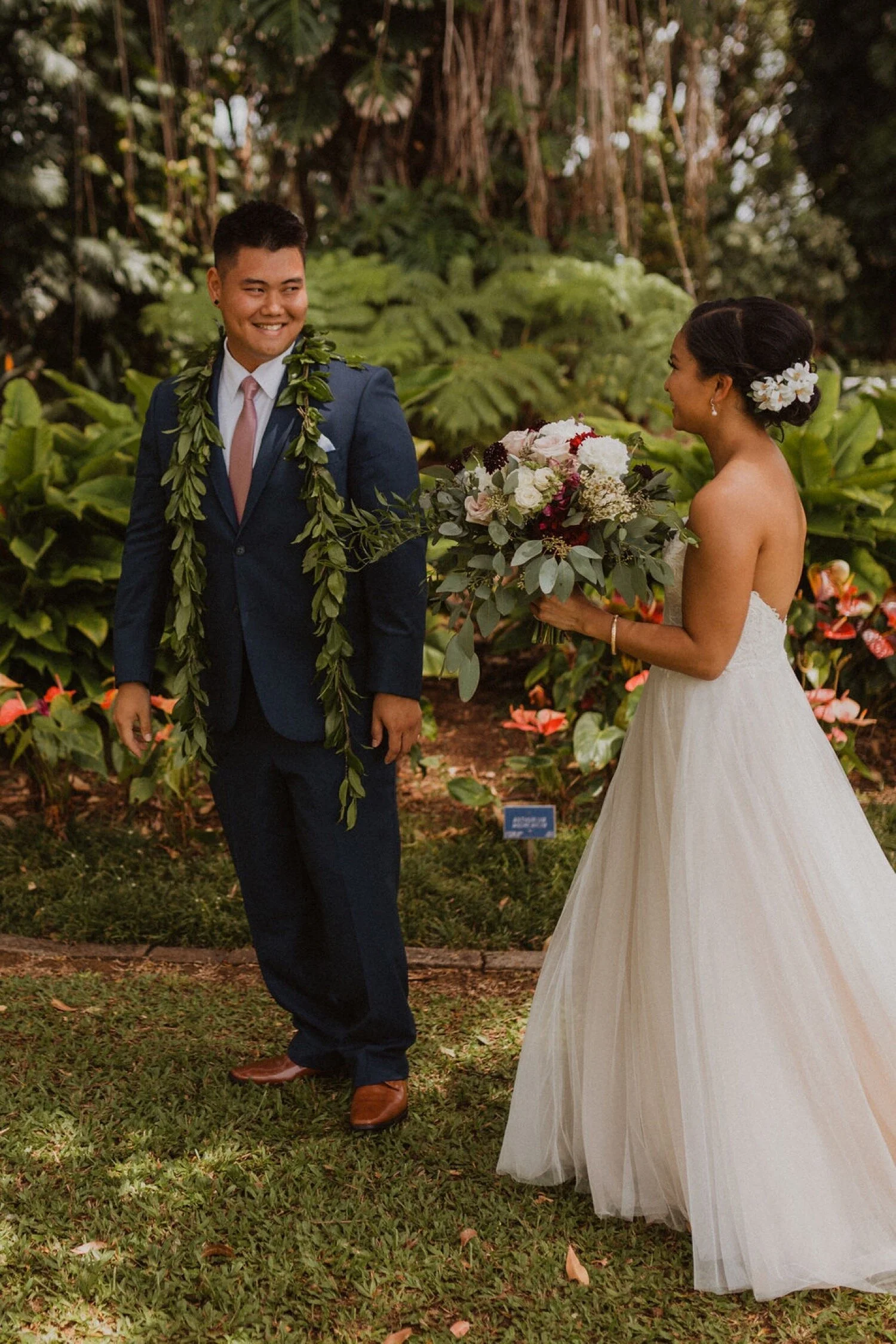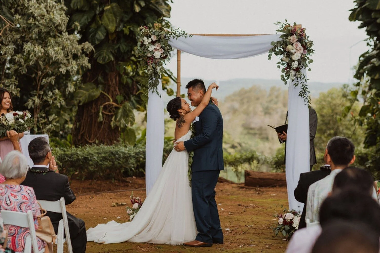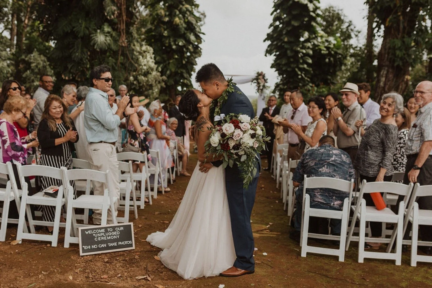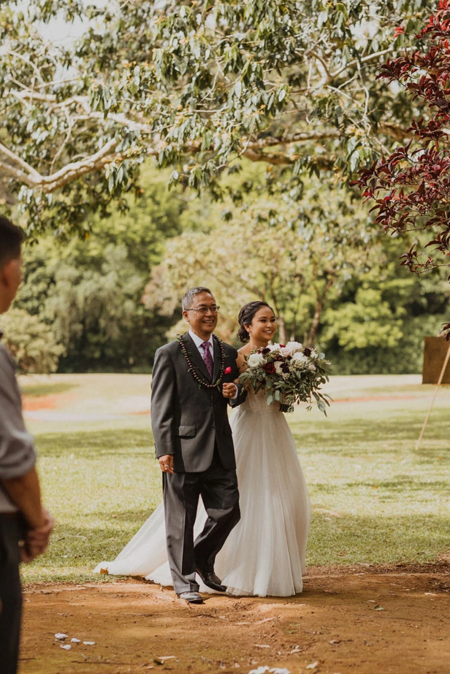 This gorgeous Sunset Ranch Hawaii wedding was the perfect location for an intimate wedding on a gorgeous summer day. Aaron and Kaisha are two local, born and raised Oahu couple that moved to Oregon to go to school. They came back to Hawaii for their small, intimate wedding at the gorgeous sunset ranch located on the north shore of Oahu, Hawaii. They were surrounded by their family, friends, and those they love most. Family from Hawaii all came in as well as friends from Oregon. The weather gods were so kind to us. The day started out so clear and beautiful and right as we went into the barn for the reception it started to rain. A small little break happened around sunset time so we could sneak out and capture the gorgeous Sunset Ranch at sunset. This intimate wedding was so memorable and sweet.