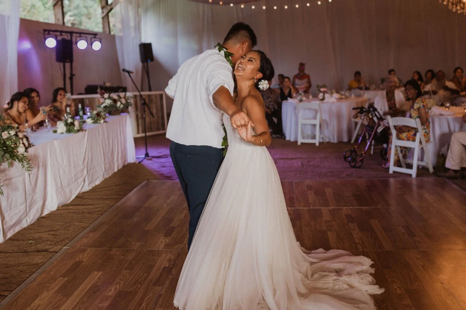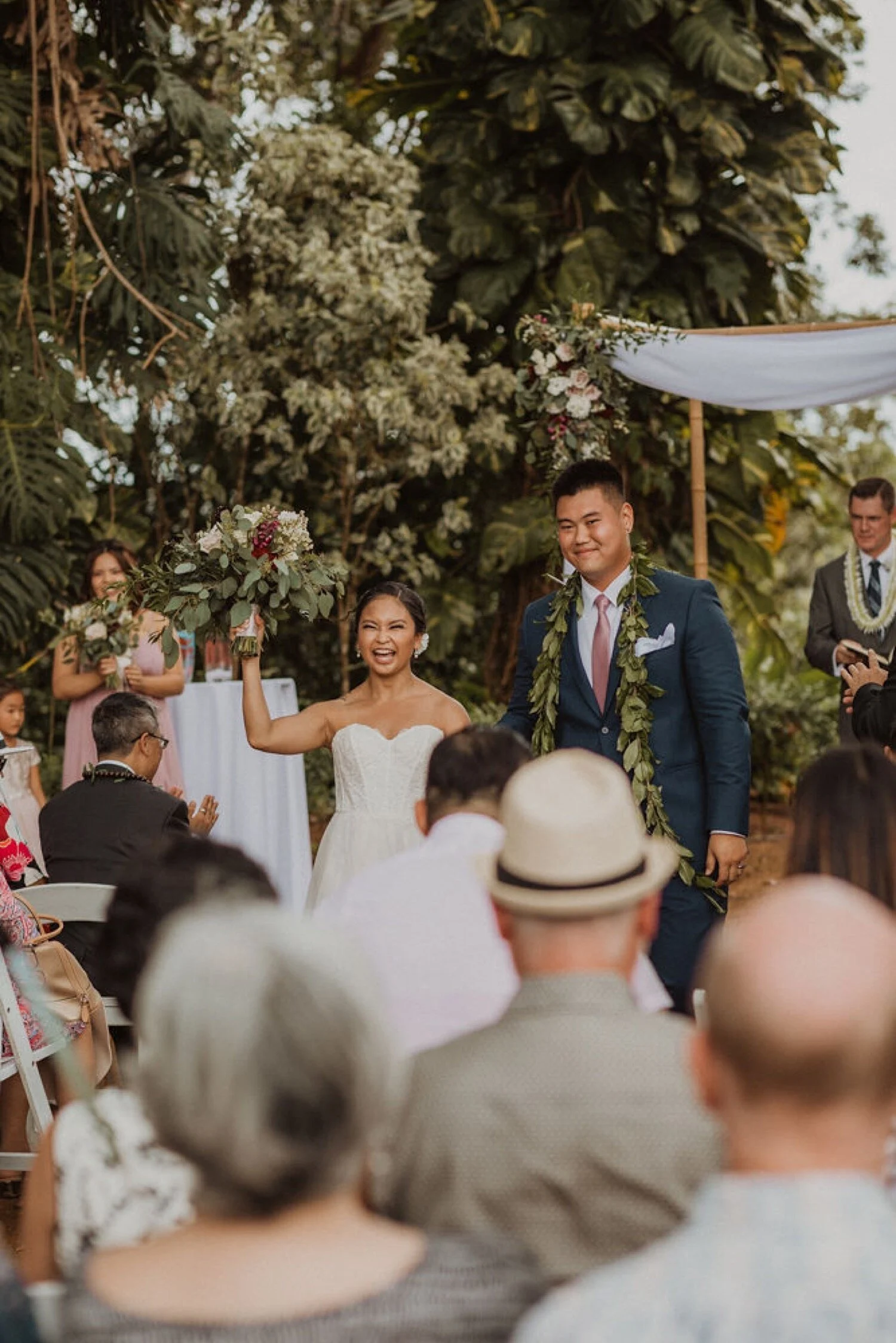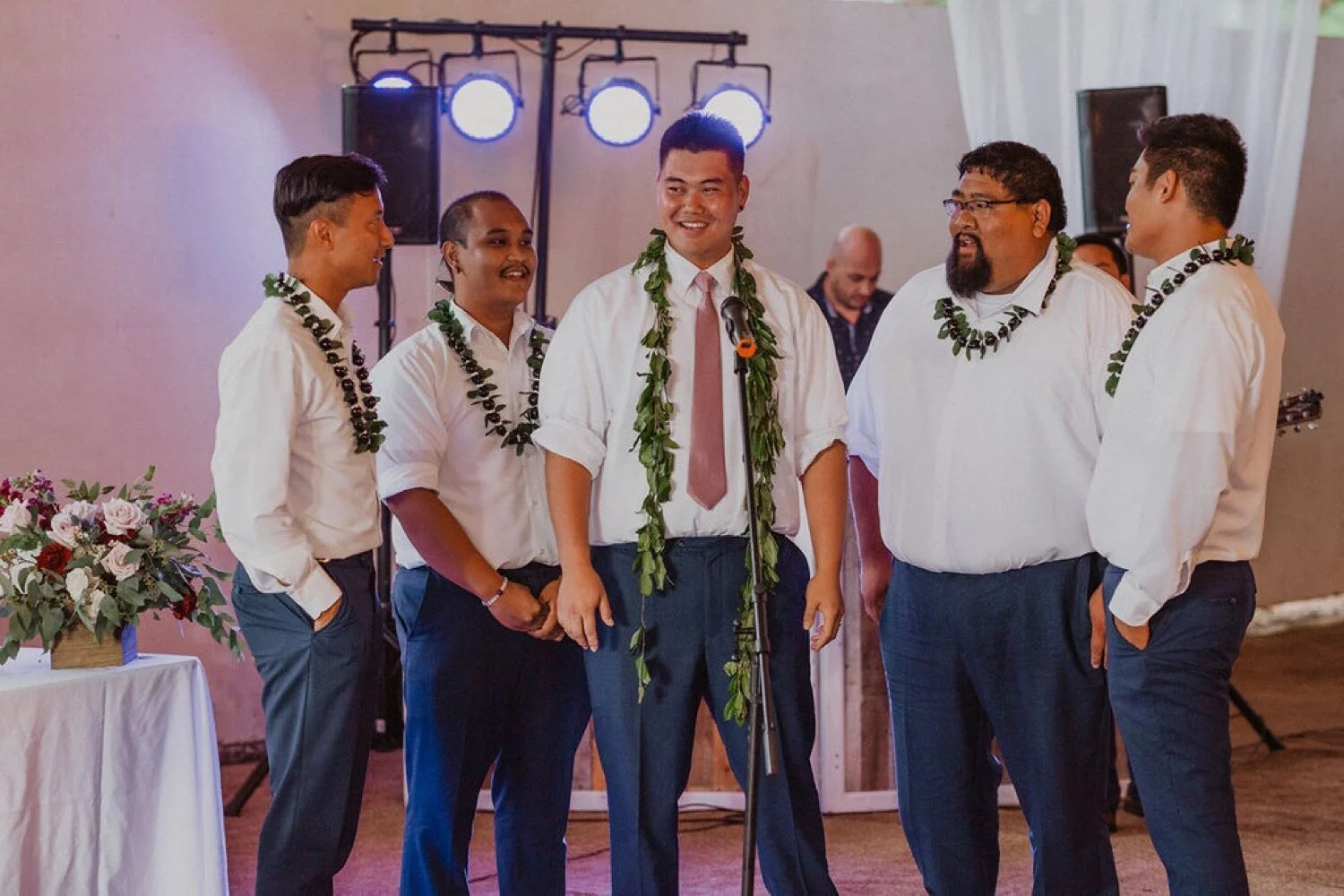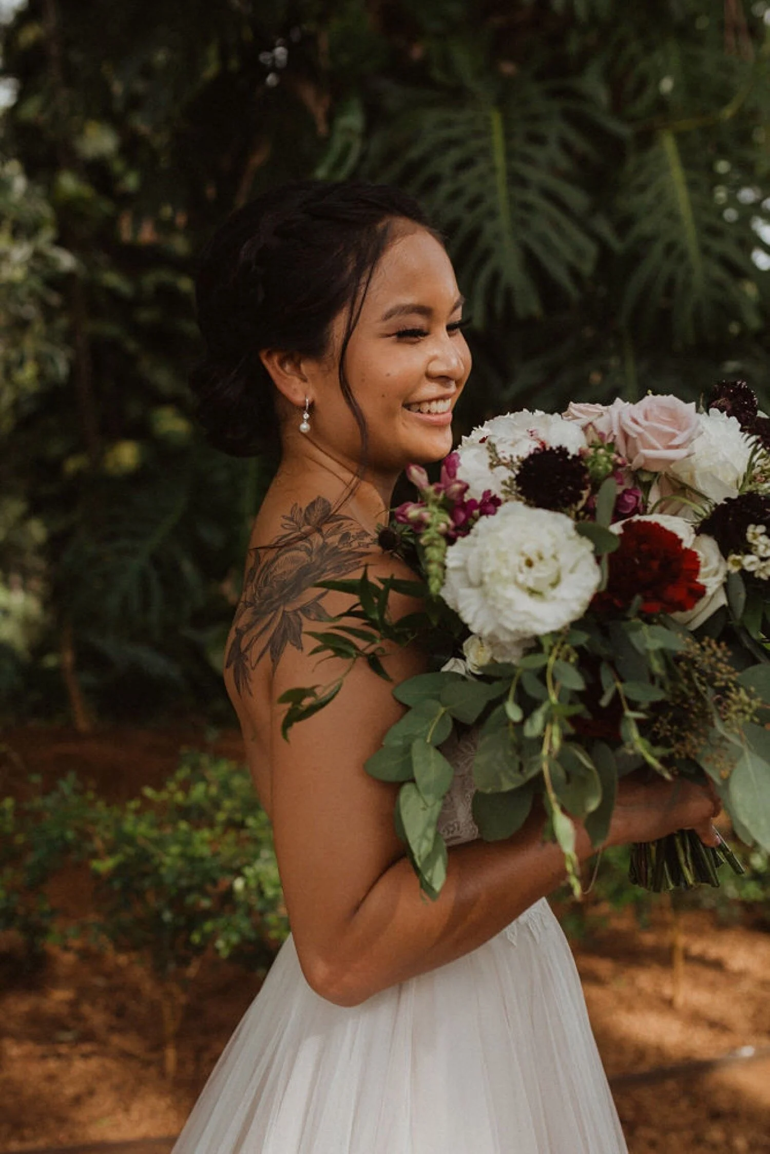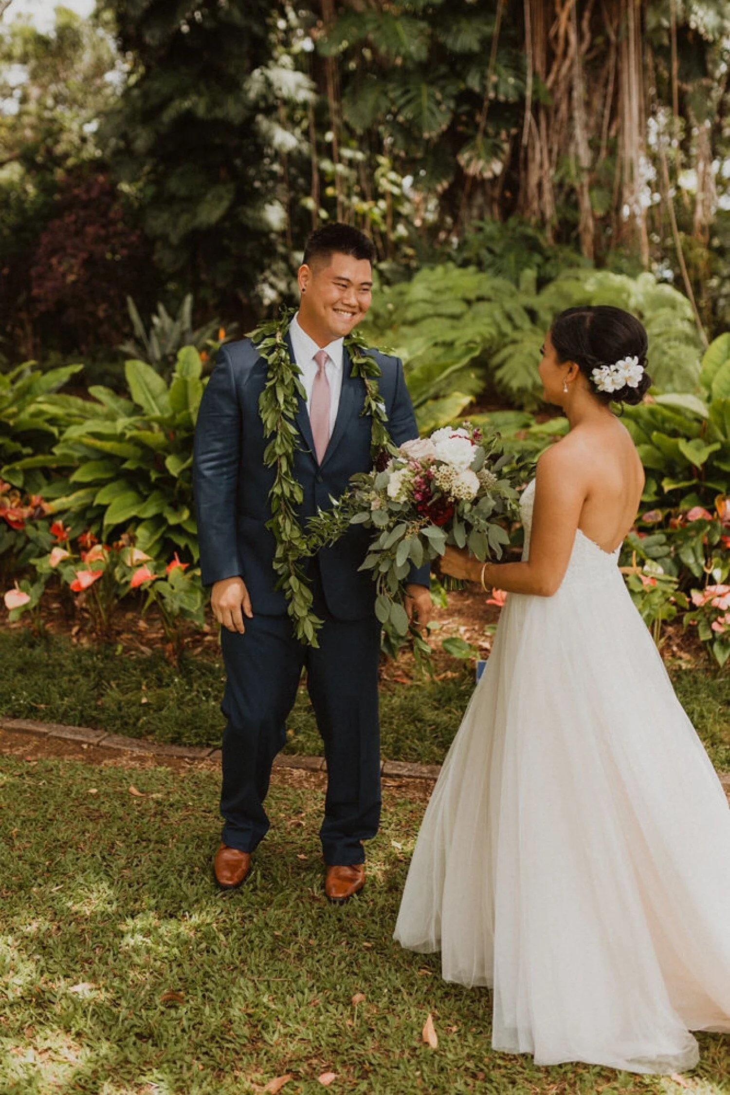 This gorgeous Sunset Ranch Hawaii wedding was the perfect location for an intimate wedding on a gorgeous summer day. Aaron and Kaisha are two local, born and raised Oahu couple that moved to Oregon to go to school. They came back to Hawaii for their small, intimate wedding at the gorgeous sunset ranch located on the north shore of Oahu, Hawaii. They were surrounded by their family, friends, and those they love most. Family from Hawaii all came in as well as friends from Oregon. The weather gods were so kind to us. The day started out so clear and beautiful and right as we went into the barn for the reception it started to rain. A small little break happened around sunset time so we could sneak out and capture the gorgeous Sunset Ranch at sunset. This intimate wedding was so memorable and sweet.