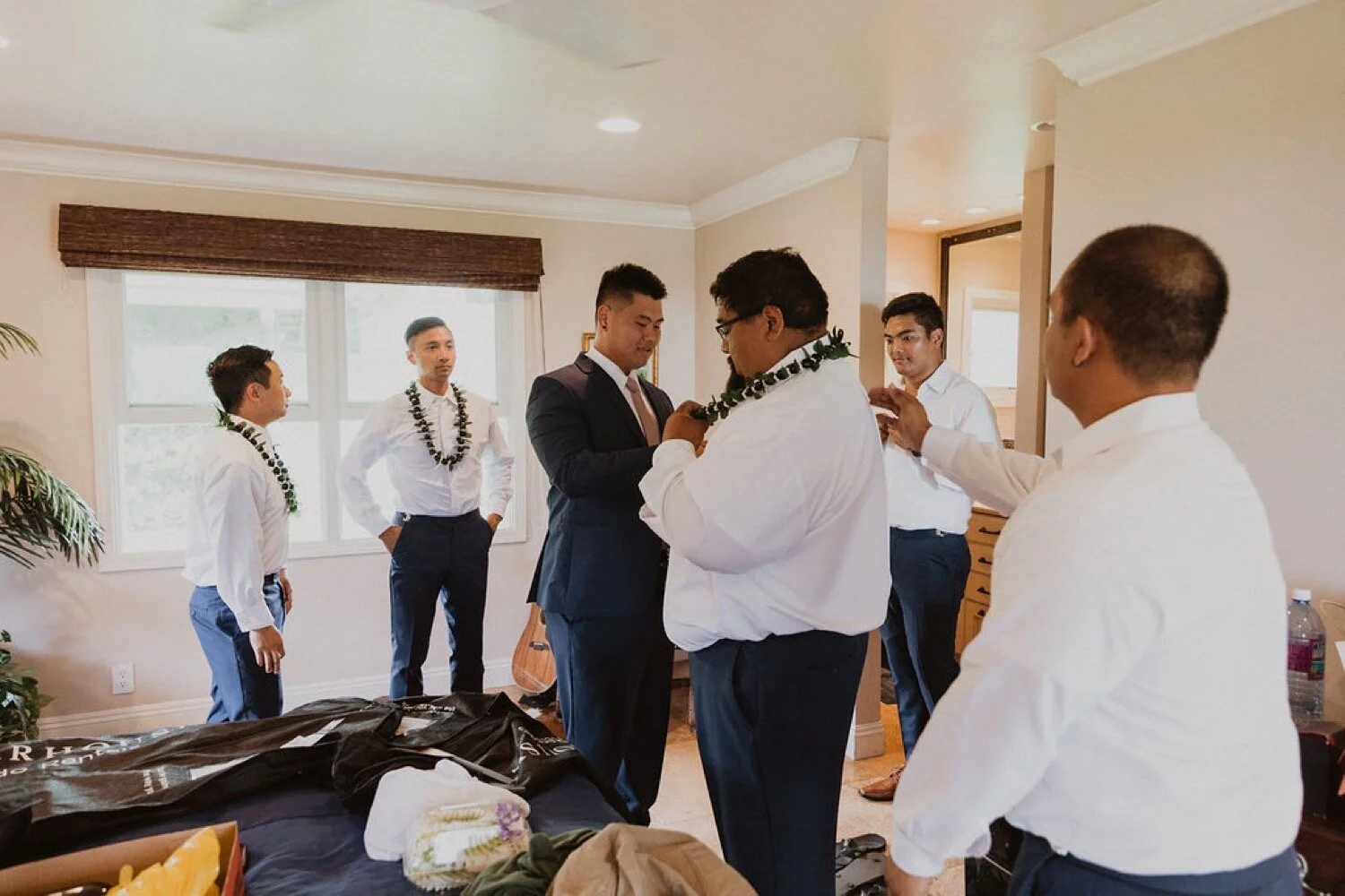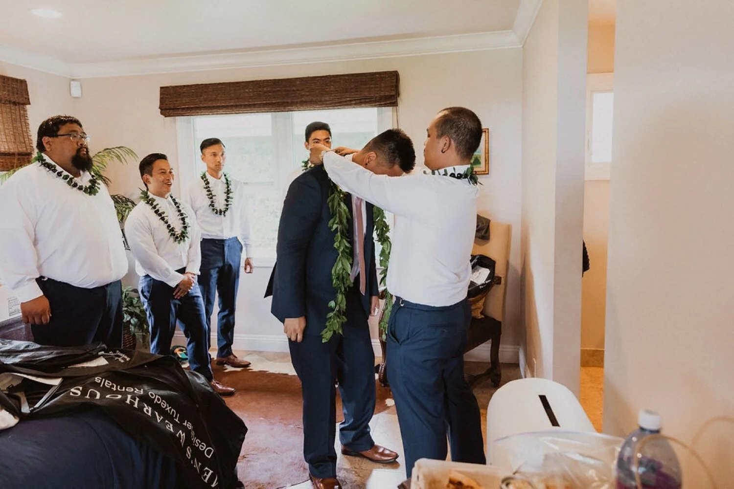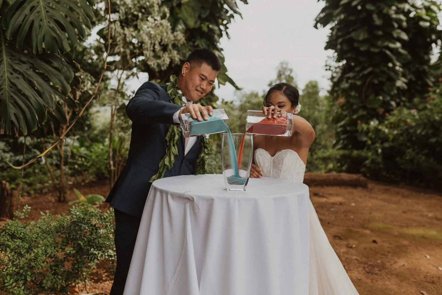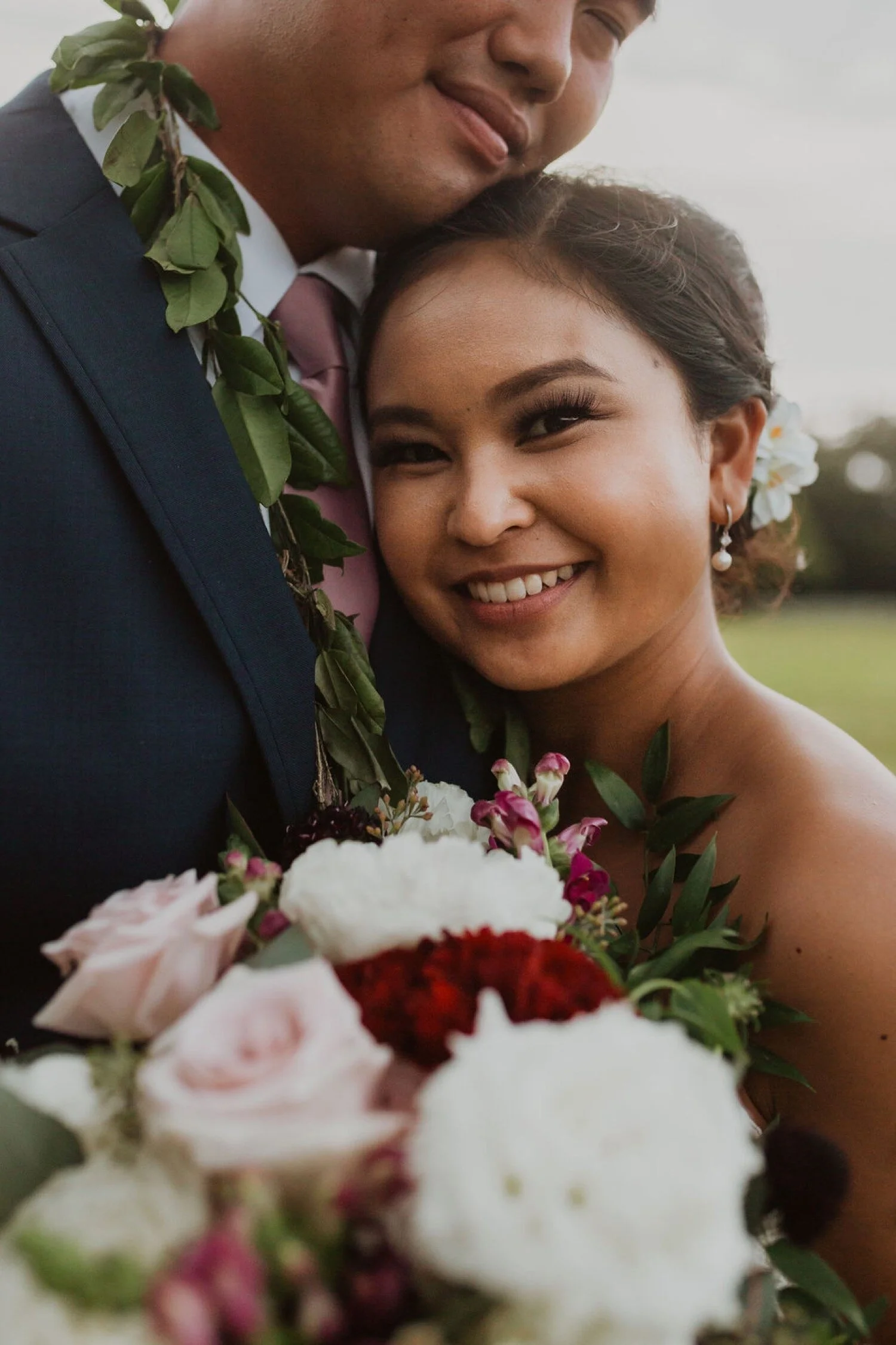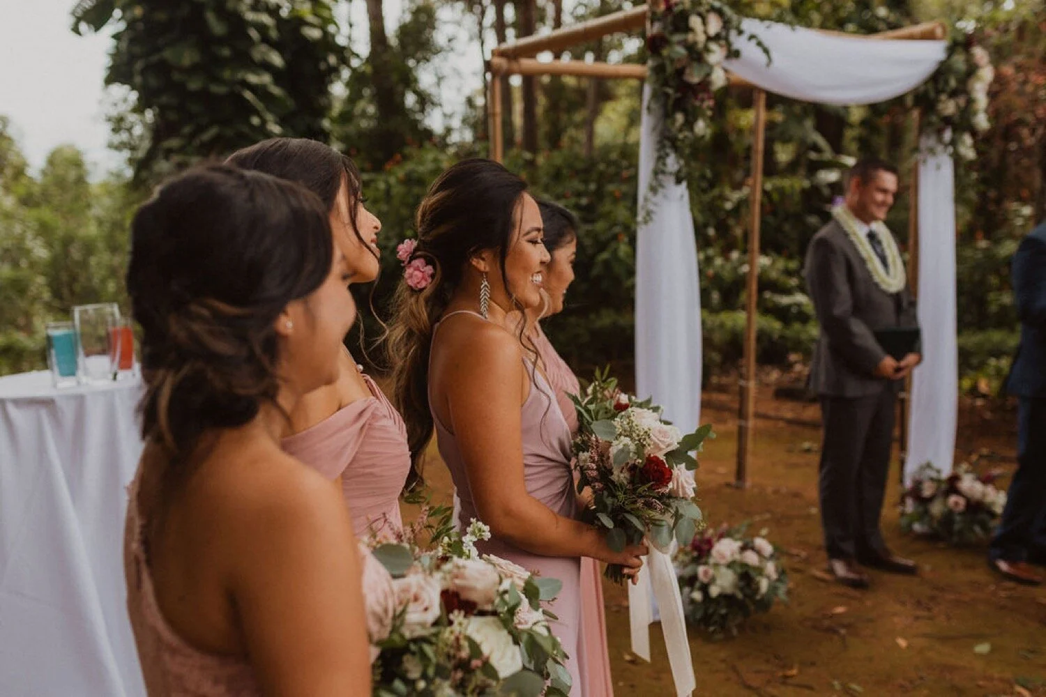This gorgeous Sunset Ranch Hawaii wedding was the perfect location for an intimate wedding on a gorgeous summer day. Aaron and Kaisha are two local, born and raised Oahu couple that moved to Oregon to go to school. They came back to Hawaii for their small, intimate wedding at the gorgeous sunset ranch located on the north shore of Oahu, Hawaii. They were surrounded by their family, friends, and those they love most. Family from Hawaii all came in as well as friends from Oregon. The weather gods were so kind to us. The day started out so clear and beautiful and right as we went into the barn for the reception it started to rain. A small little break happened around sunset time so we could sneak out and capture the gorgeous Sunset Ranch at sunset. This intimate wedding was so memorable and sweet.