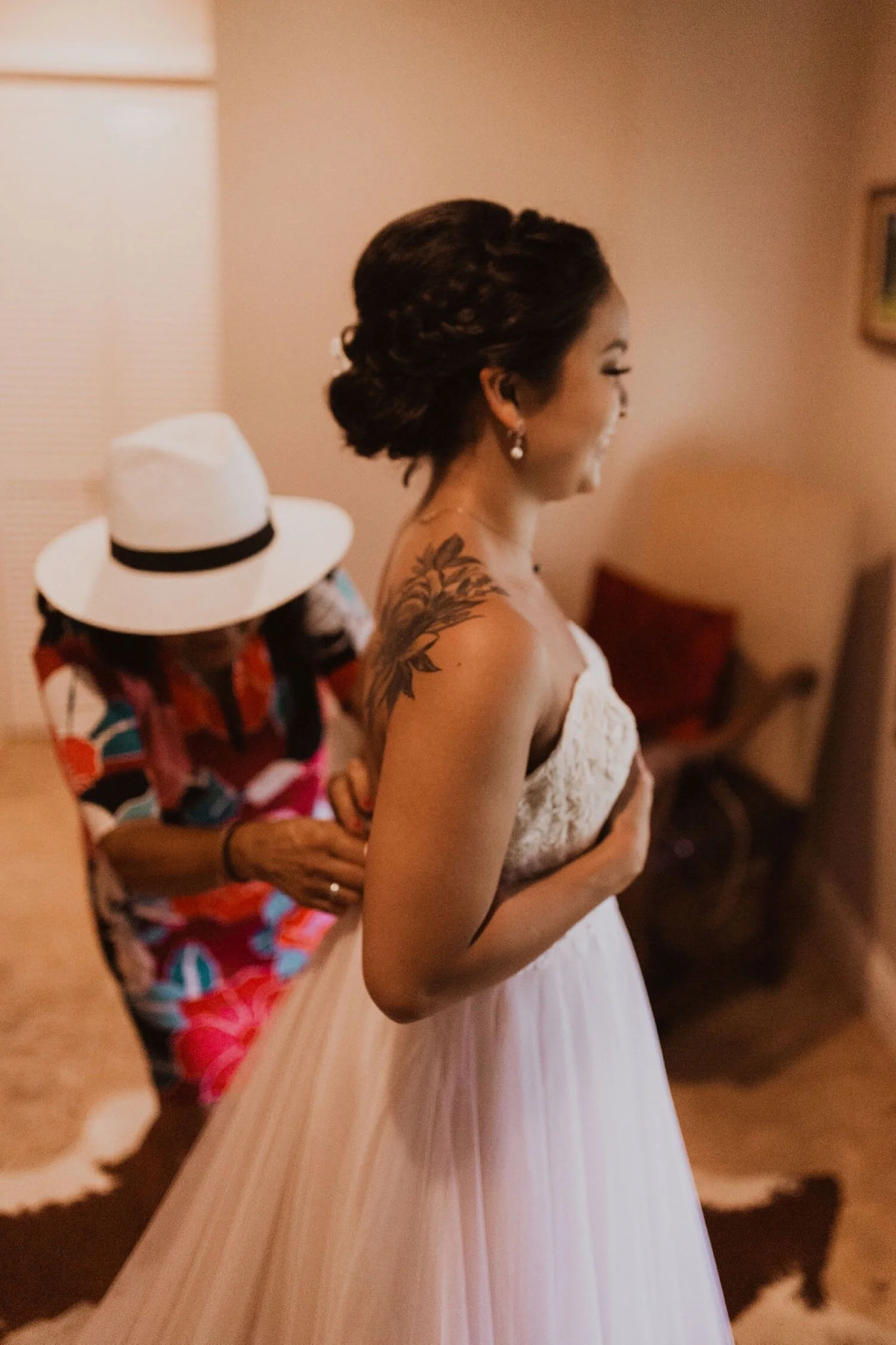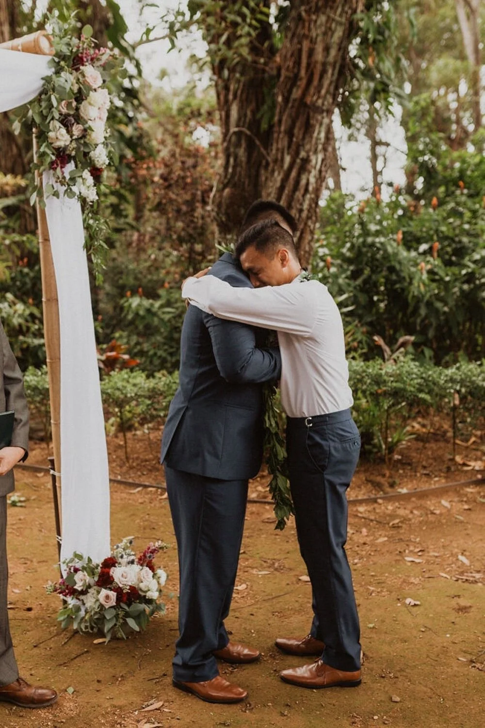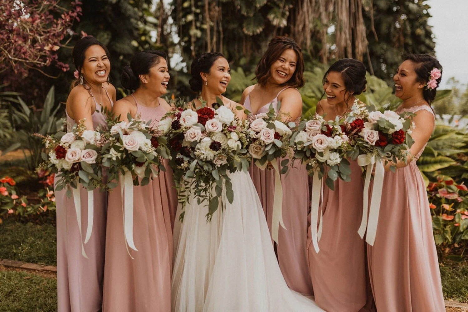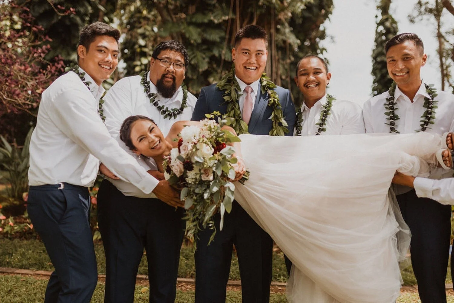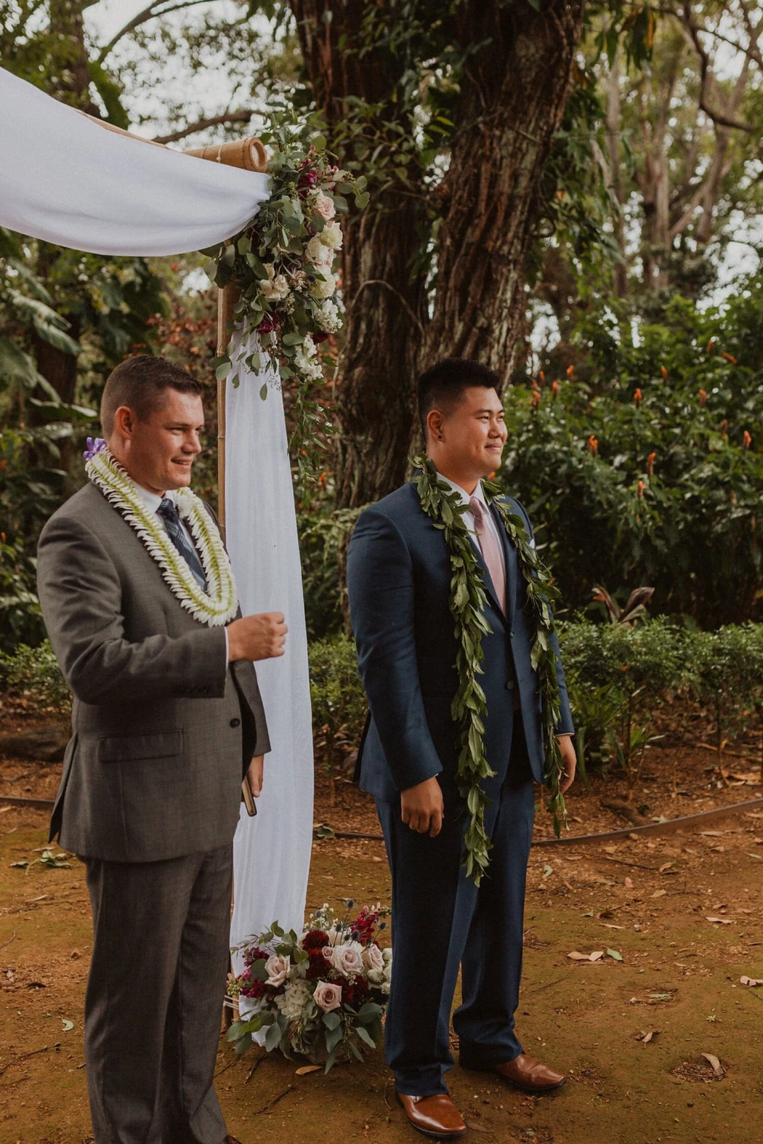 This gorgeous Sunset Ranch Hawaii wedding was the perfect location for an intimate wedding on a gorgeous summer day. Aaron and Kaisha are two local, born and raised Oahu couple that moved to Oregon to go to school. They came back to Hawaii for their small, intimate wedding at the gorgeous sunset ranch located on the north shore of Oahu, Hawaii. They were surrounded by their family, friends, and those they love most. Family from Hawaii all came in as well as friends from Oregon. The weather gods were so kind to us. The day started out so clear and beautiful and right as we went into the barn for the reception it started to rain. A small little break happened around sunset time so we could sneak out and capture the gorgeous Sunset Ranch at sunset. This intimate wedding was so memorable and sweet.