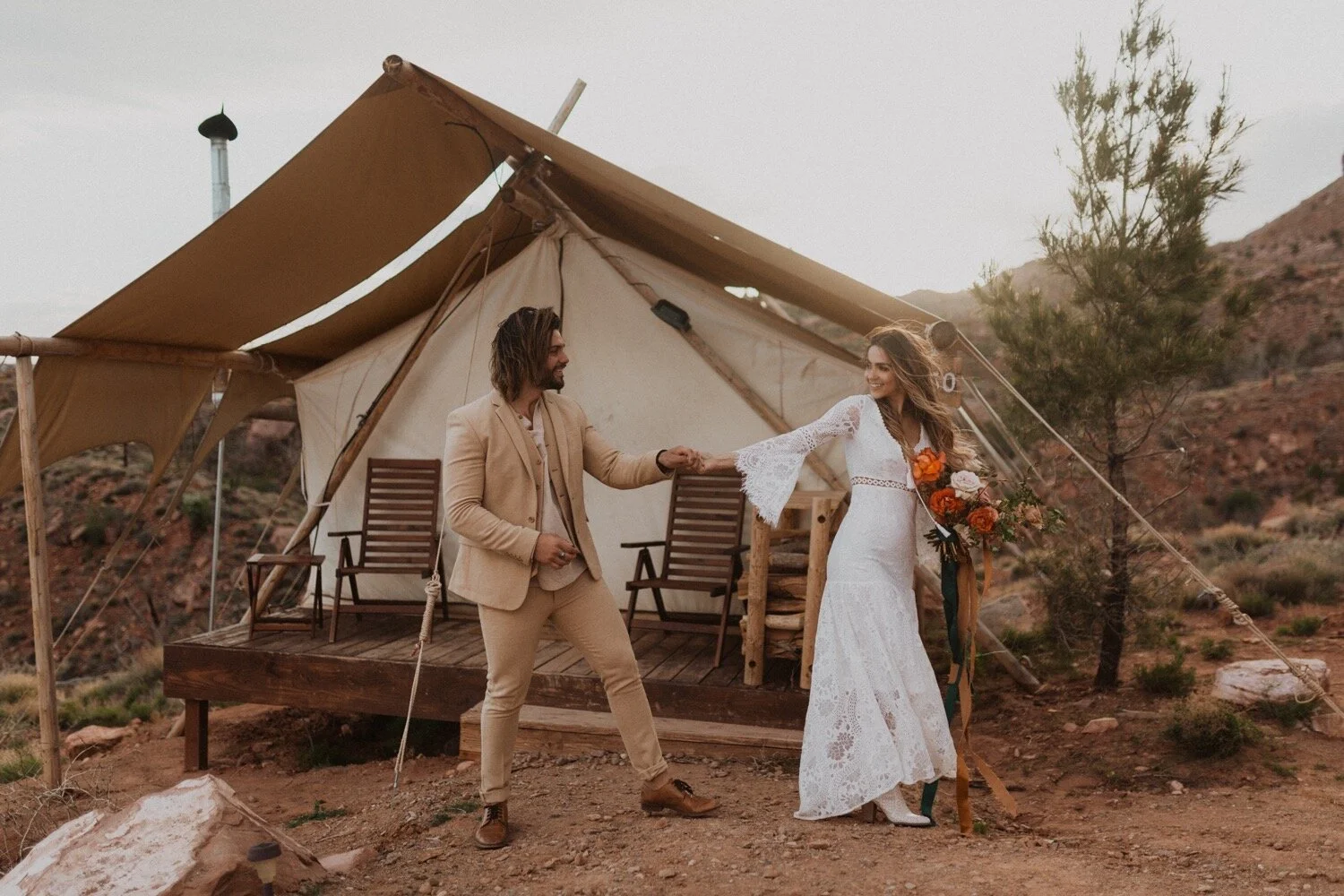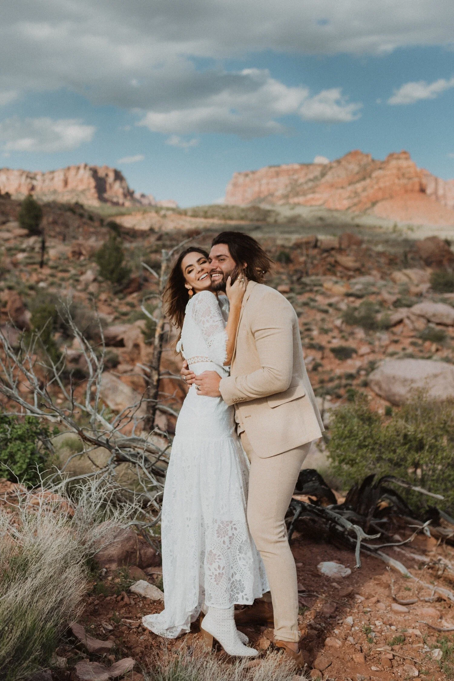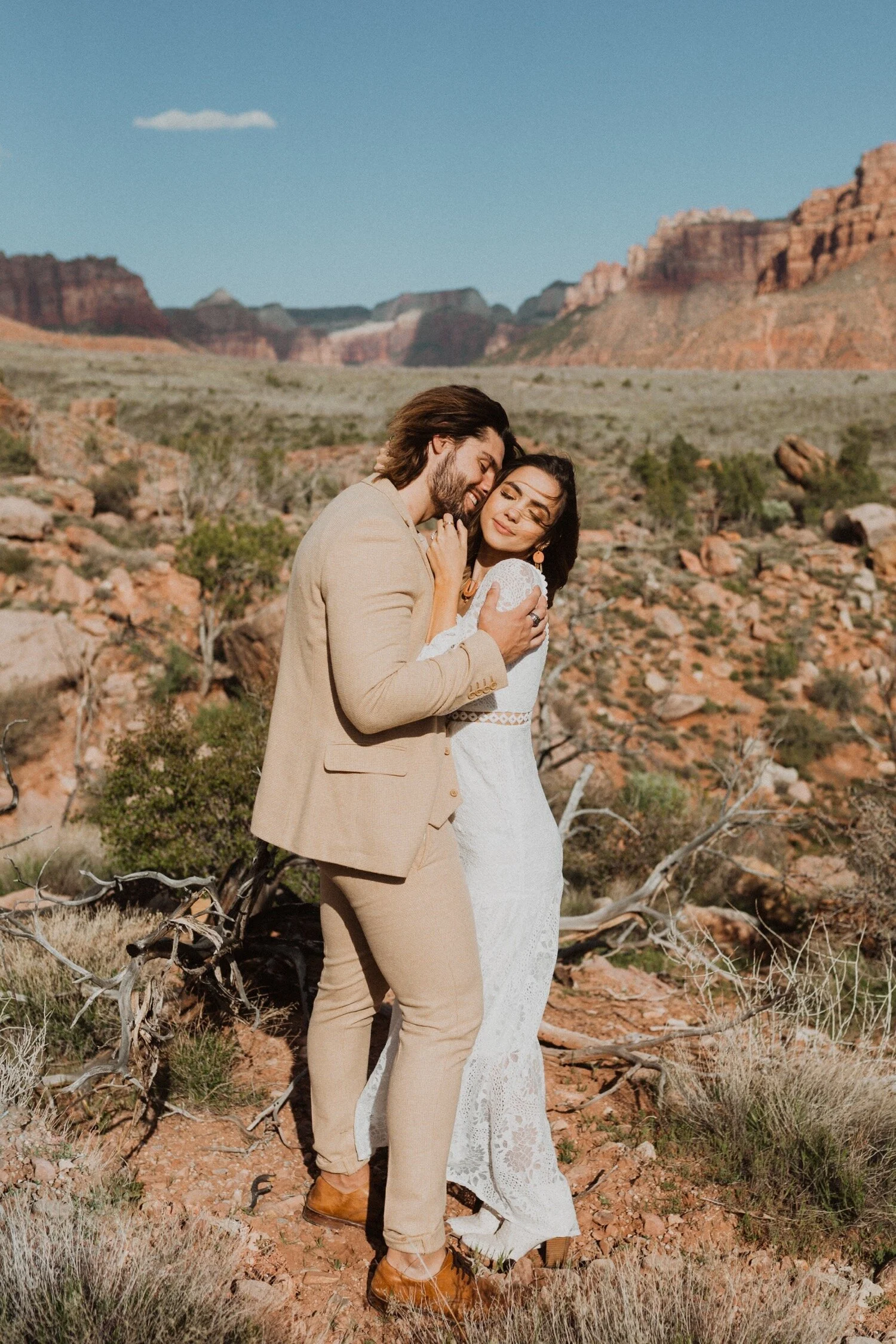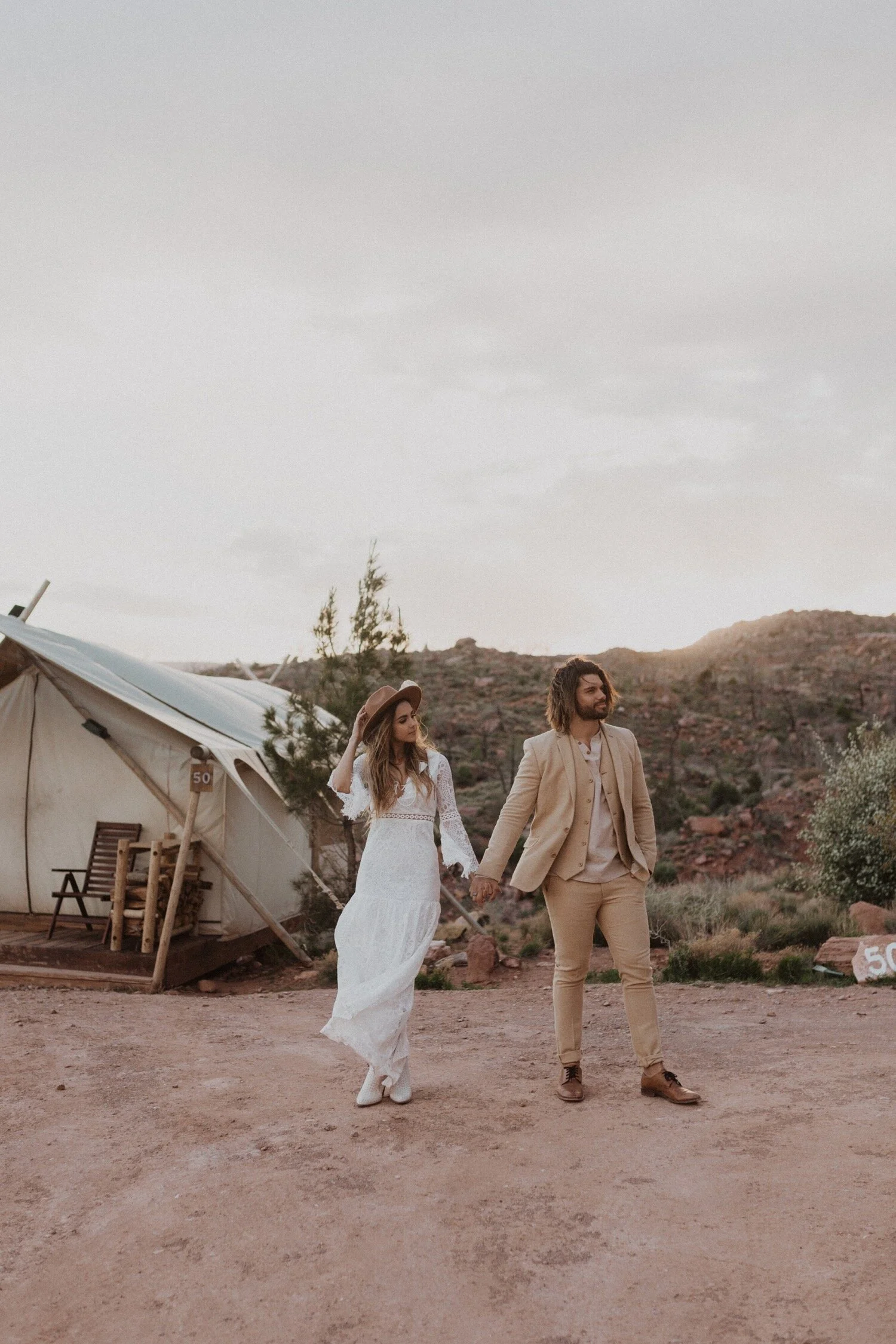 Okkkkkerrr. This under Canvas Zion National Park elopement made all my dreams come true. Can I even begin to explain the magic made in Utah with these two?! Meg and Trent are ahhhmazzzing and capturing their love in Utah was a dream come true. On the day of, the wind was blowing like 10000 miles per hour but that didn’t stop us. The team did such an amazing job setting everything up and making it stay! I mean good seed floral made the most beautiful pieces and kept them from blowing away!!! And Where can I even begin with Mae & Co with their design. Everything came together so perfectly and we were able to capture their love so effortlessly. These two had chemistry that just spilled all over and it was such a dream to capture them.