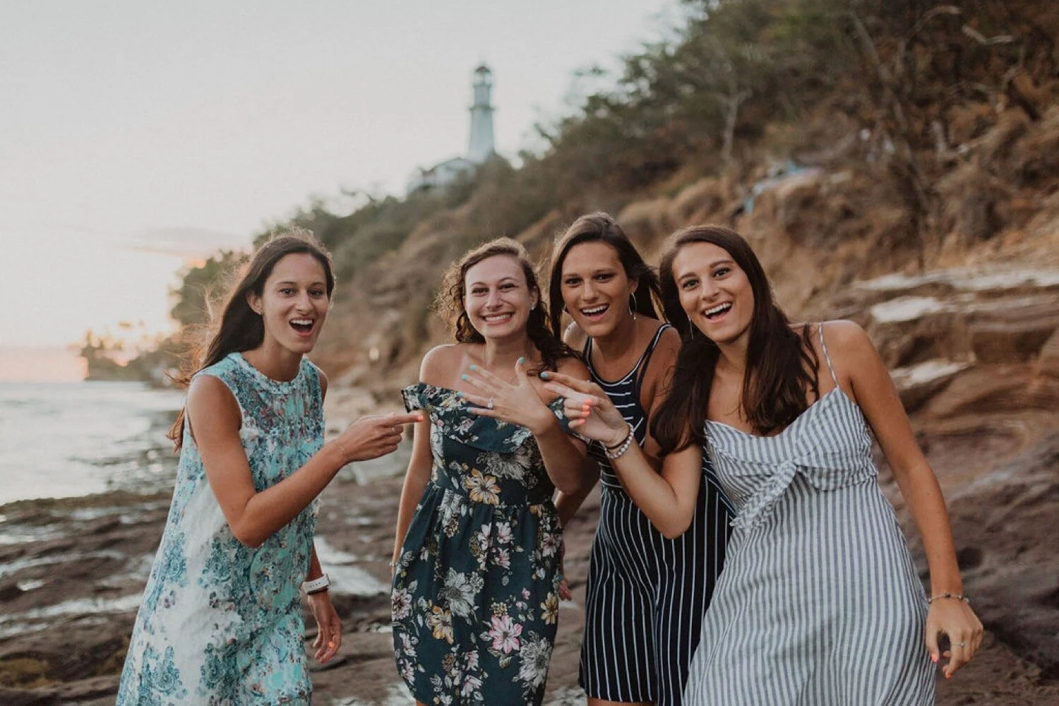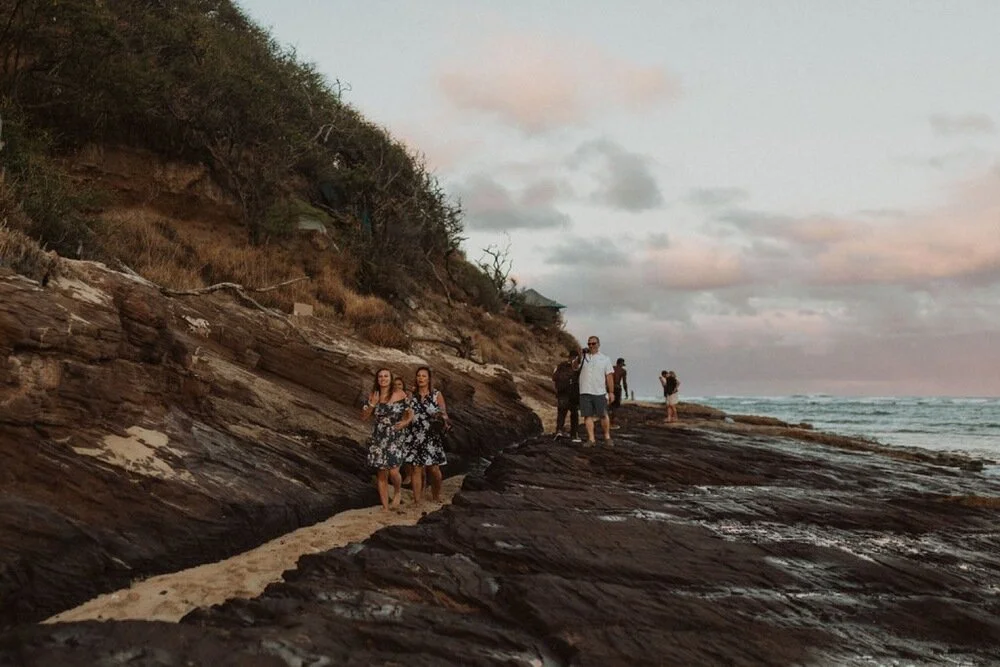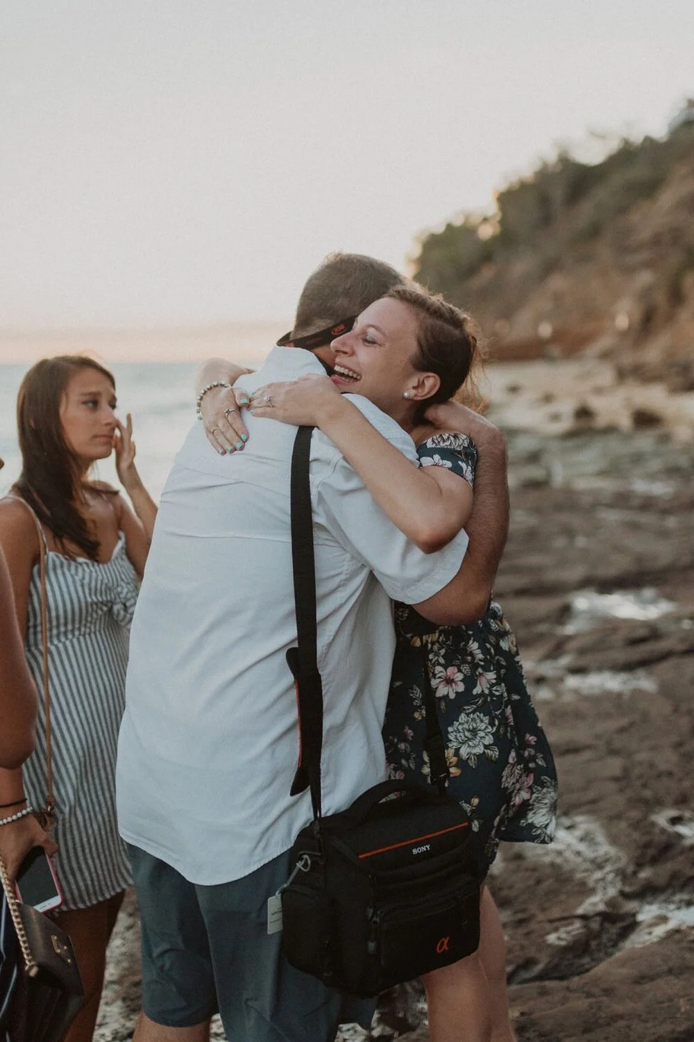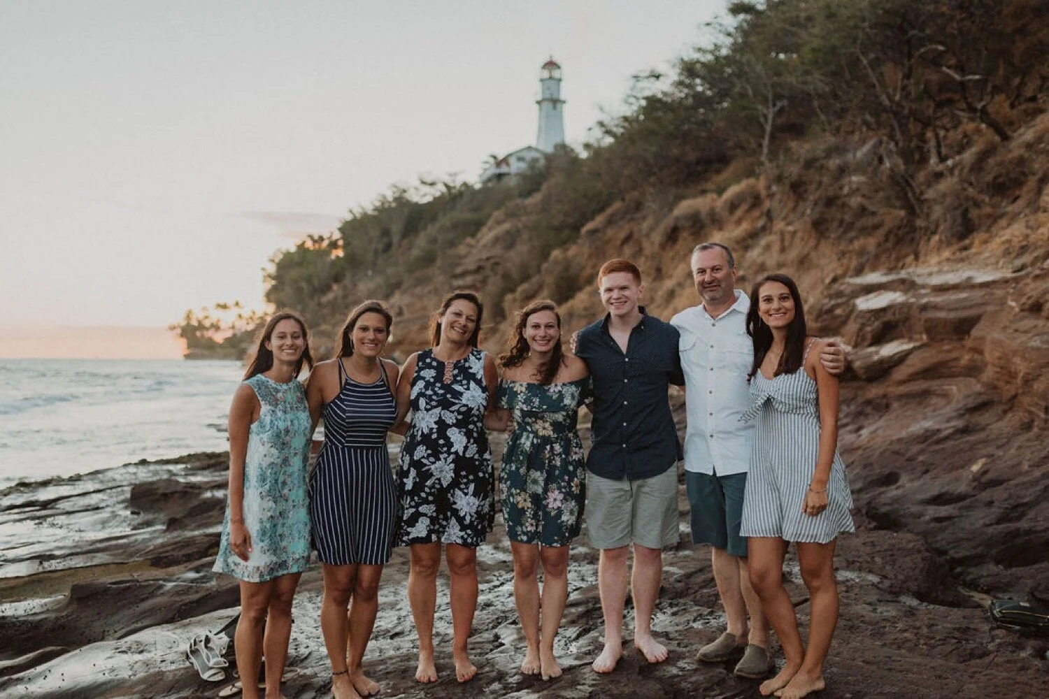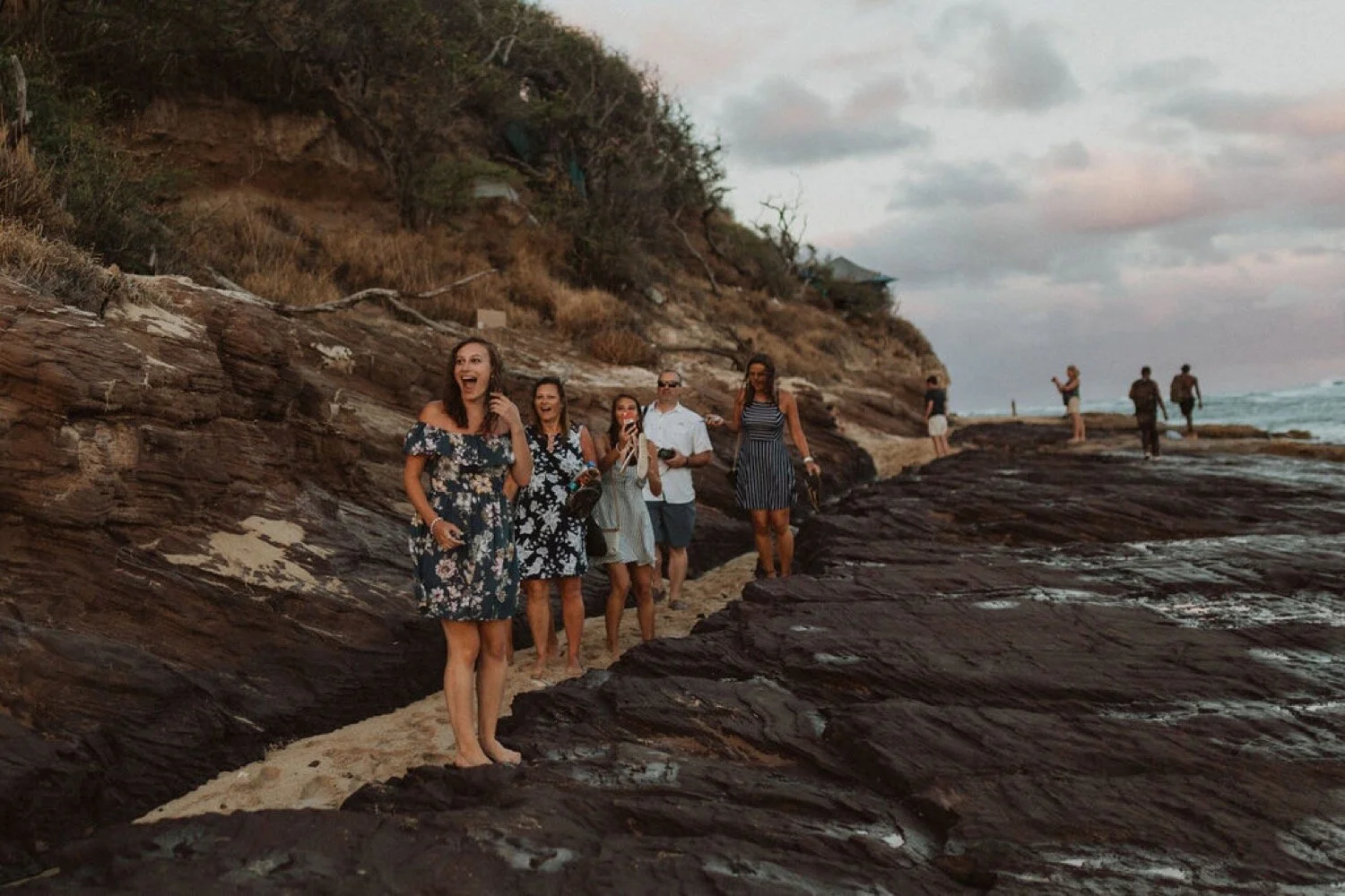 Kara told the bride how they were going to go on a little hike and how they had hired a photographer to take some family pictures. I had hid Bryan, asked them to go and walk out towards the lighthouse and the family slowly stayed behind. Bryan then popped out and the bride was dead. This surprise diamond head beach proposal was one I will never, forget. She was so happy and so surprised. this beach was the perfect spot for this proposal and it could not have turned out any more beautiful!