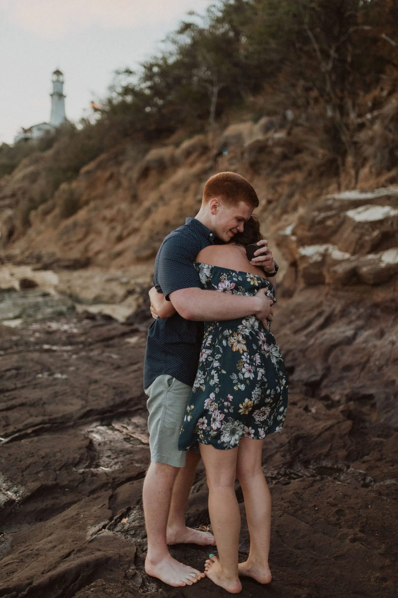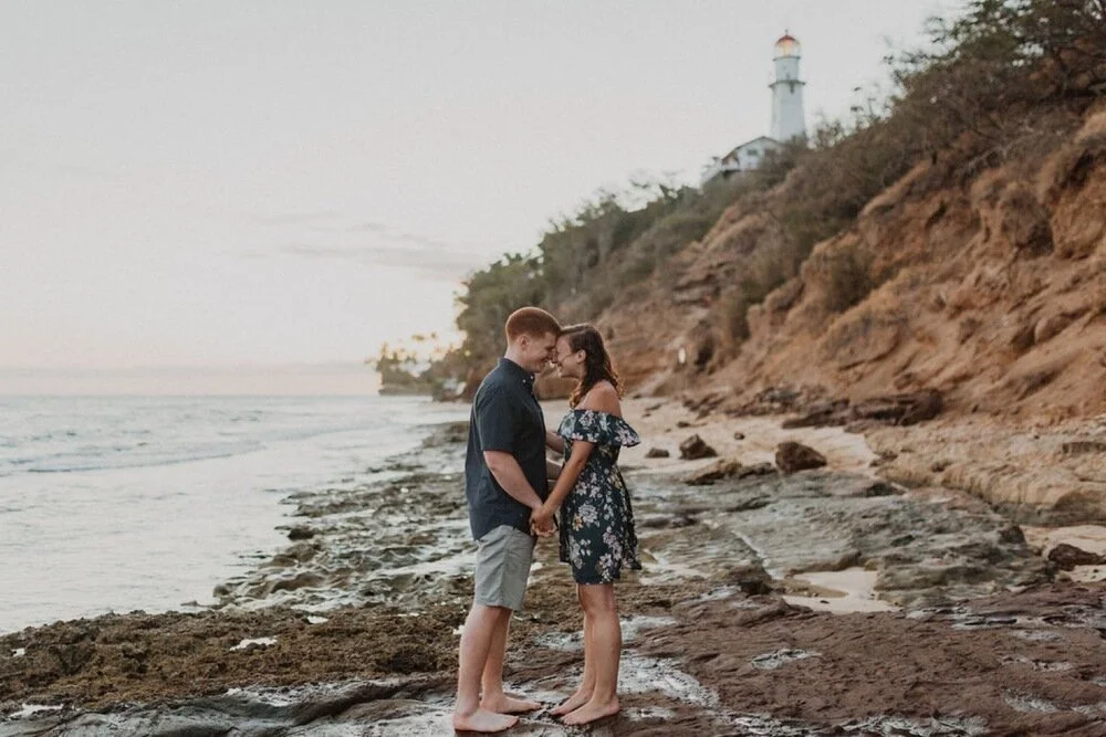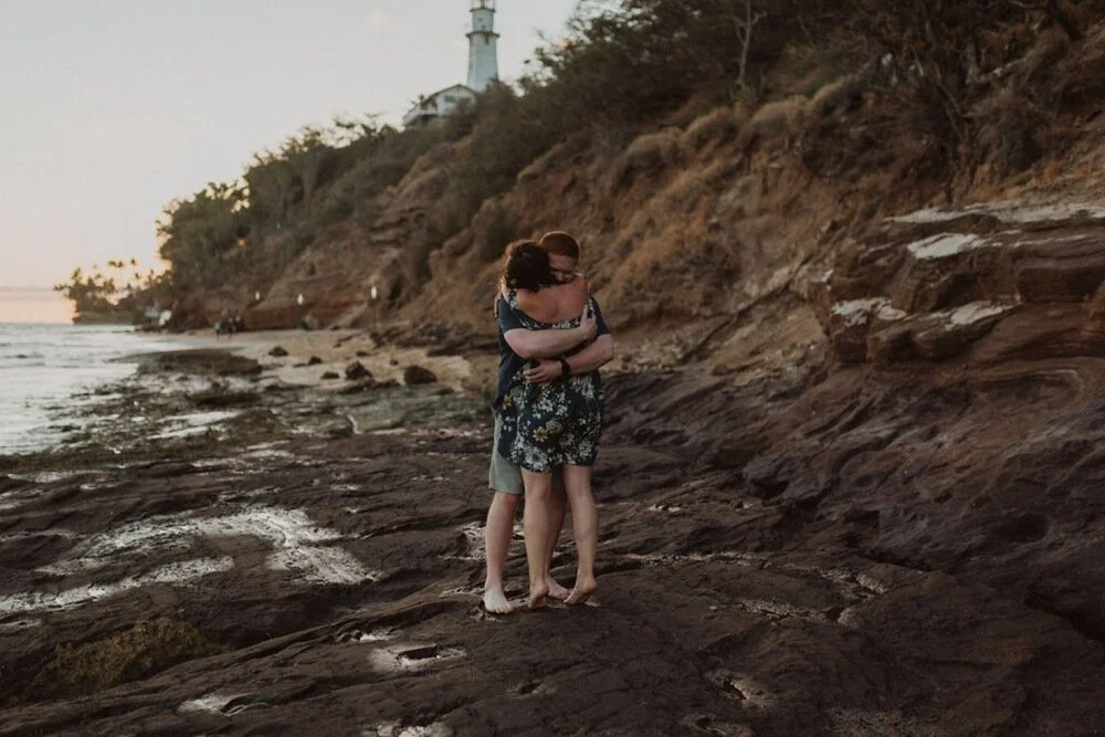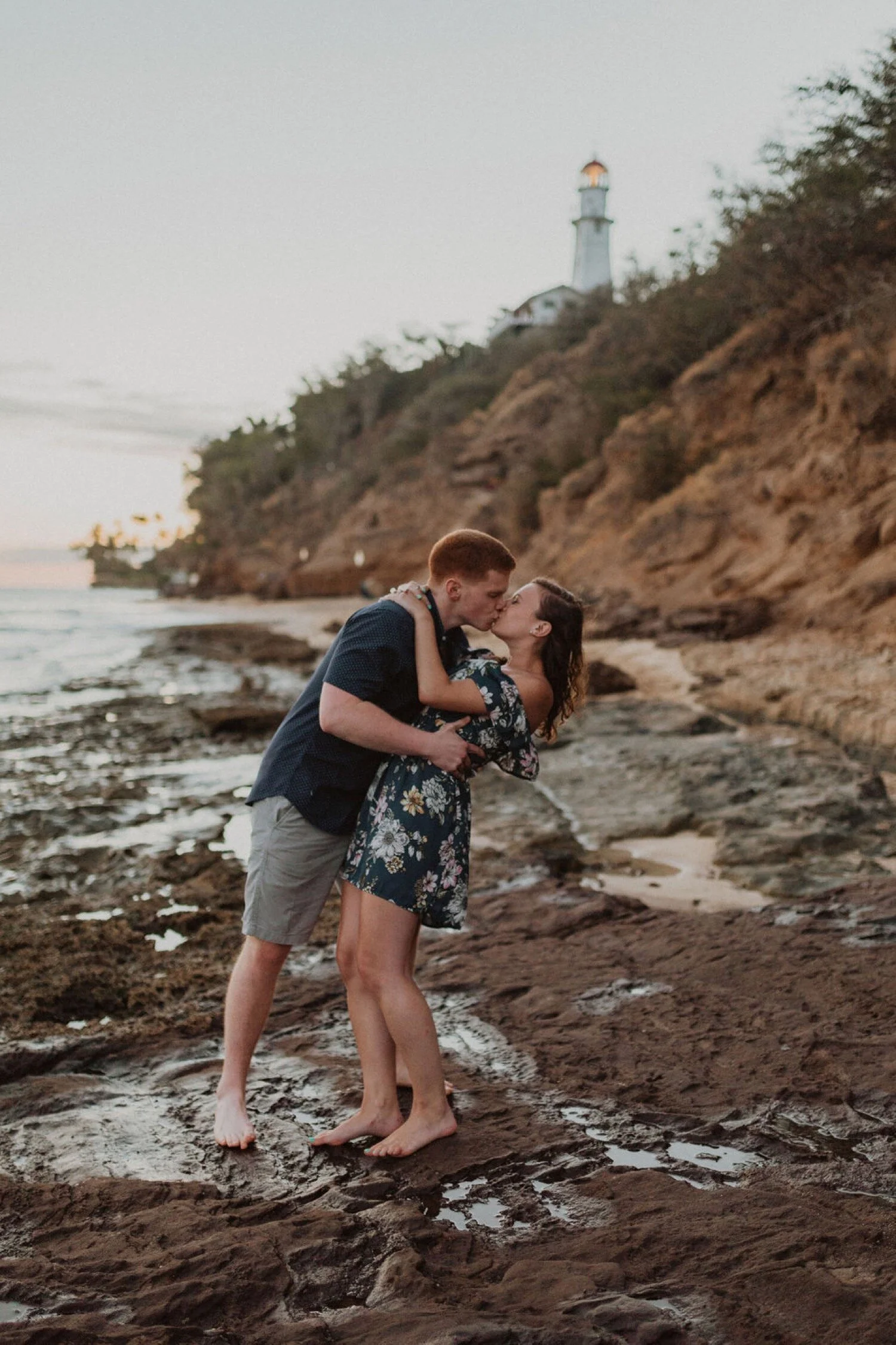 Okayy where to start with this gorgeous diamond head beach proposal. Bryan reached out to me months before coming to Hawaii telling me that he wanted to propose by the Diamond Head Beach lighthouse. We set everything up and he shared how his Fiance was on vacation with her family and that he was going to fly all the way from the mid-west without her knowing to propose. He flew all day, ubered to the location and we hiked down together.