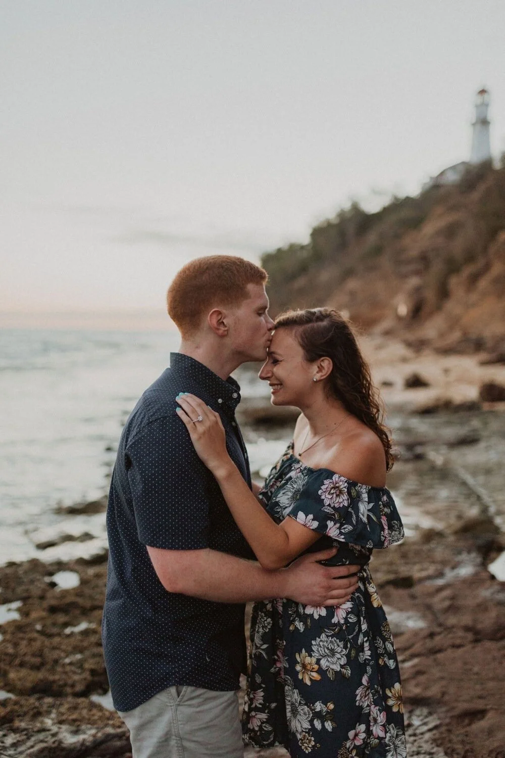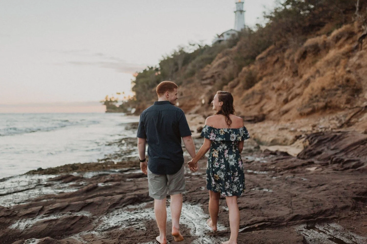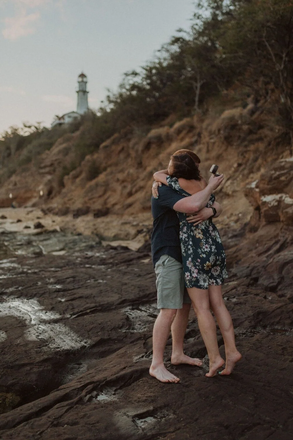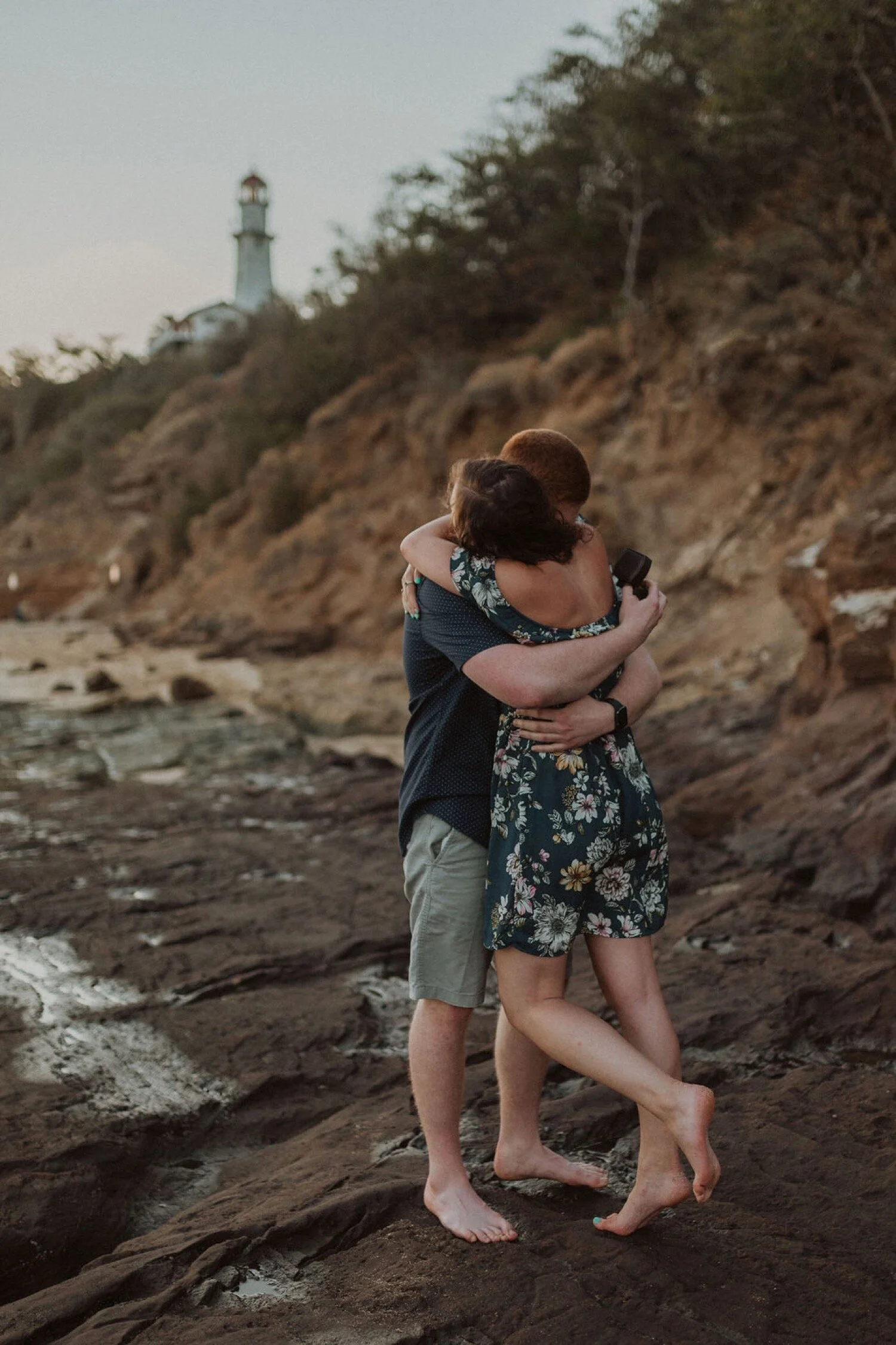 Okayy where to start with this gorgeous diamond head beach proposal. Bryan reached out to me months before coming to Hawaii telling me that he wanted to propose by the Diamond Head Beach lighthouse. We set everything up and he shared how his Fiance was on vacation with her family and that he was going to fly all the way from the mid-west without her knowing to propose. He flew all day, ubered to the location and we hiked down together.