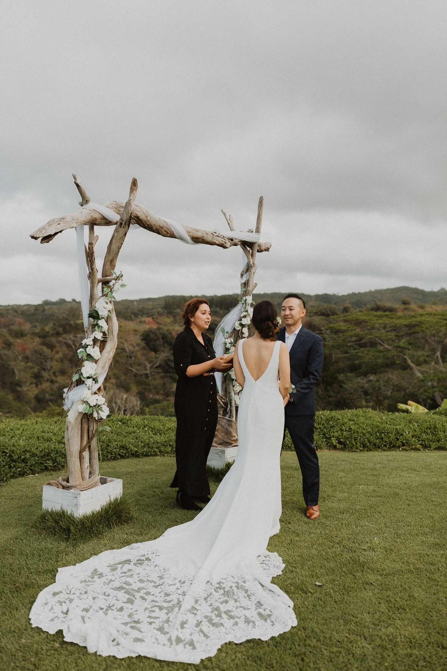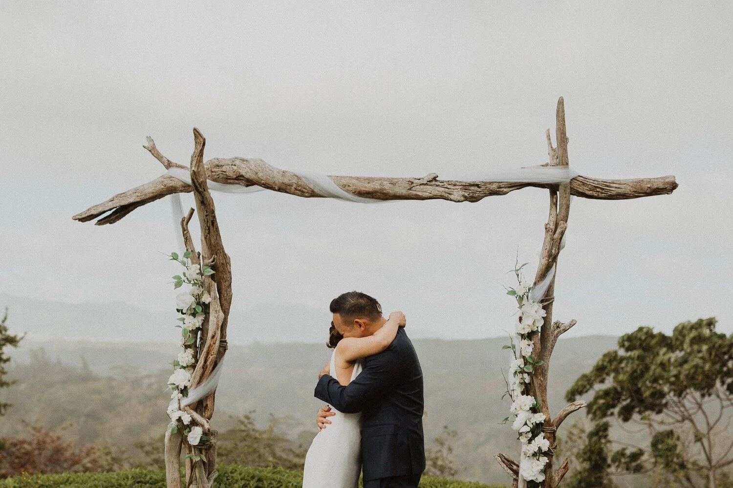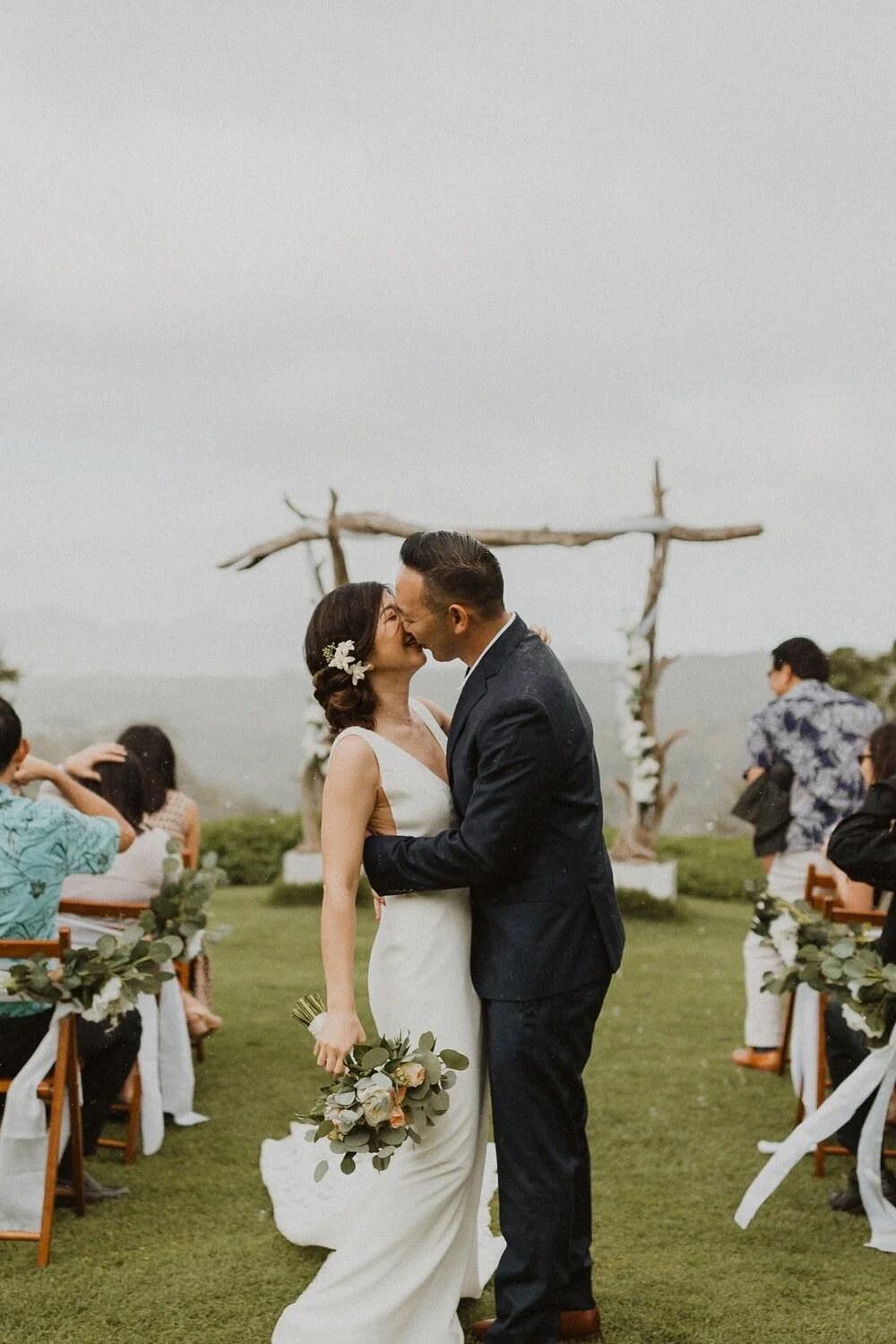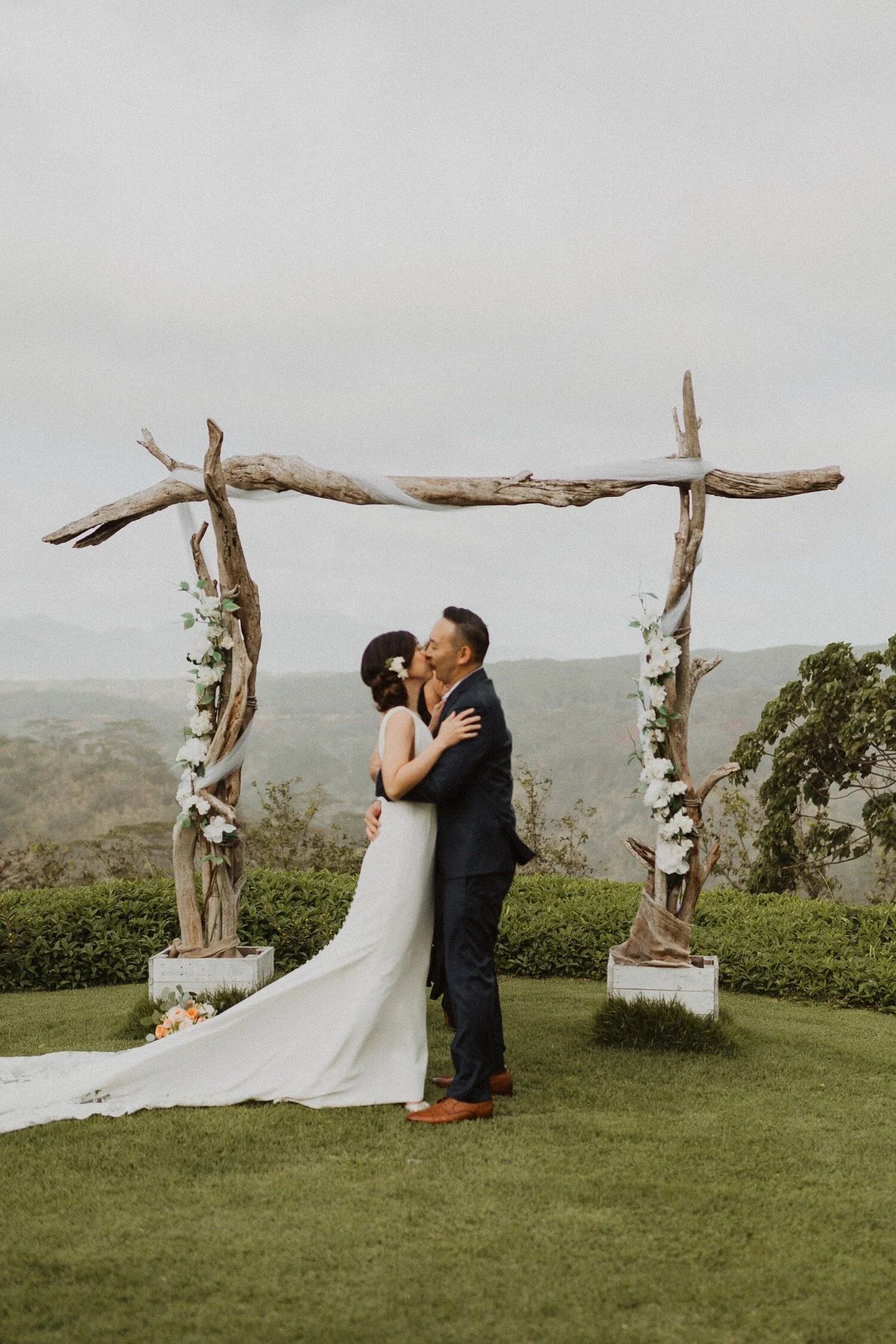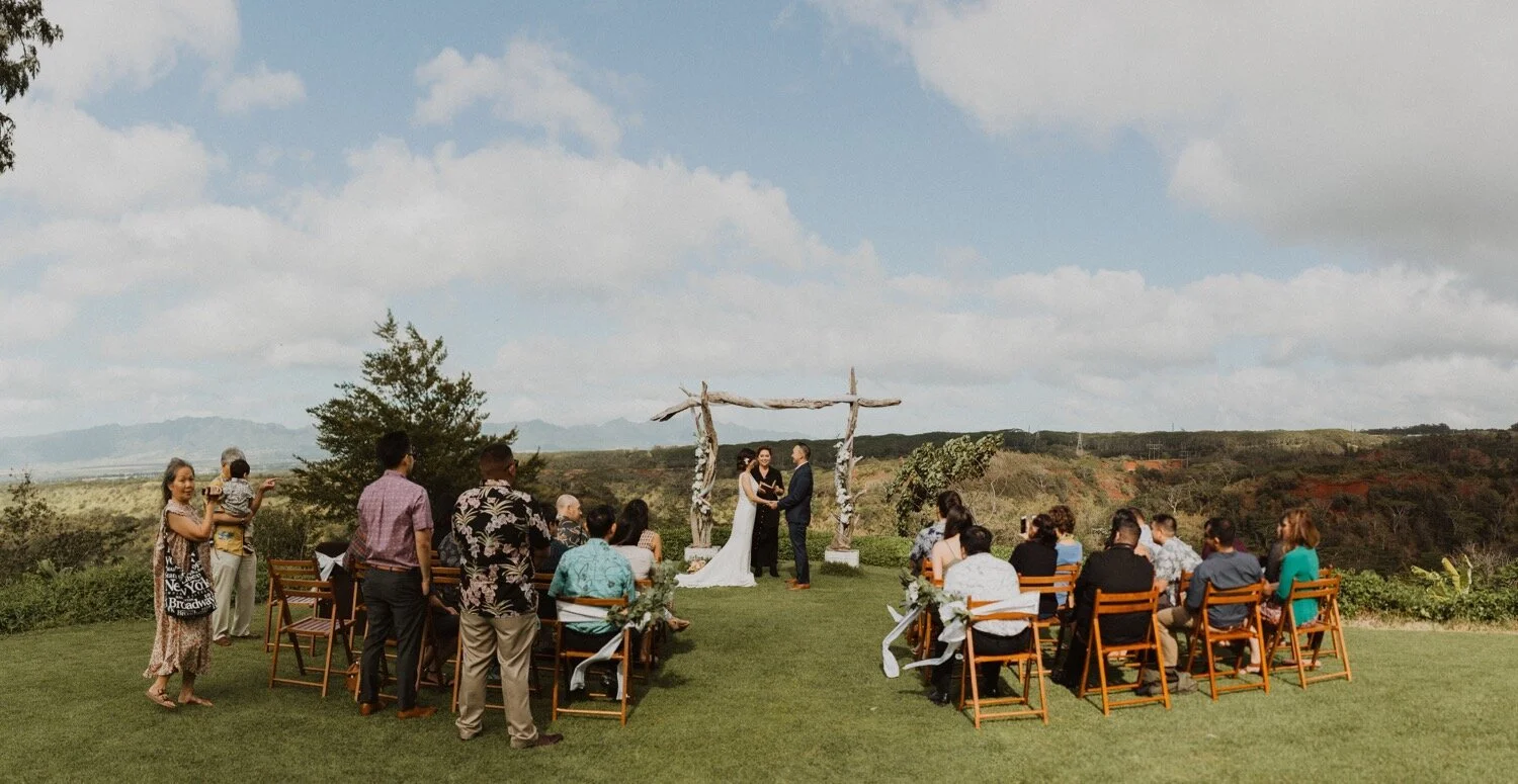 They started the day off with a morning ceremony at Manana Hills Estate by Hawaii vista weddings. It started to rain right before the ceremony and stopped so we could do a first look. the wind was blowing a thousand miles an hour but the show went on and it was such a memorable day. Their ceremony was so beautiful and the moment they kissed, it started to downpour. this intimate Honolulu Hawaii wedding was full of wind, rain, and so much love.