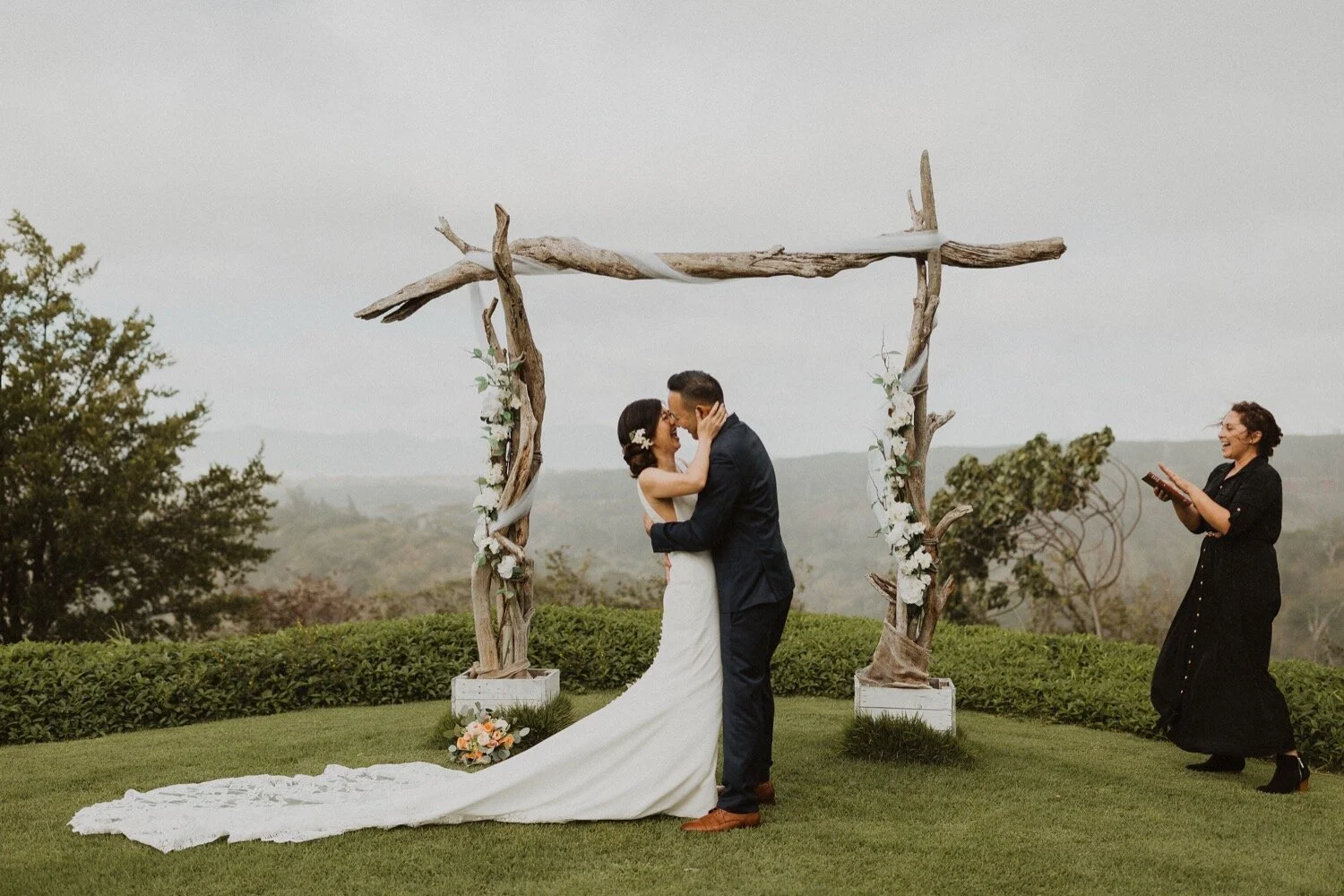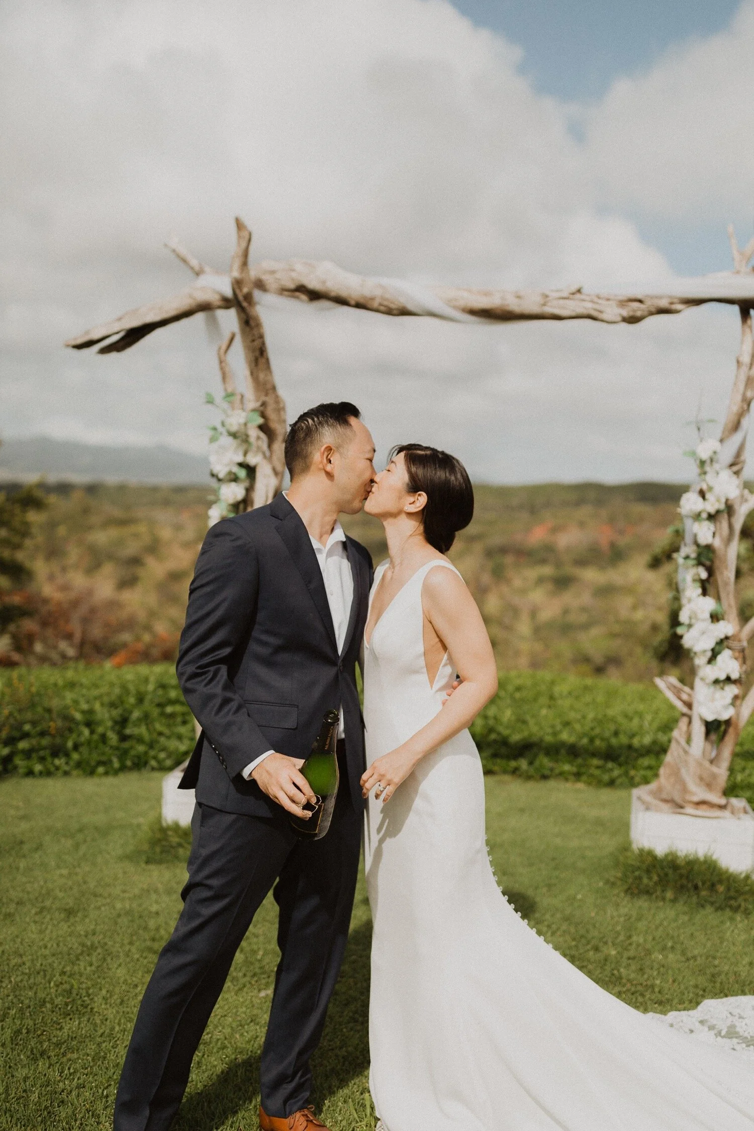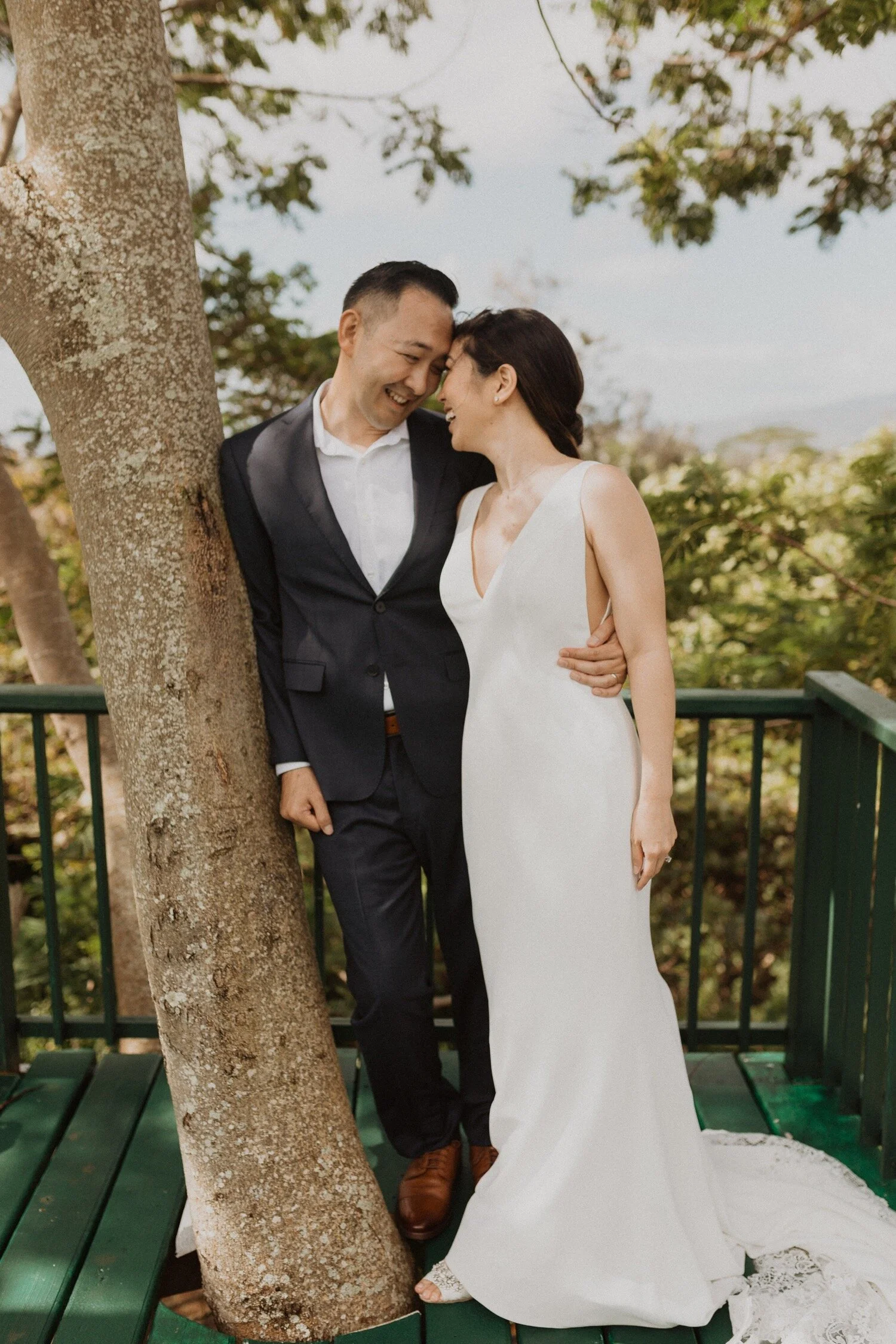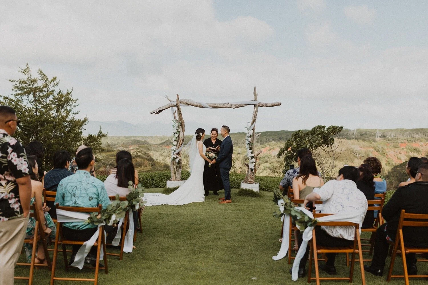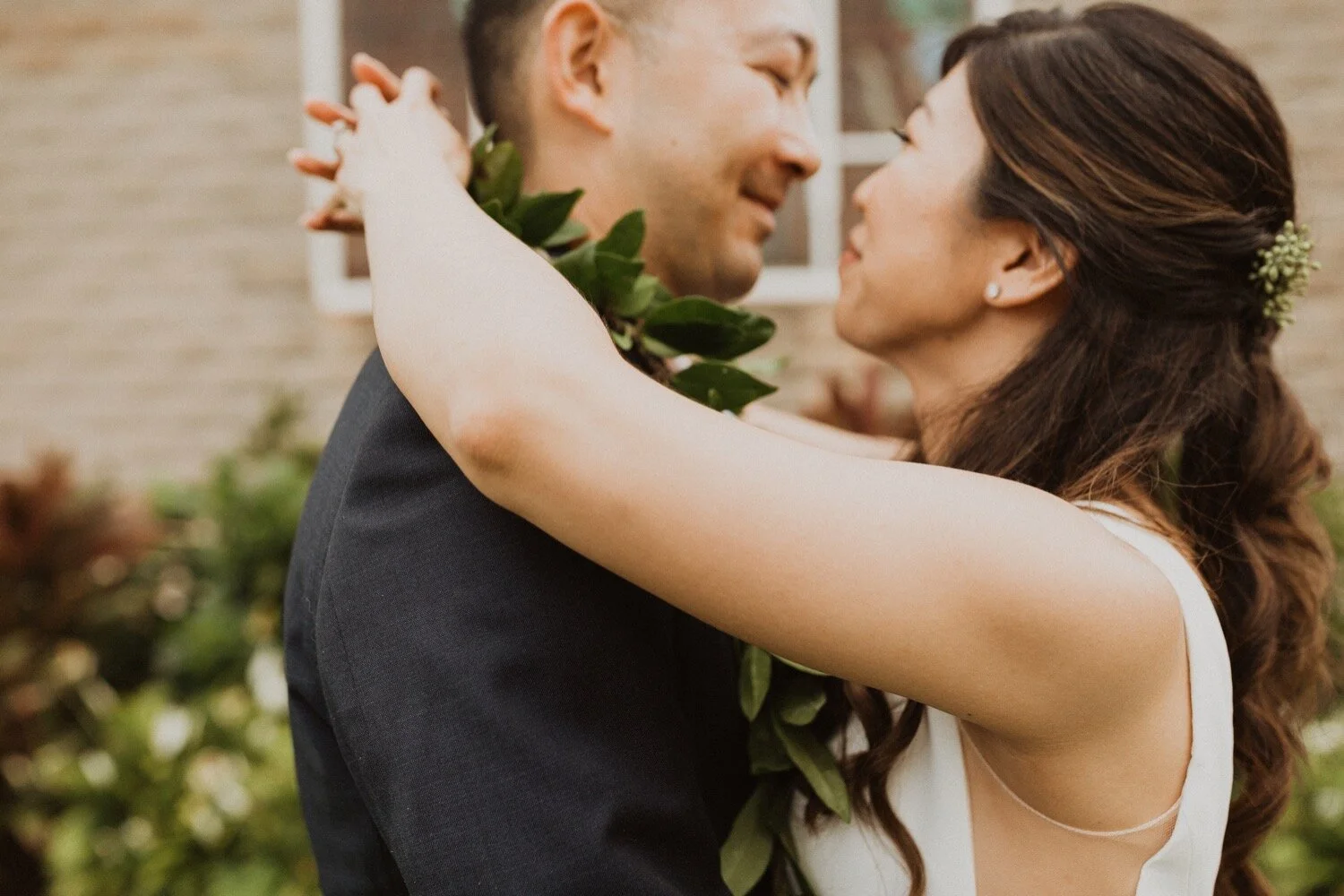 They started the day off with a morning ceremony at Manana Hills Estate by Hawaii vista weddings. It started to rain right before the ceremony and stopped so we could do a first look. the wind was blowing a thousand miles an hour but the show went on and it was such a memorable day. Their ceremony was so beautiful and the moment they kissed, it started to downpour. this intimate Honolulu Hawaii wedding was full of wind, rain, and so much love.