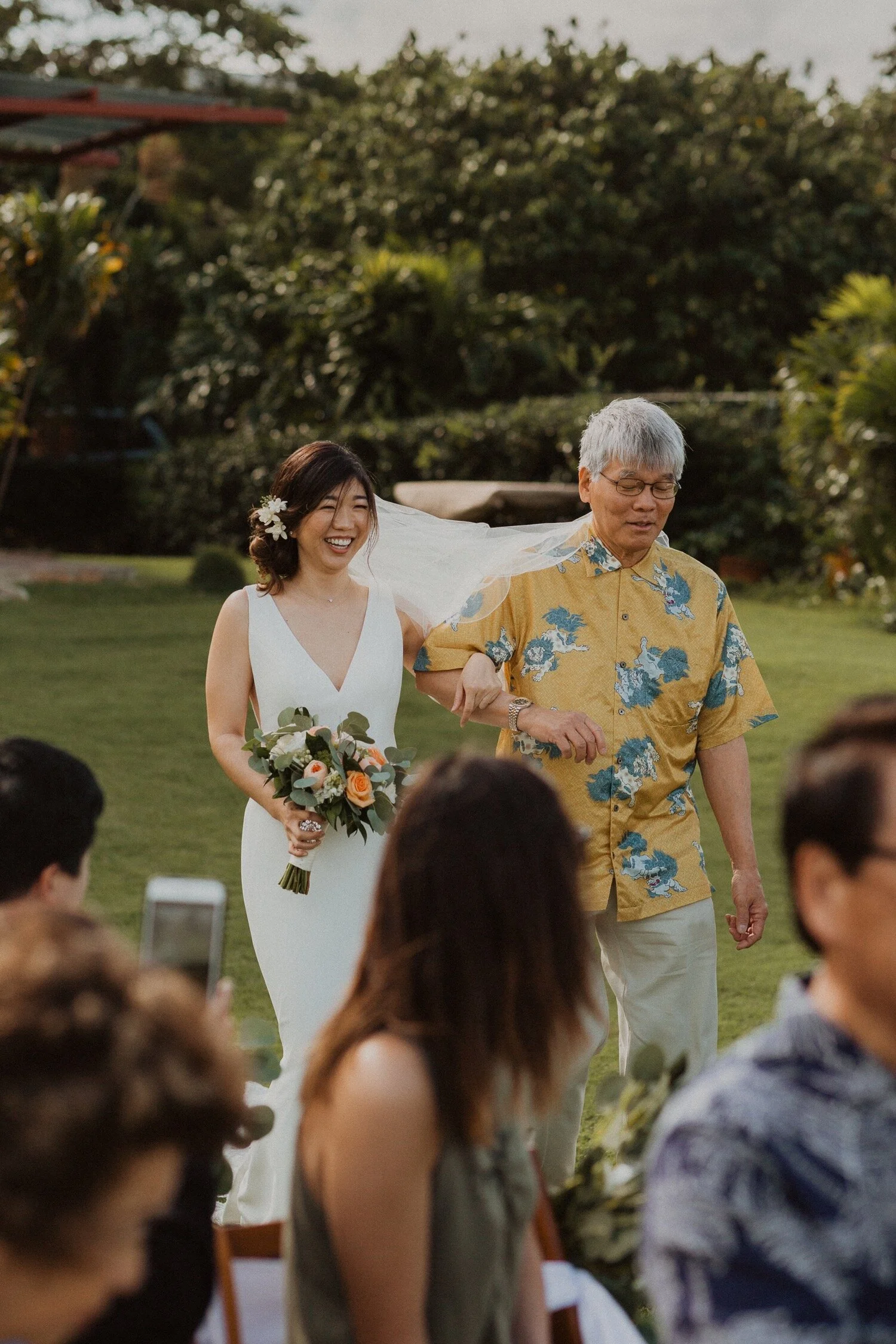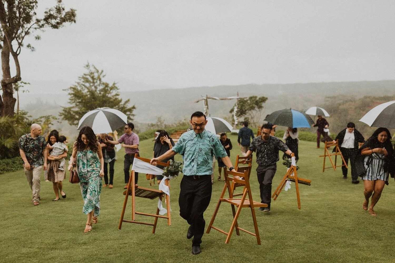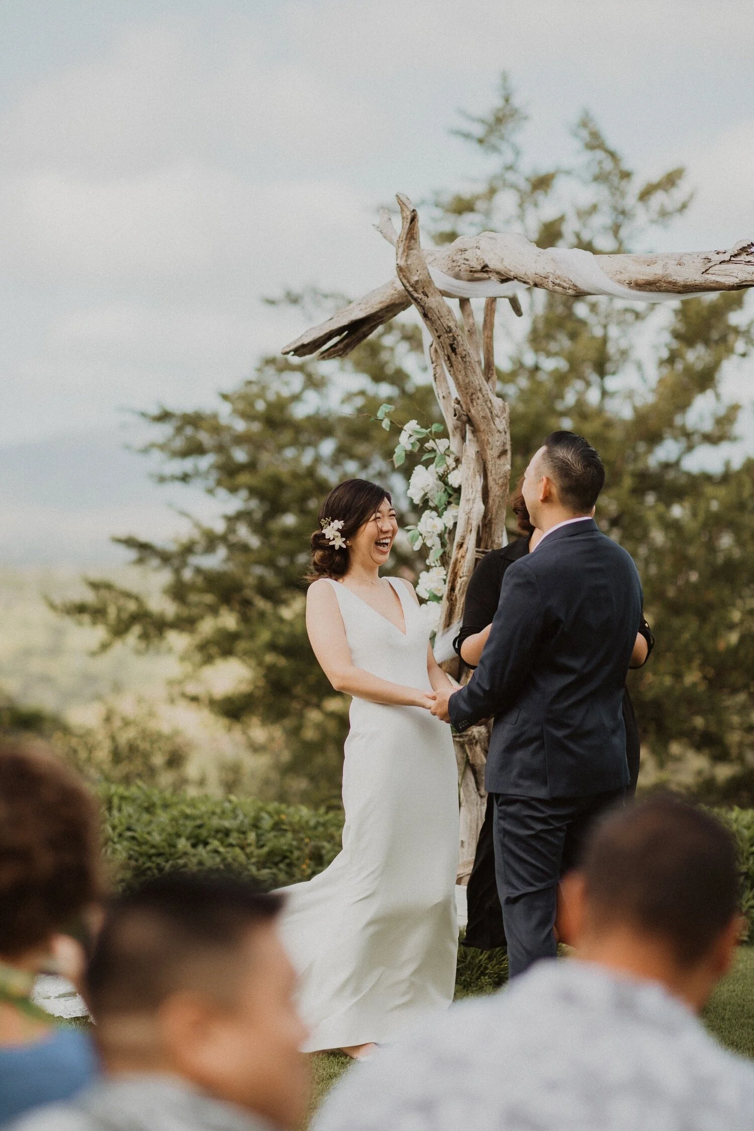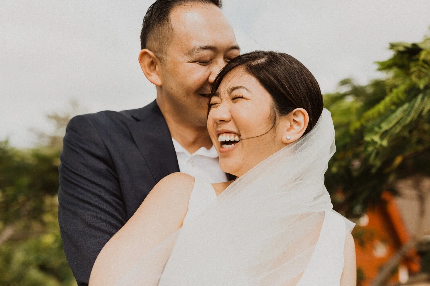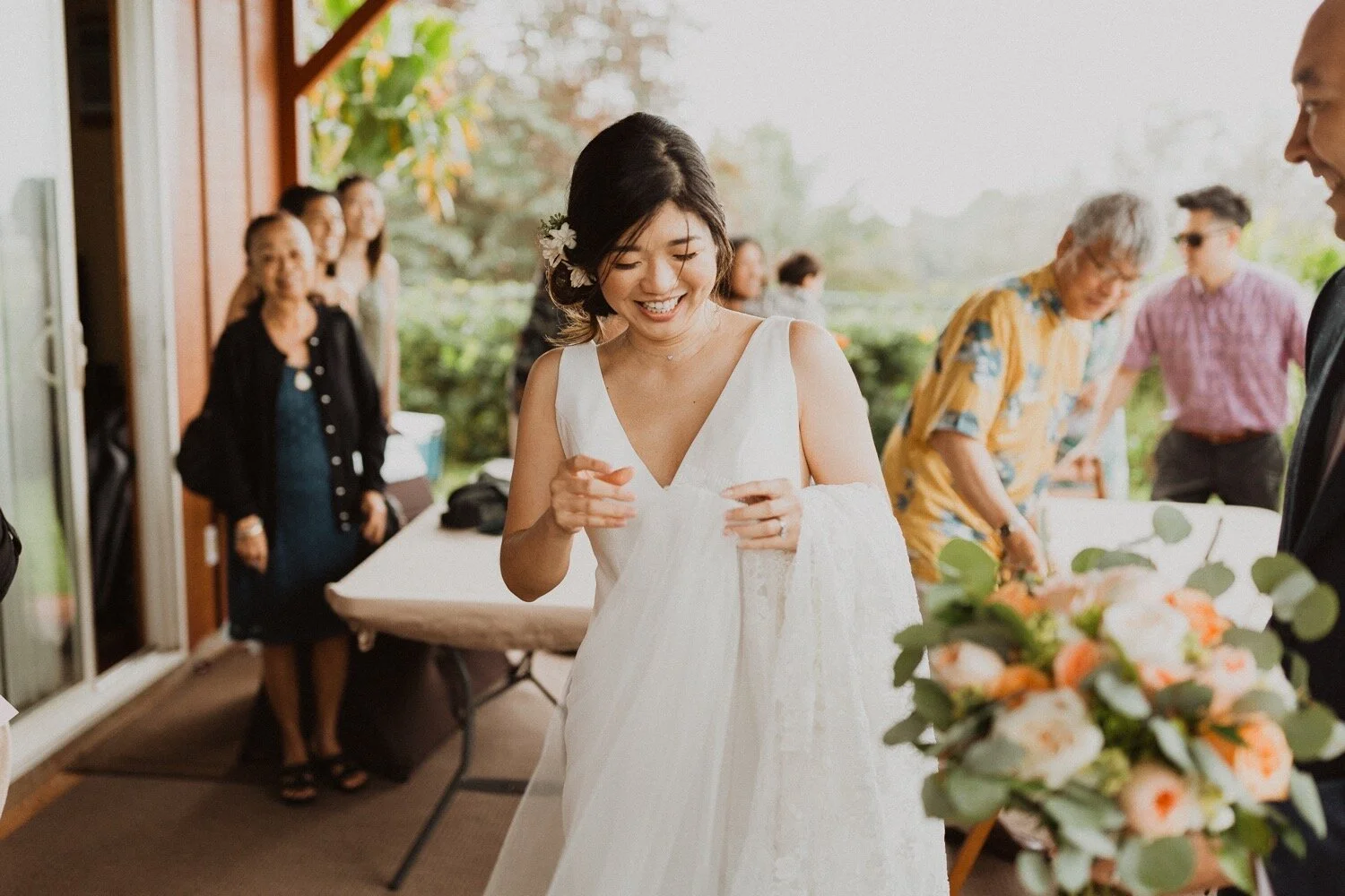 They started the day off with a morning ceremony at Manana Hills Estate by Hawaii vista weddings. It started to rain right before the ceremony and stopped so we could do a first look. the wind was blowing a thousand miles an hour but the show went on and it was such a memorable day. Their ceremony was so beautiful and the moment they kissed, it started to downpour. this intimate Honolulu Hawaii wedding was full of wind, rain, and so much love.