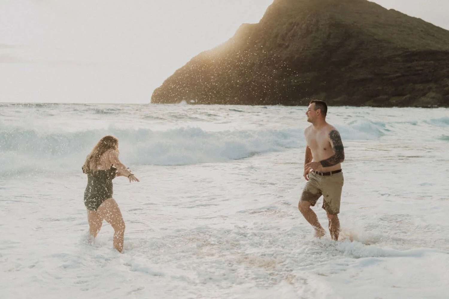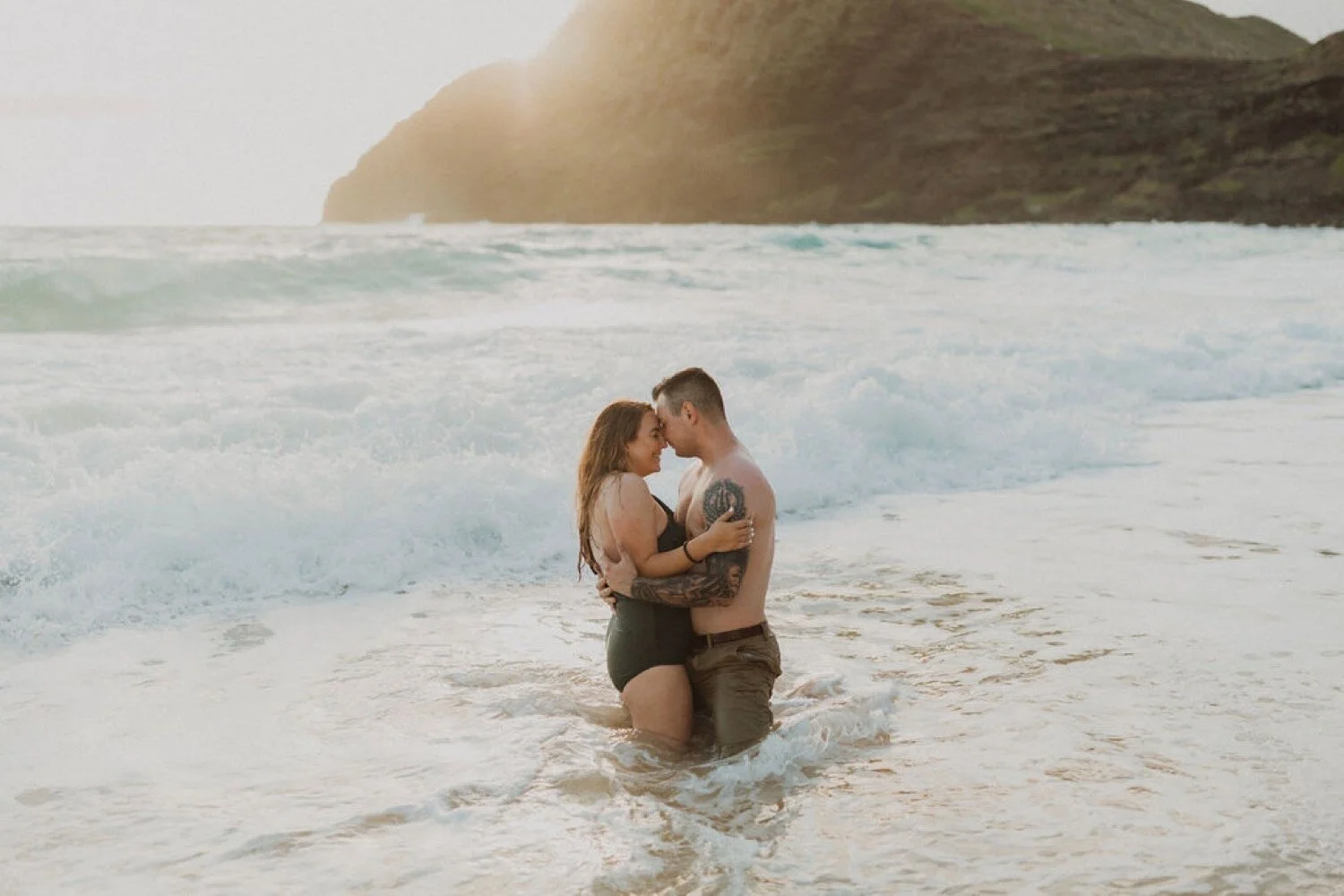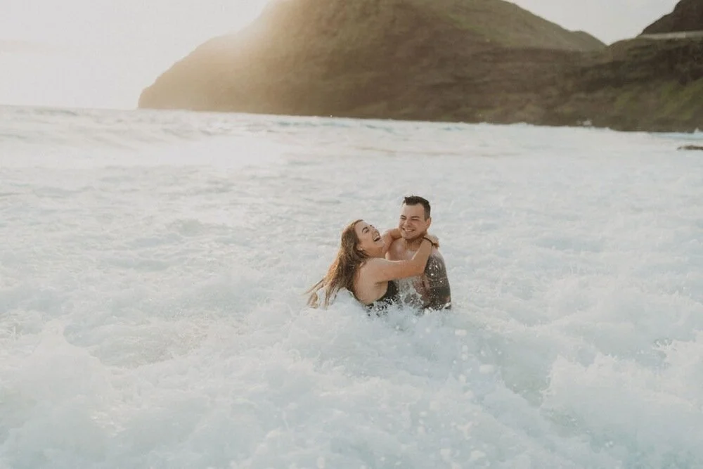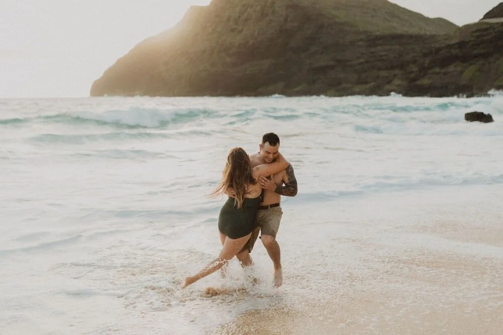 This Makapuu Beach ocean couples session was a morning unlike any other. Kayla and Truth came to Oahu for a late honeymoon and were wanting to get photos done celebrating their anniversary. Kayla gave me full creative control when deciding where to do the shoot, so I thought that an early sunrise morning on the east side would be the perfect way to celebrate. The sunrise that morning was gorgeous and the shoot could not have gone any better. So happy i was able to meet these two lovebirds and photograph their love.