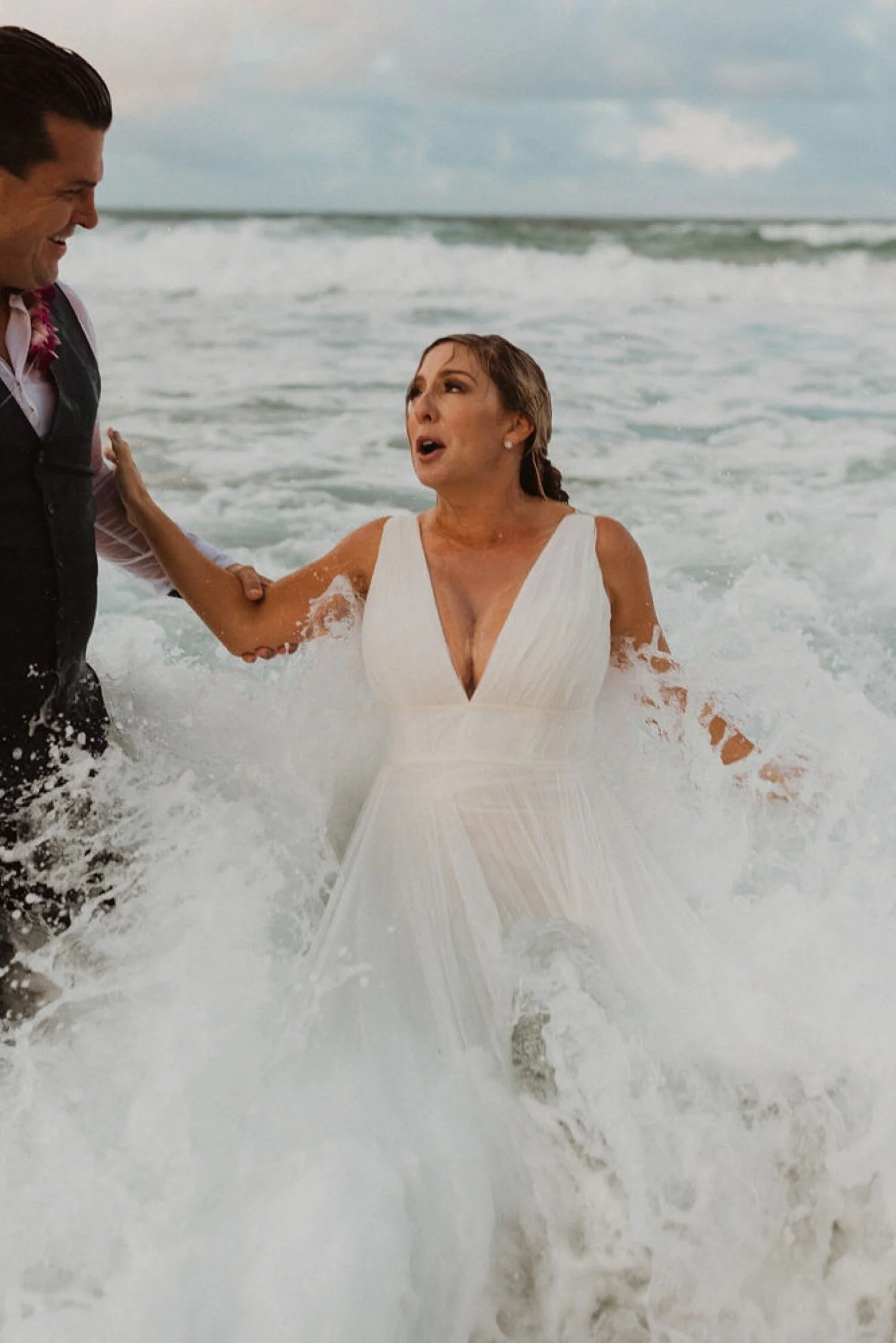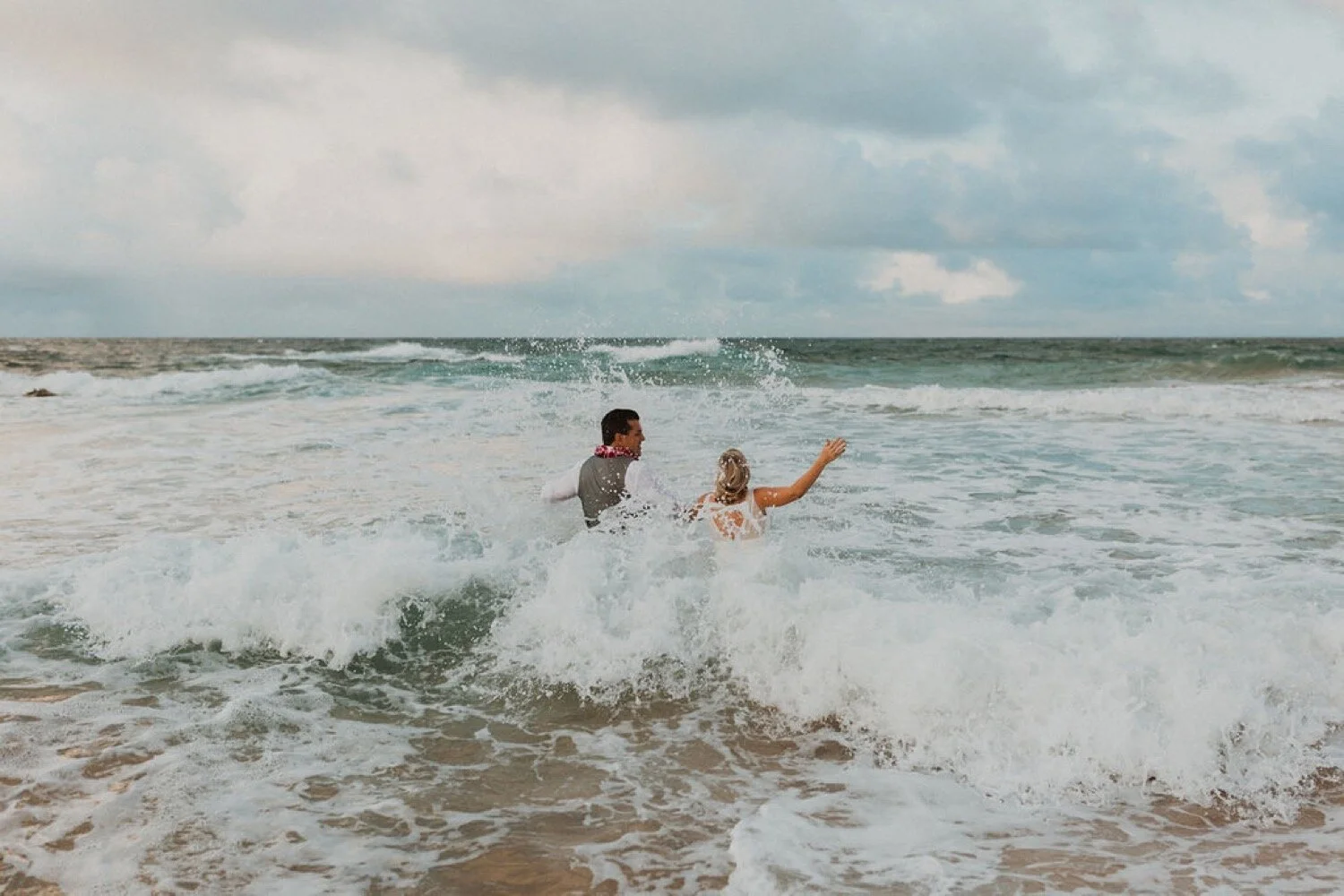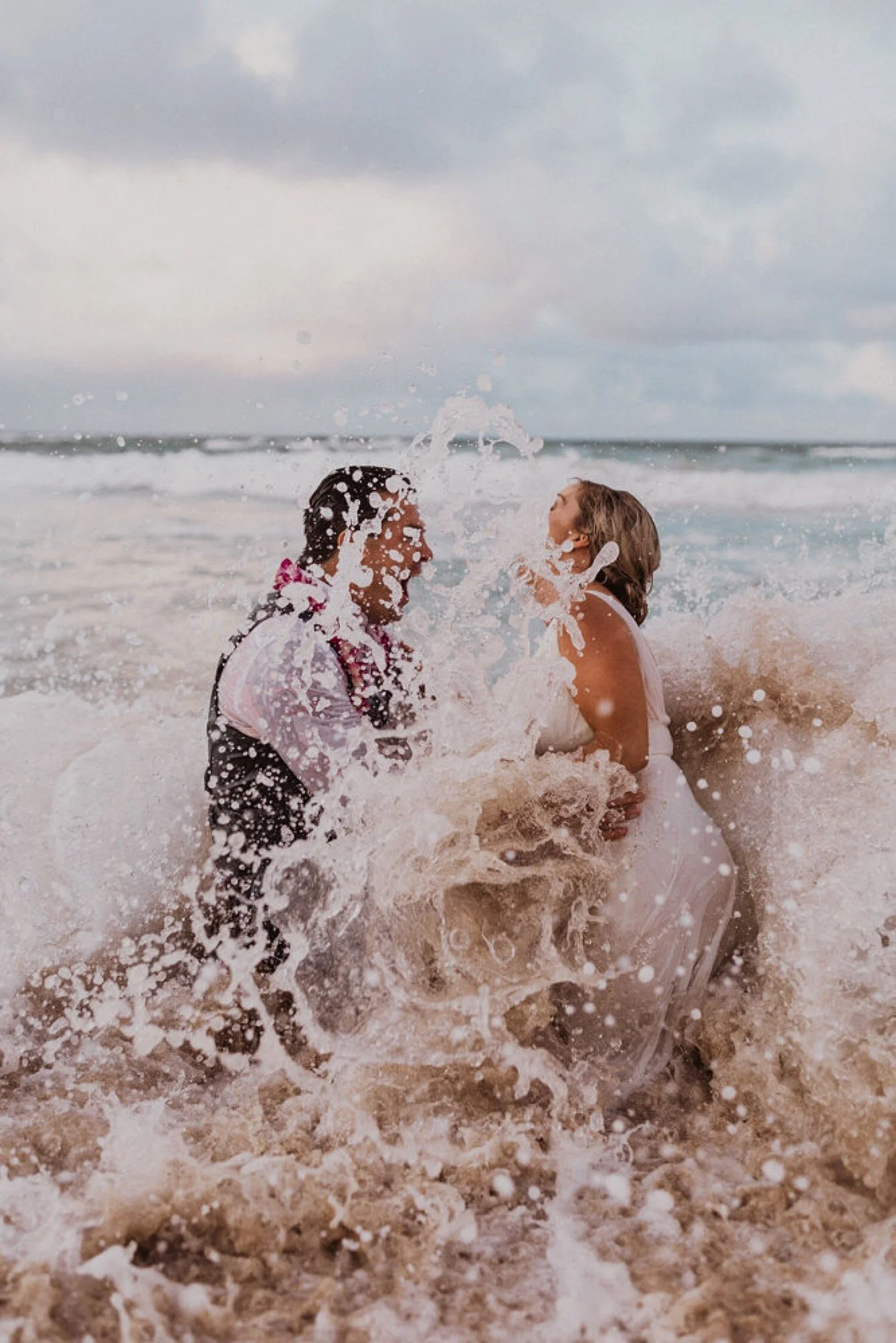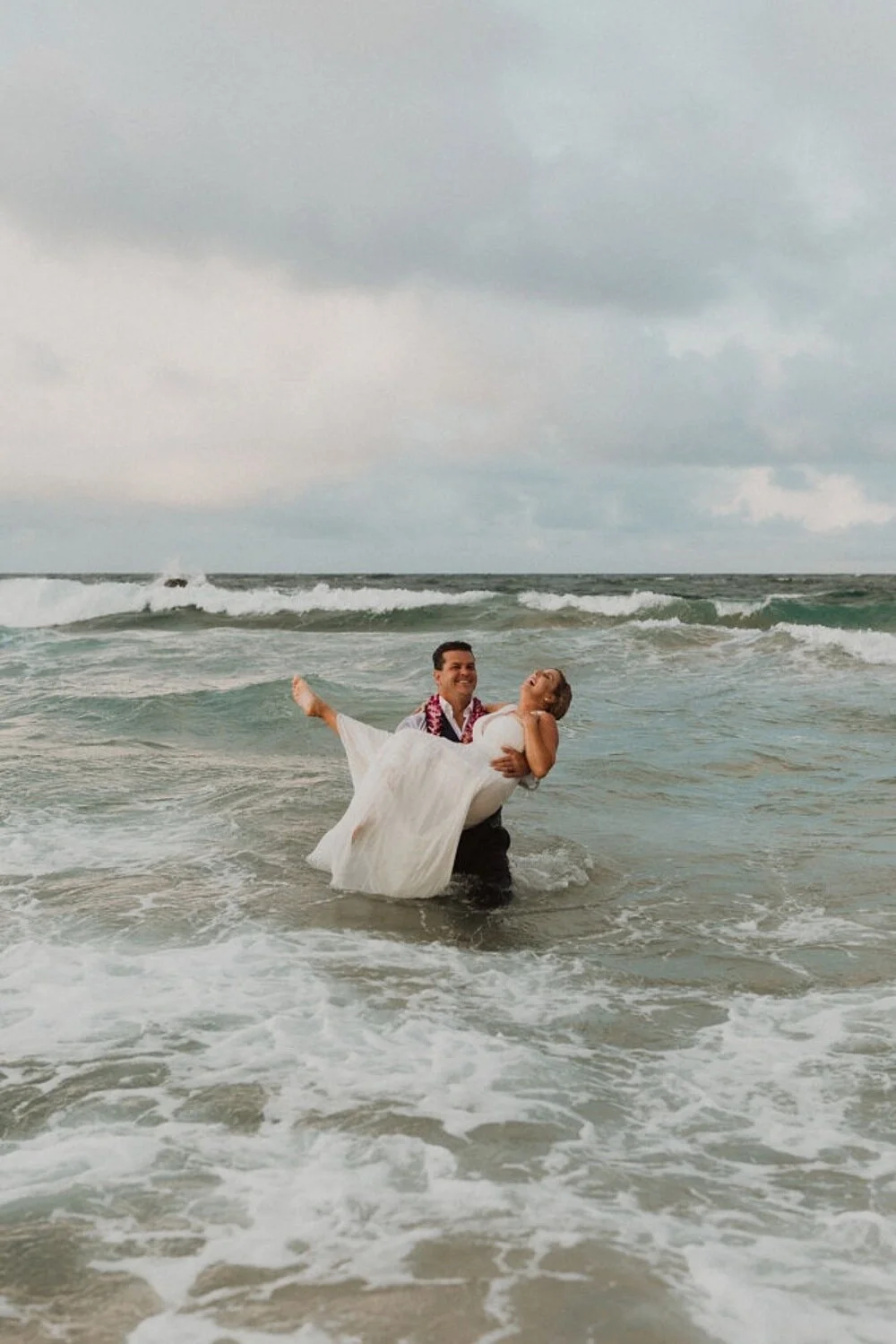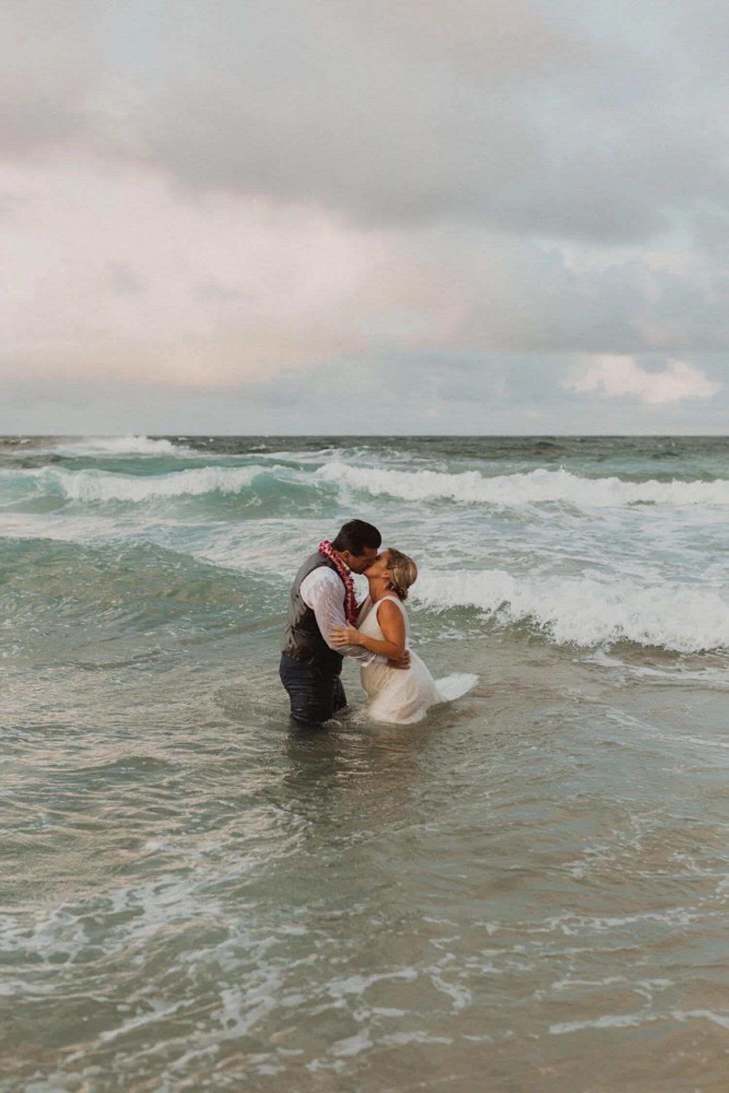 Finally, we then stumbled upon Ironwoods Beach where we decided to do the ceremony. The wind was blowing 1000 mph but that didn’t stop them one bit. When we had finished the ceremony, they last minute decided after portraits that they wanted to jump in the water. So, they went all in and decided to trash the dress. It was such a beautiful moment.