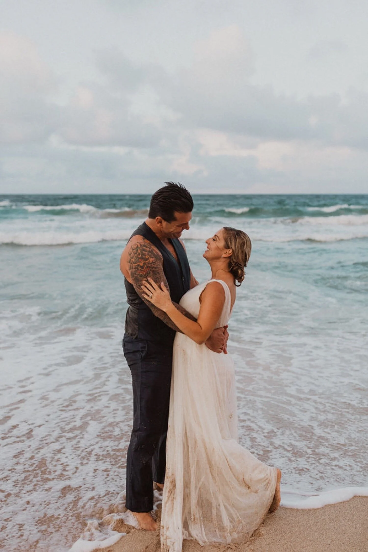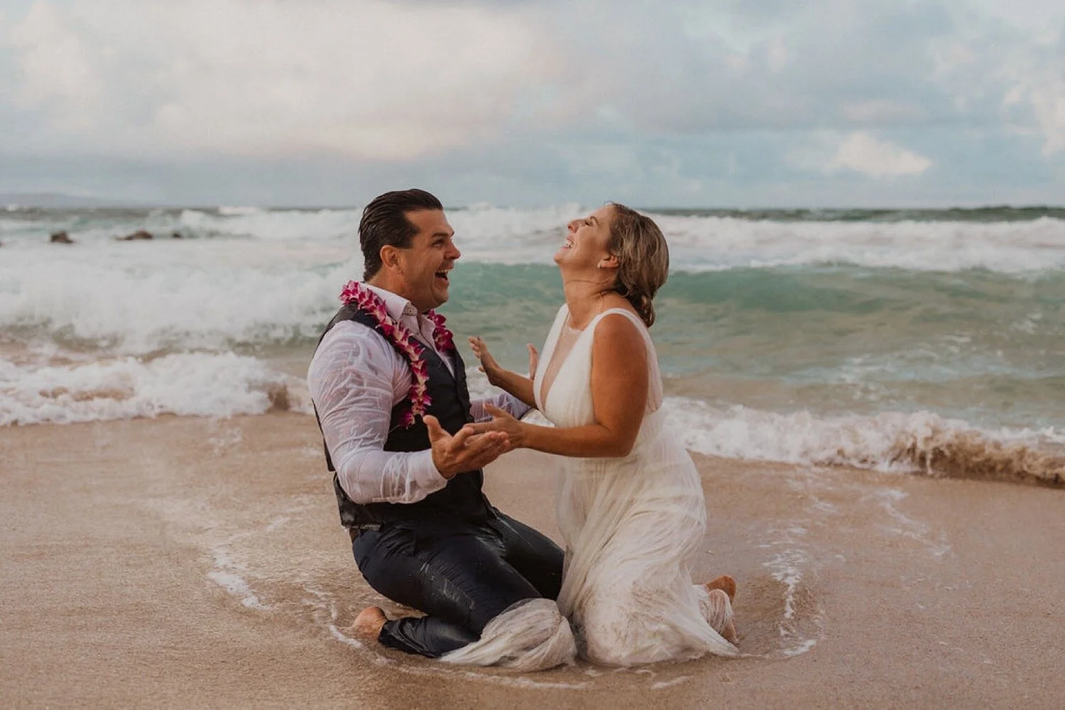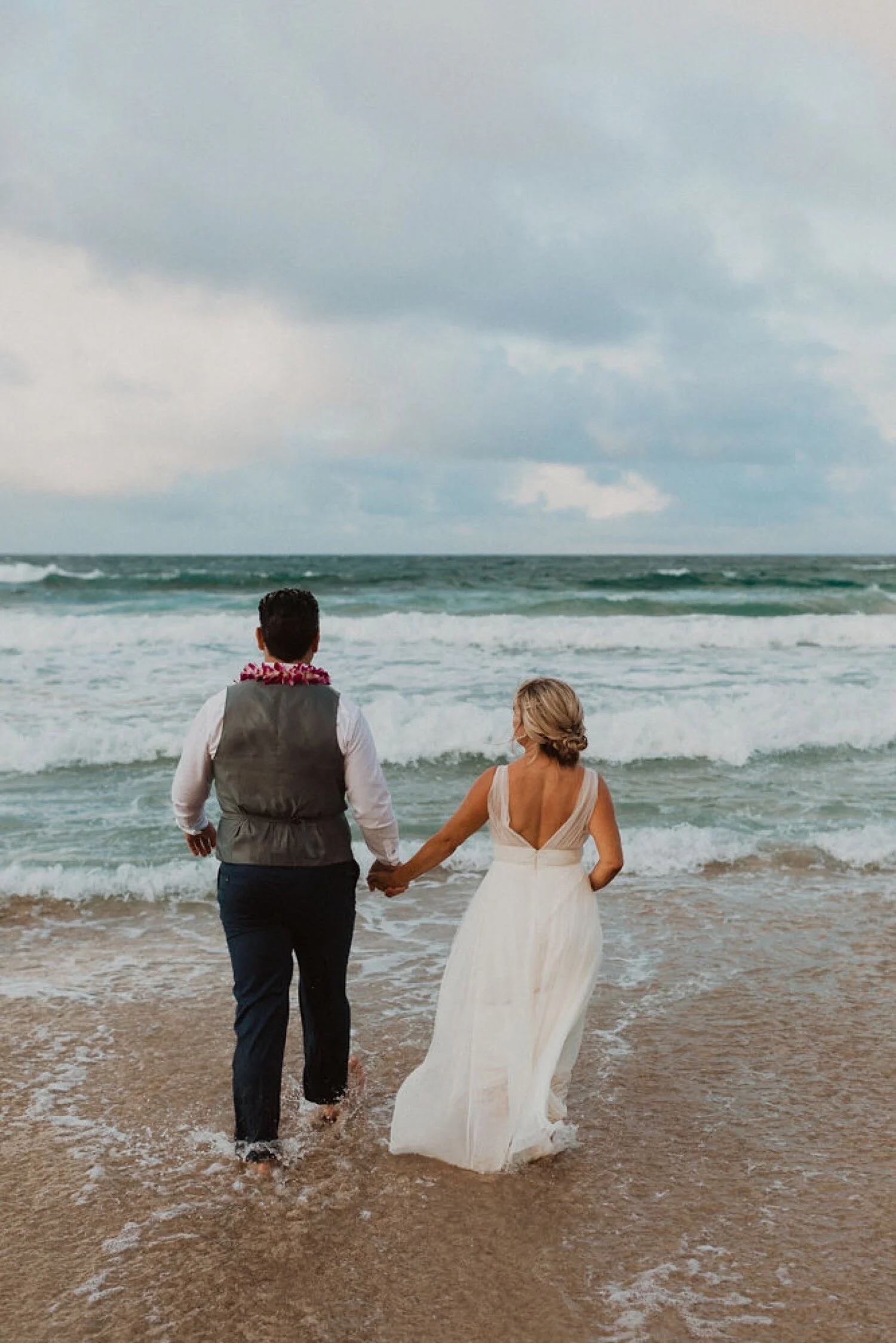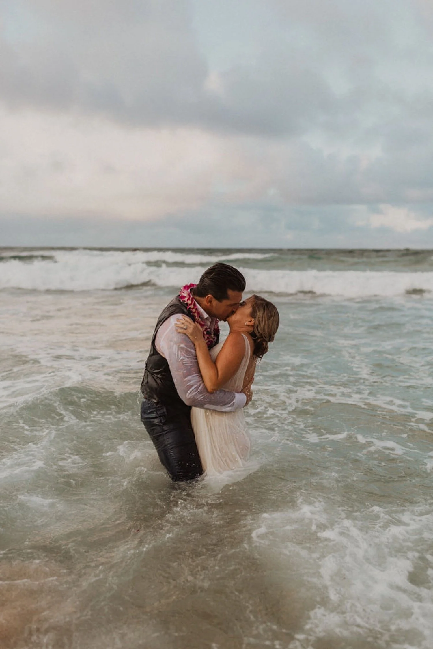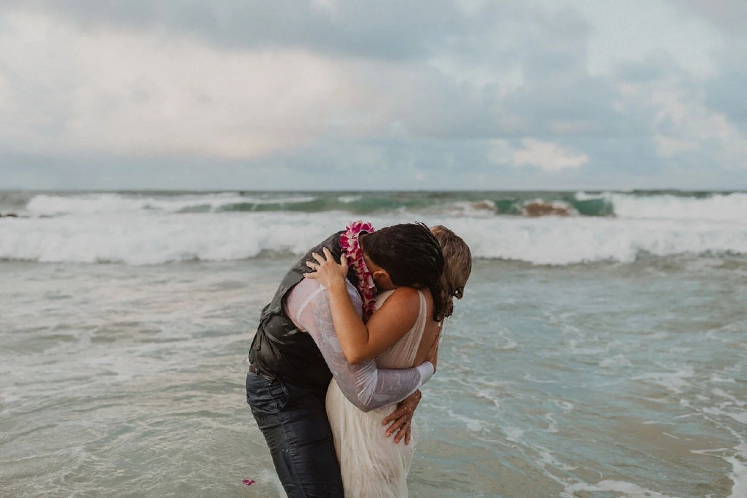Finally, we then stumbled upon Ironwoods Beach where we decided to do the ceremony. The wind was blowing 1000 mph but that didn’t stop them one bit. When we had finished the ceremony, they last minute decided after portraits that they wanted to jump in the water. So, they went all in and decided to trash the dress. It was such a beautiful moment.