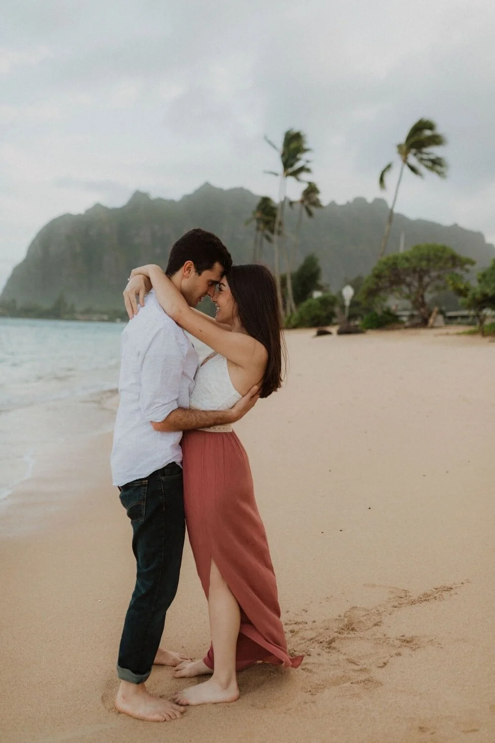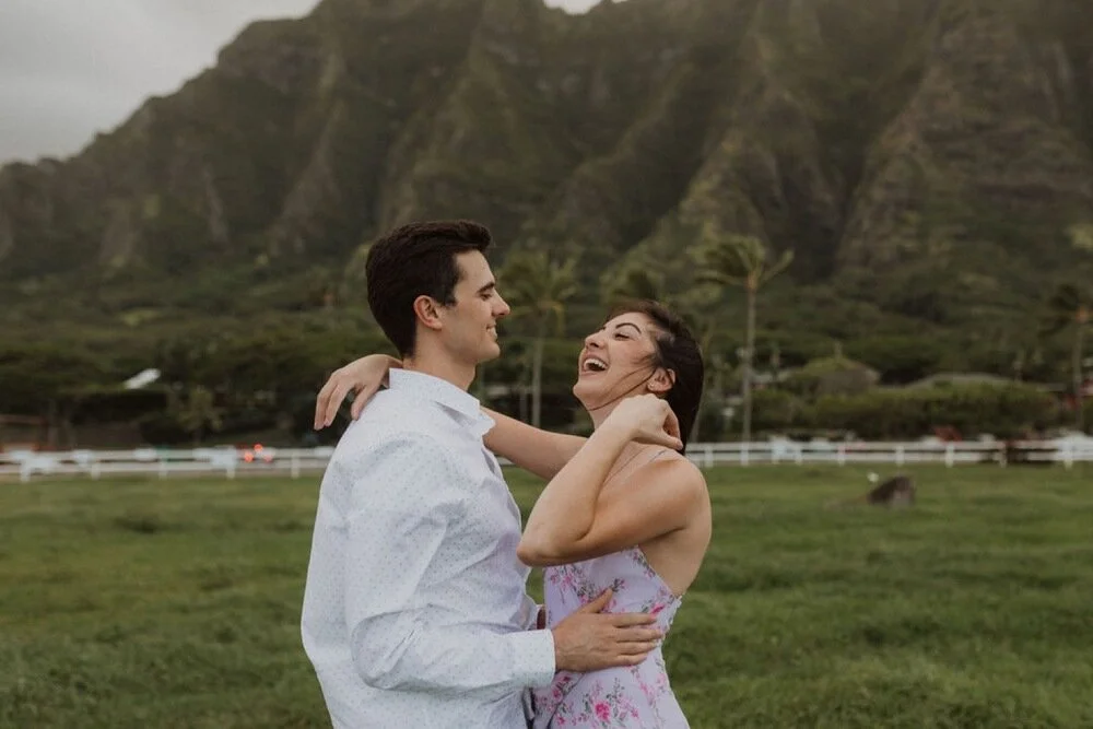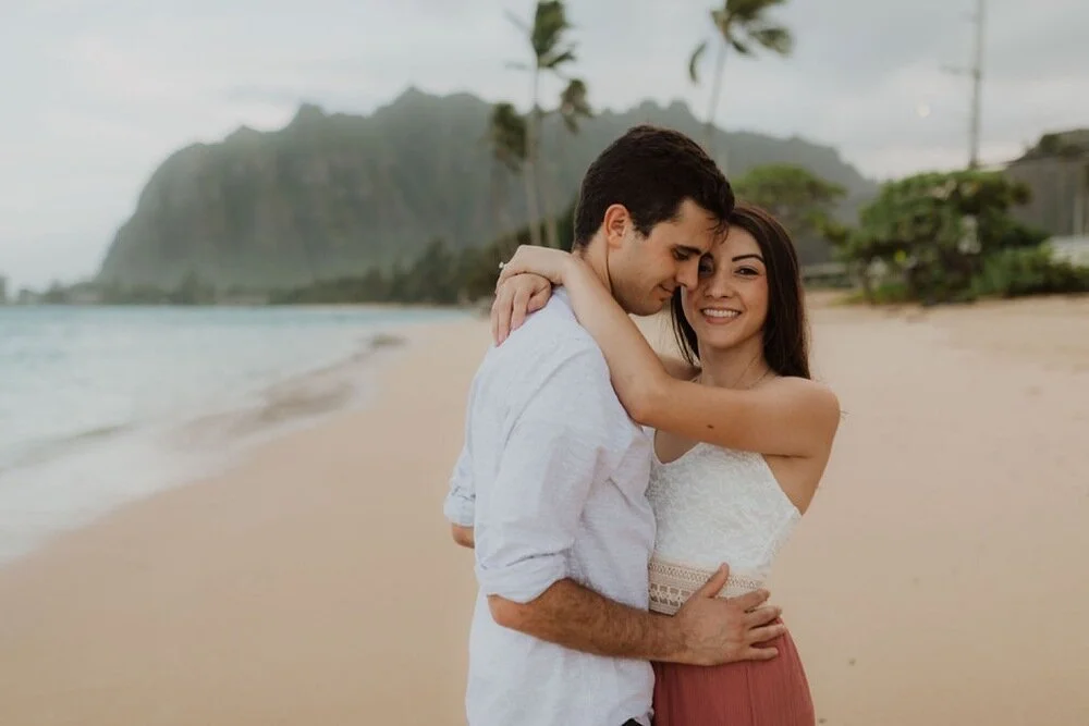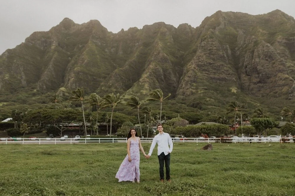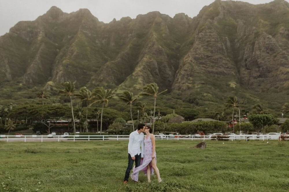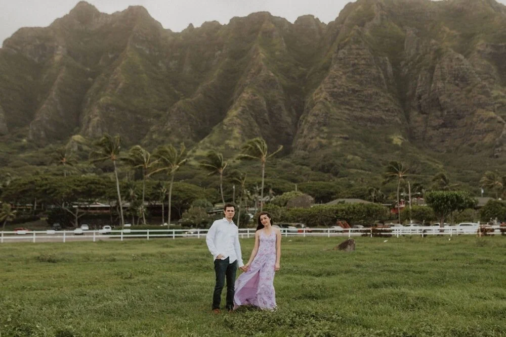 It is engagement season and this windward side engagement shoot by far is one of my favorite sessions. these two came all the way to Hawaii from California for their photoshoot. They dreamed of having the beautiful Ko’olau Mountains in the background of their photos. They wanted both mountain and beach so we went to some of my secret spots in order to make the perfect engagement session just for them. Their love was so contagious and I felt so honored to capture this part of their story. The windward side always makes for the perfect backdrop and we are so lucky it didn’t rain!! I will never forget this gorgeous windward side engagement shoot!