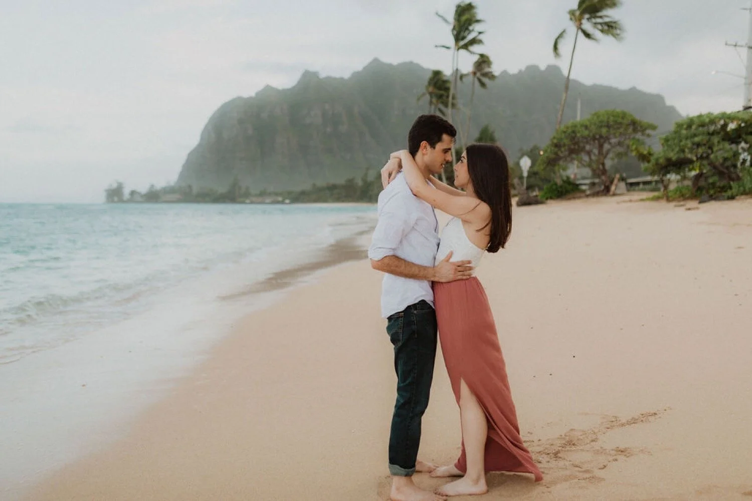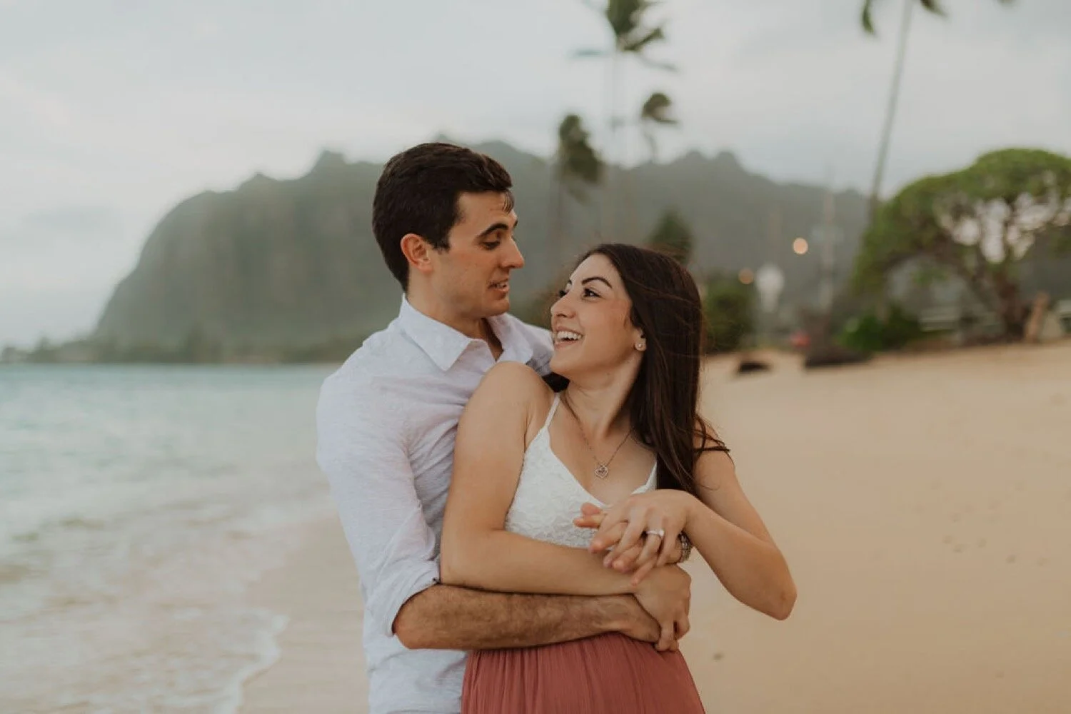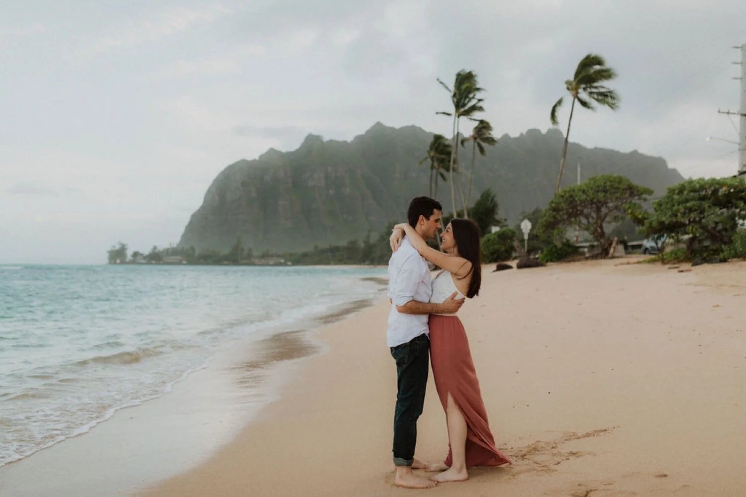 It is engagement season and this windward side engagement shoot by far is one of my favorite sessions. these two came all the way to Hawaii from California for their photoshoot. They dreamed of having the beautiful Ko’olau Mountains in the background of their photos. They wanted both mountain and beach so we went to some of my secret spots in order to make the perfect engagement session just for them. Their love was so contagious and I felt so honored to capture this part of their story. The windward side always makes for the perfect backdrop and we are so lucky it didn’t rain!! I will never forget this gorgeous windward side engagement shoot!