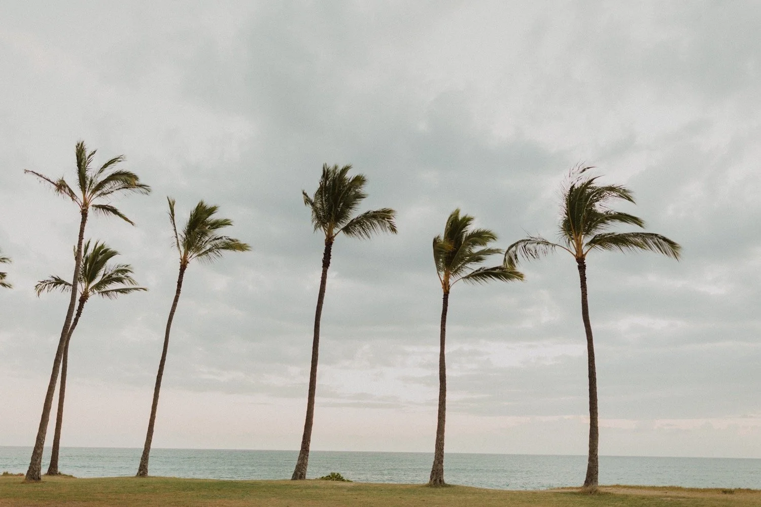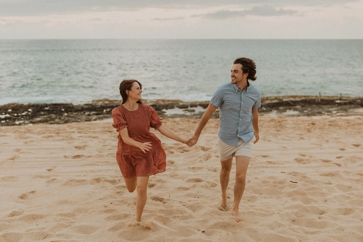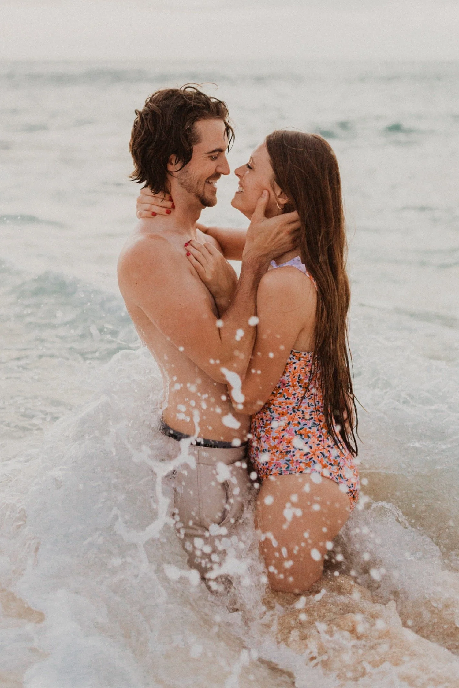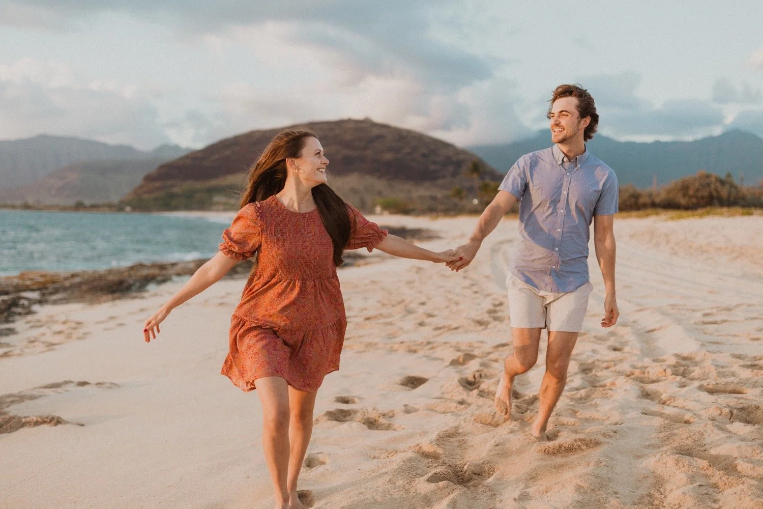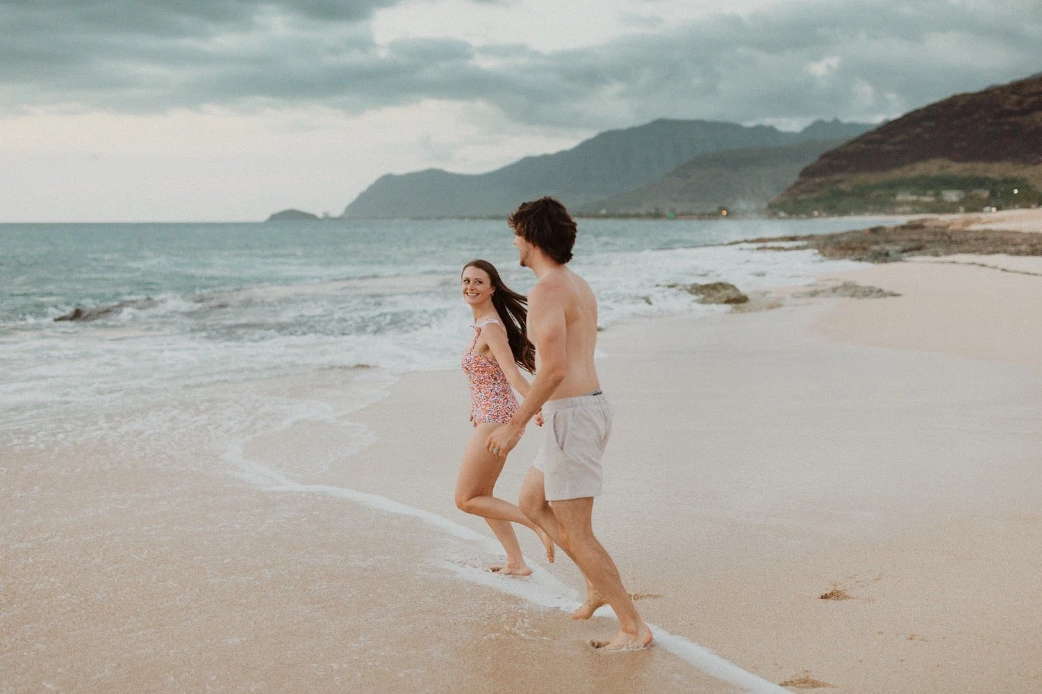 They were living in Hawaii for just a few months and wanted to get some photos before they moved back to the mainland. We went down to the beach on the west side of Oahu at sunset, for their couples session. It was a little overcast this day, but the beach was totally empty. We had so much fun getting shots in the water, and in front of the palm trees that were surrounding the beach. They are such an adventurous couple that radiate kindness and compassion and these photos showcase that perfectly.
