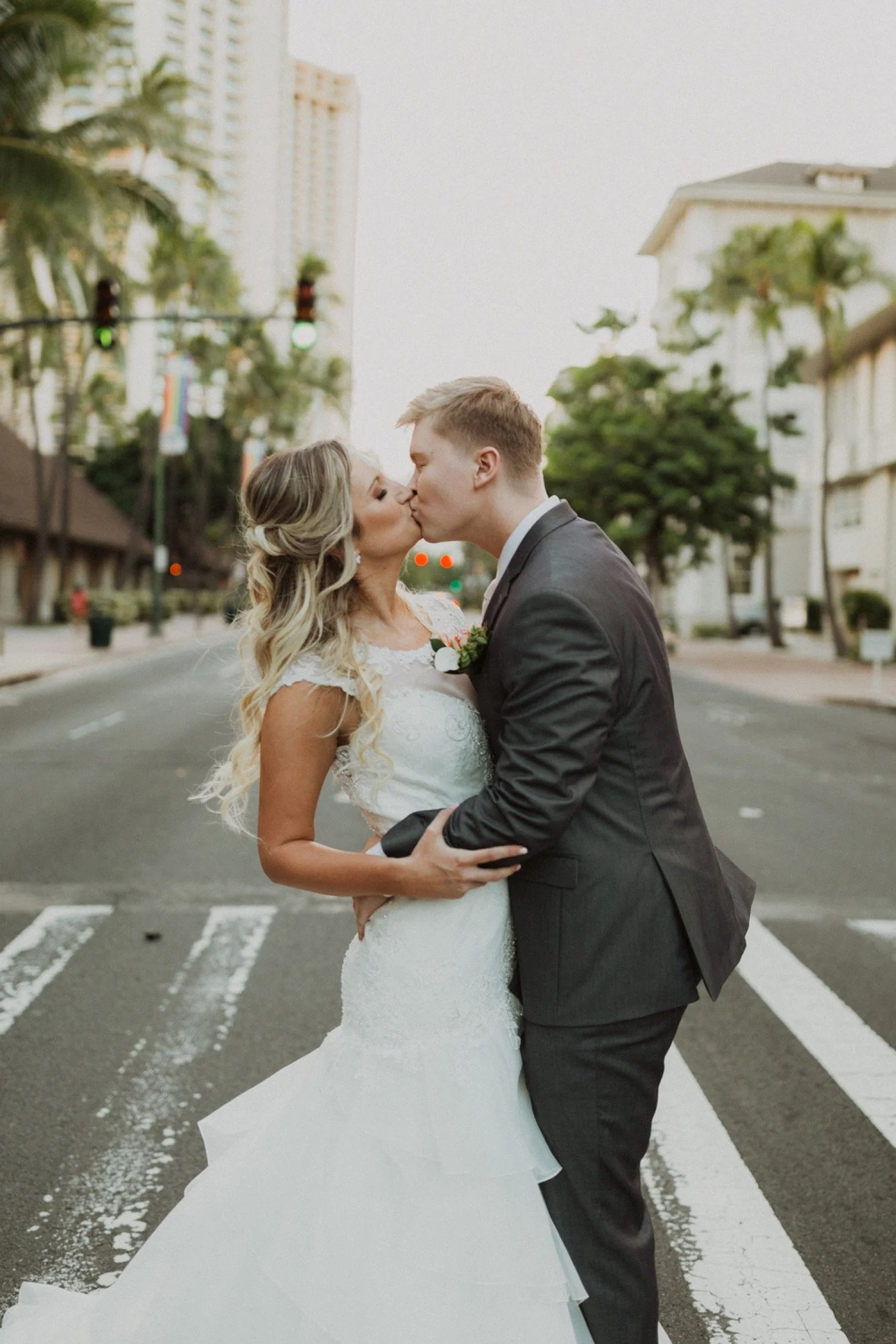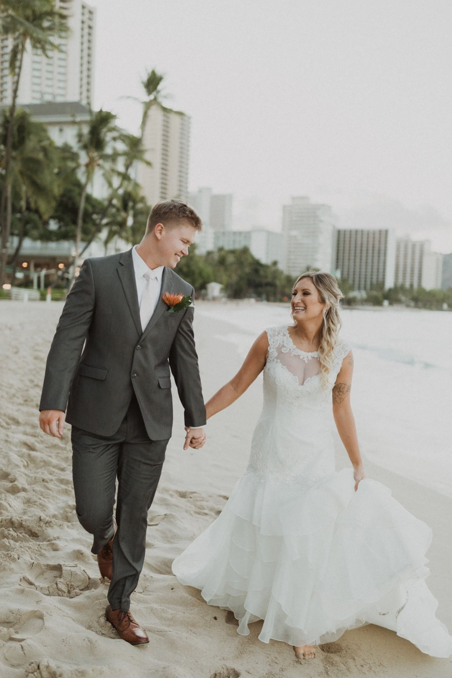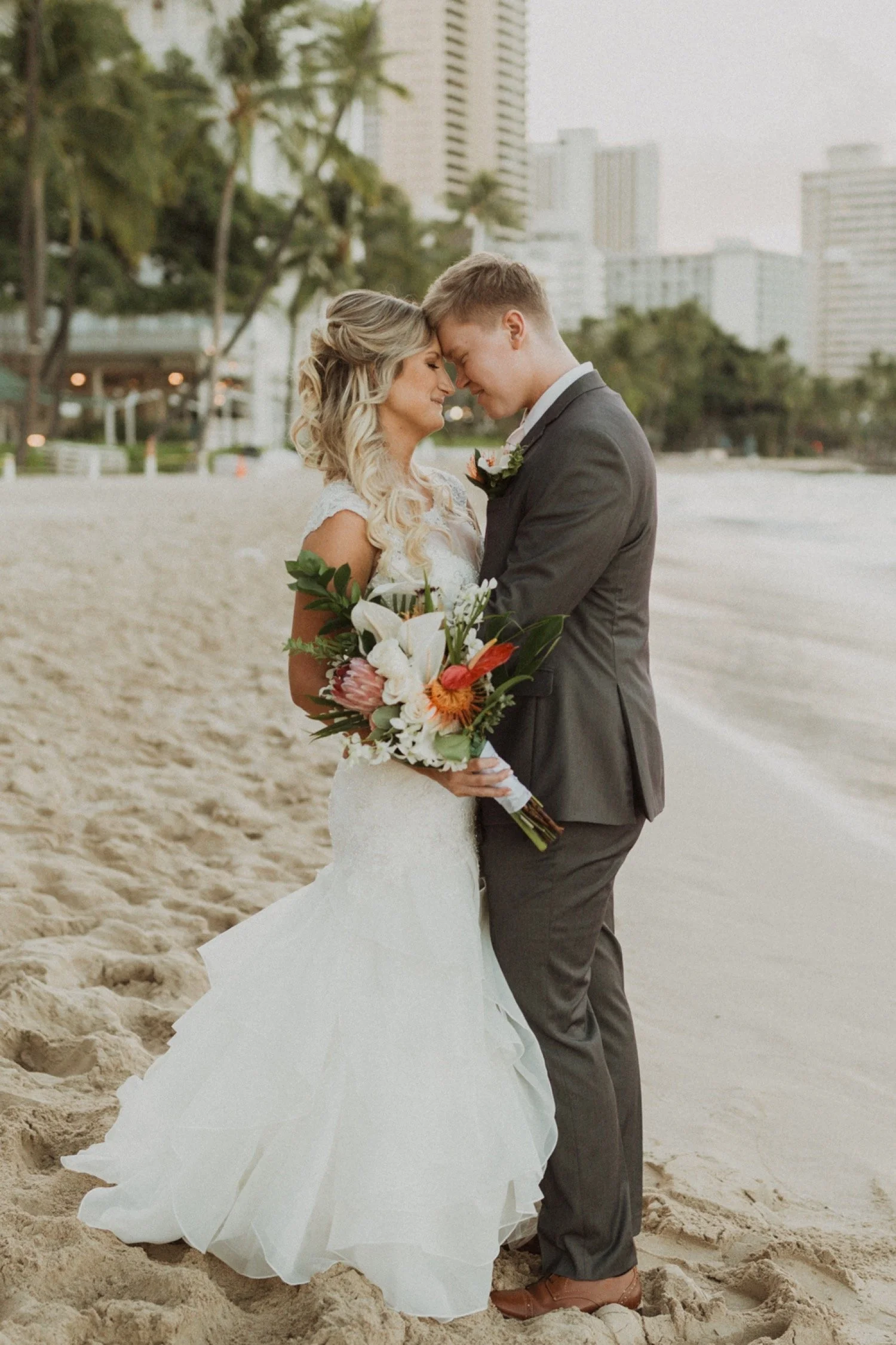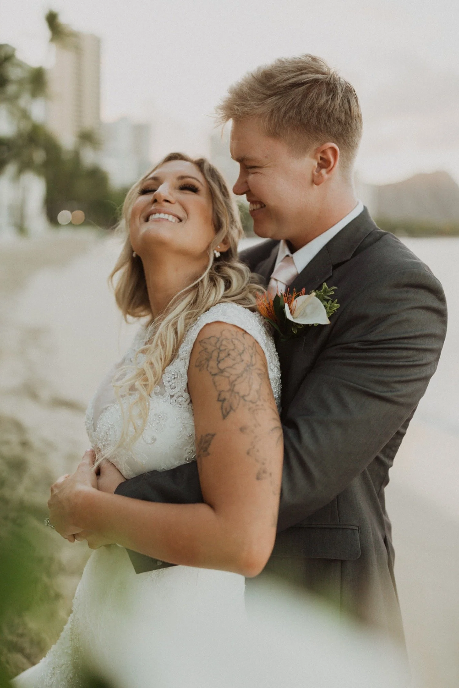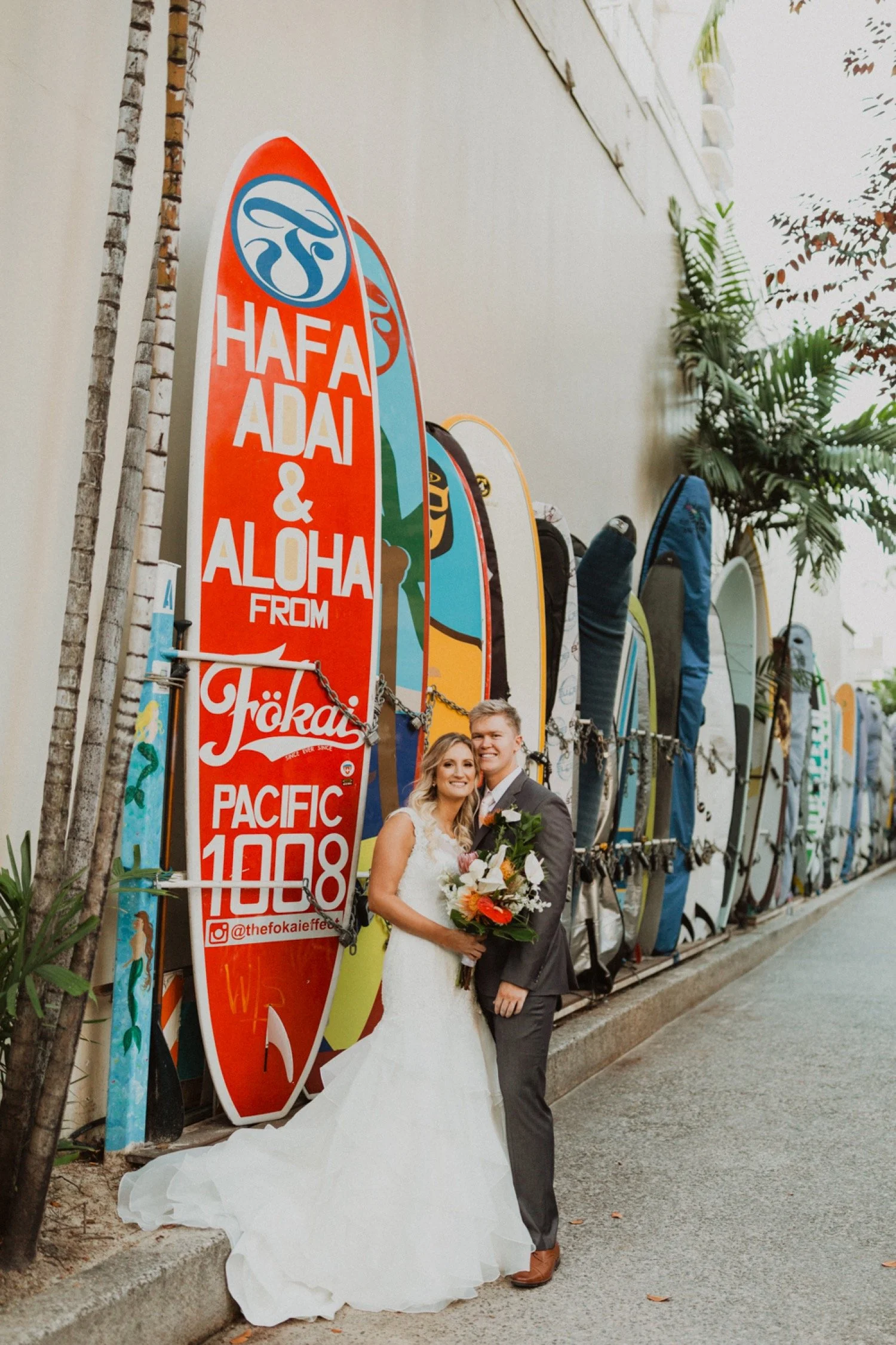 It was such a crazy time in the world, and in Hawaii. Hawaii was on lockdown, so no tourists were allowed to visit Hawaii during the time of their elopement. They had their first look at sunrise in Waikiki. If you’ve ever been to Waikiki, you know how crowded and crazy it can get. It reminds me of Disneyland with thousands of people sunbathing on the beach, and walking around town. It was such a special and unique moment for these two, the beauty of Waikiki and the most amazing view of diamond head, with not another person around. I will never forget the feeling of being at Waikiki, with an empty beach.