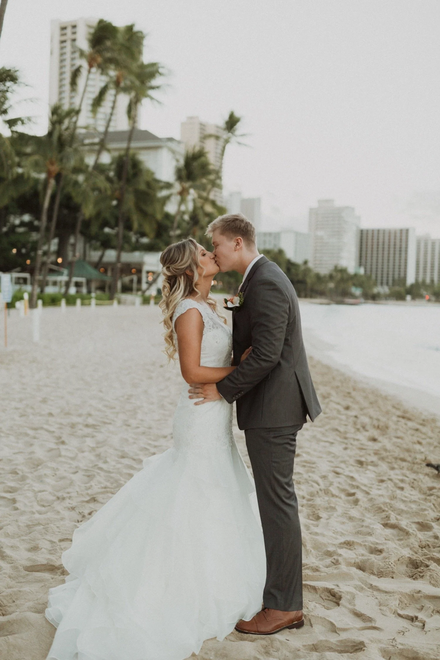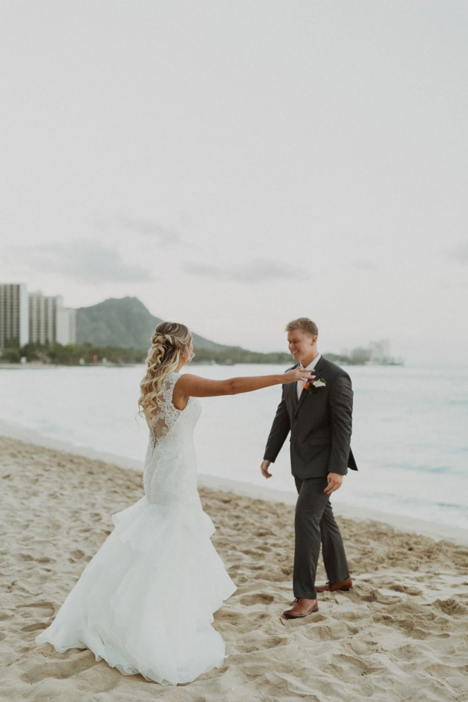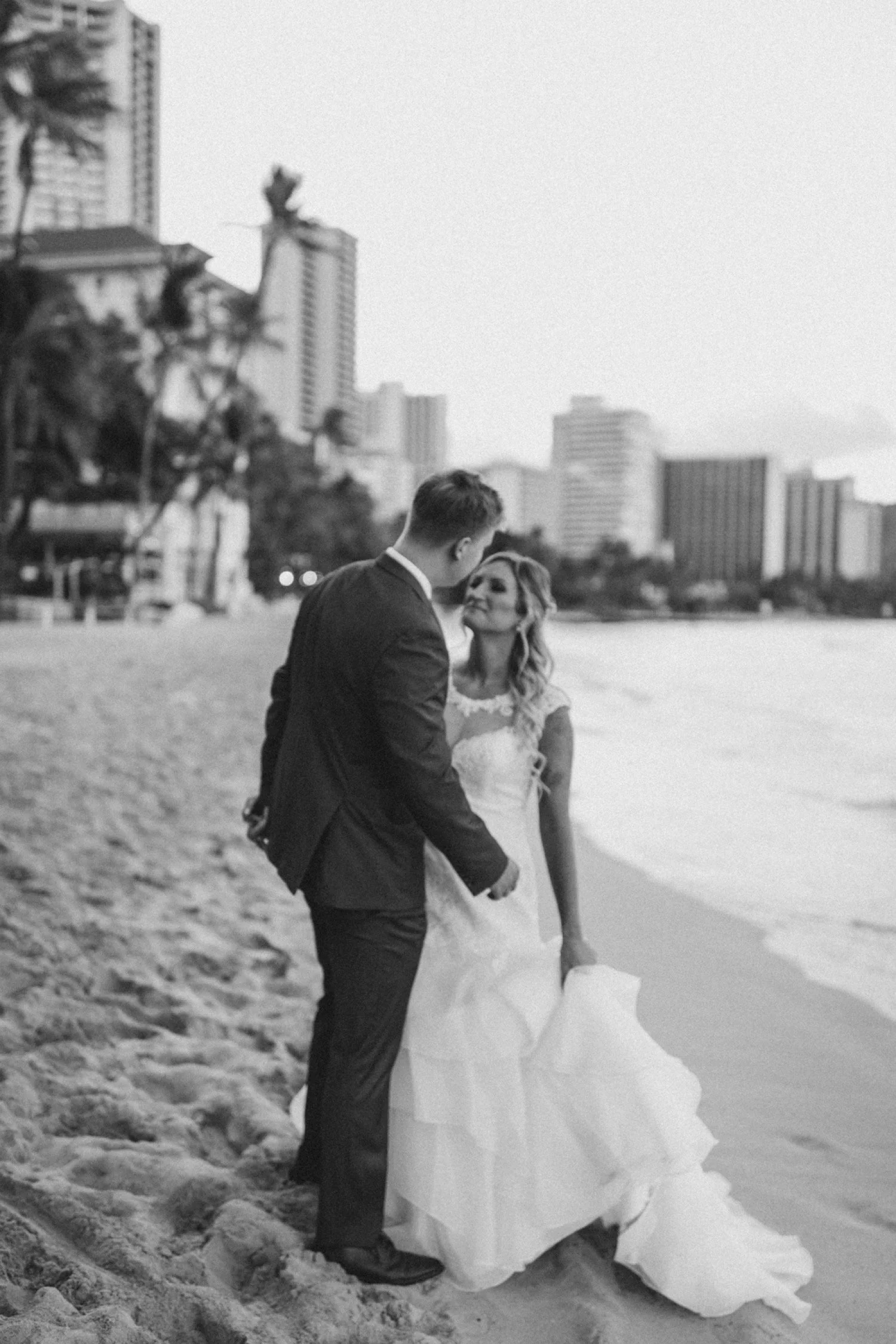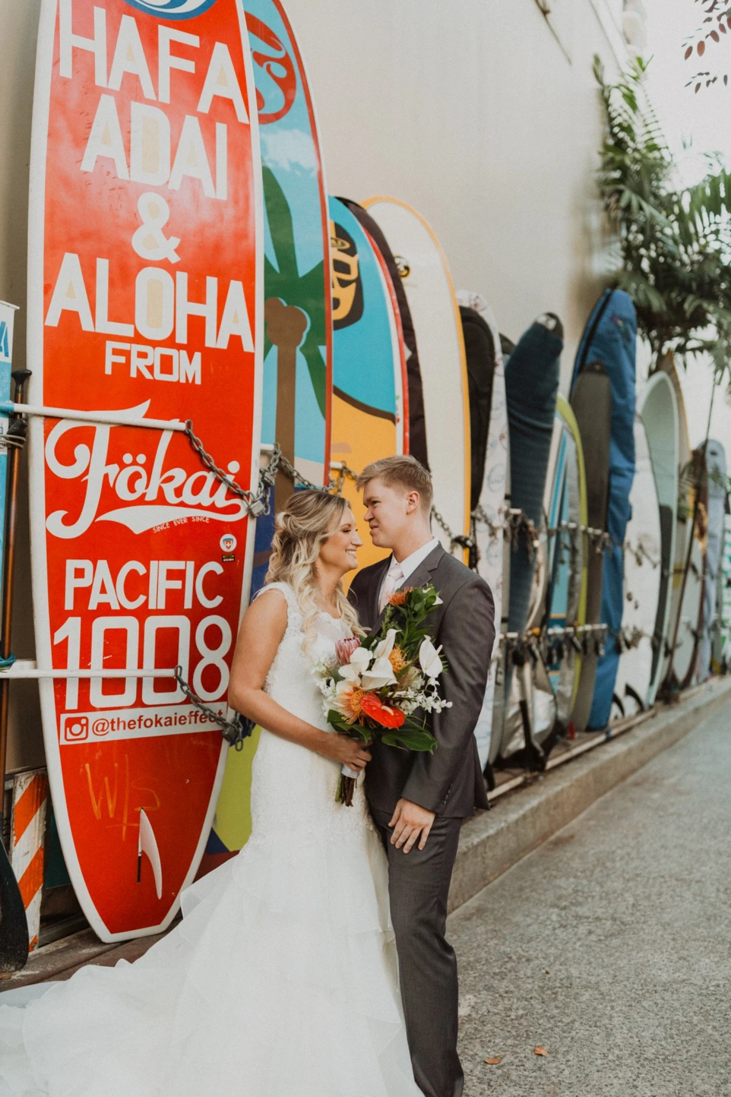 It was such a crazy time in the world, and in Hawaii. Hawaii was on lockdown, so no tourists were allowed to visit Hawaii during the time of their elopement. They had their first look at sunrise in Waikiki. If you’ve ever been to Waikiki, you know how crowded and crazy it can get. It reminds me of Disneyland with thousands of people sunbathing on the beach, and walking around town. It was such a special and unique moment for these two, the beauty of Waikiki and the most amazing view of diamond head, with not another person around. I will never forget the feeling of being at Waikiki, with an empty beach.