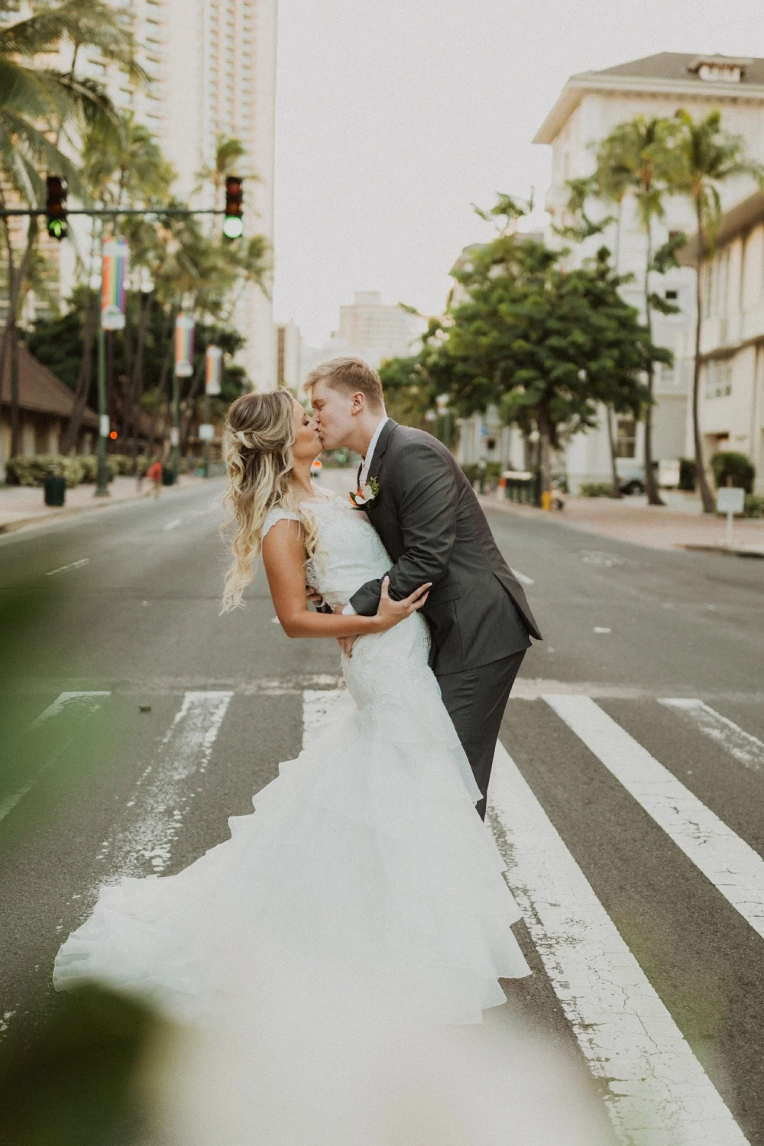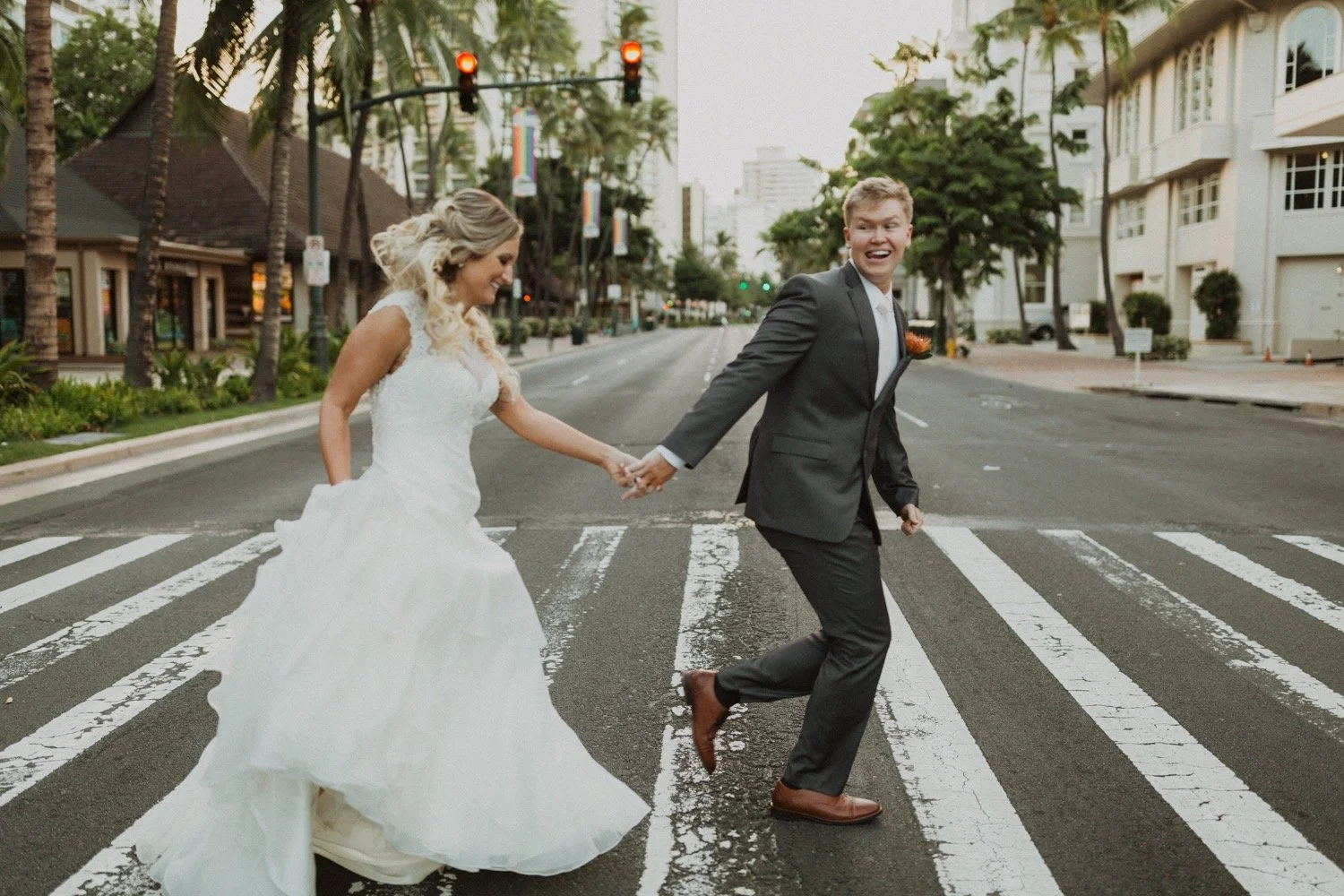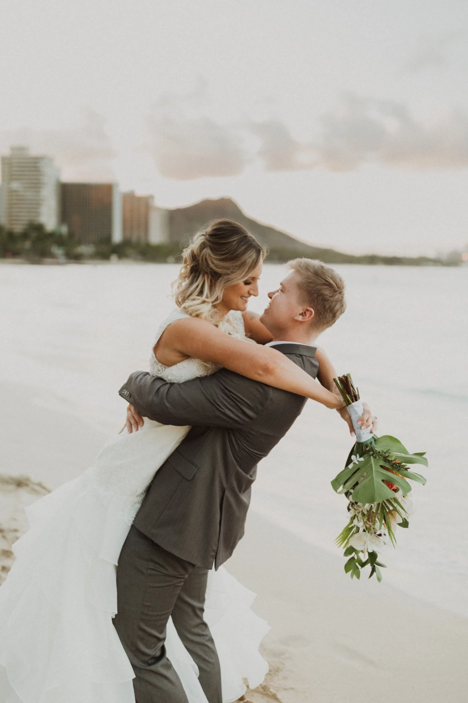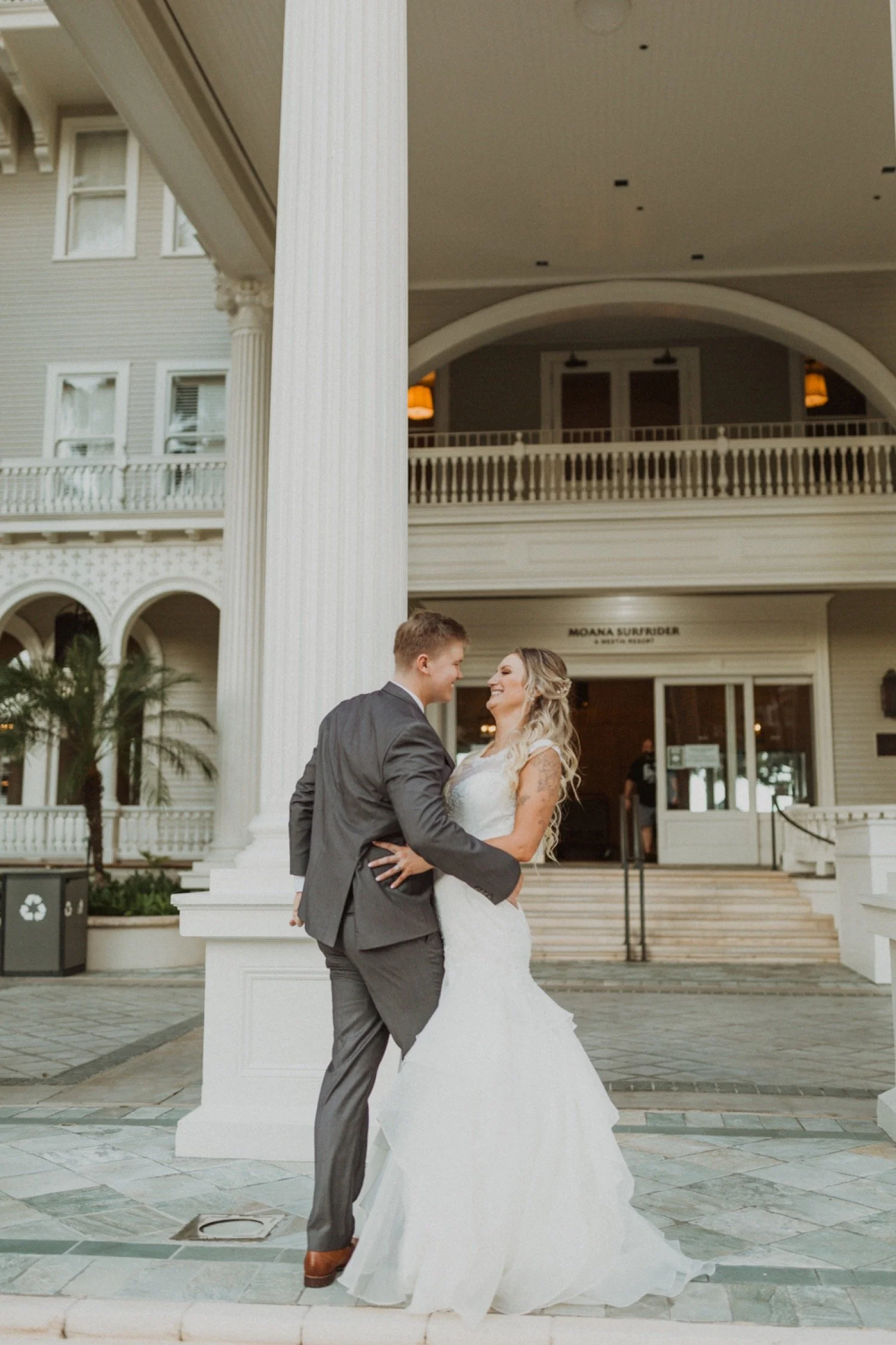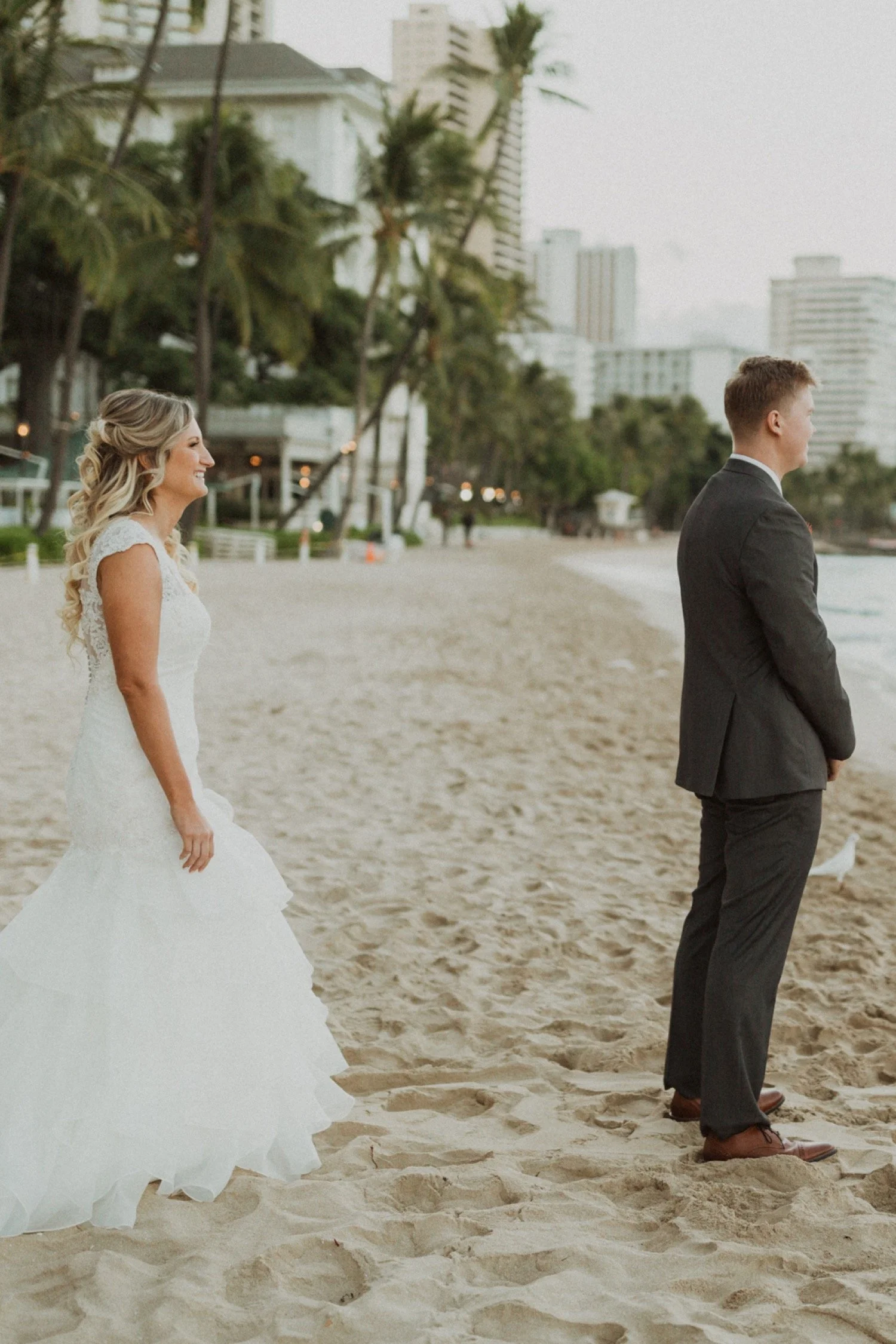 It was such a crazy time in the world, and in Hawaii. Hawaii was on lockdown, so no tourists were allowed to visit Hawaii during the time of their elopement. They had their first look at sunrise in Waikiki. If you’ve ever been to Waikiki, you know how crowded and crazy it can get. It reminds me of Disneyland with thousands of people sunbathing on the beach, and walking around town. It was such a special and unique moment for these two, the beauty of Waikiki and the most amazing view of diamond head, with not another person around. I will never forget the feeling of being at Waikiki, with an empty beach.
