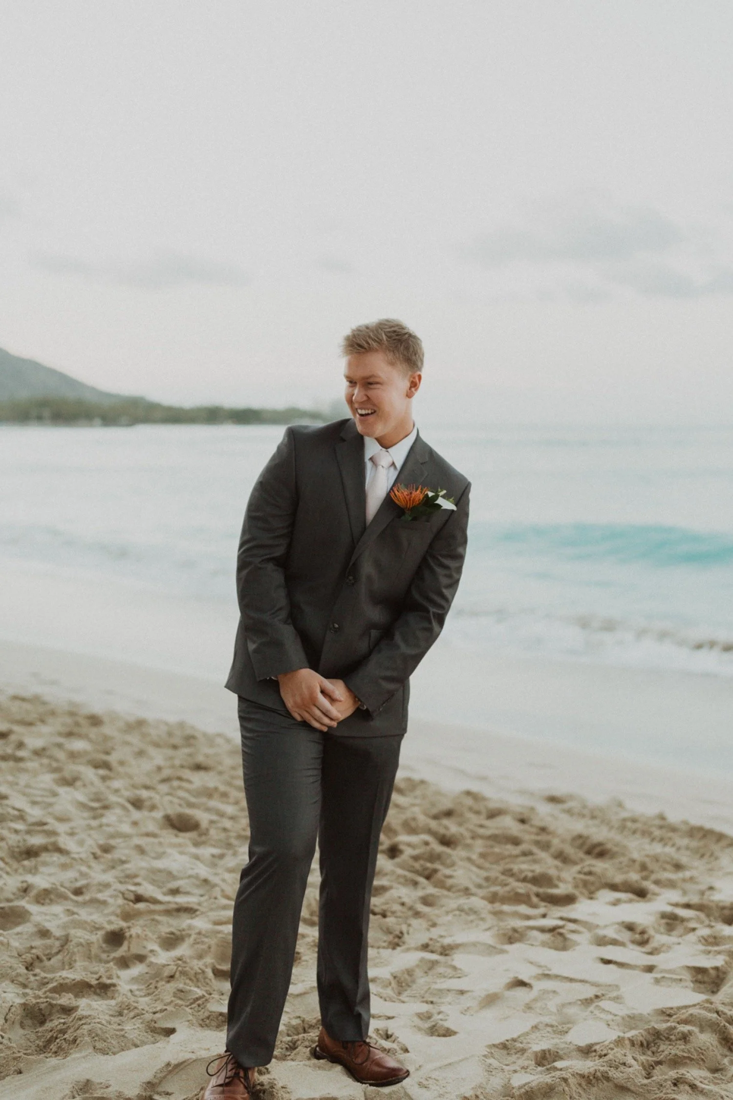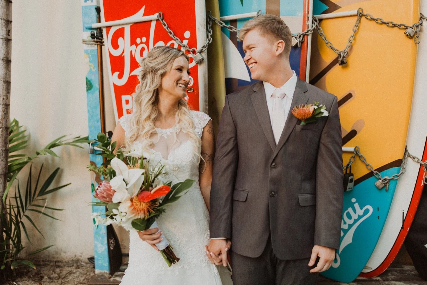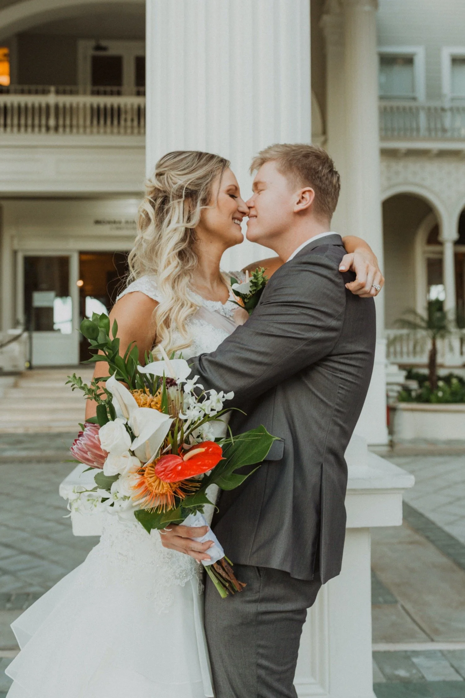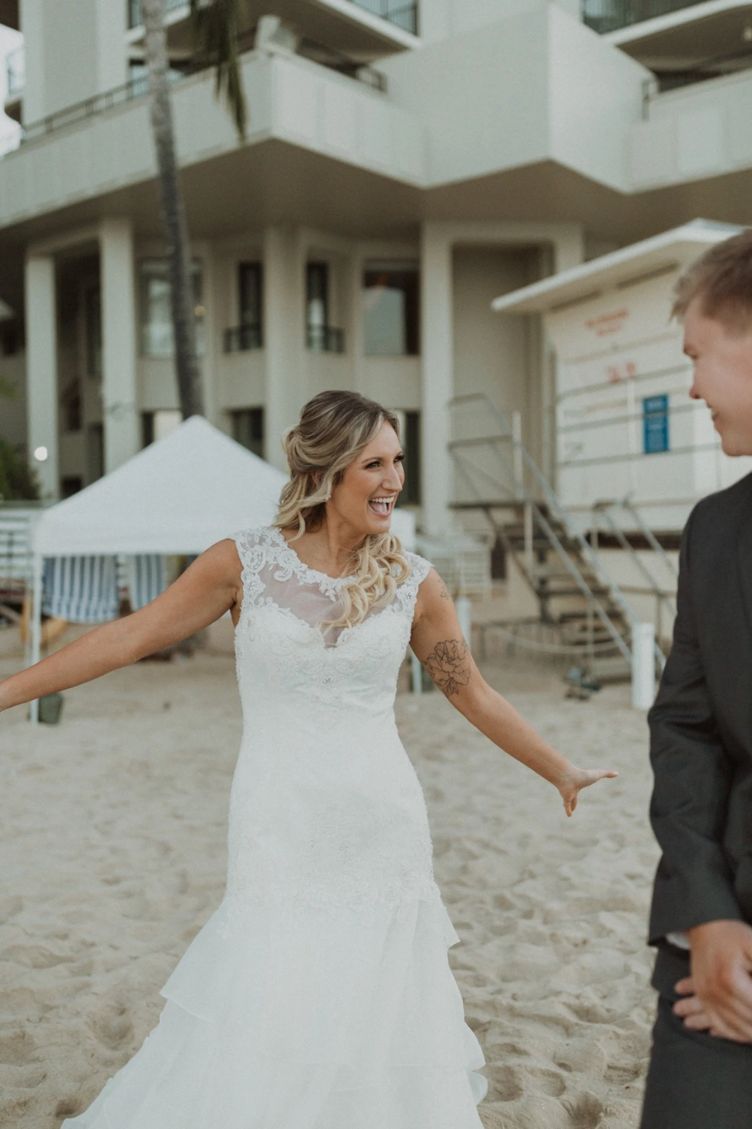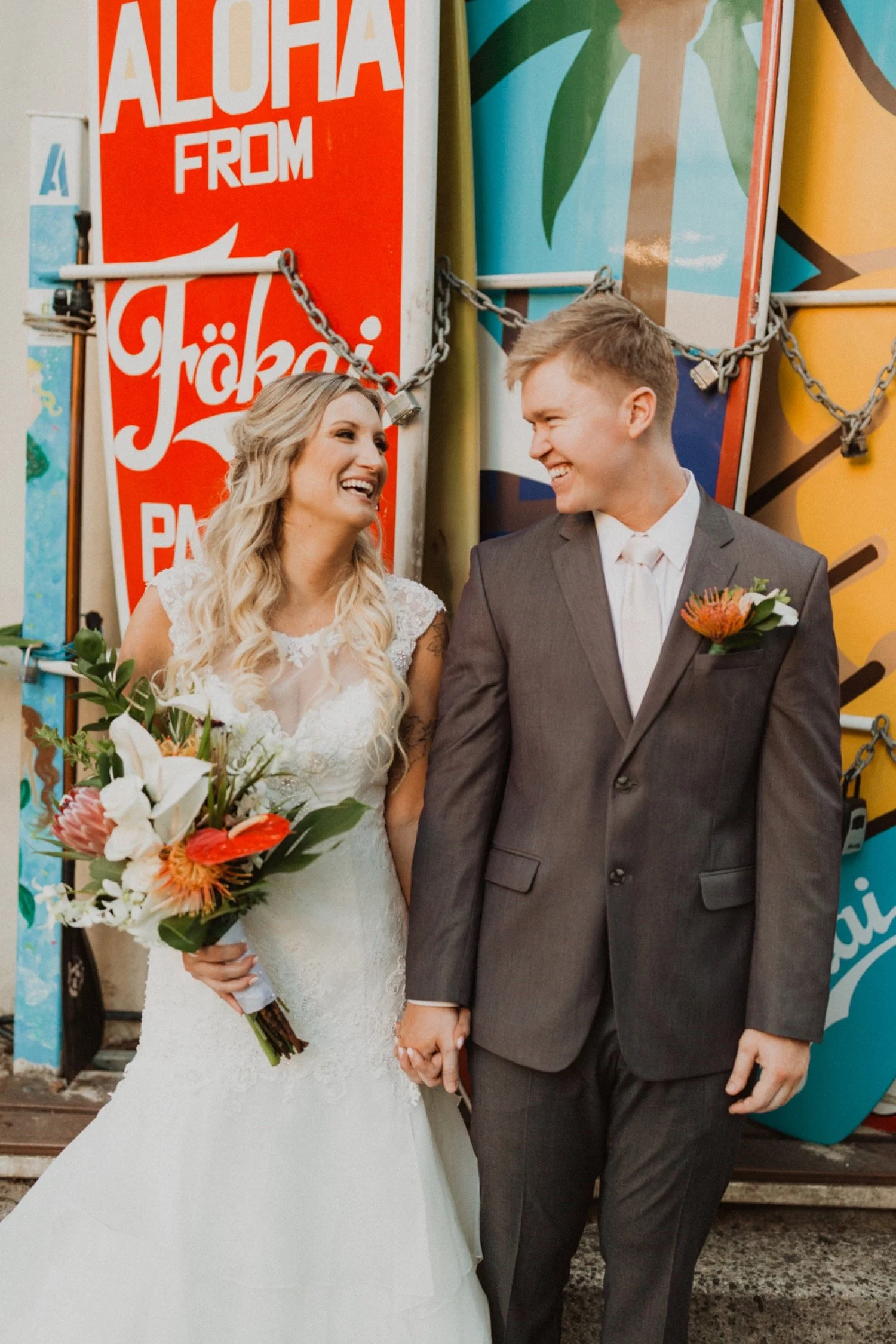 It was such a crazy time in the world, and in Hawaii. Hawaii was on lockdown, so no tourists were allowed to visit Hawaii during the time of their elopement. They had their first look at sunrise in Waikiki. If you’ve ever been to Waikiki, you know how crowded and crazy it can get. It reminds me of Disneyland with thousands of people sunbathing on the beach, and walking around town. It was such a special and unique moment for these two, the beauty of Waikiki and the most amazing view of diamond head, with not another person around. I will never forget the feeling of being at Waikiki, with an empty beach.