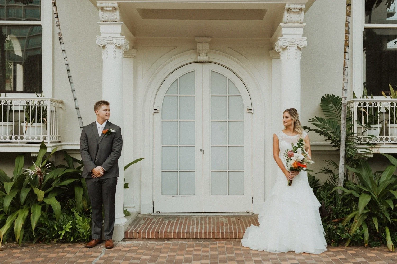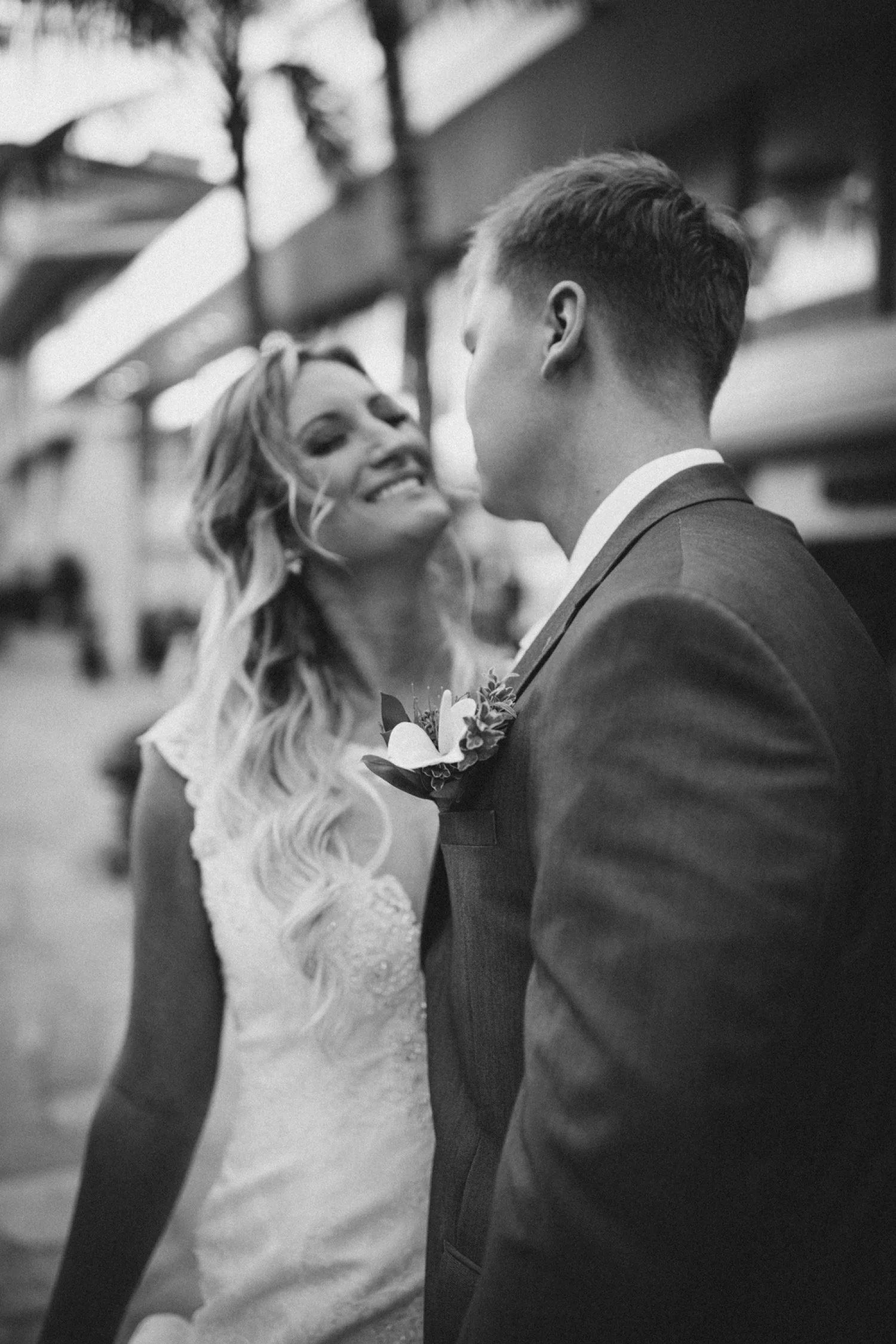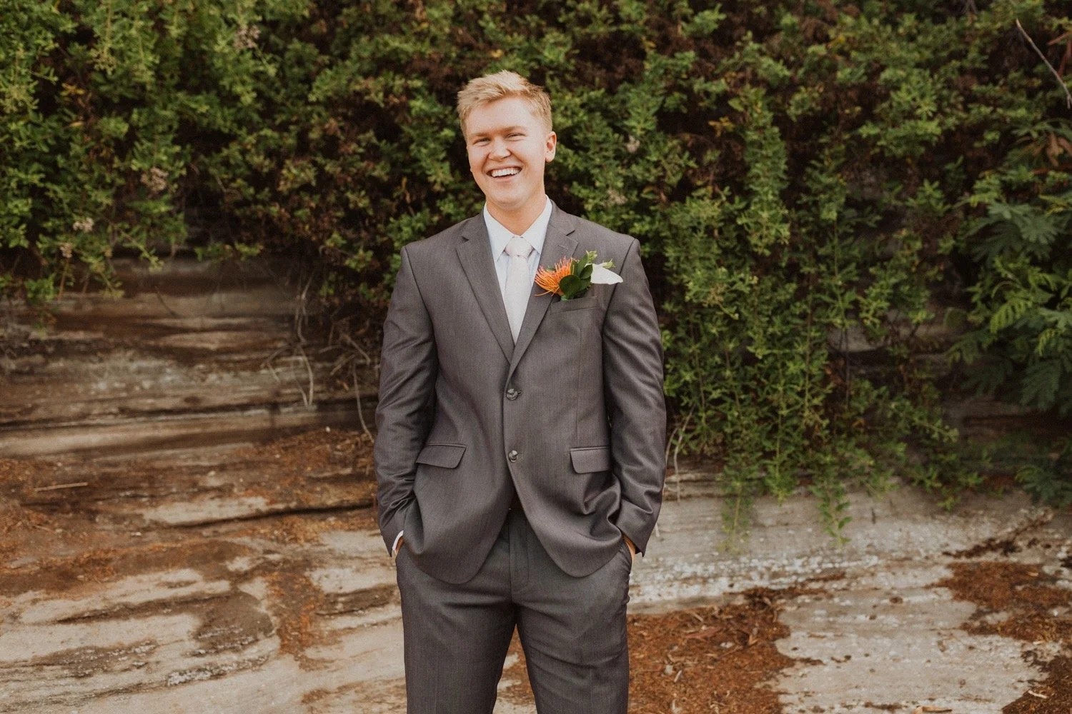 Having the whole city to ourselves was so much fun. We got such amazing photos of the soon to be bride and groom running around town, in the streets, by the local surfboard rental shop and on the secluded beach. After the first look session, Kullen and Kayla headed back to the hotel to get ready for their Cliffside elopement. They got to talk with family, and friends and get out their nerves over FaceTime.