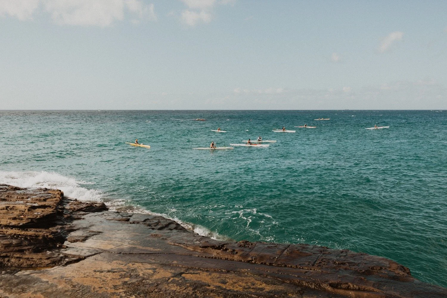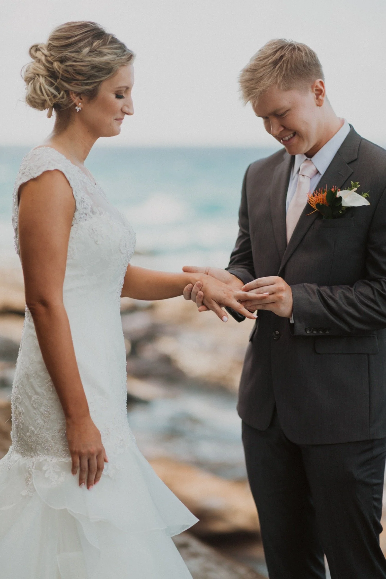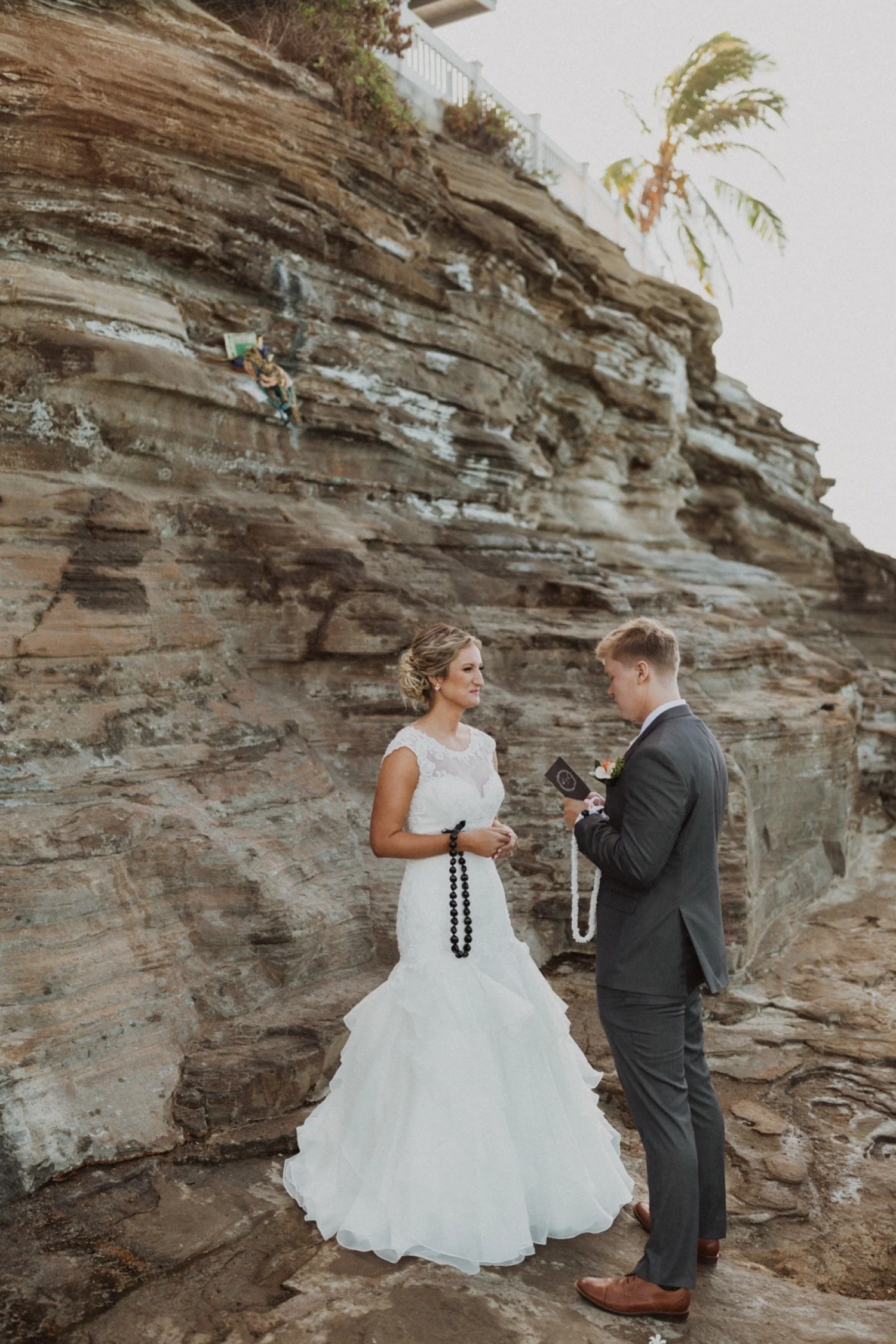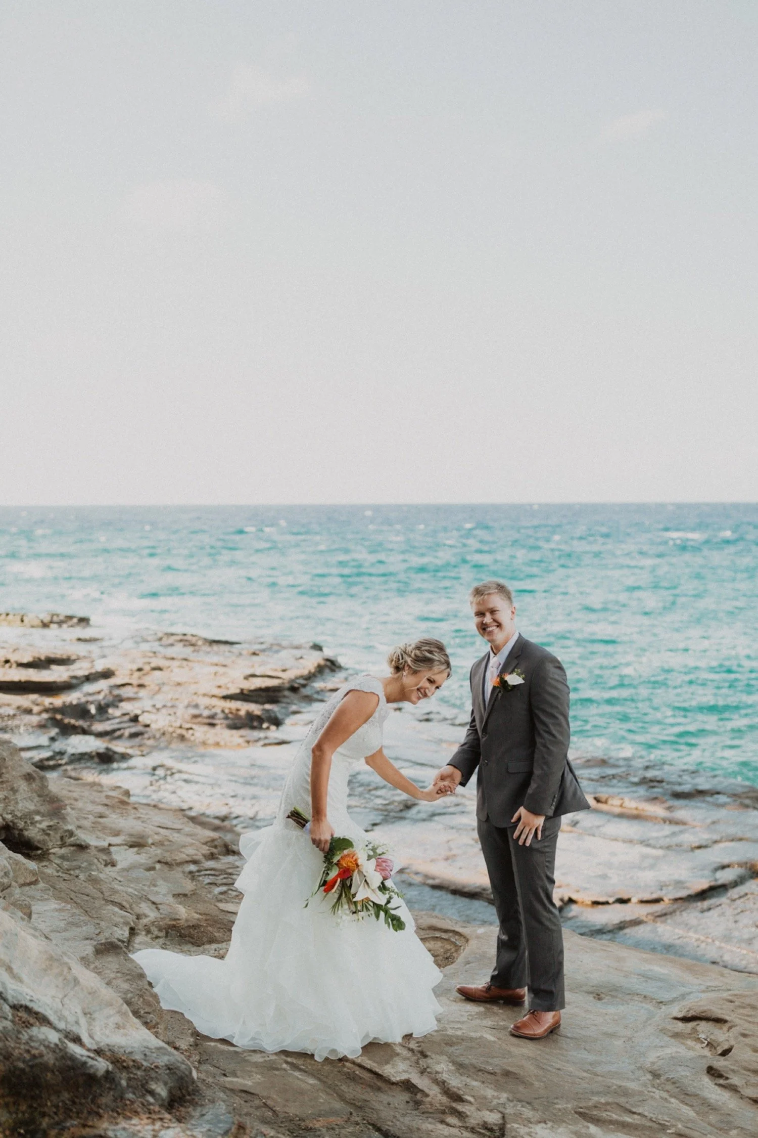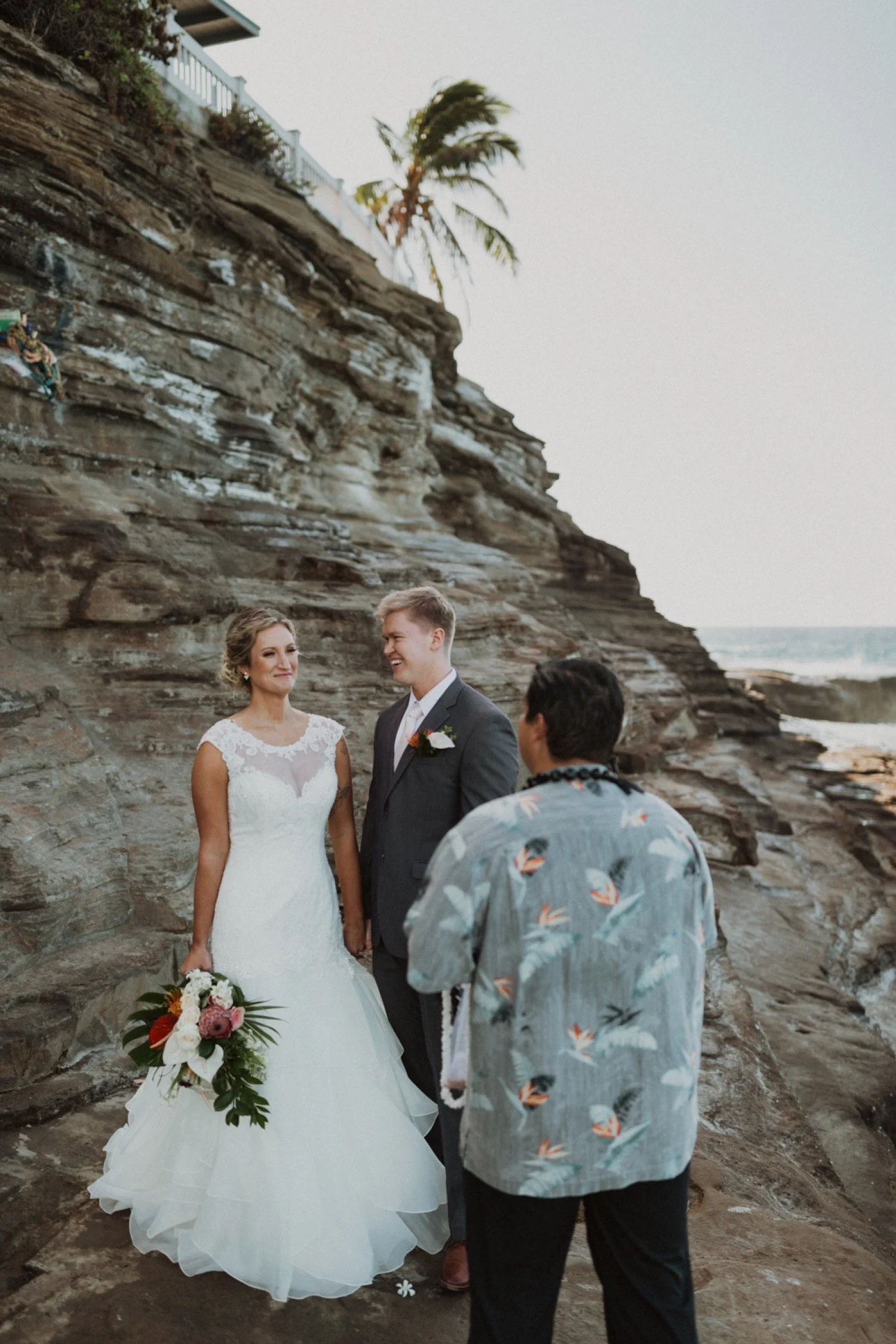 We then, headed to the east side of Oahu, for their cliffside elopement. This side of the Island was also very quiet and intimate for their official elopement. We went to the most beautiful spot, a cliffside beach surrounded by Hawaii’s blue ocean, palm trees and rocky tide pools. It was the perfect place for their day.