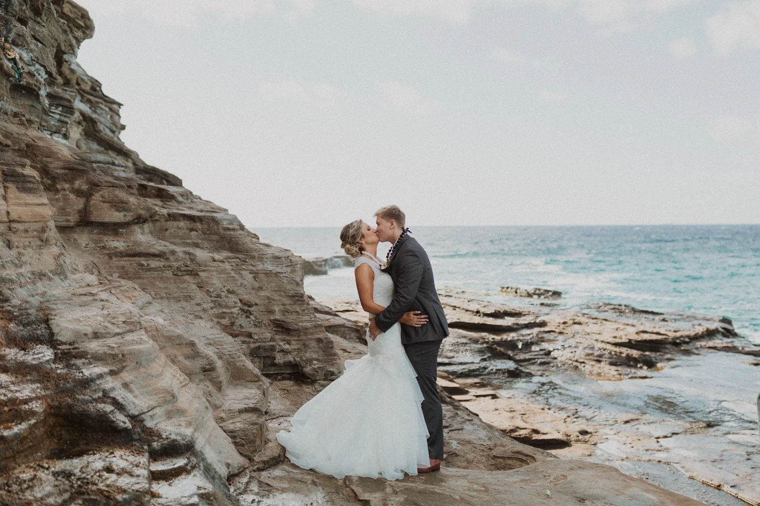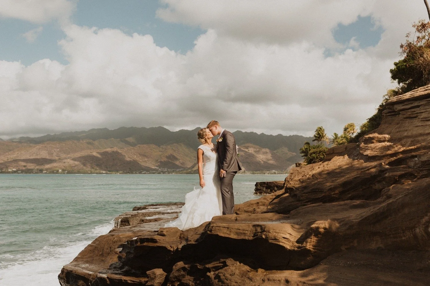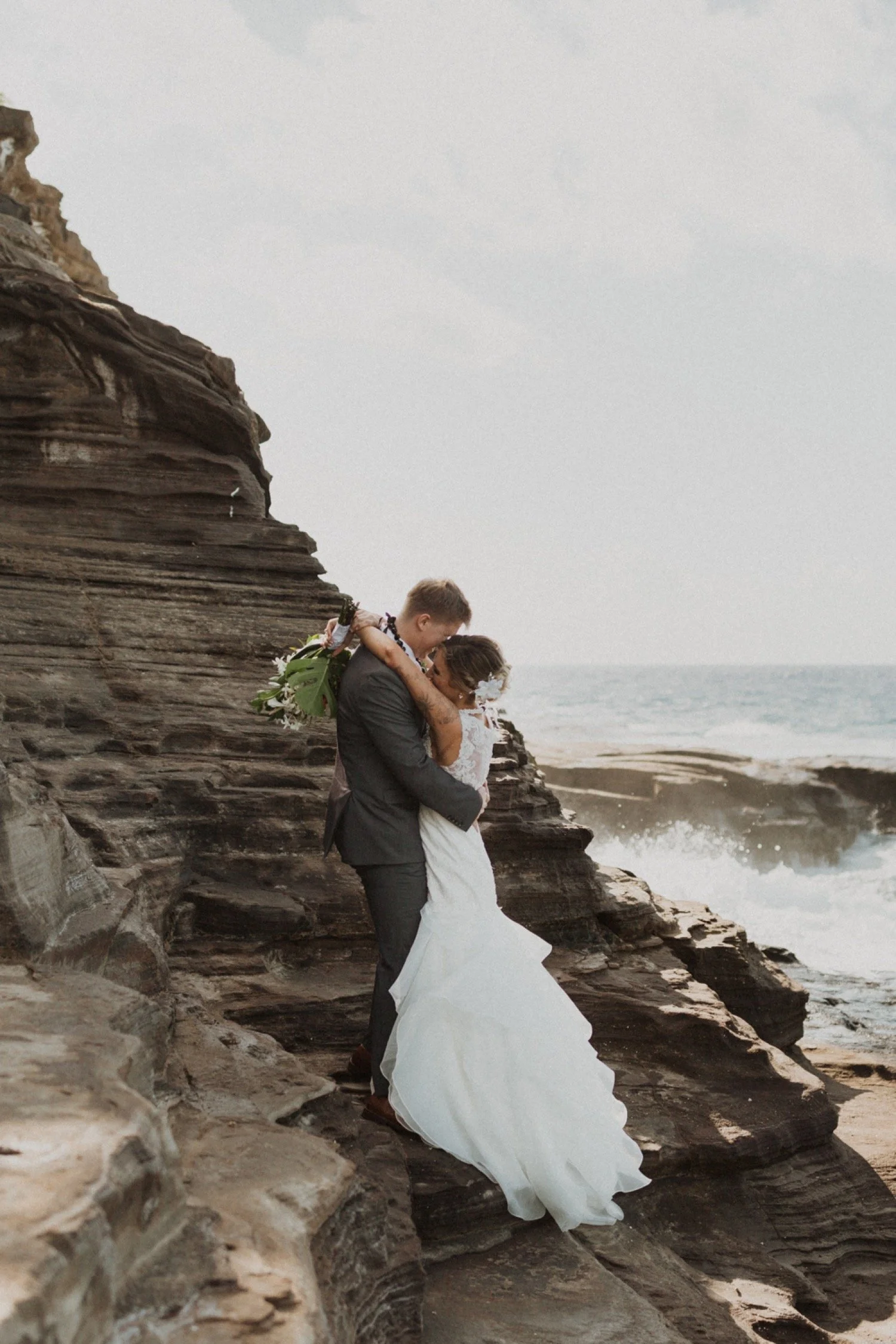 Kullen and Kayla had the sweetest intimate Cliffside elopement in Hawaii. Kullen and Kayla were stationed here in the military, and live in Hawaii. They had their big wedding day all planned out, with their family and friends, for July 2020. Like so many other couples during this pandemic, their original day had to be canceled, and they had to change their wedding date. Eventually, with their plans still up in the air of when they would be able to actually have their wedding, Kullen and Kayla decided to elope.