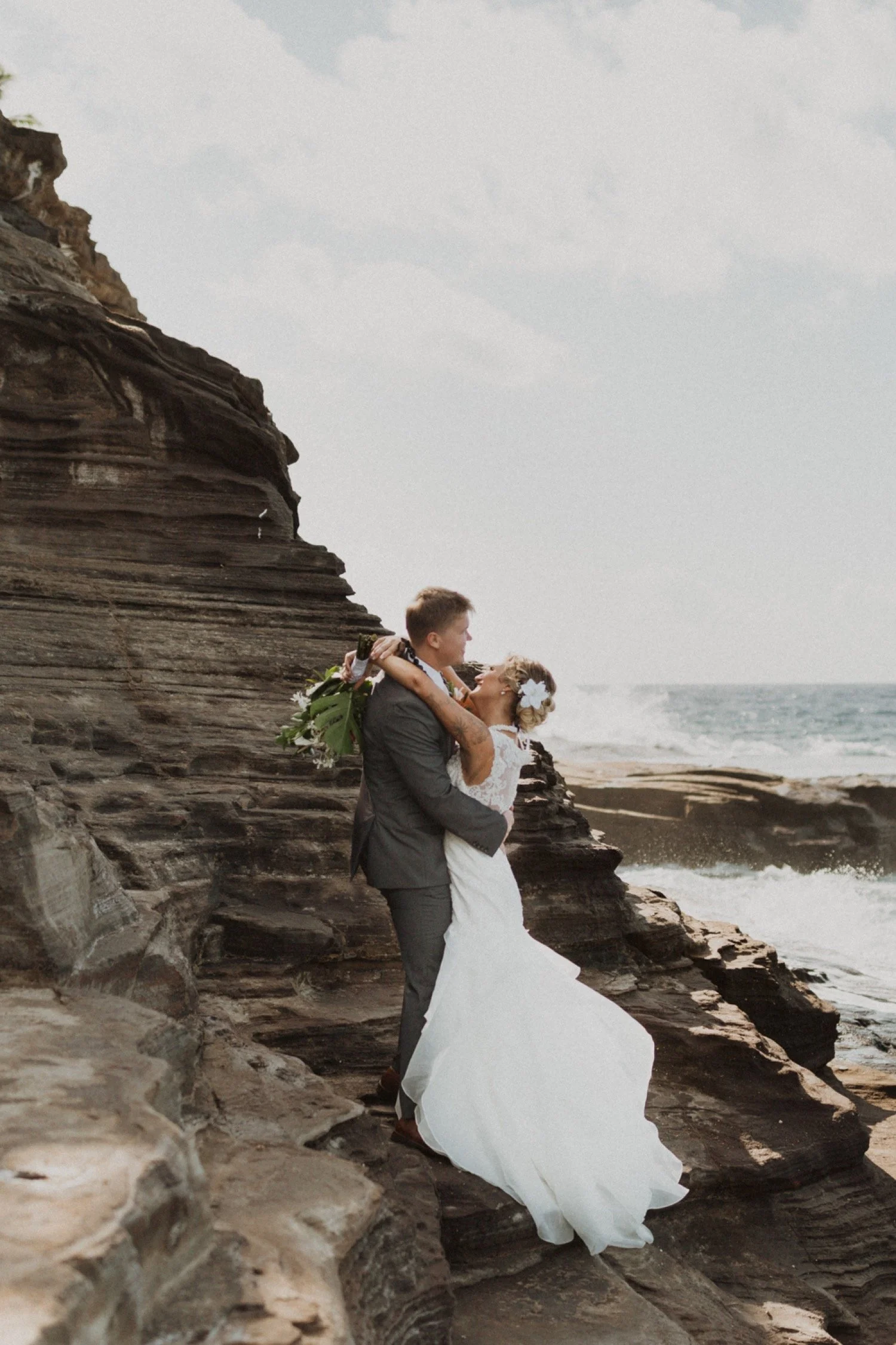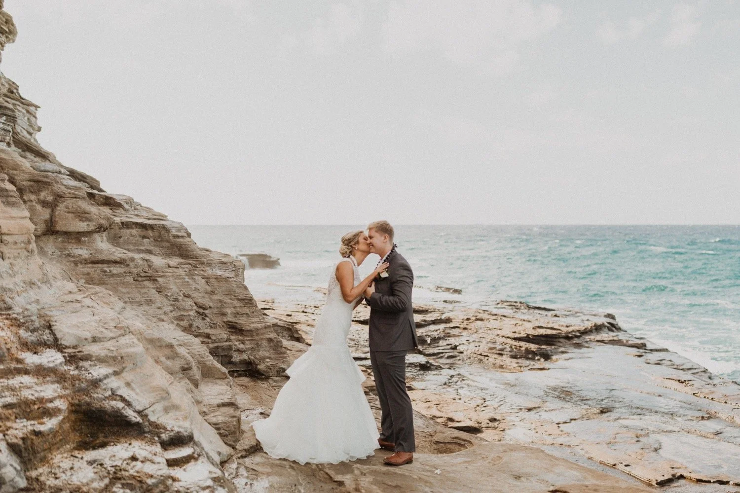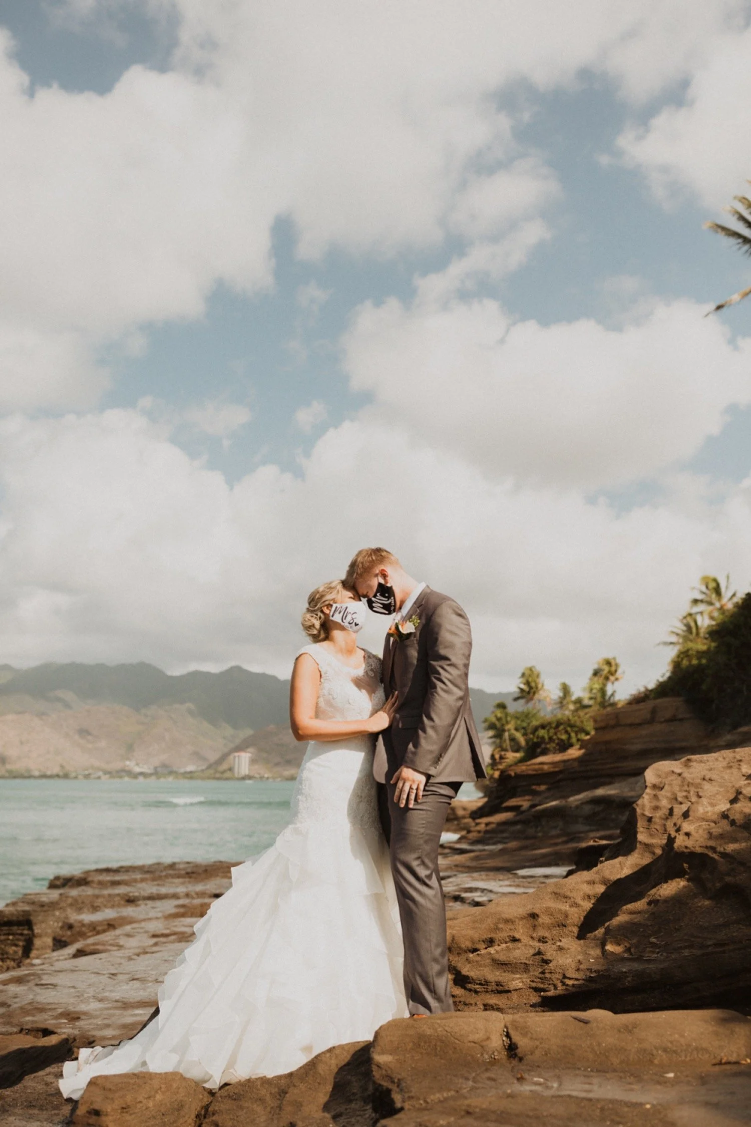 Kullen and Kayla had the sweetest intimate Cliffside elopement in Hawaii. Kullen and Kayla were stationed here in the military, and live in Hawaii. They had their big wedding day all planned out, with their family and friends, for July 2020. Like so many other couples during this pandemic, their original day had to be canceled, and they had to change their wedding date. Eventually, with their plans still up in the air of when they would be able to actually have their wedding, Kullen and Kayla decided to elope.