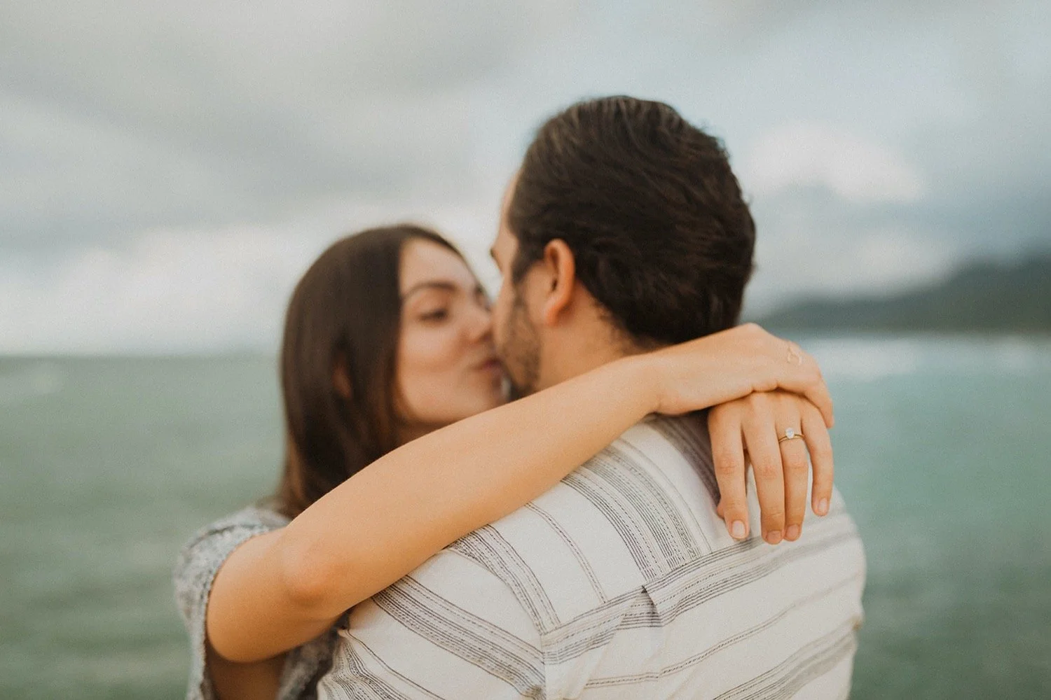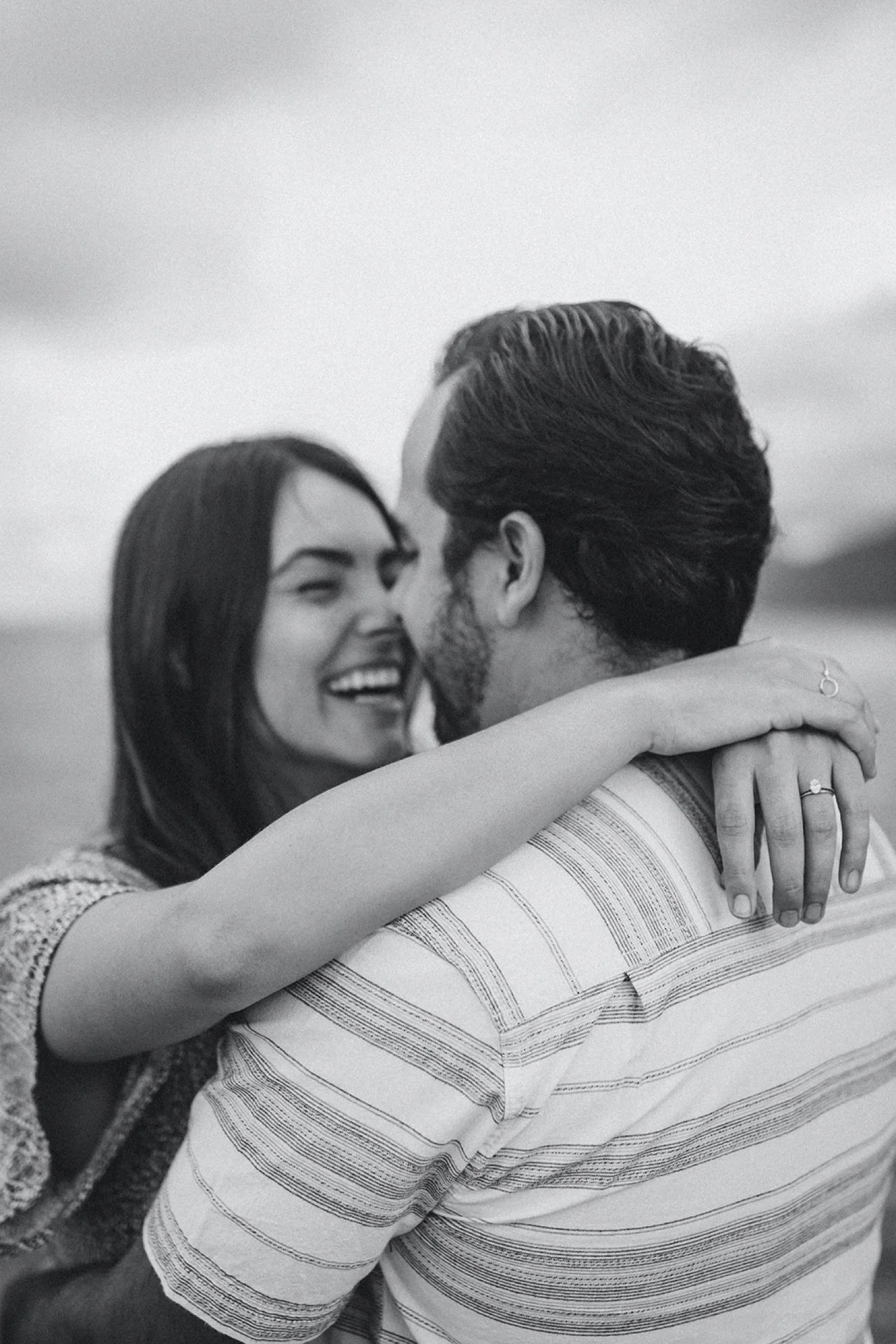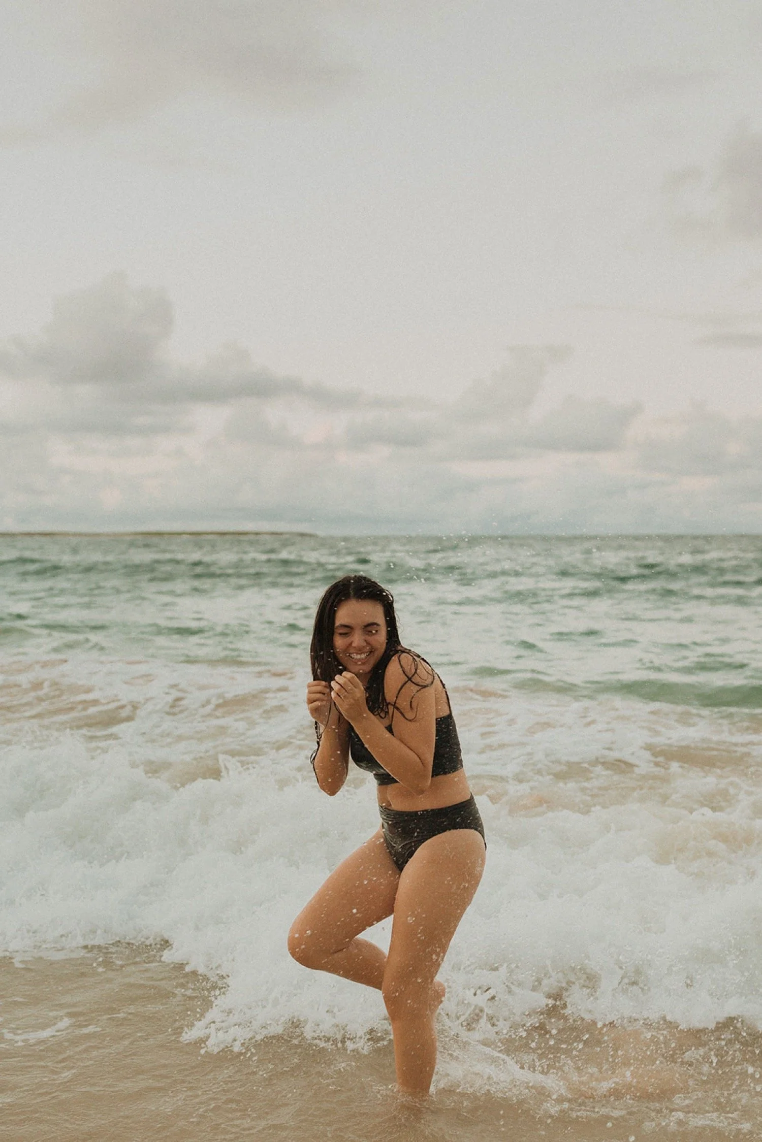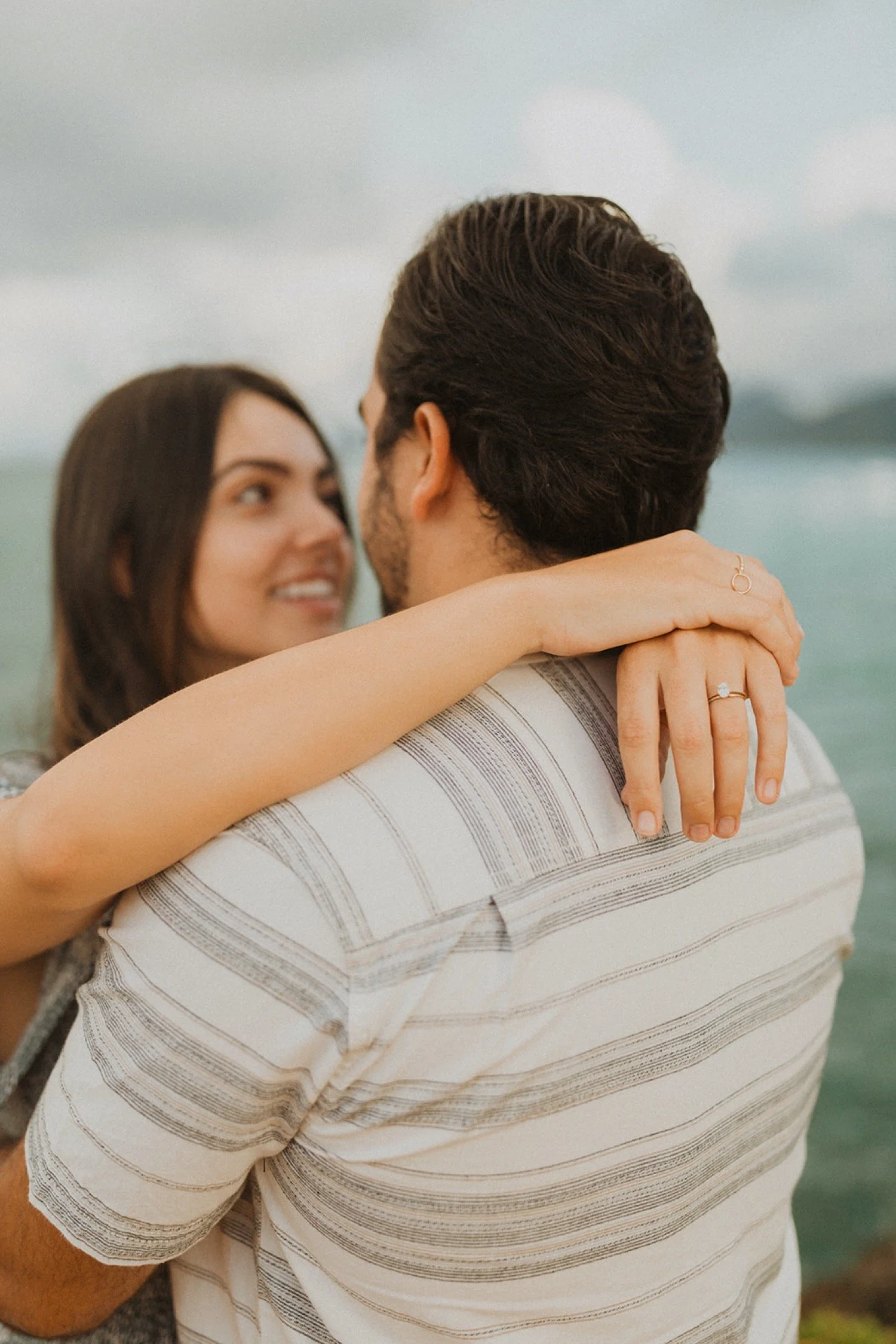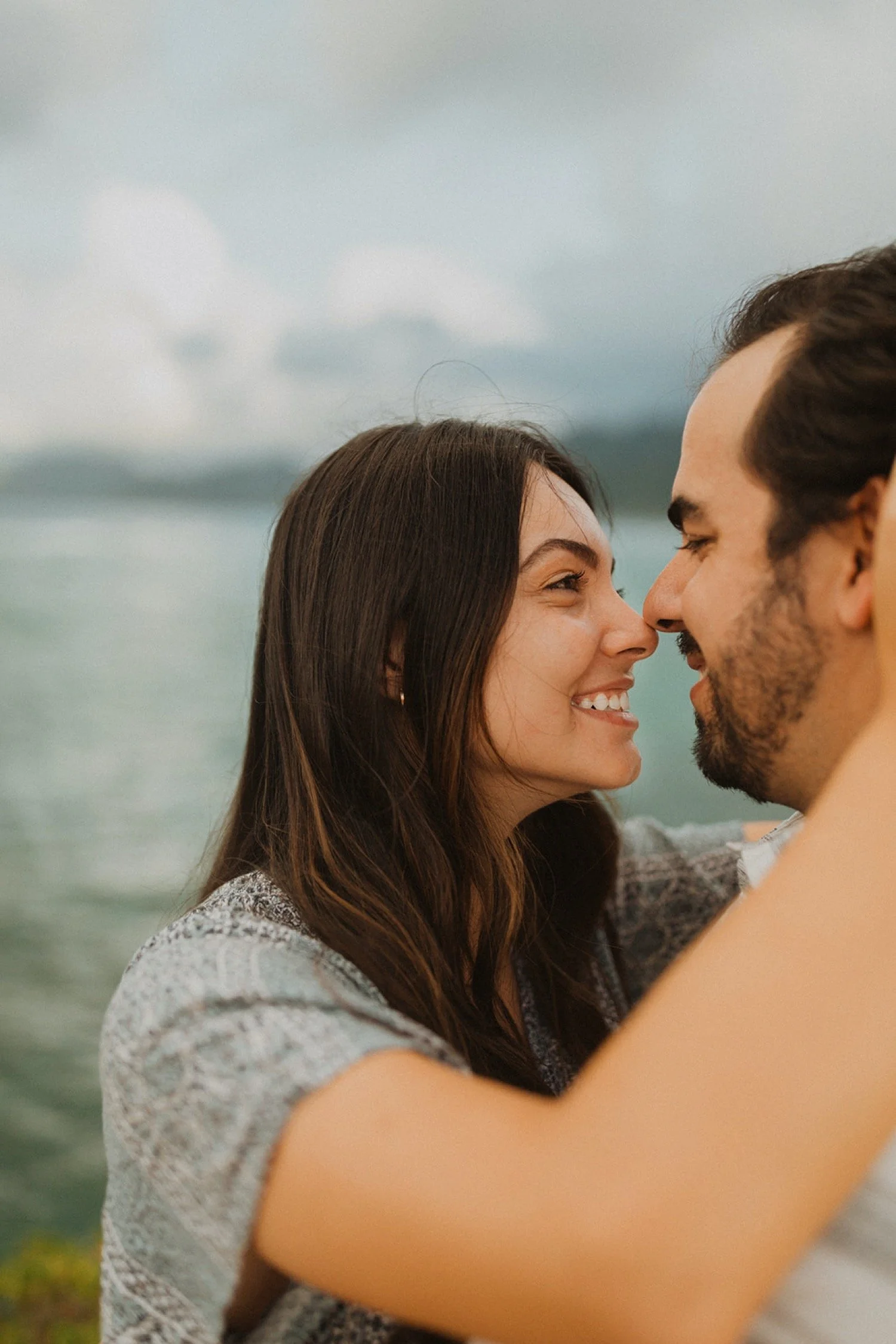 We first, climbed up a cliff and arrived at the most beautiful cliffside spot that overlooked the whole bay, and the prettiest blue ocean (that Hawaii never disappoints with). We got some amazing photos, that truly capture the beauty that this little Hawaiian island brings. Then, we headed down to the beach to play in the waves. I was so glad that Chris + Hanna wanted to get in the ocean for their couples session because it is always so much fun!