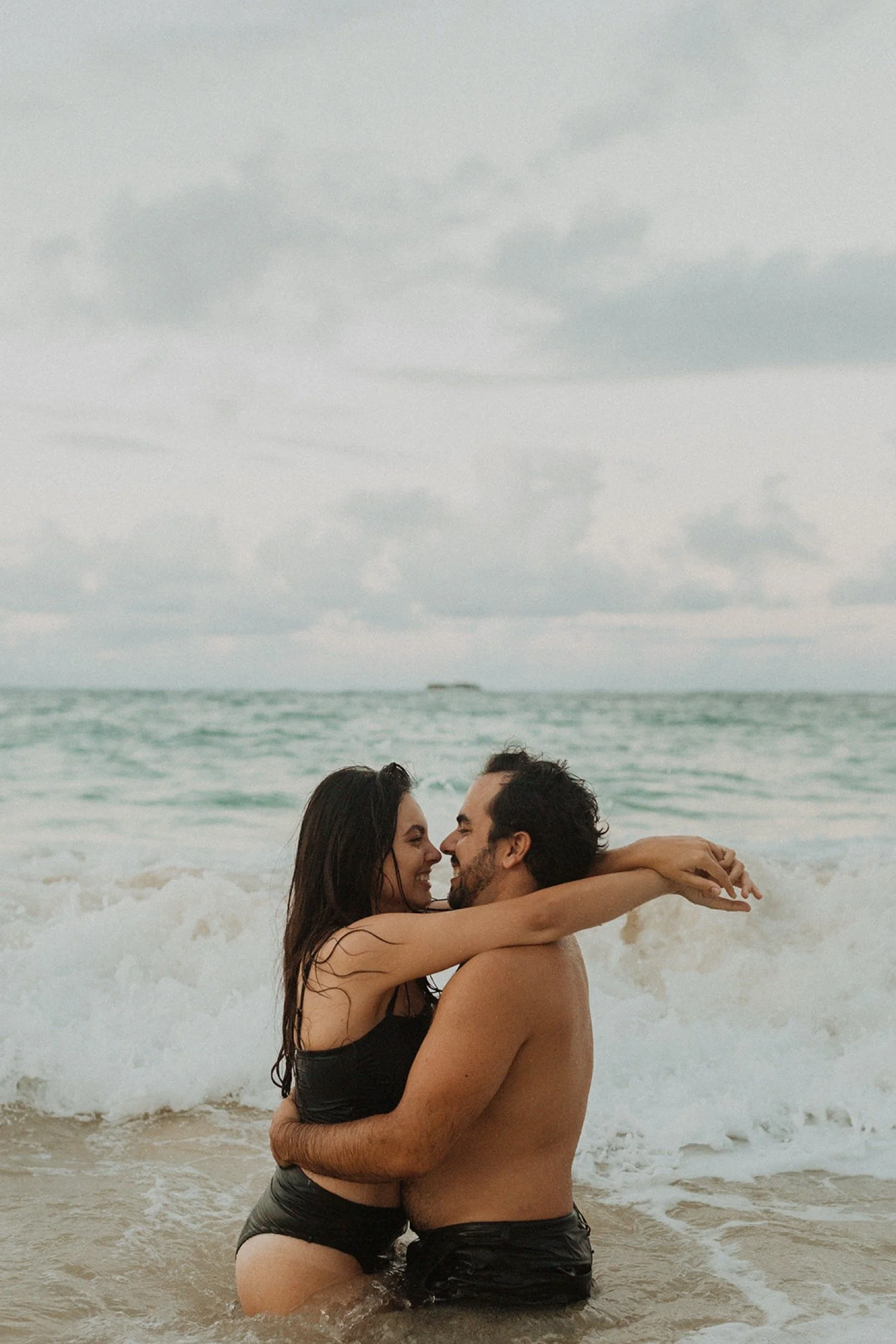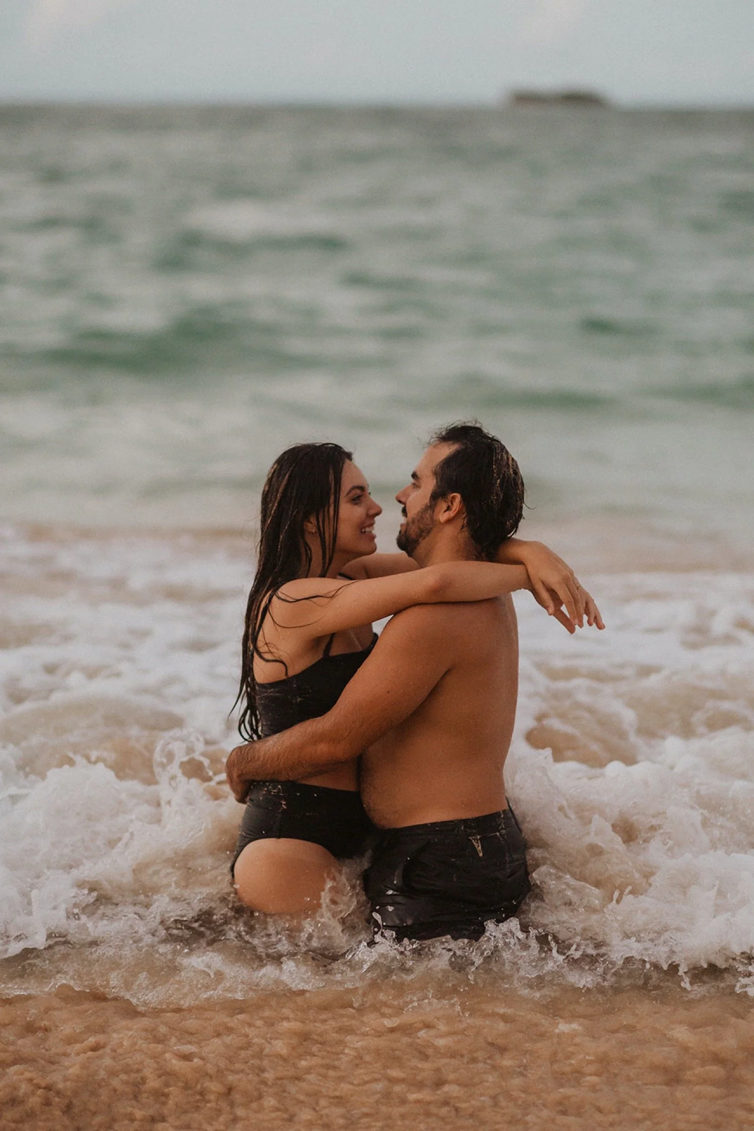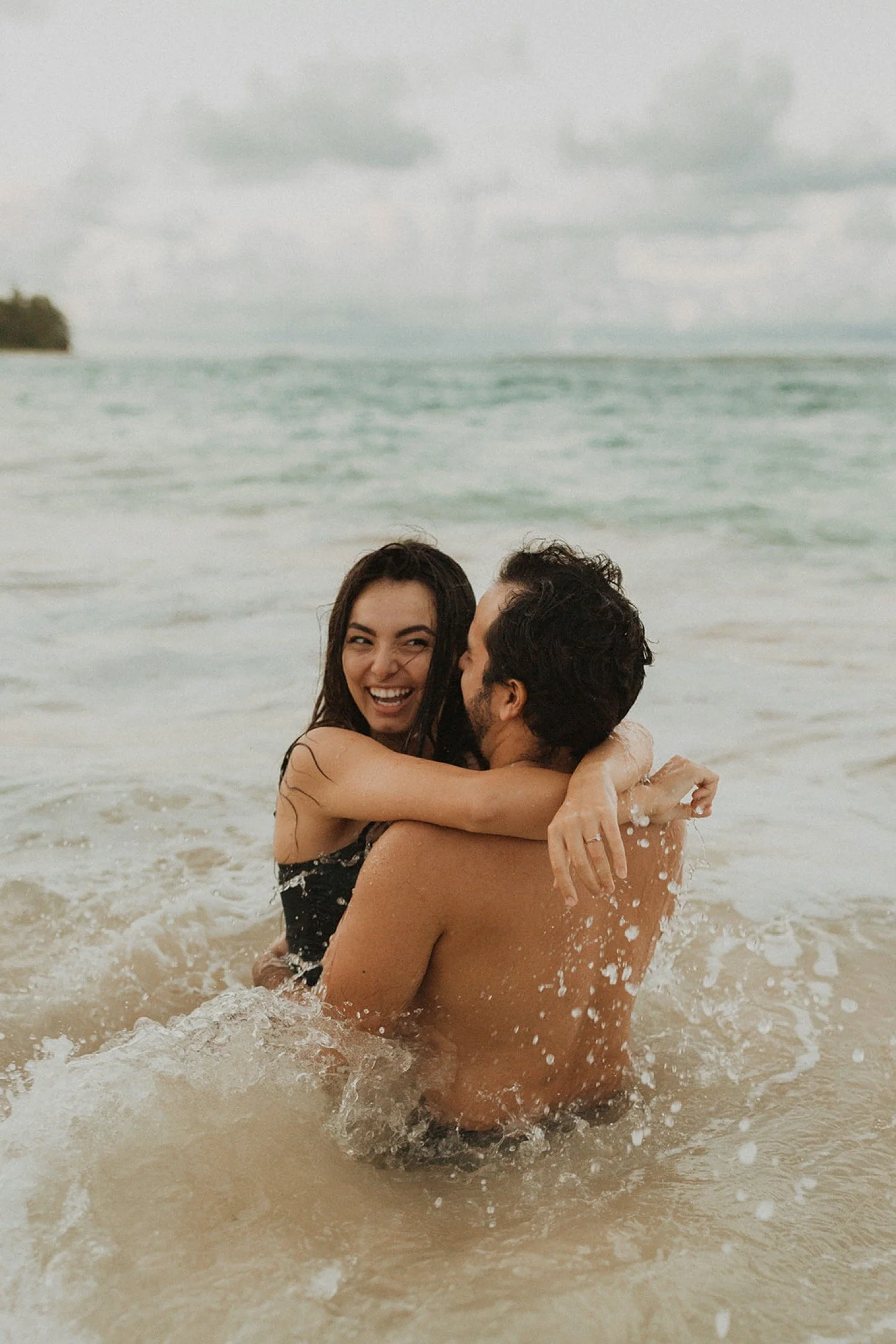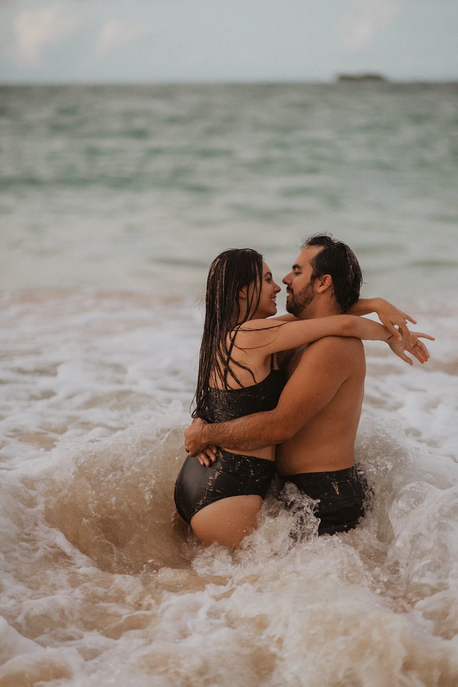 They played in the waves, and on the sand on the North Shore until the sun went down, it was so much fun capturing their love. We got some fun pictures of them in the ocean when the sun went down, and just before it turned dark and those turned out to be my favorite!