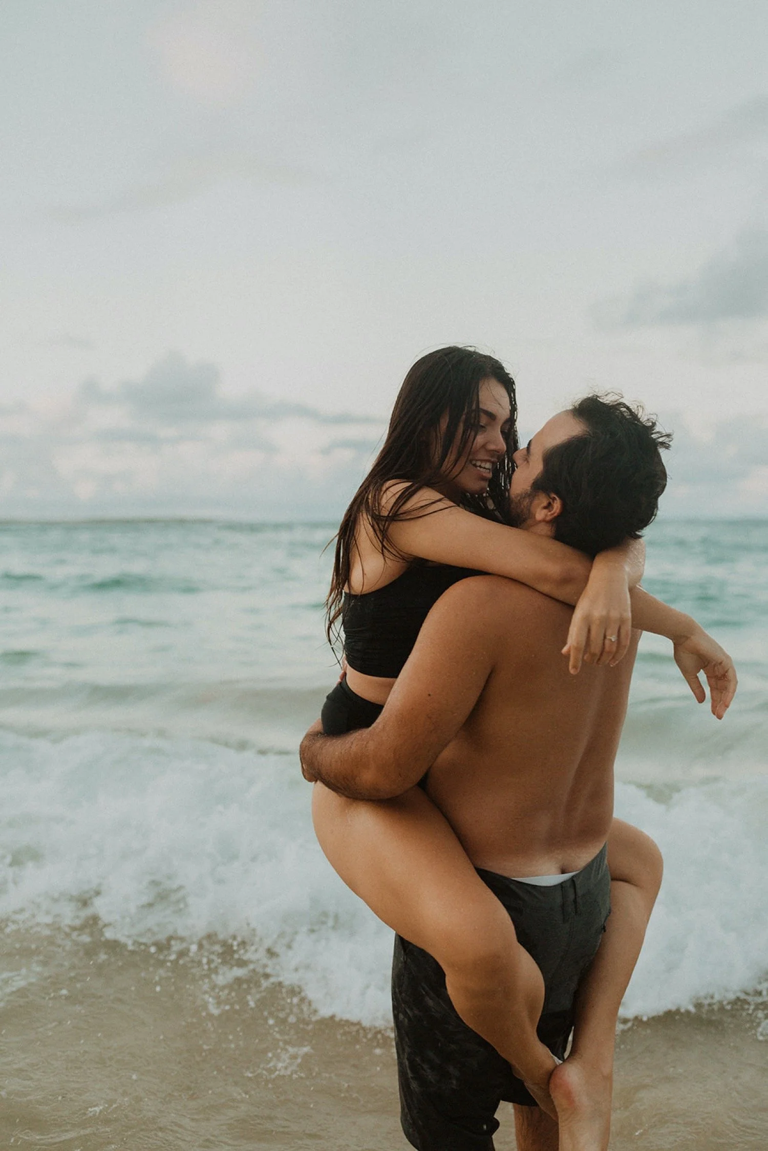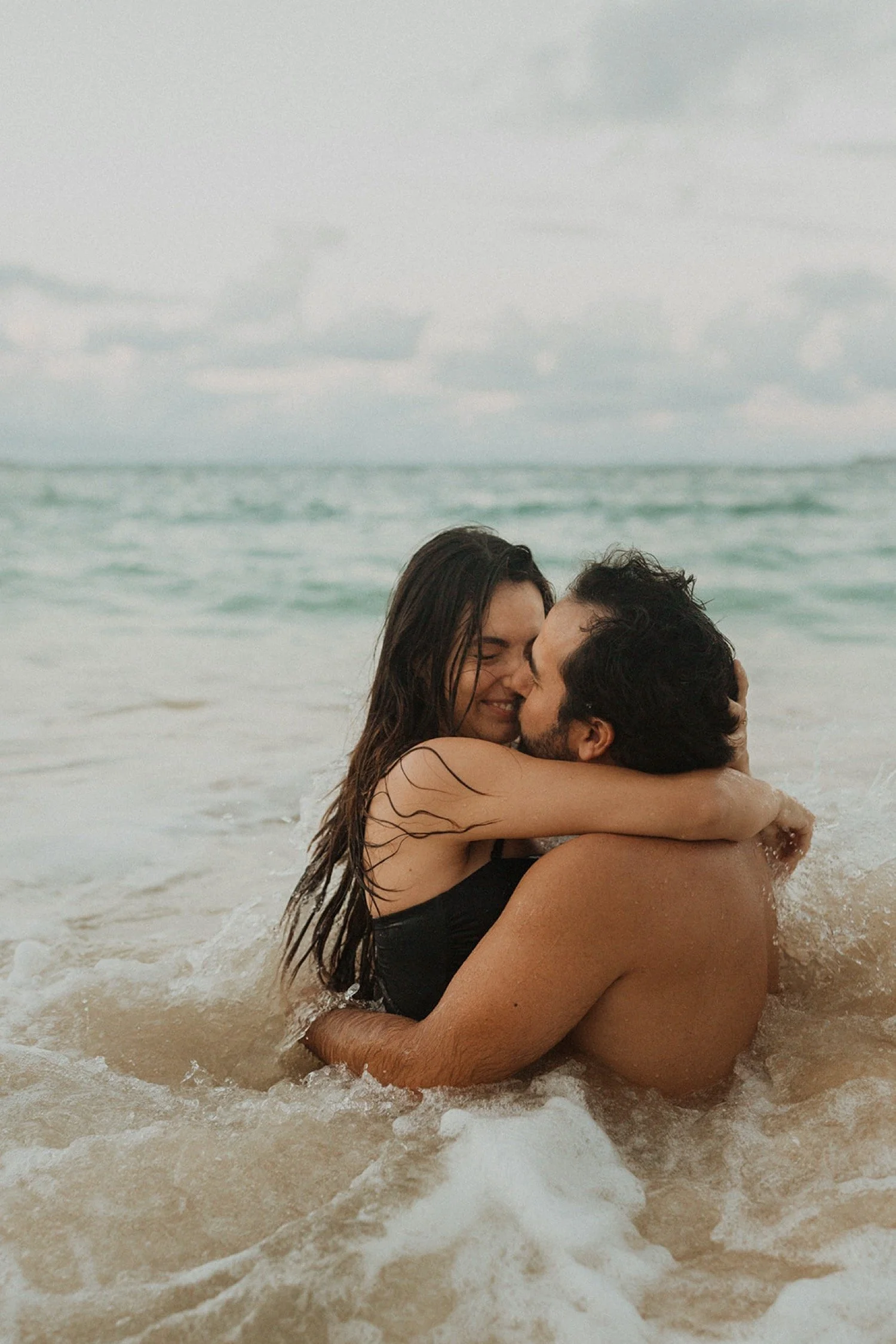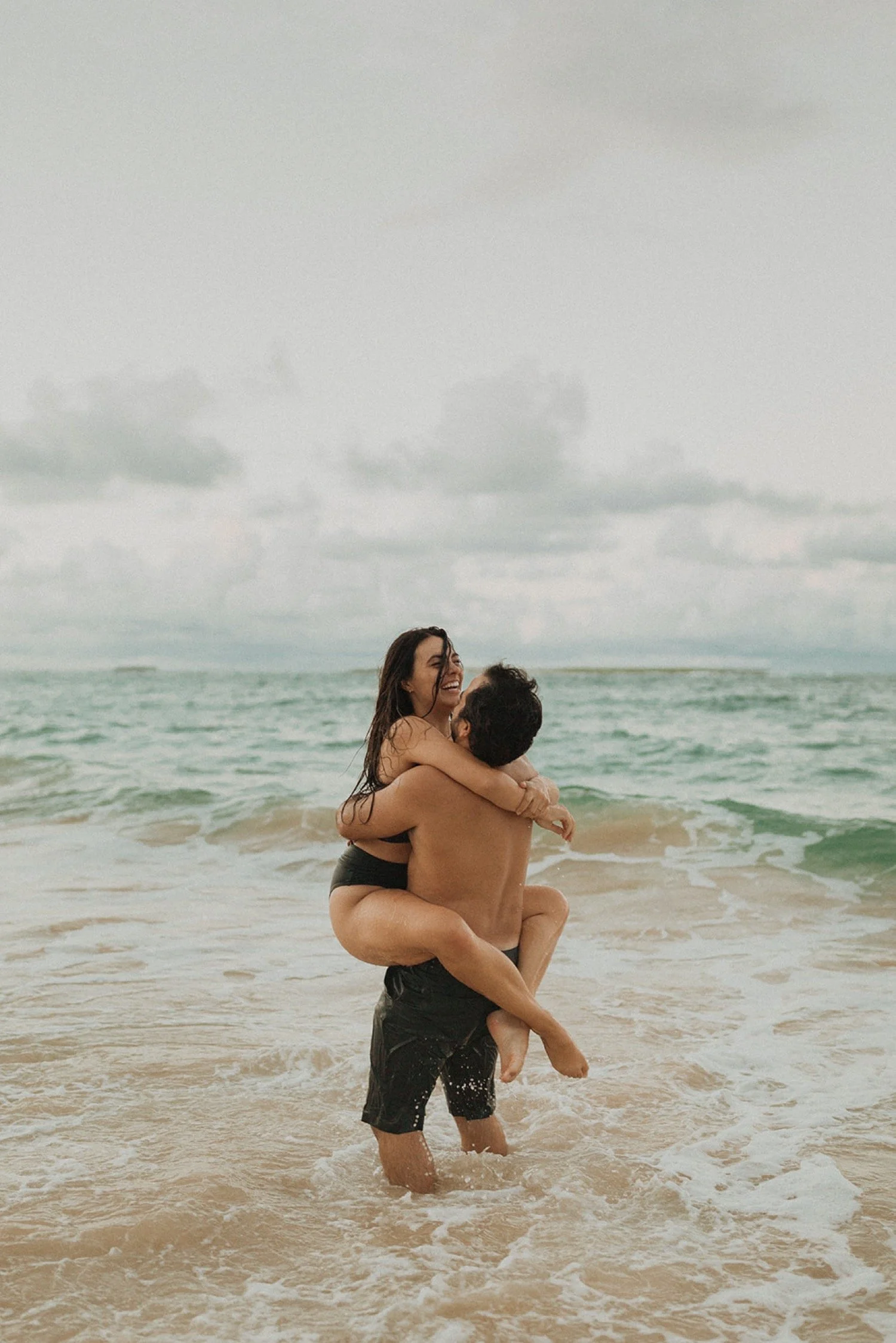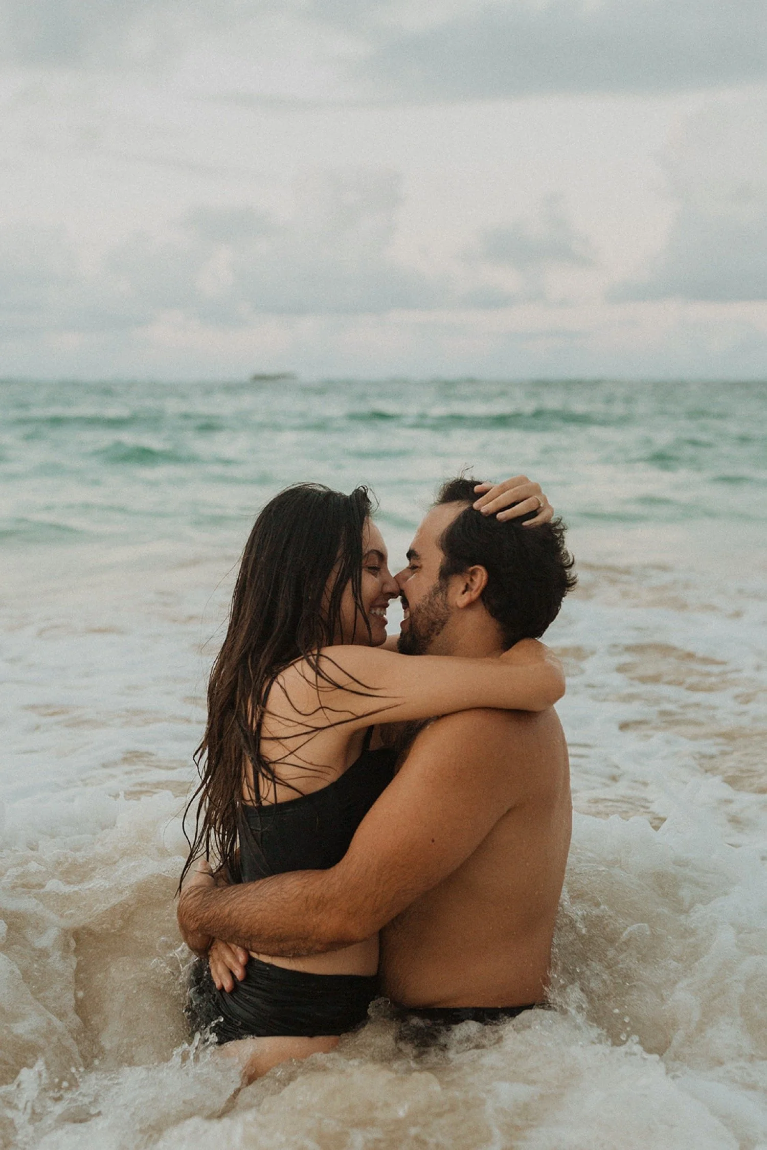 They played in the waves, and on the sand on the North Shore until the sun went down, it was so much fun capturing their love. We got some fun pictures of them in the ocean when the sun went down, and just before it turned dark and those turned out to be my favorite!