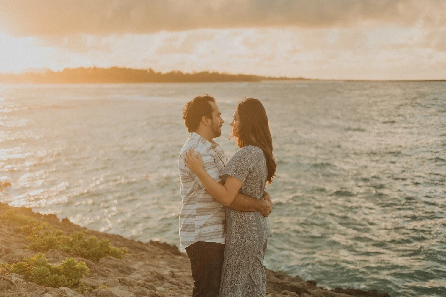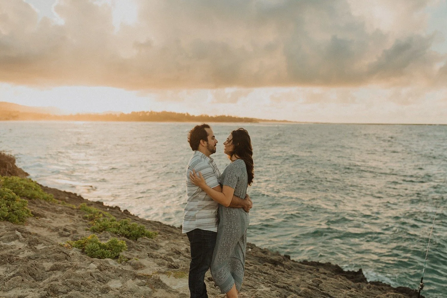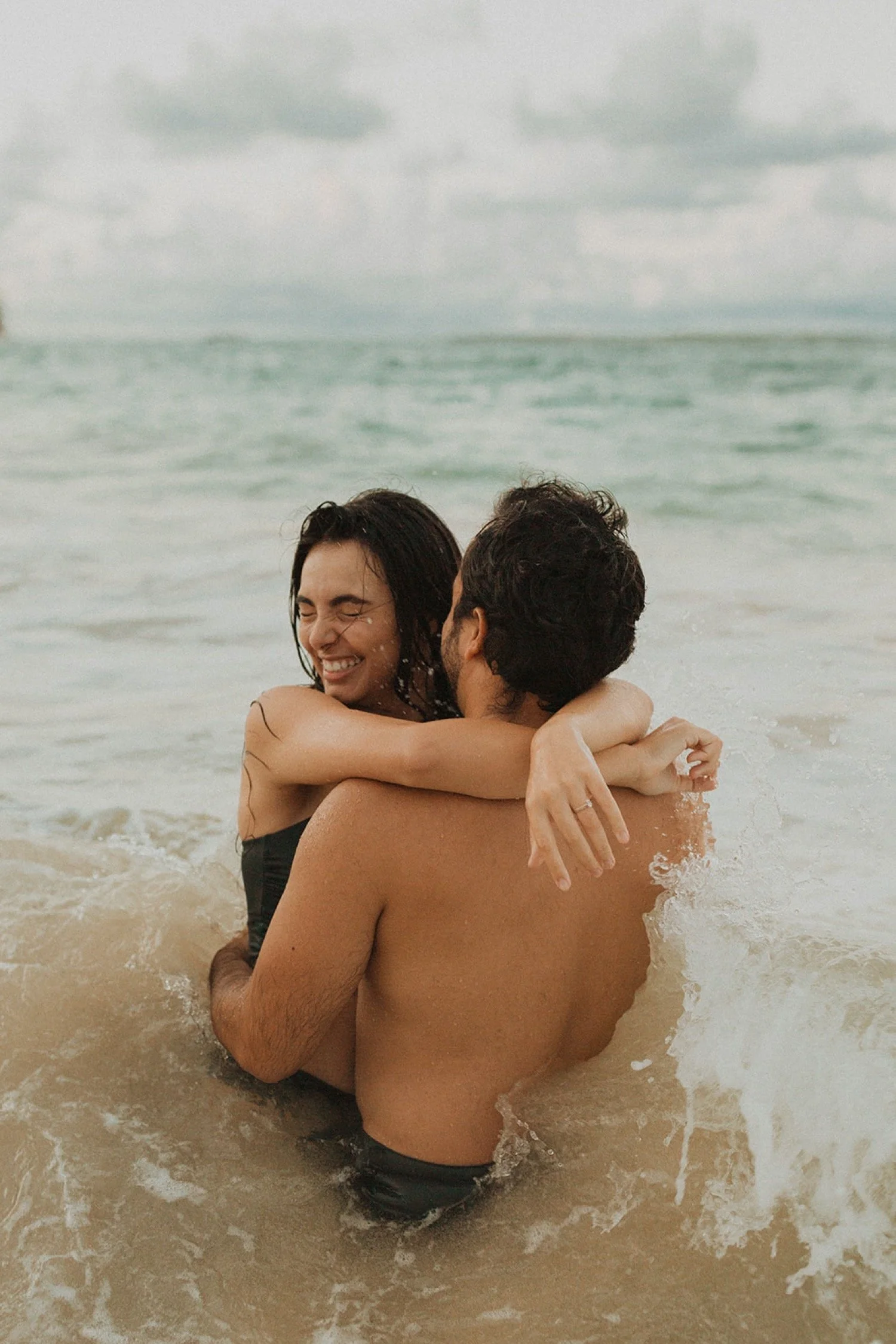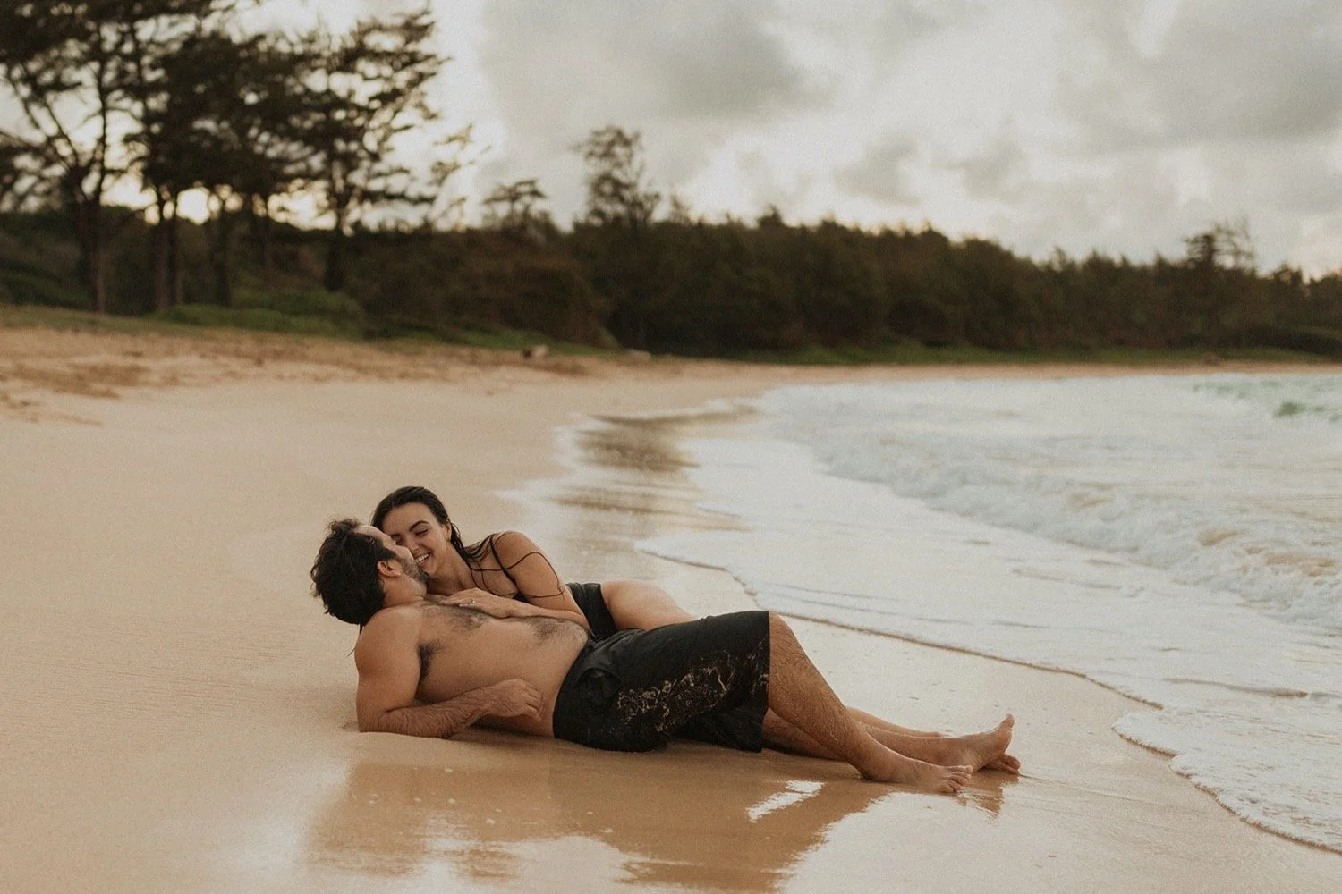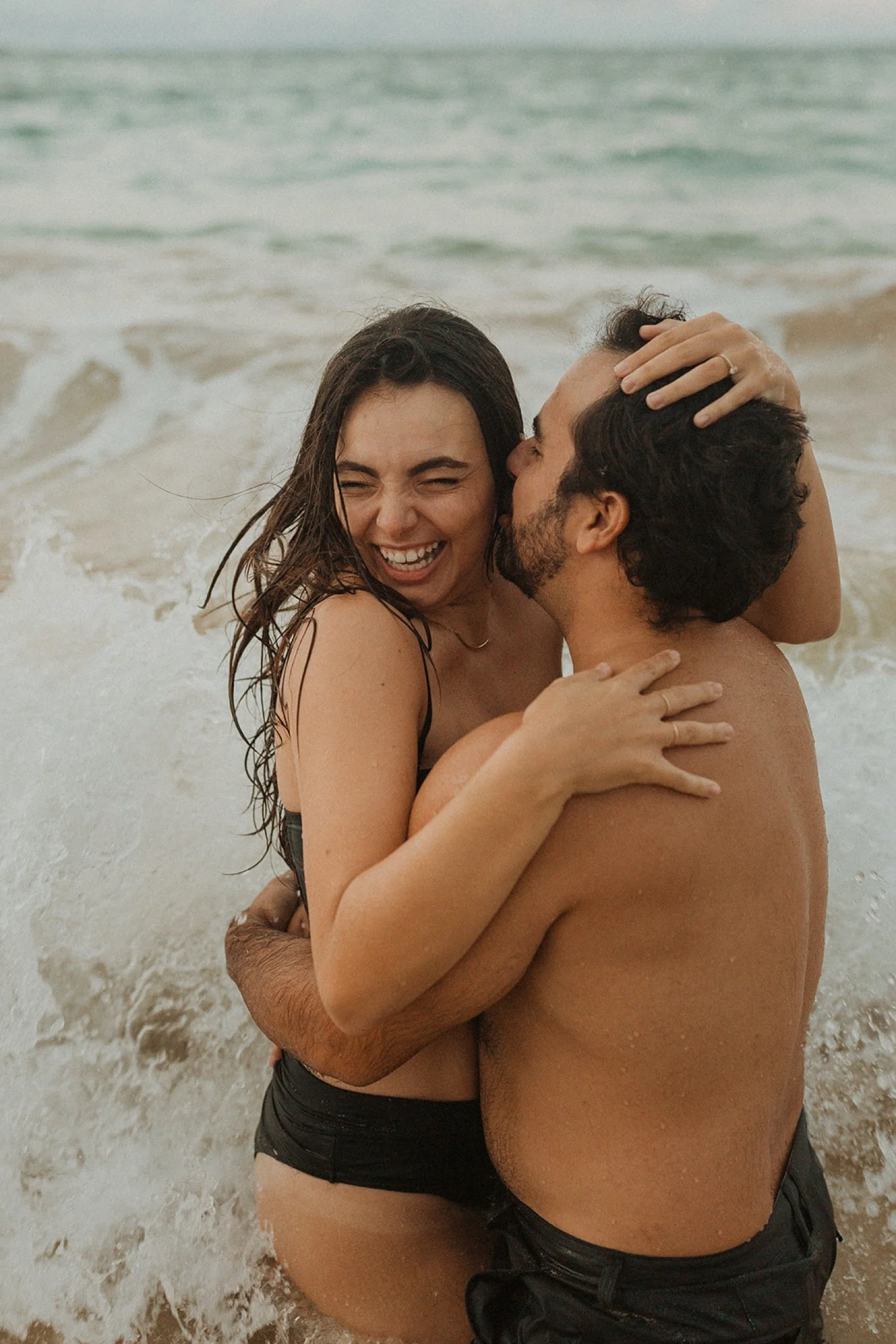 They played in the waves, and on the sand on the North Shore until the sun went down, it was so much fun capturing their love. We got some fun pictures of them in the ocean when the sun went down, and just before it turned dark and those turned out to be my favorite!