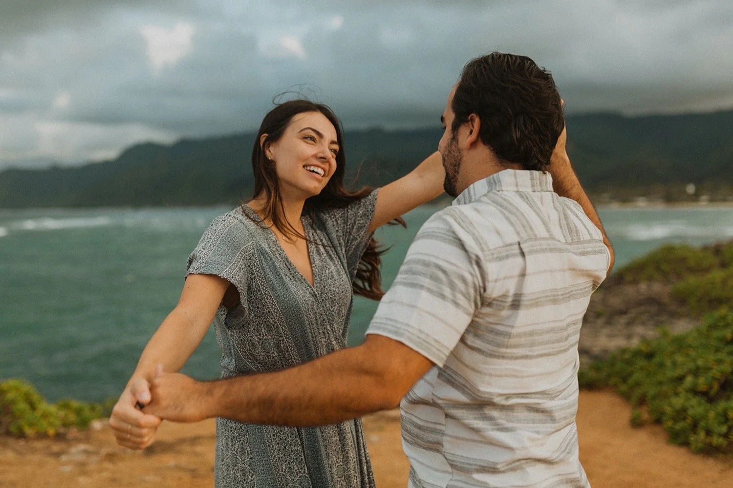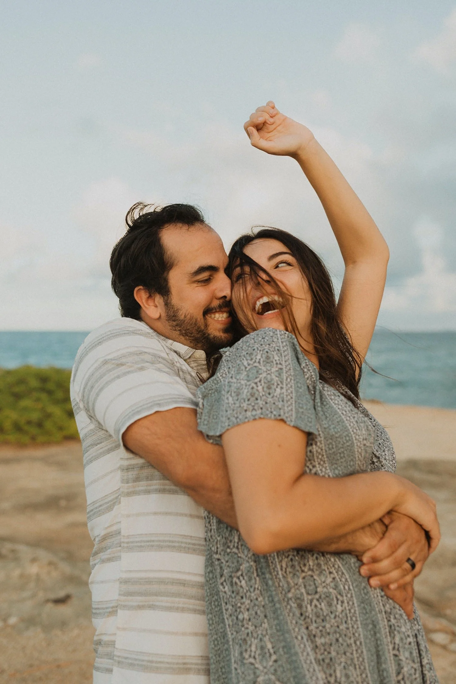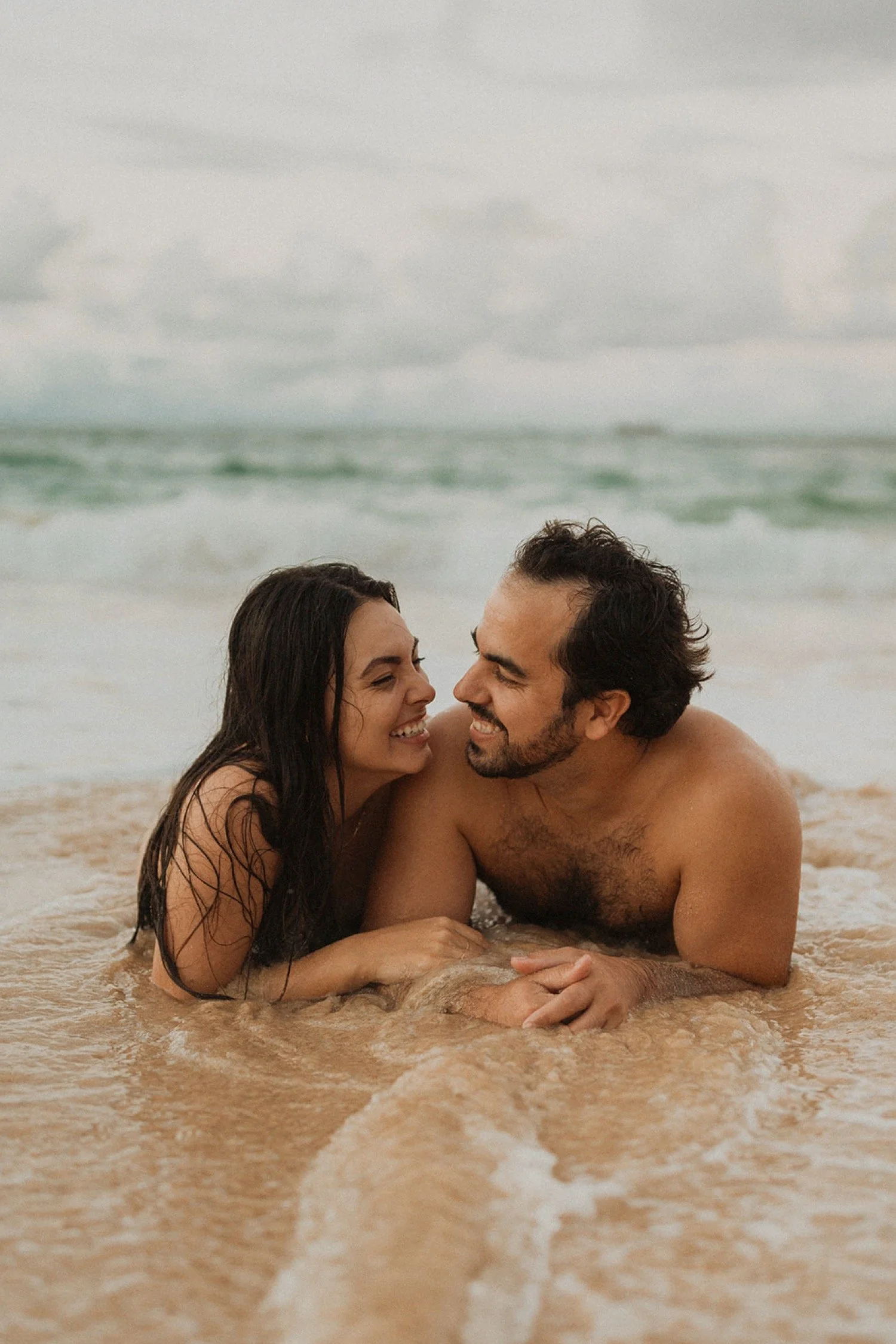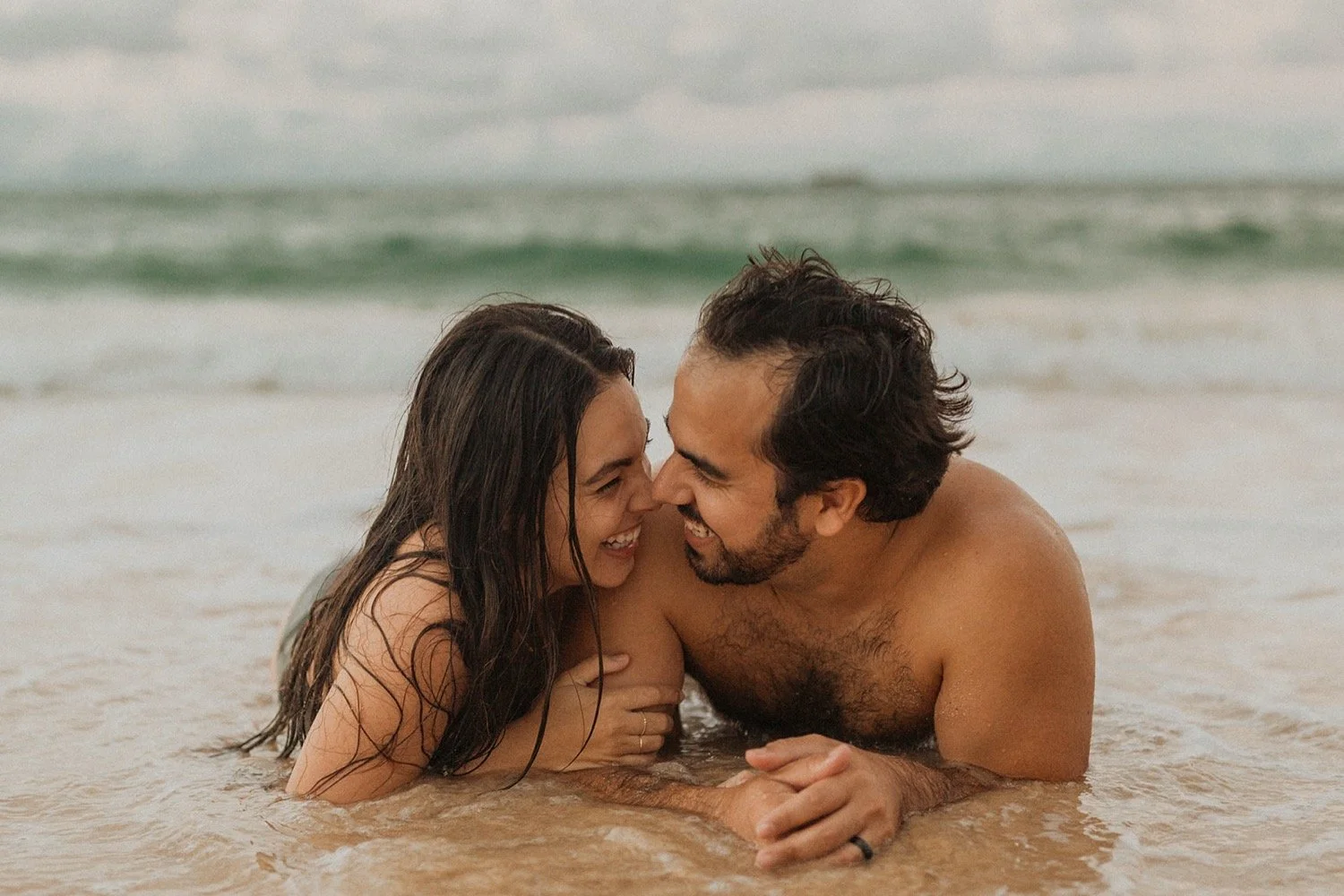 They played in the waves, and on the sand on the North Shore until the sun went down, it was so much fun capturing their love. We got some fun pictures of them in the ocean when the sun went down, and just before it turned dark and those turned out to be my favorite!