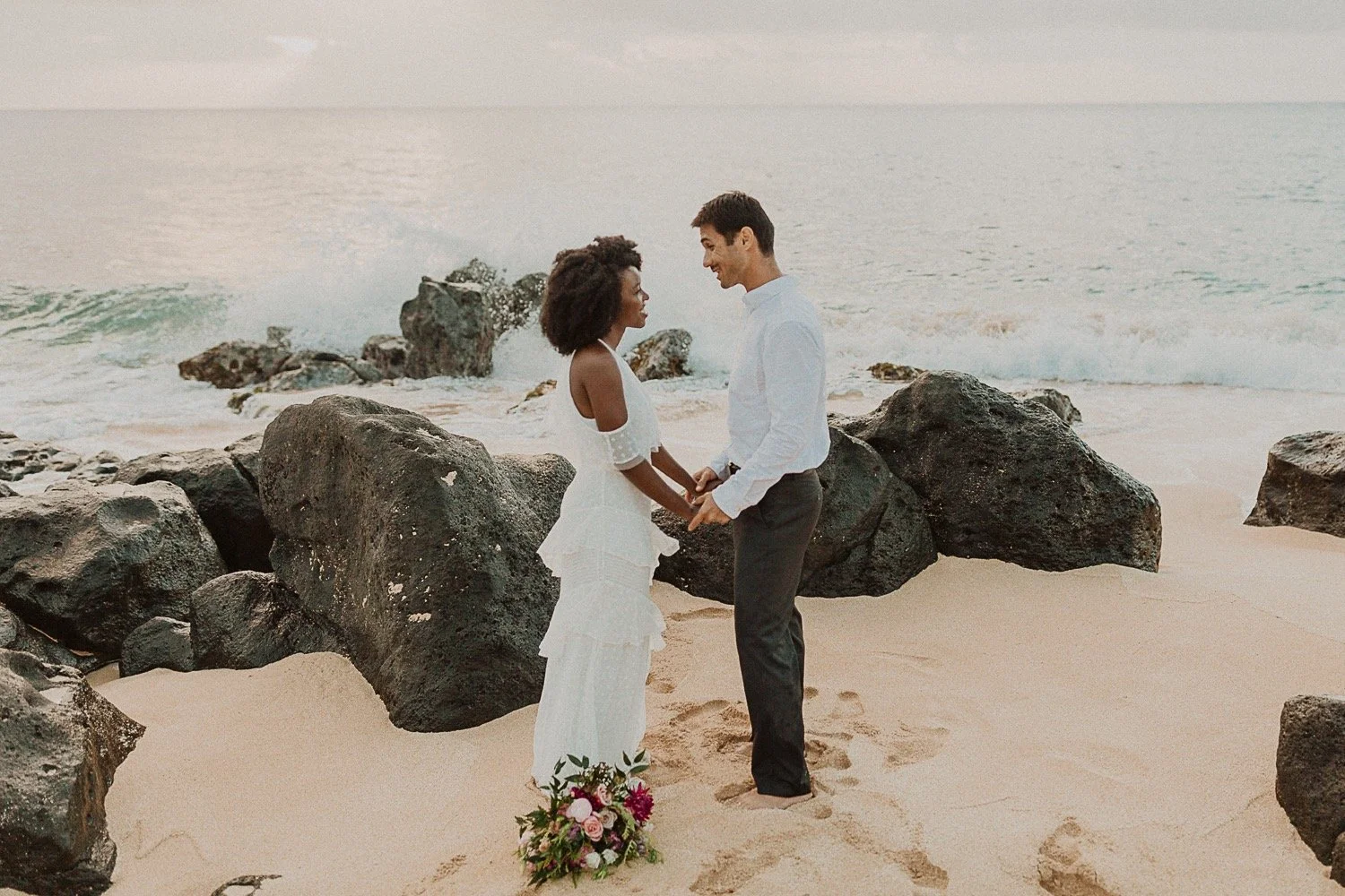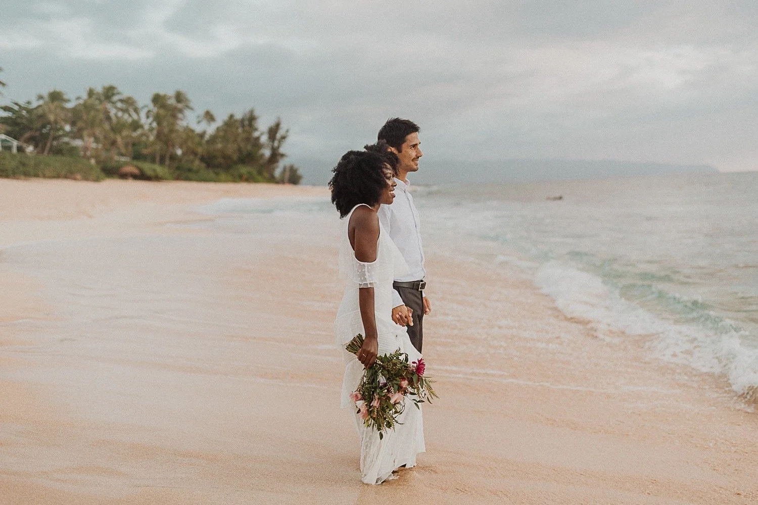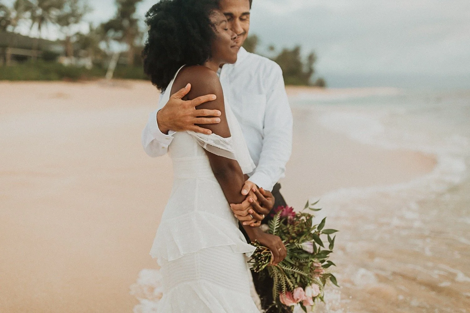 Lesego and Michael’s Intimate beach elopement was such a simple yet beautiful day. I met with them on the north shore of Oahu, on pipeline beach. It is a world-famous beach known for surfing, but it is also one of my favorite spots in Hawaii.