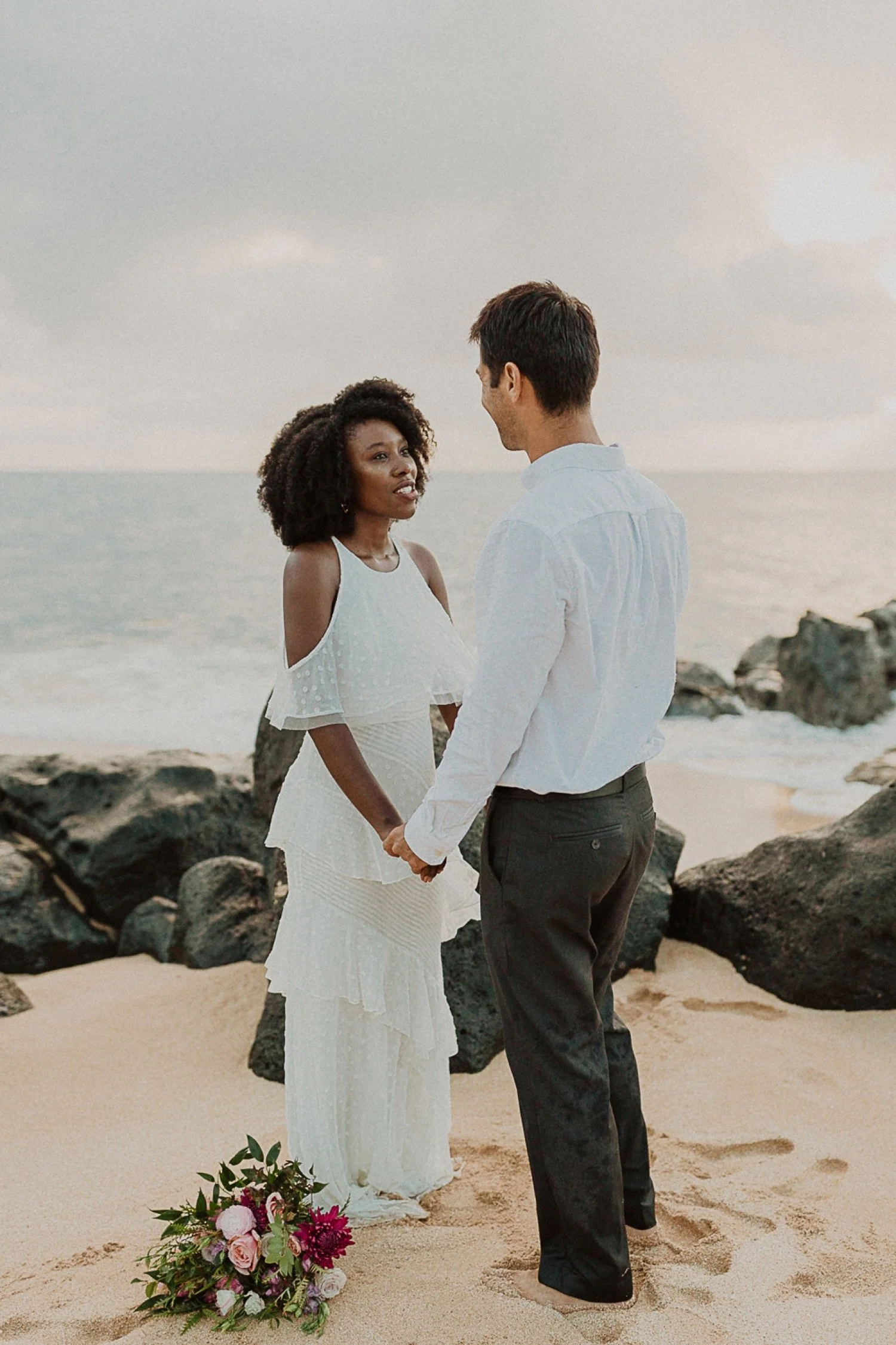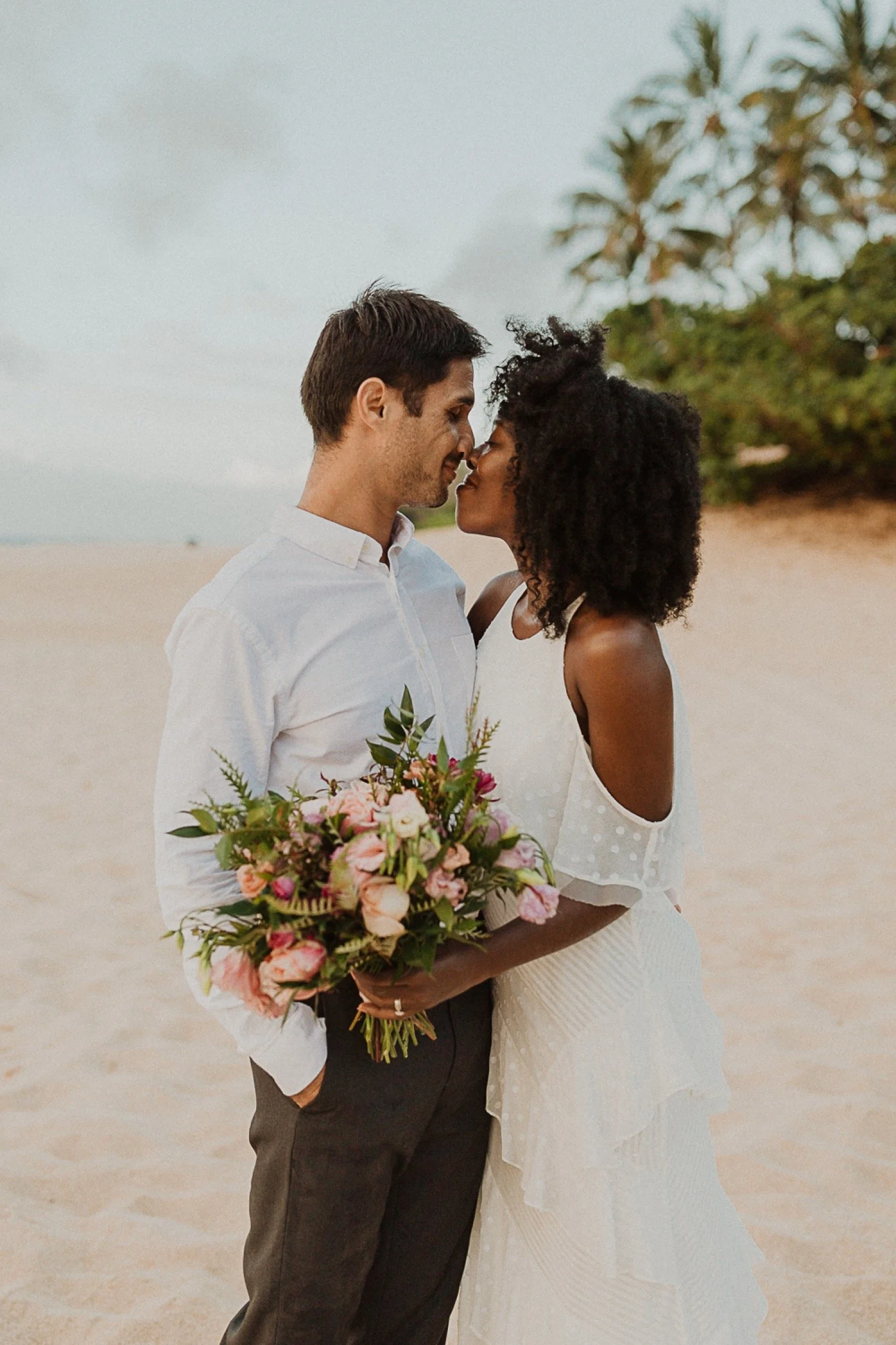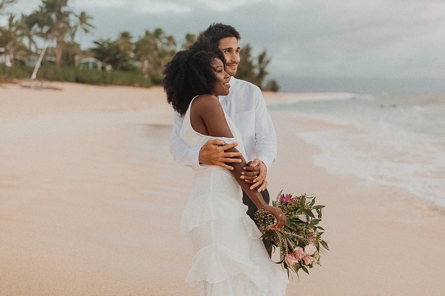 Lesego and Michael’s Intimate beach elopement was such a simple yet beautiful day. I met with them on the north shore of Oahu, on pipeline beach. It is a world-famous beach known for surfing, but it is also one of my favorite spots in Hawaii.