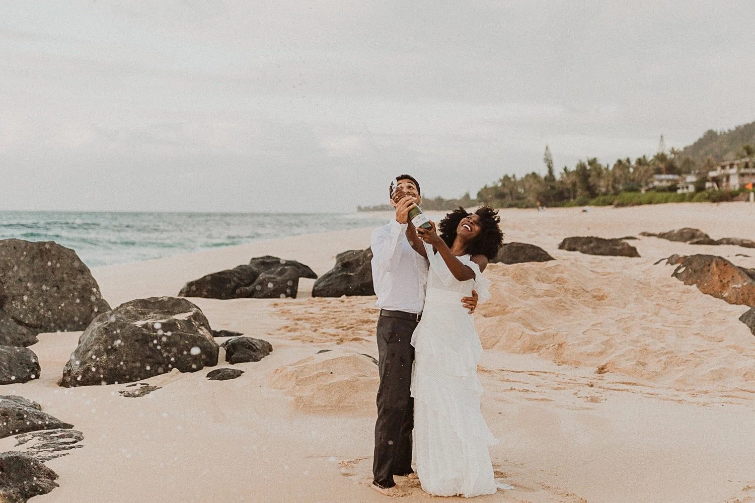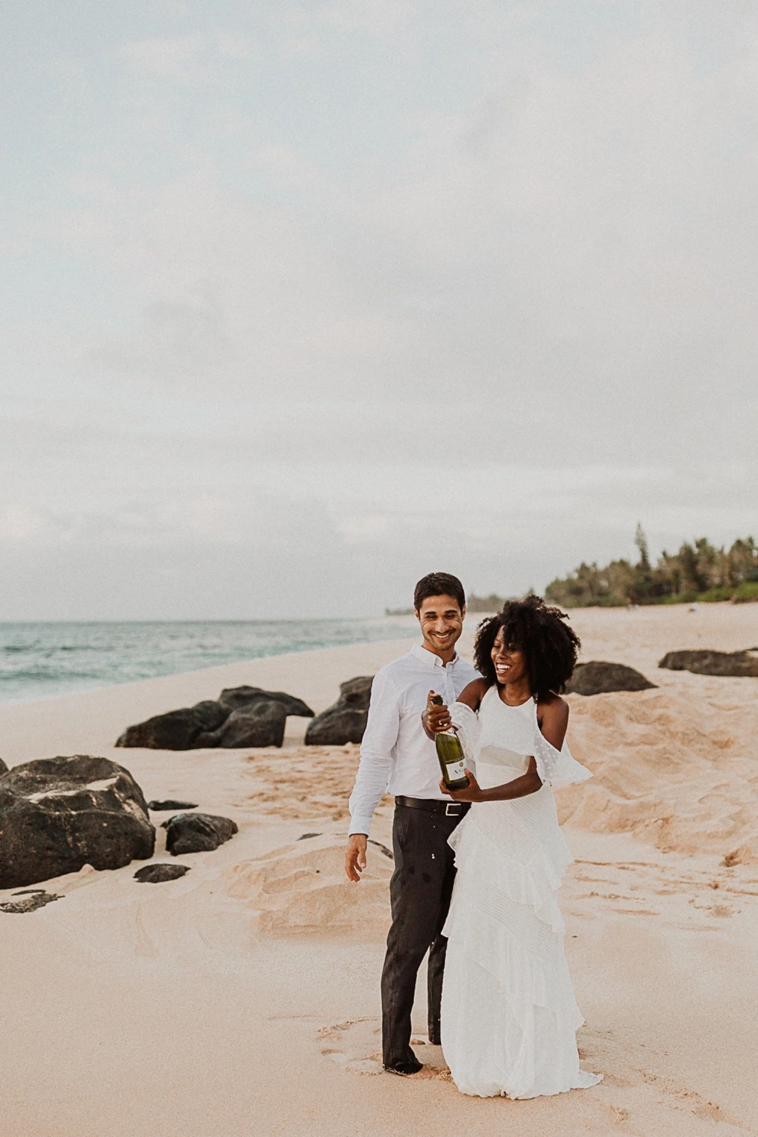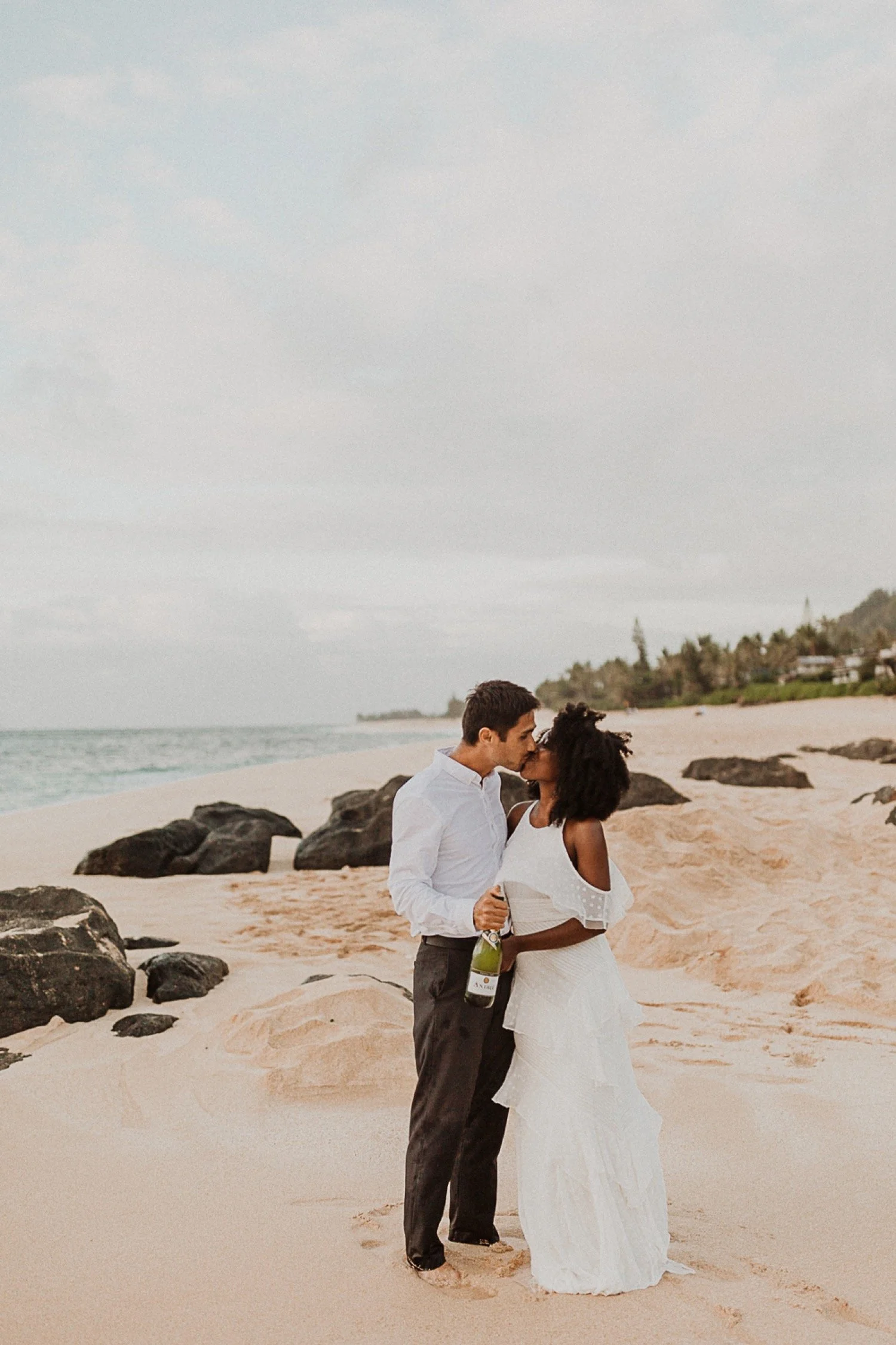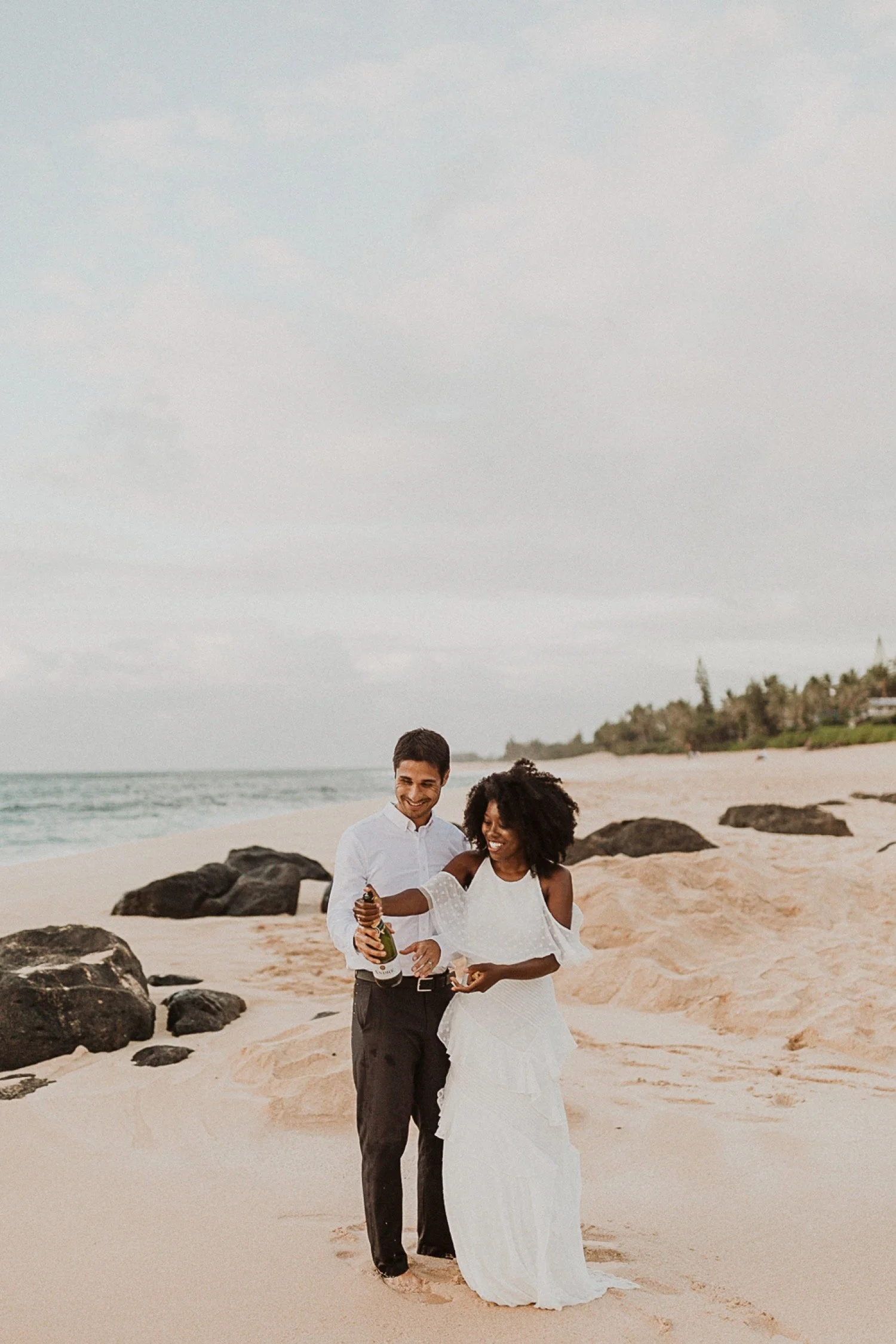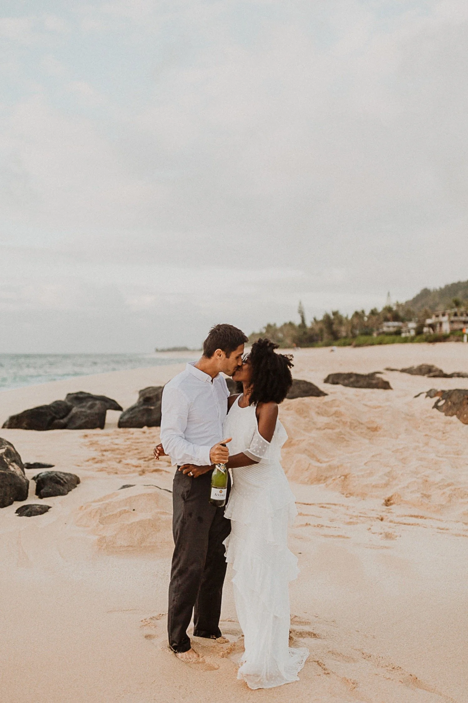 They started with a simple ceremony on the sand with just the two. There was no one around so it was very quiet, with the sound of waves crashing in the background. These moments are so intimate and special and a reason that I love elopements. We popped some champagne after to celebrate!