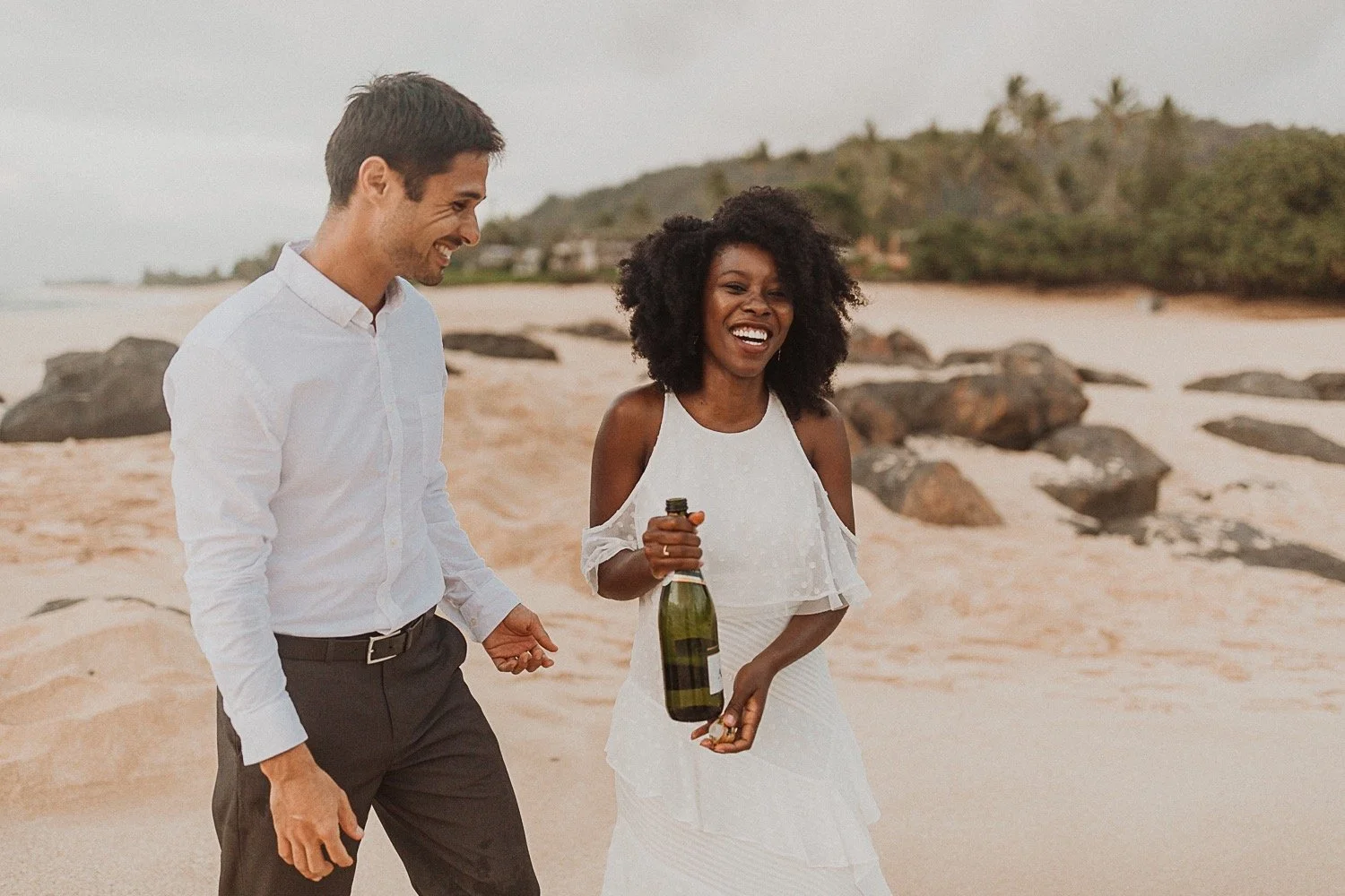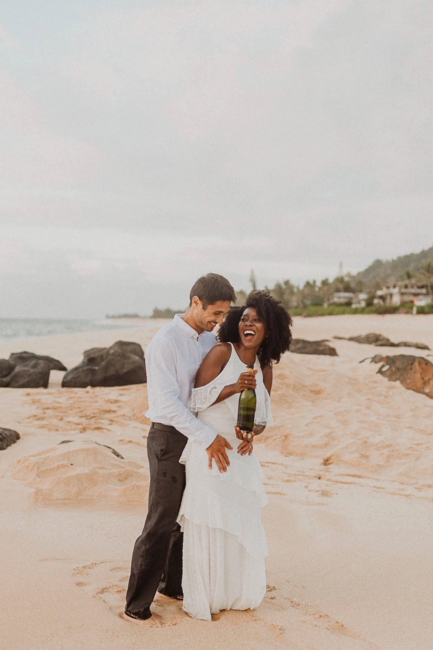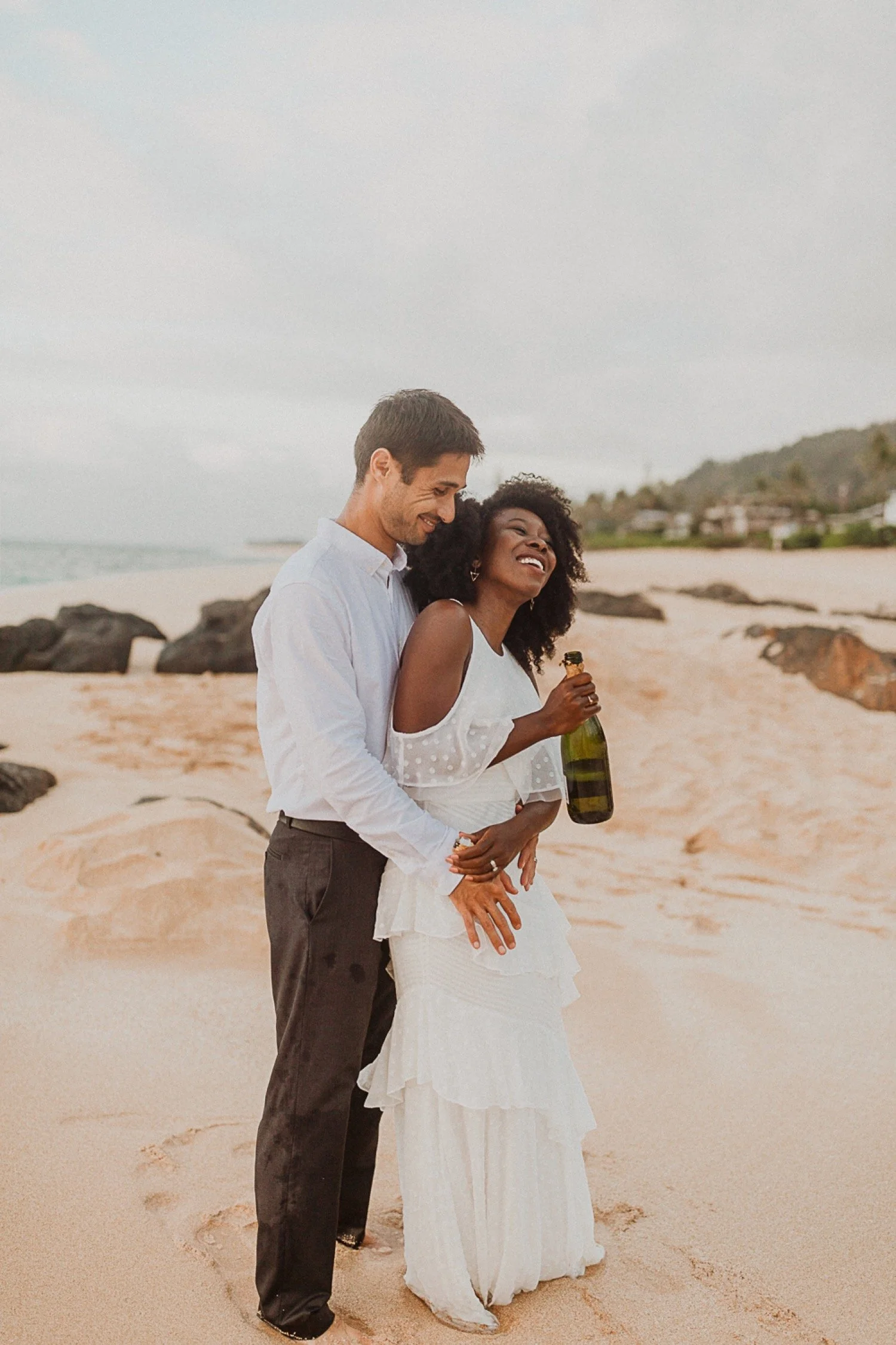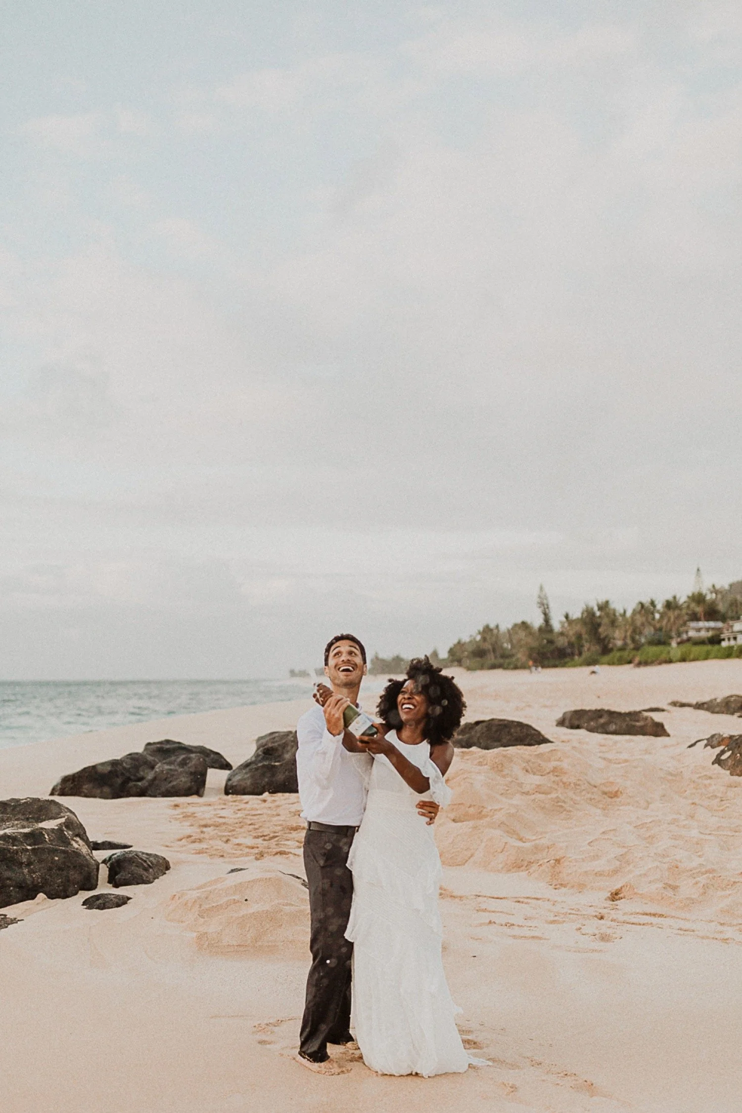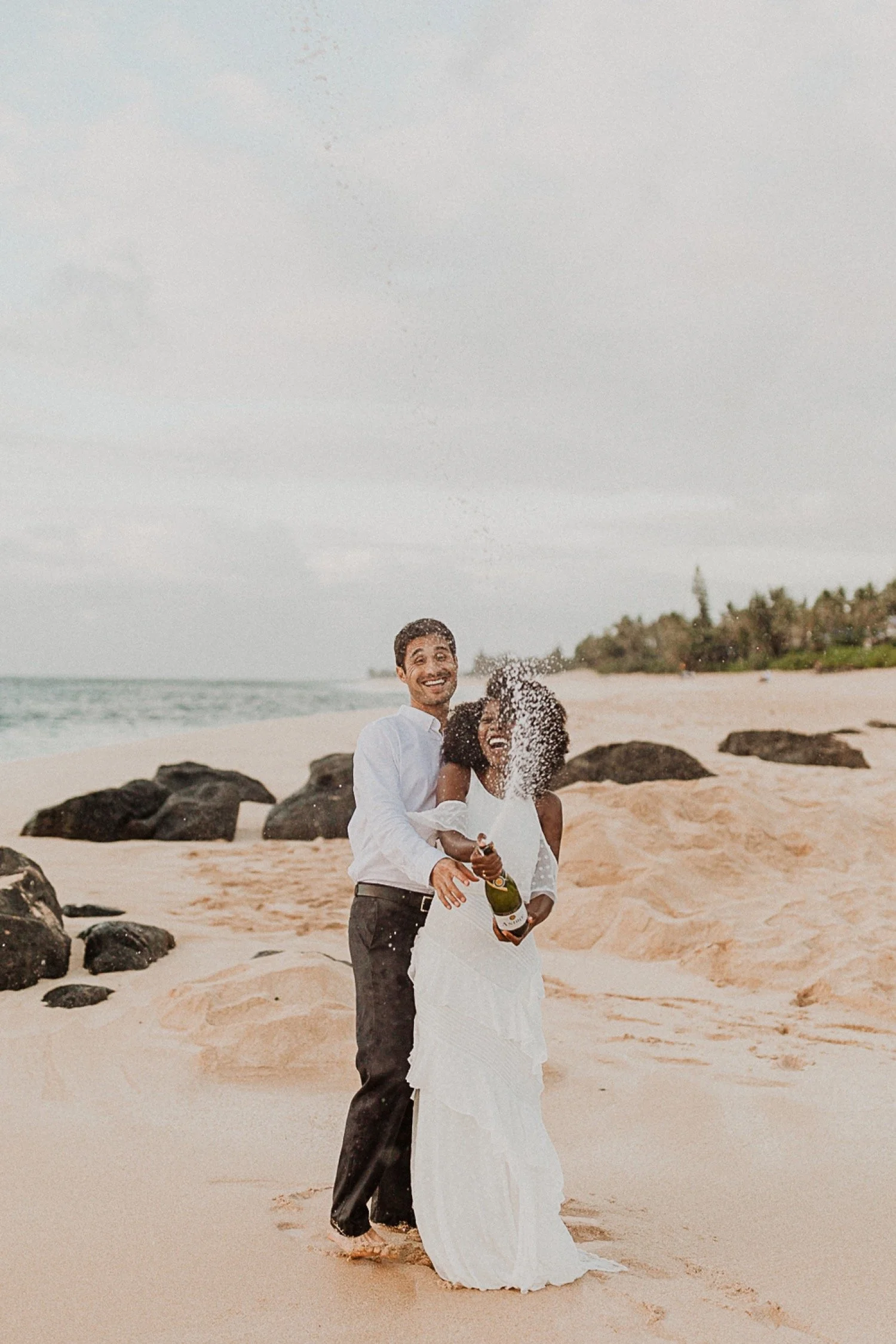 They started with a simple ceremony on the sand with just the two. There was no one around so it was very quiet, with the sound of waves crashing in the background. These moments are so intimate and special and a reason that I love elopements. We popped some champagne after to celebrate!
