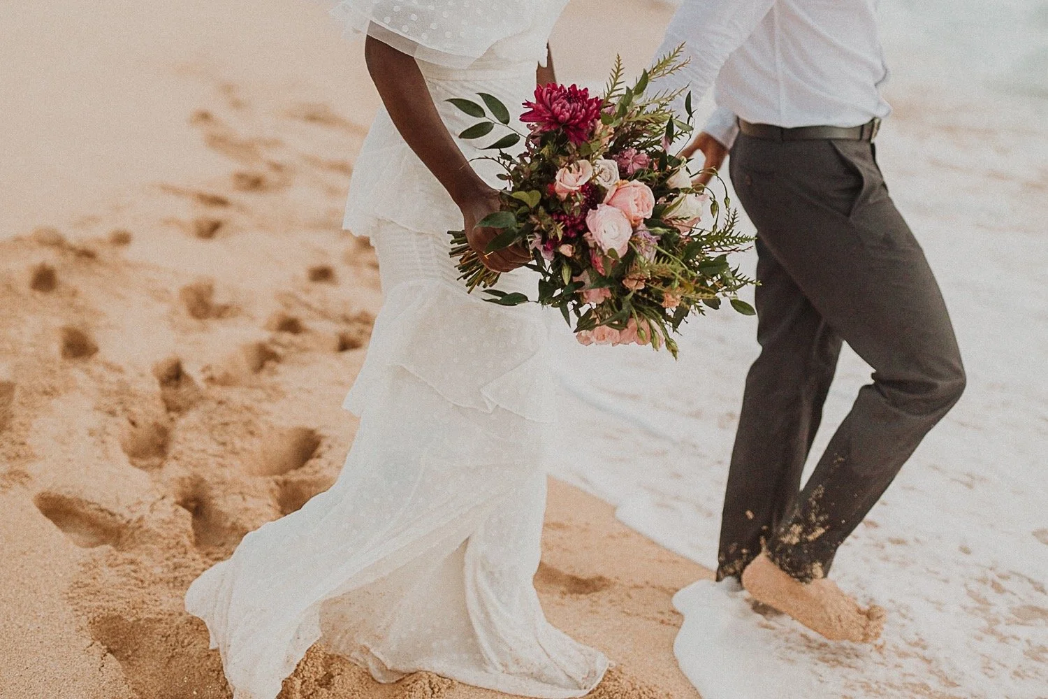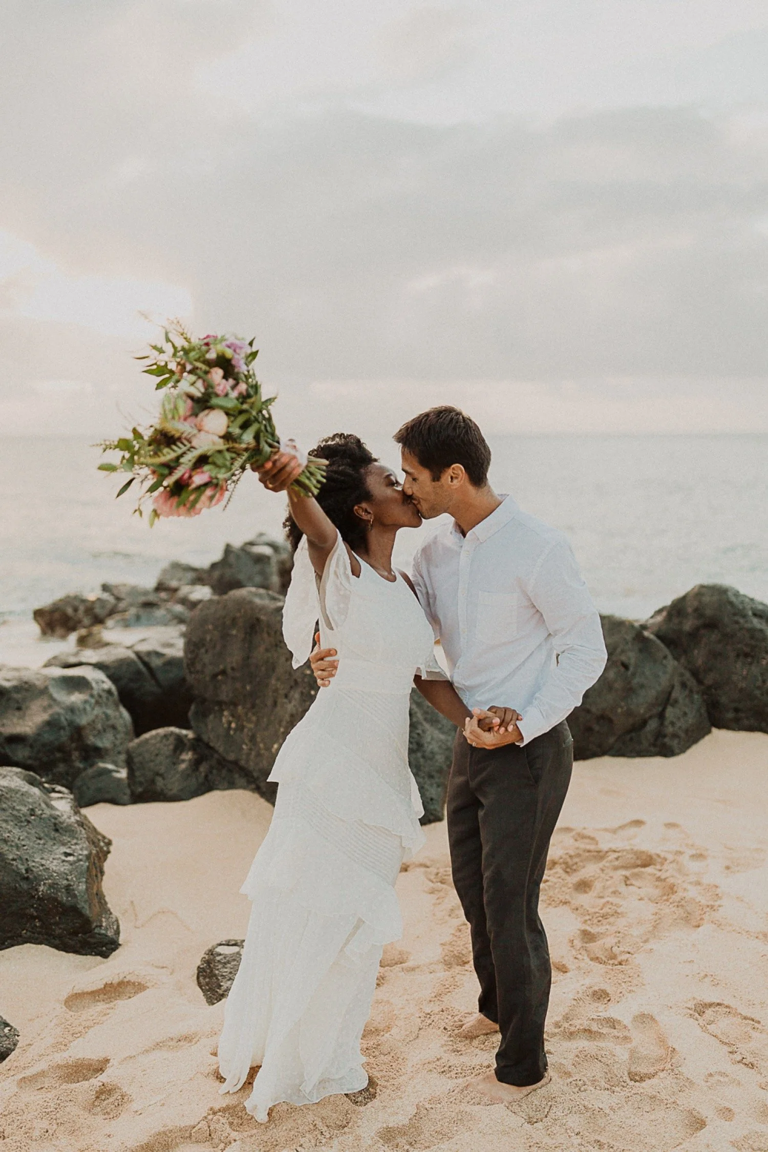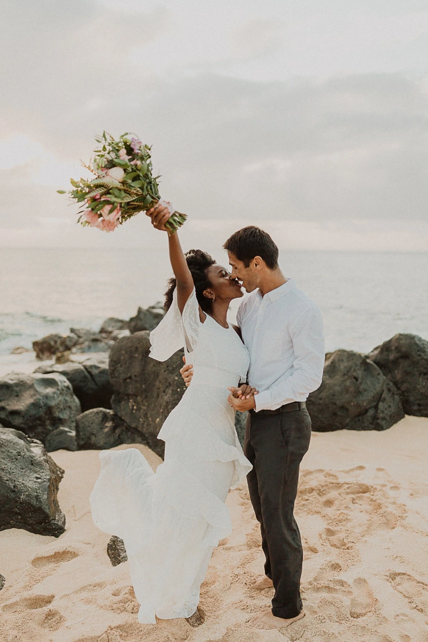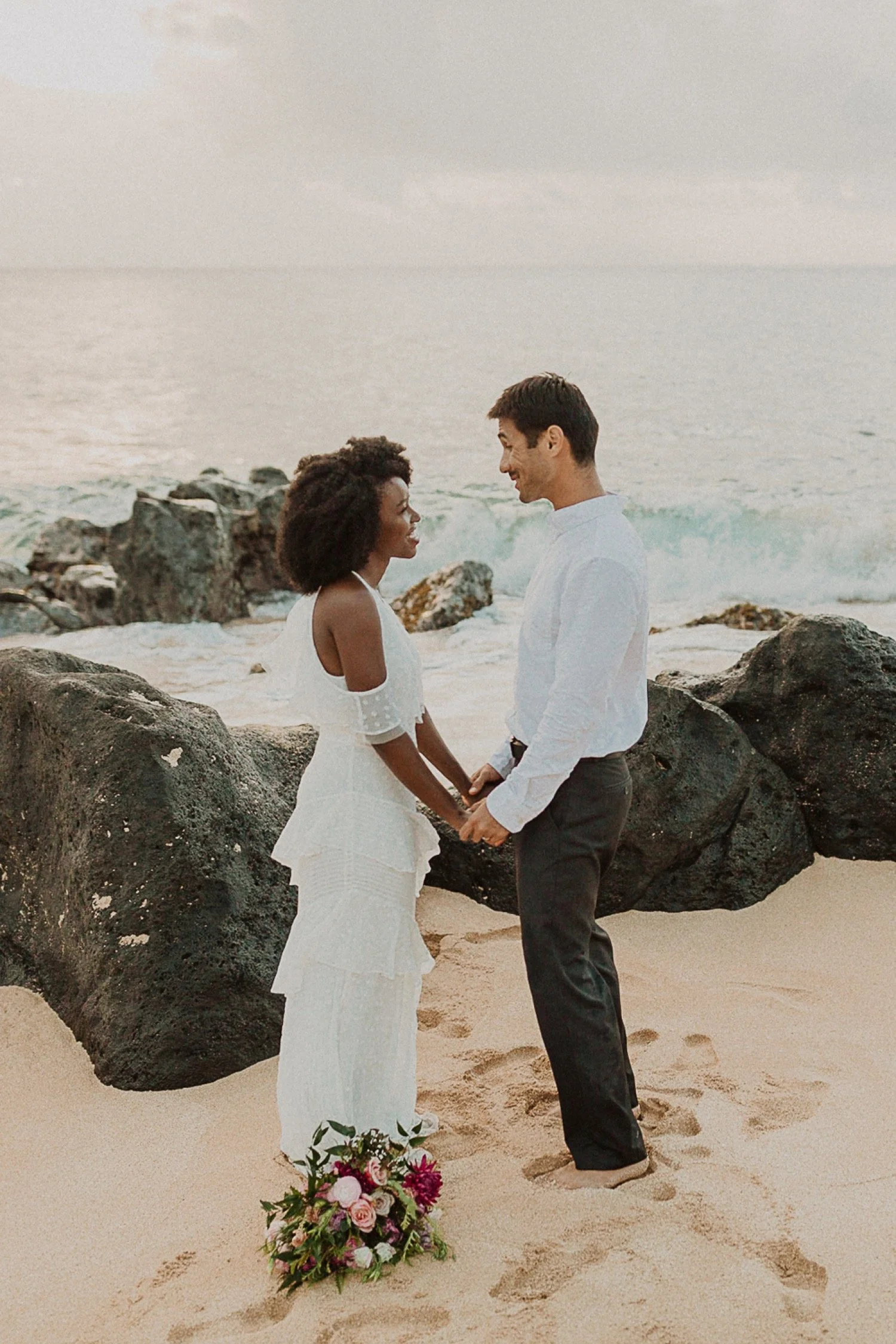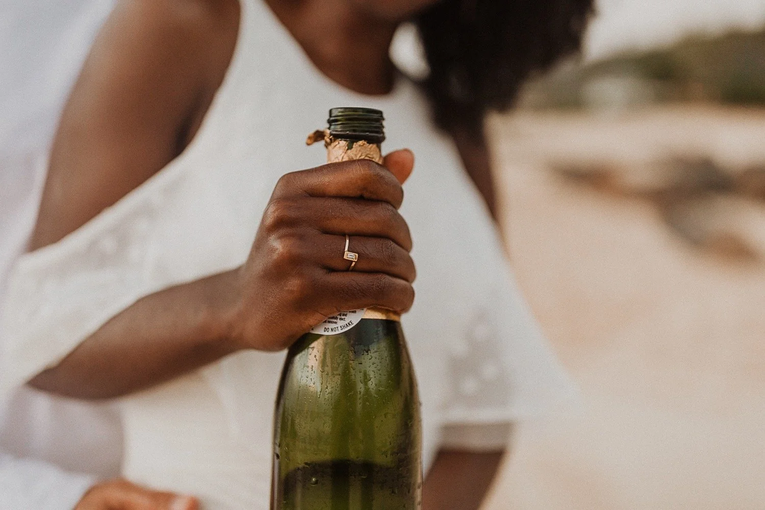 They started with a simple ceremony on the sand with just the two. There was no one around so it was very quiet, with the sound of waves crashing in the background. These moments are so intimate and special and a reason that I love elopements. We popped some champagne after to celebrate!
