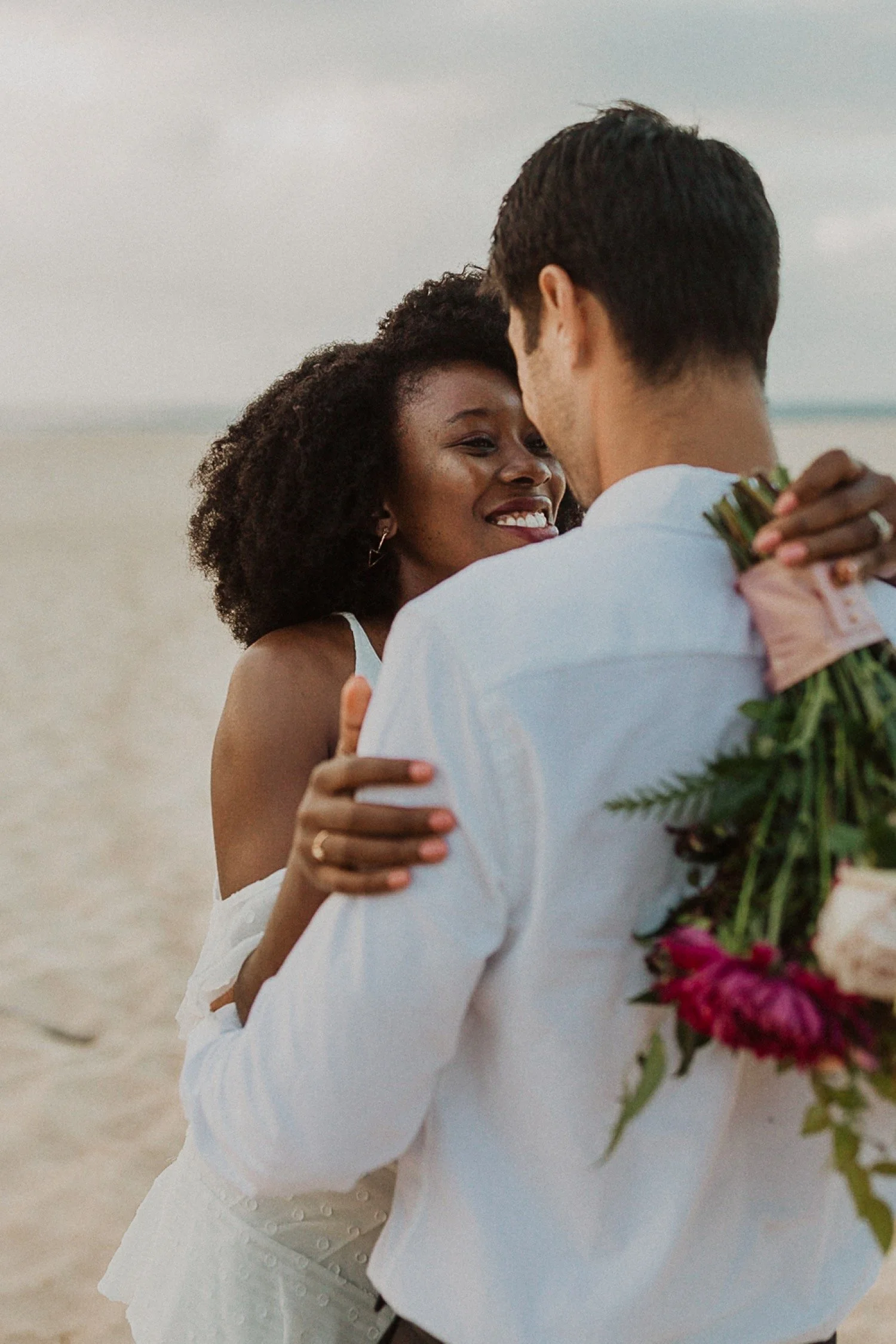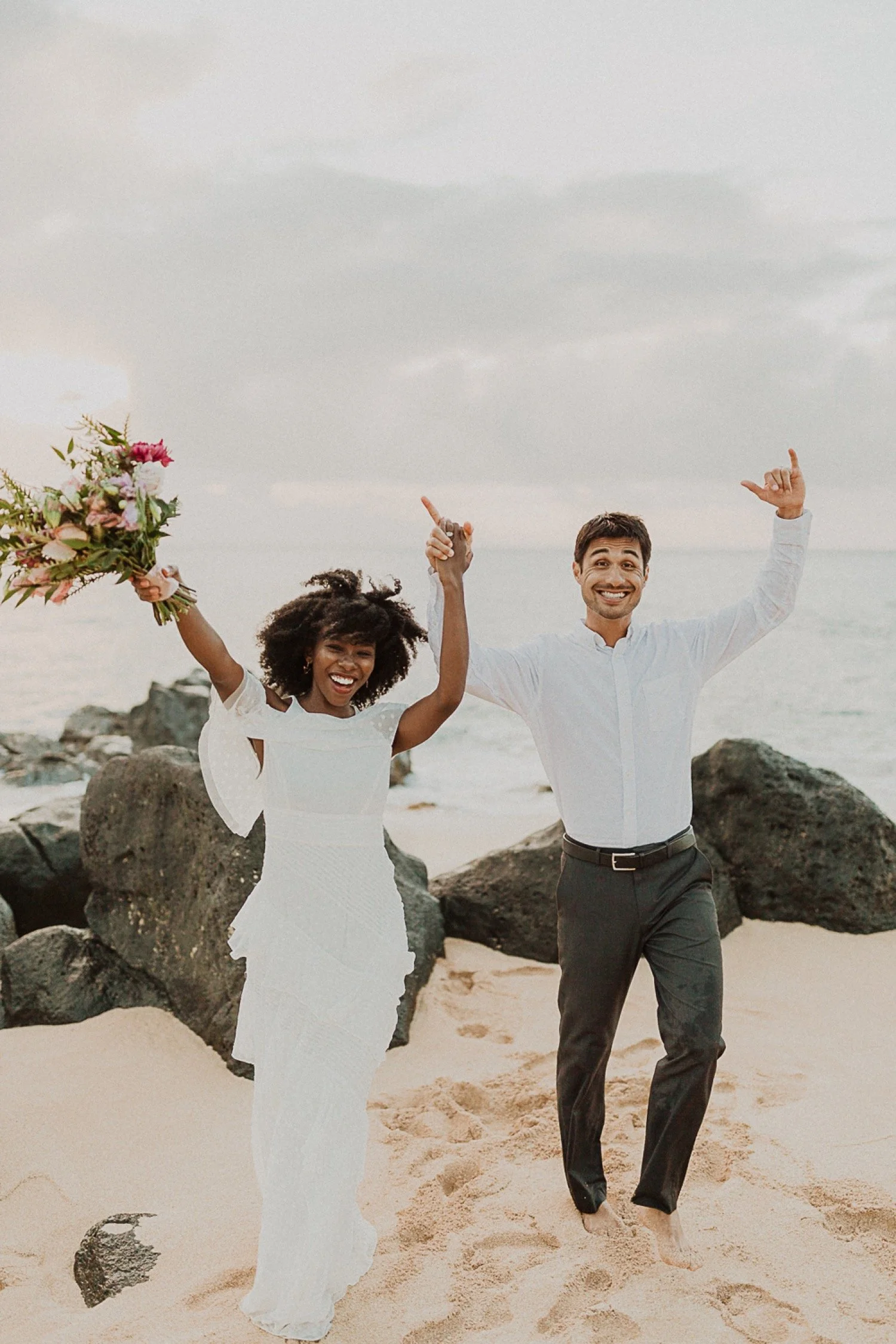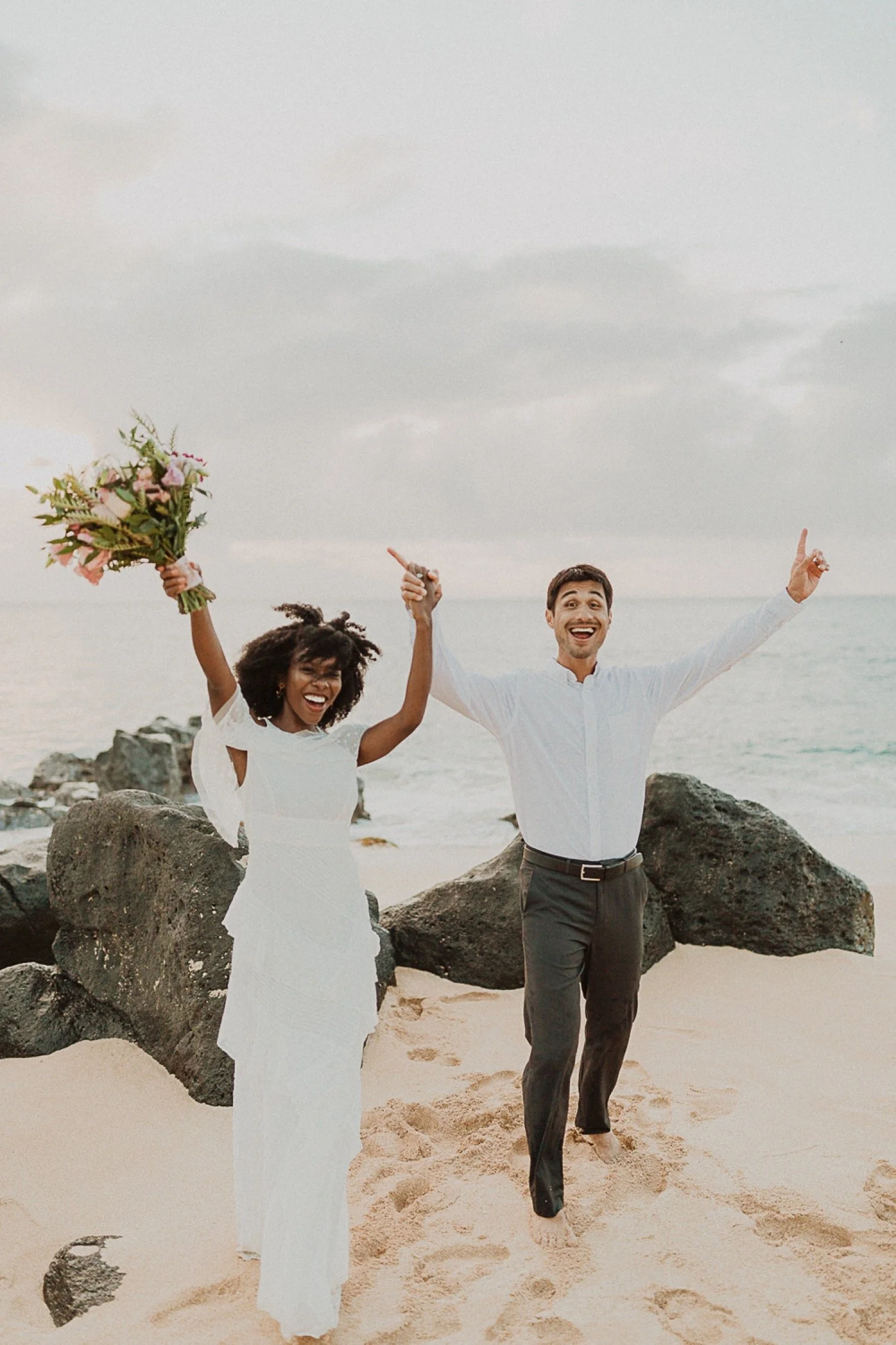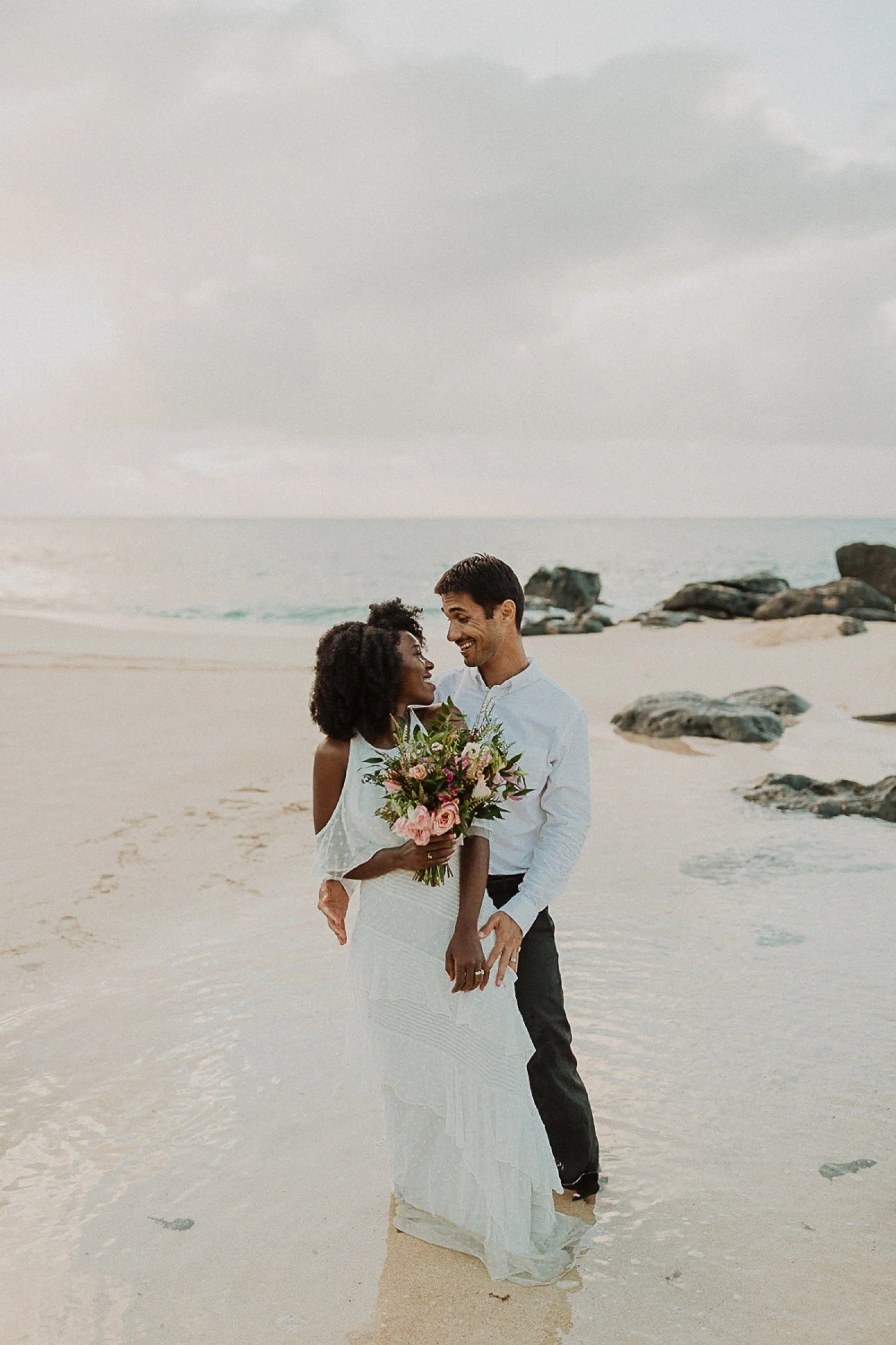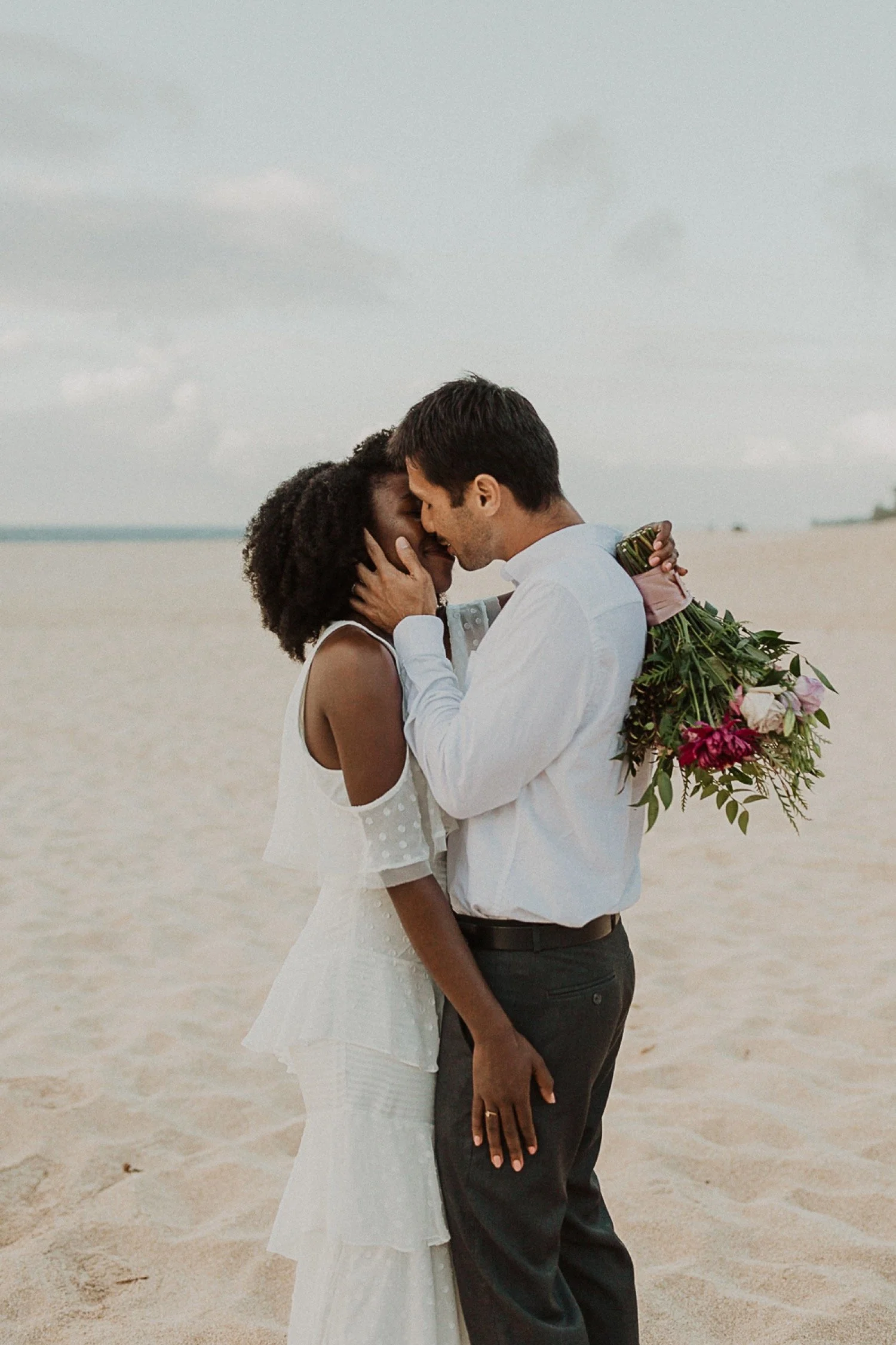 They started with a simple ceremony on the sand with just the two. There was no one around so it was very quiet, with the sound of waves crashing in the background. These moments are so intimate and special and a reason that I love elopements. We popped some champagne after to celebrate!
