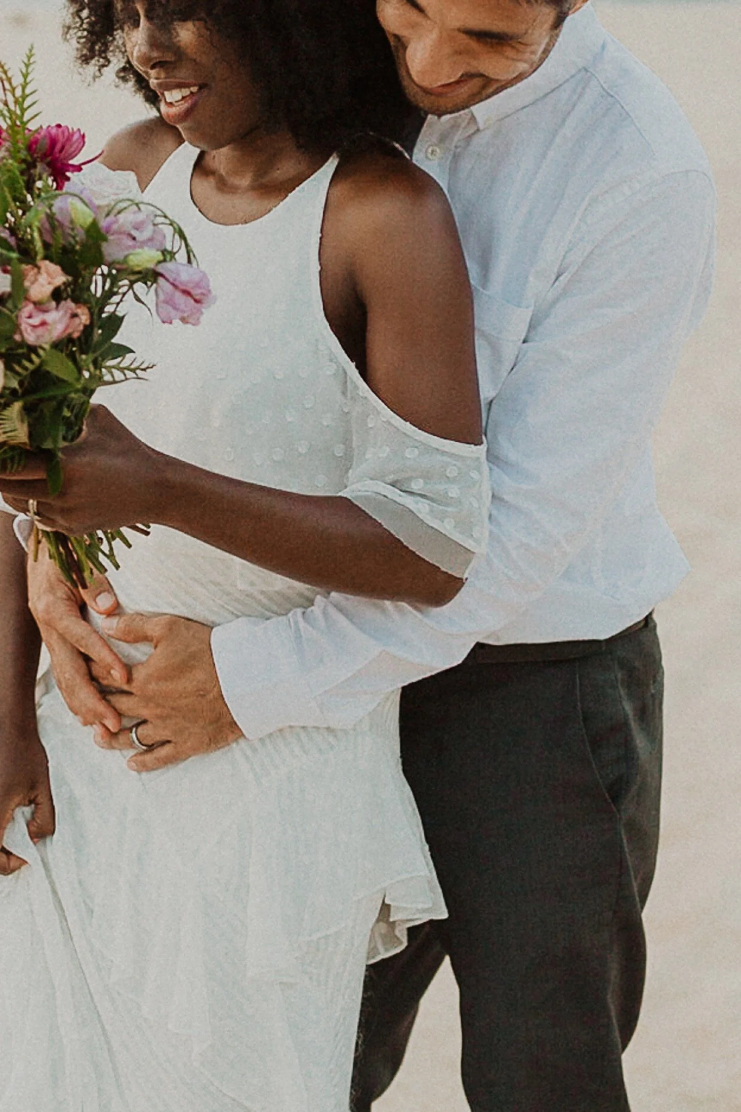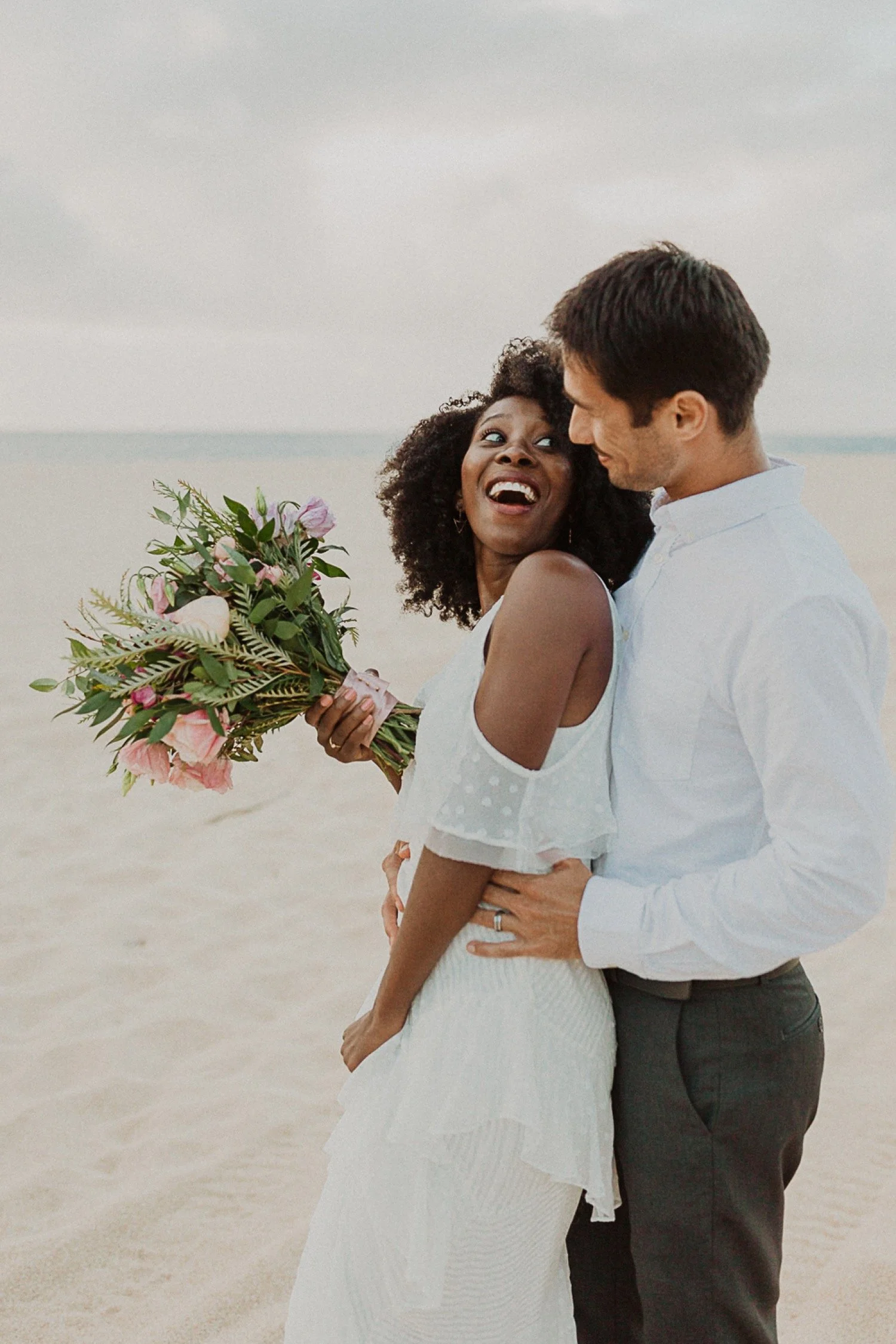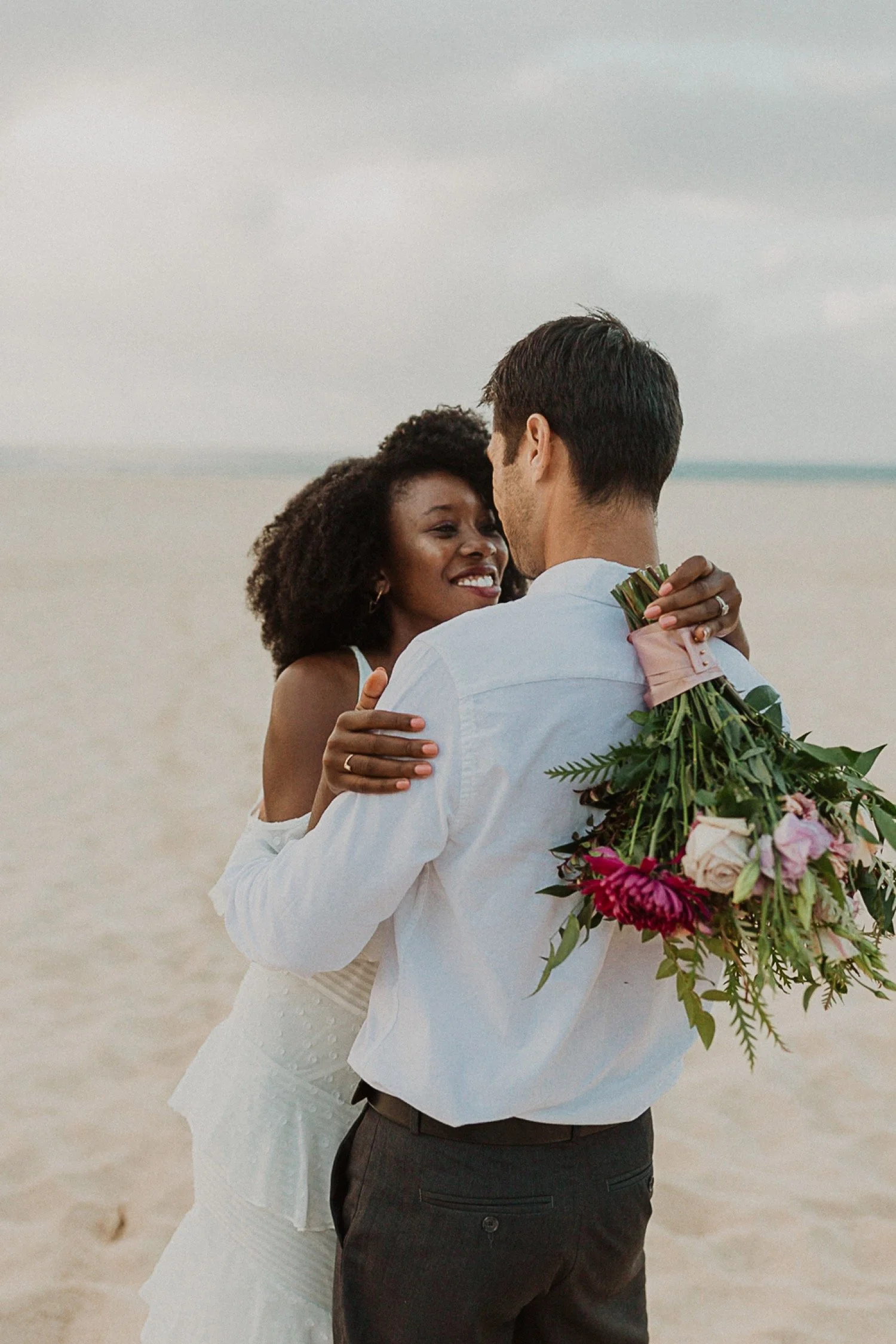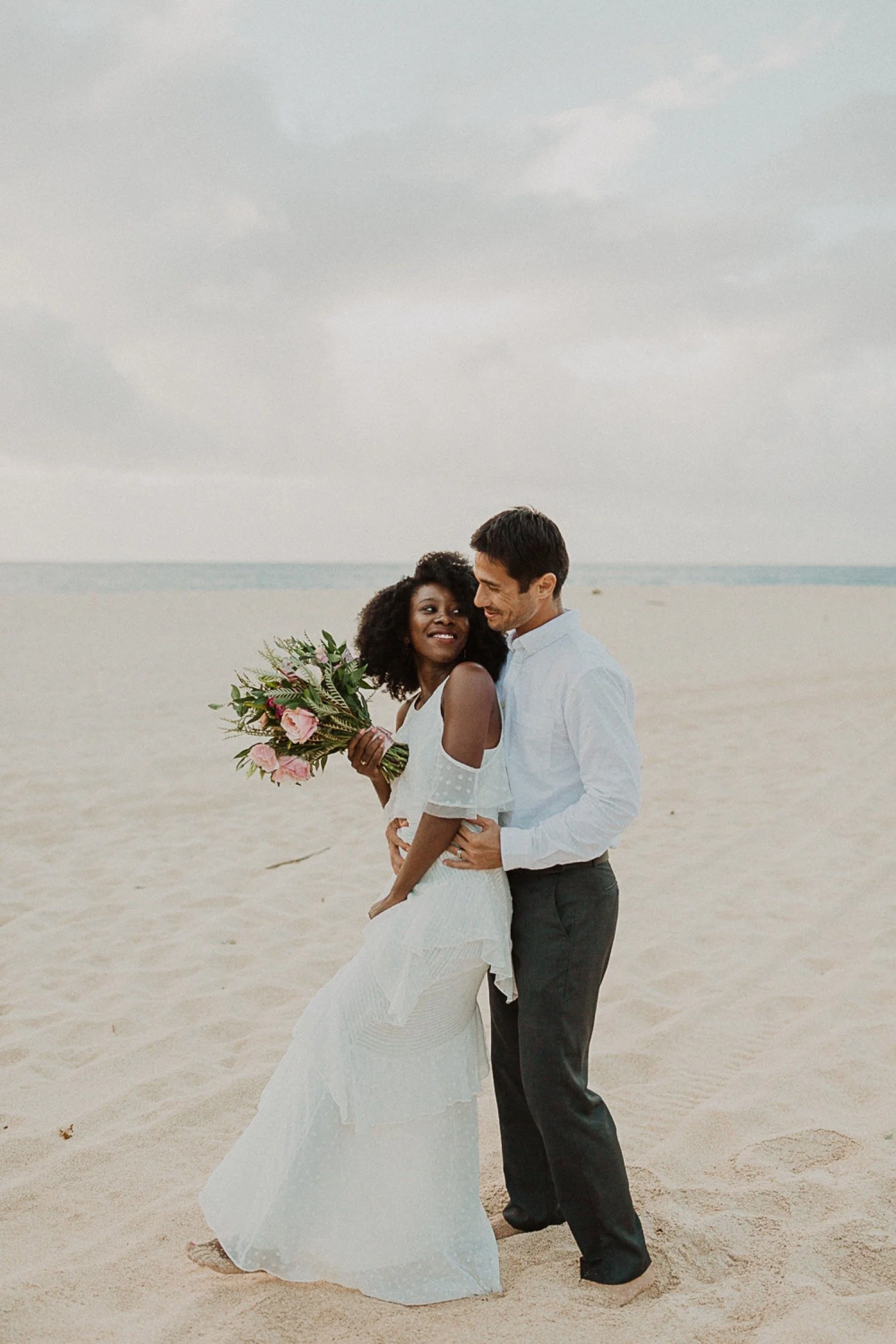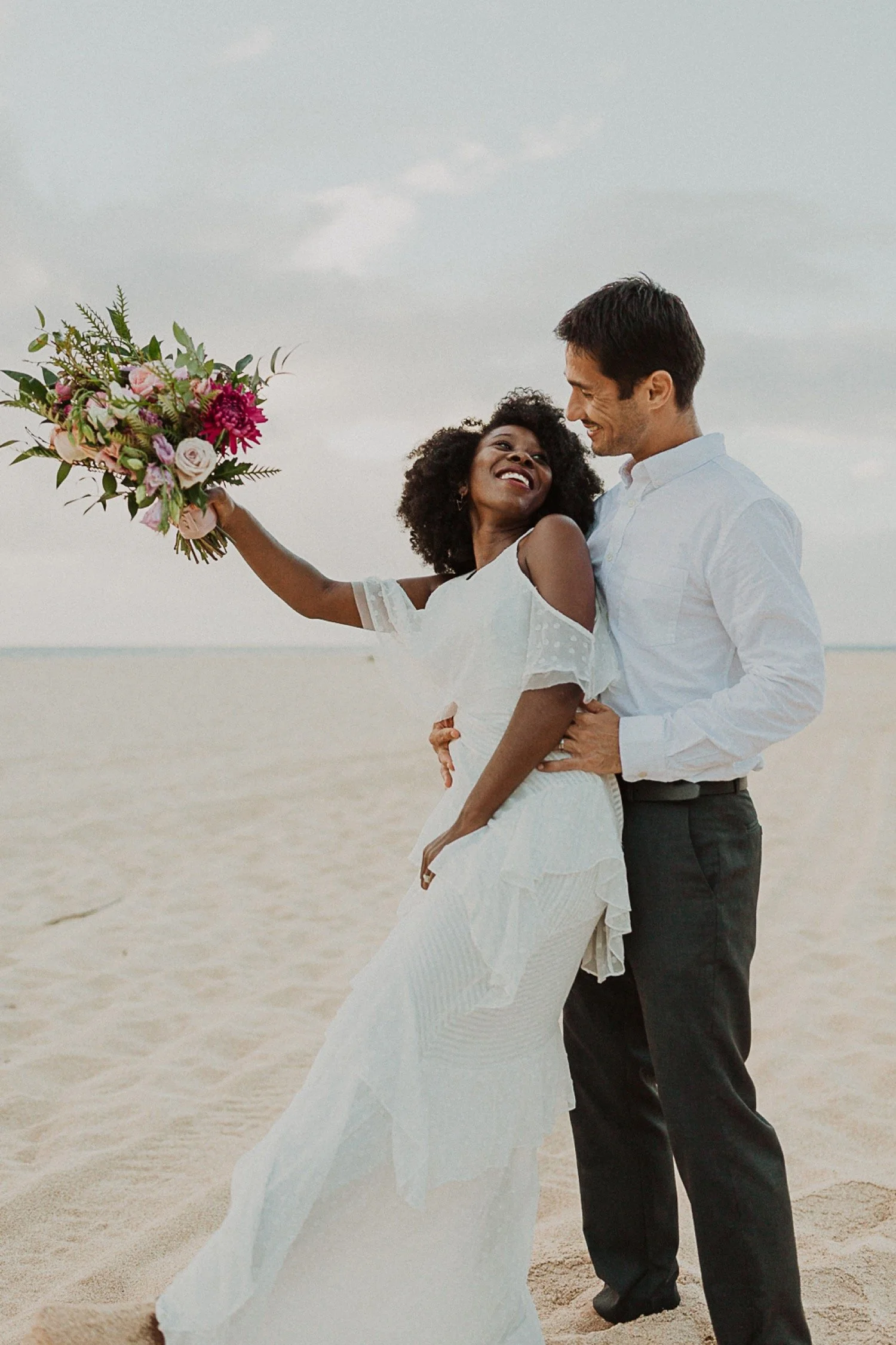 They started with a simple ceremony on the sand with just the two. There was no one around so it was very quiet, with the sound of waves crashing in the background. These moments are so intimate and special and a reason that I love elopements. We popped some champagne after to celebrate!