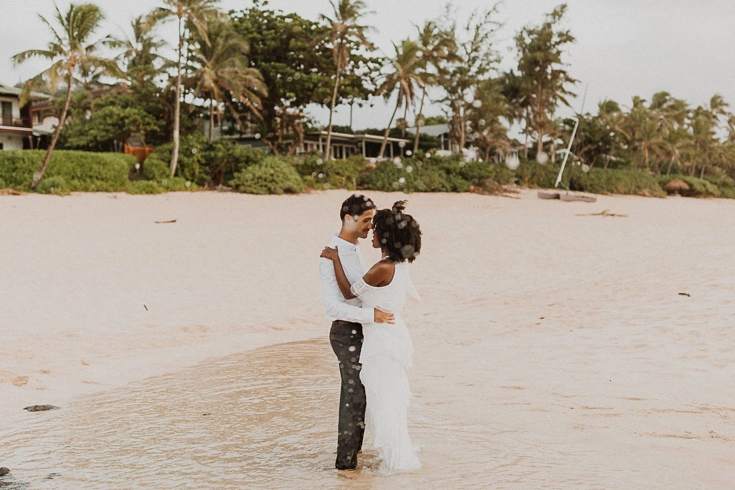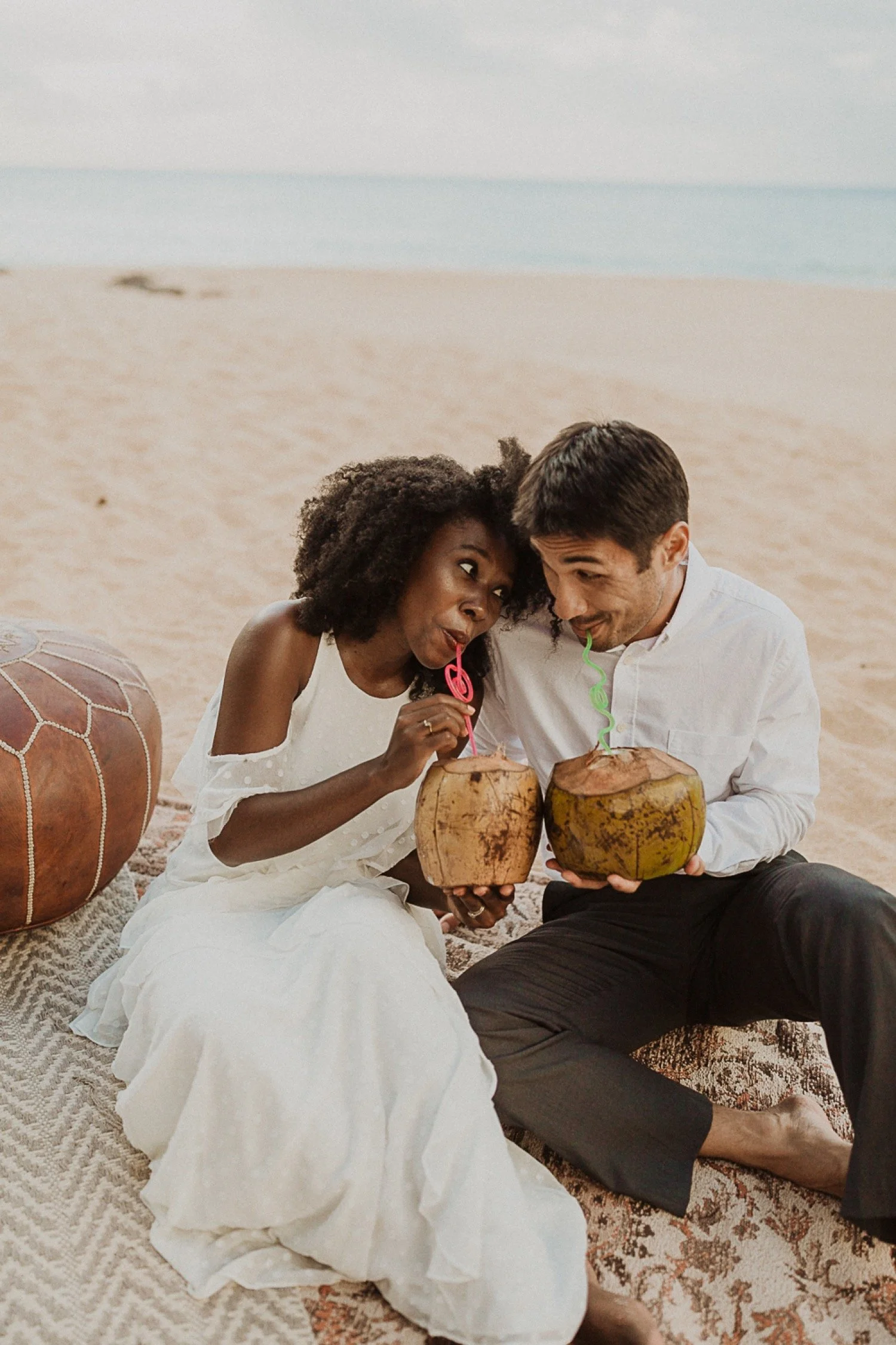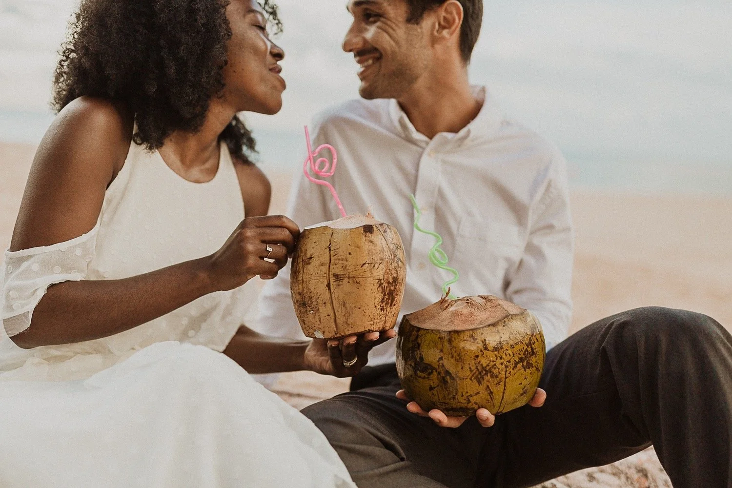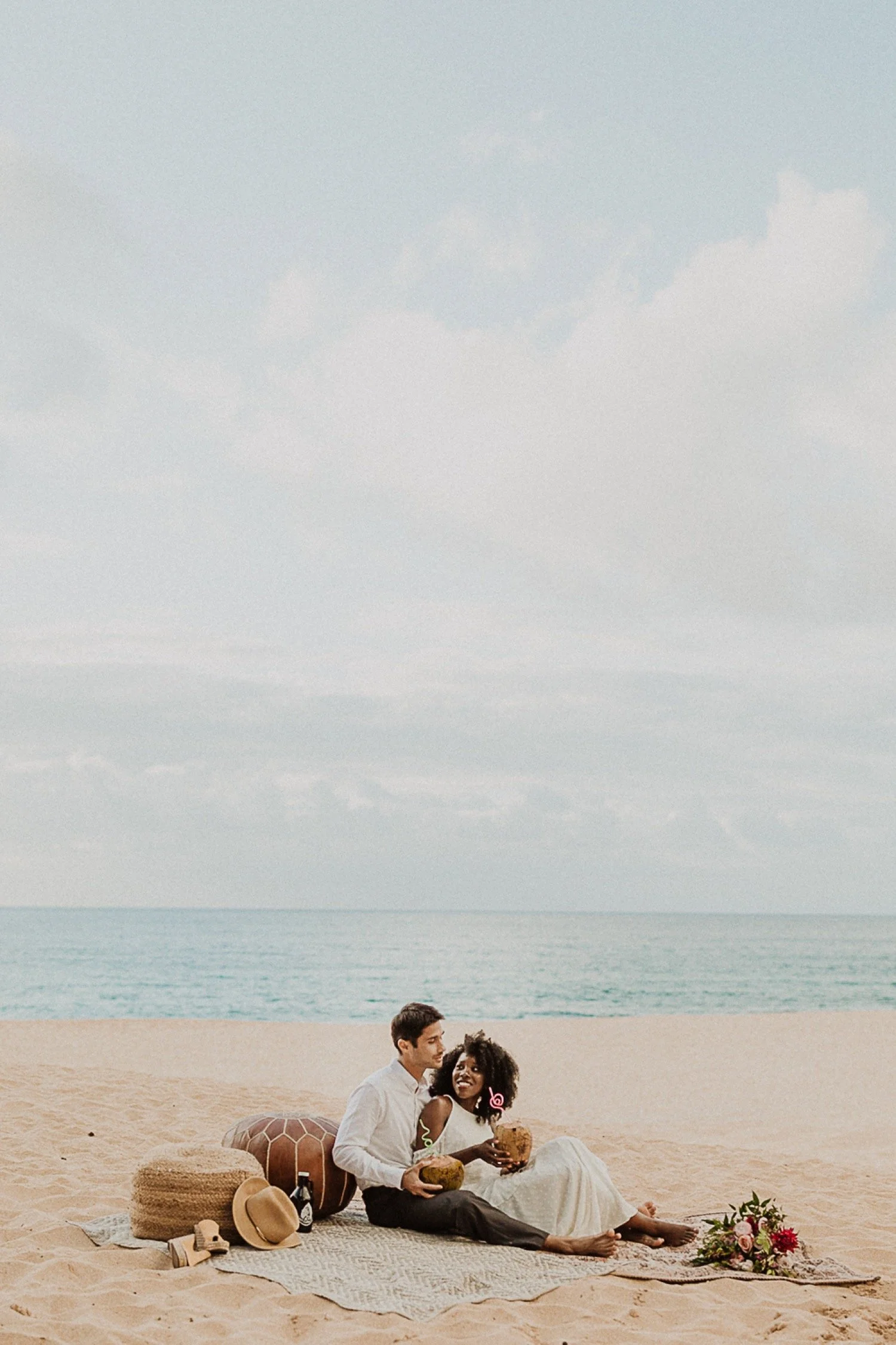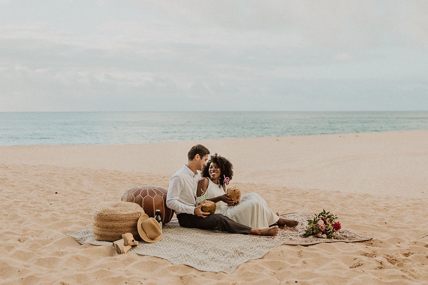 They had a sweet little picnic on the sand with fresh mango and coconuts. It was so simple but made the day feel even more special. Right as they sat down for their picnic it started to rain. They just embraced it and let it happen, and it ended up being so much fun!