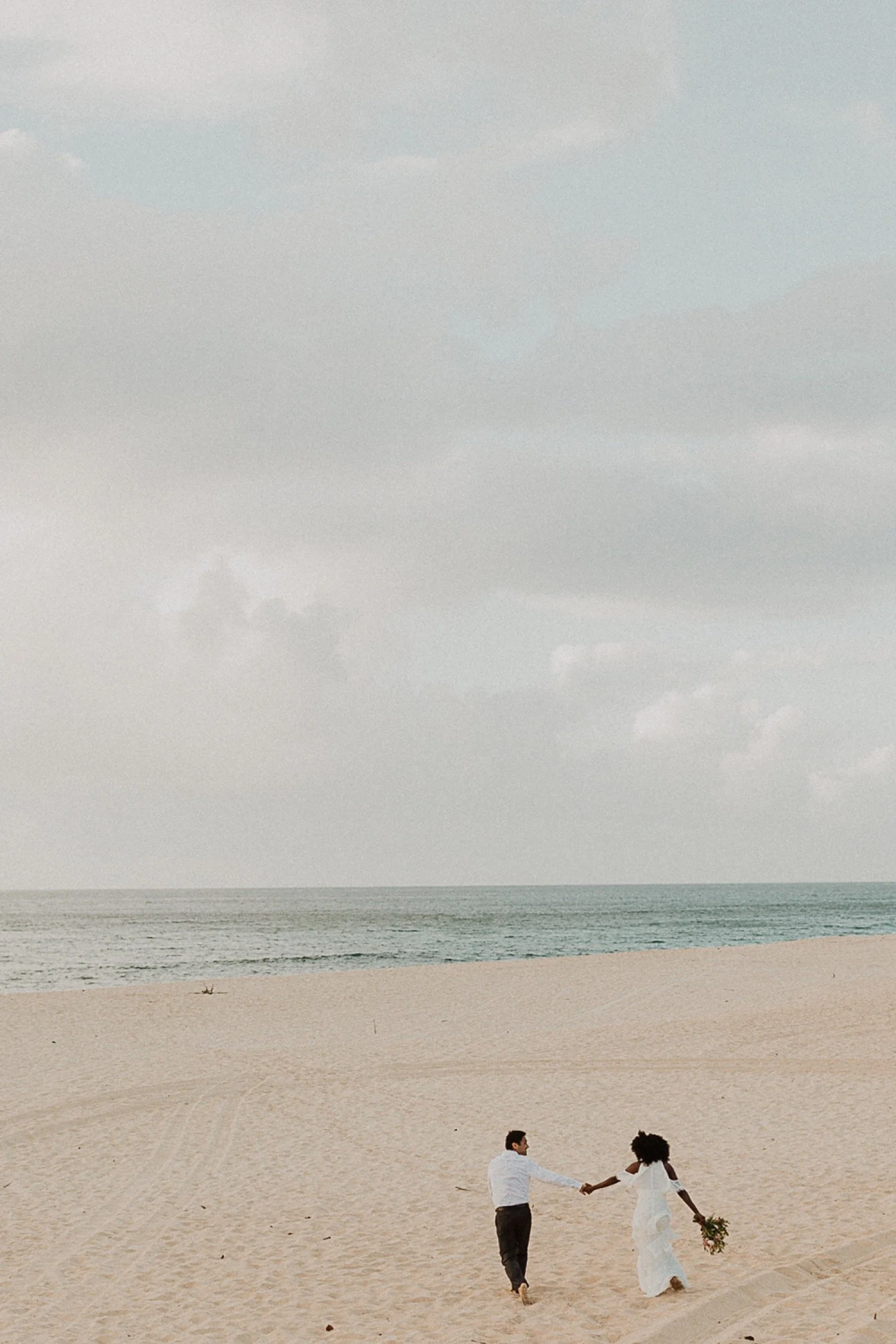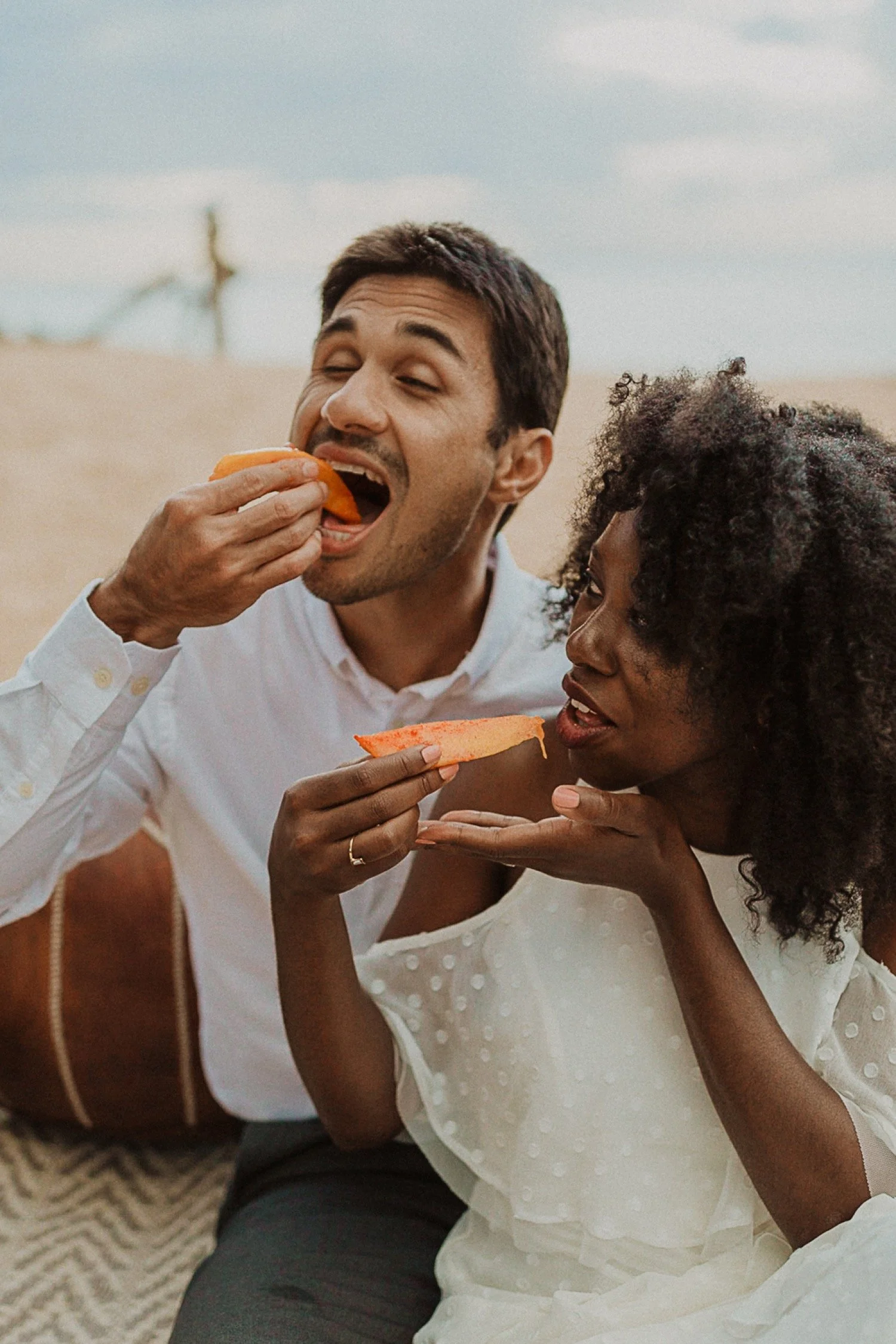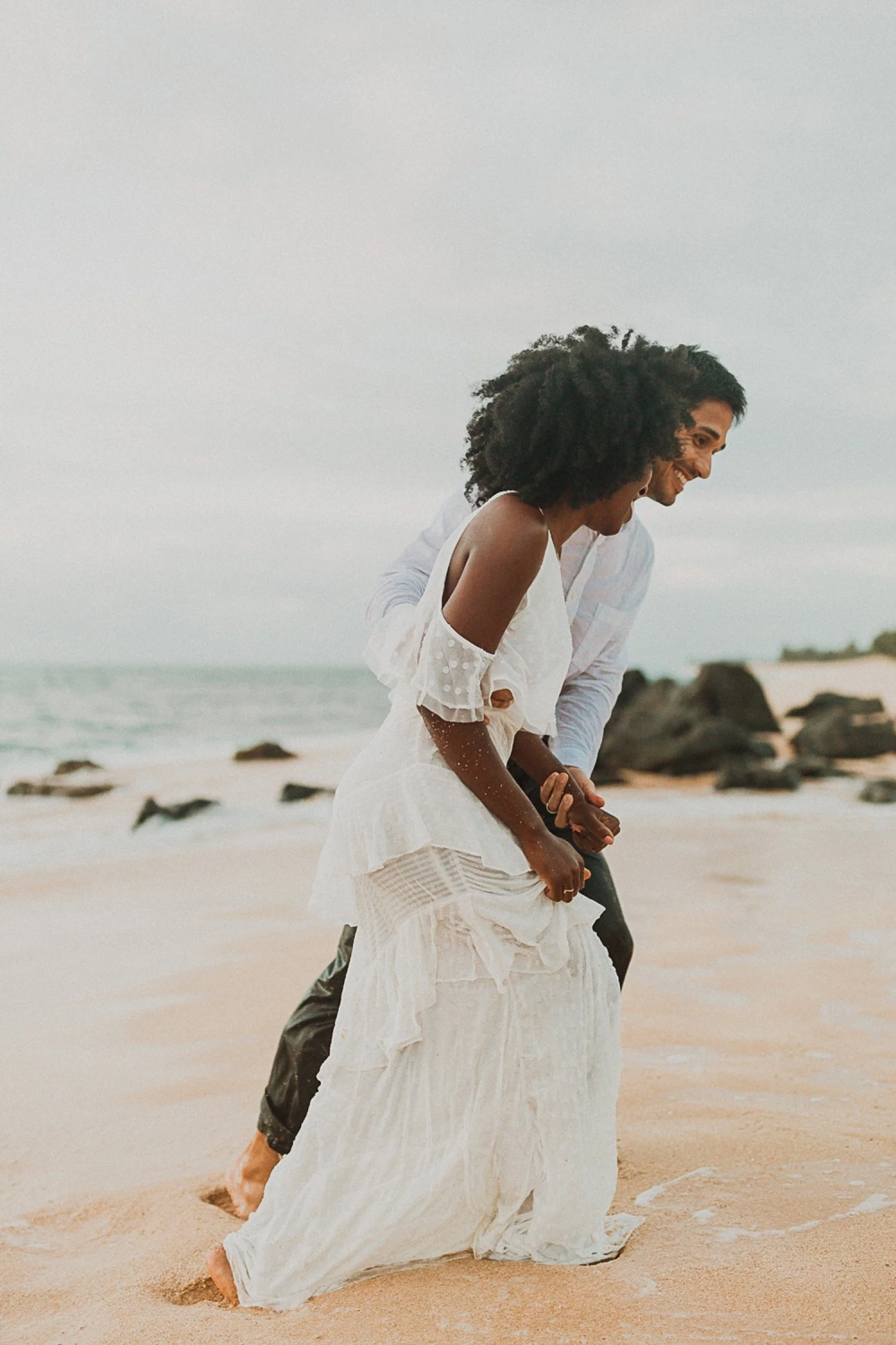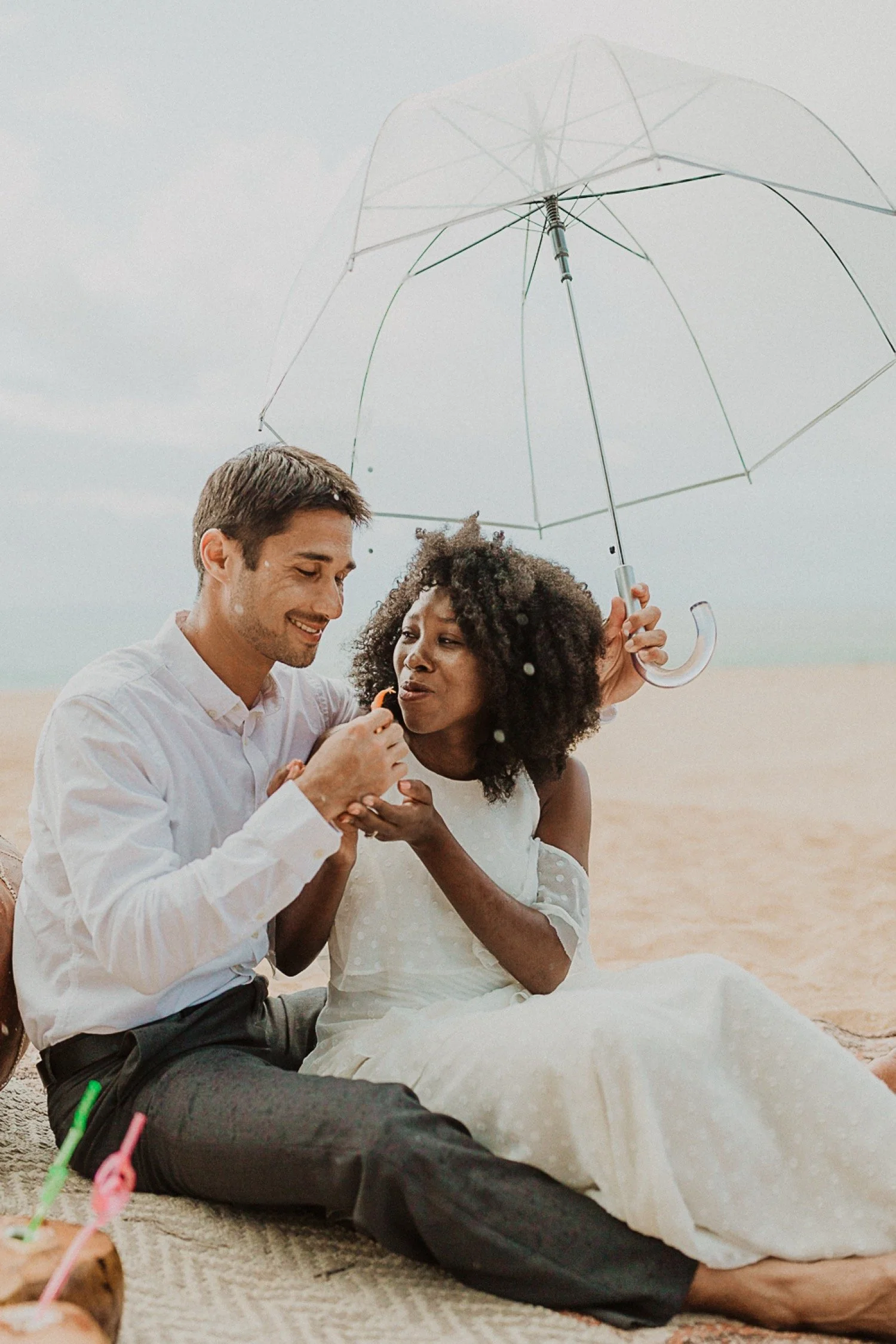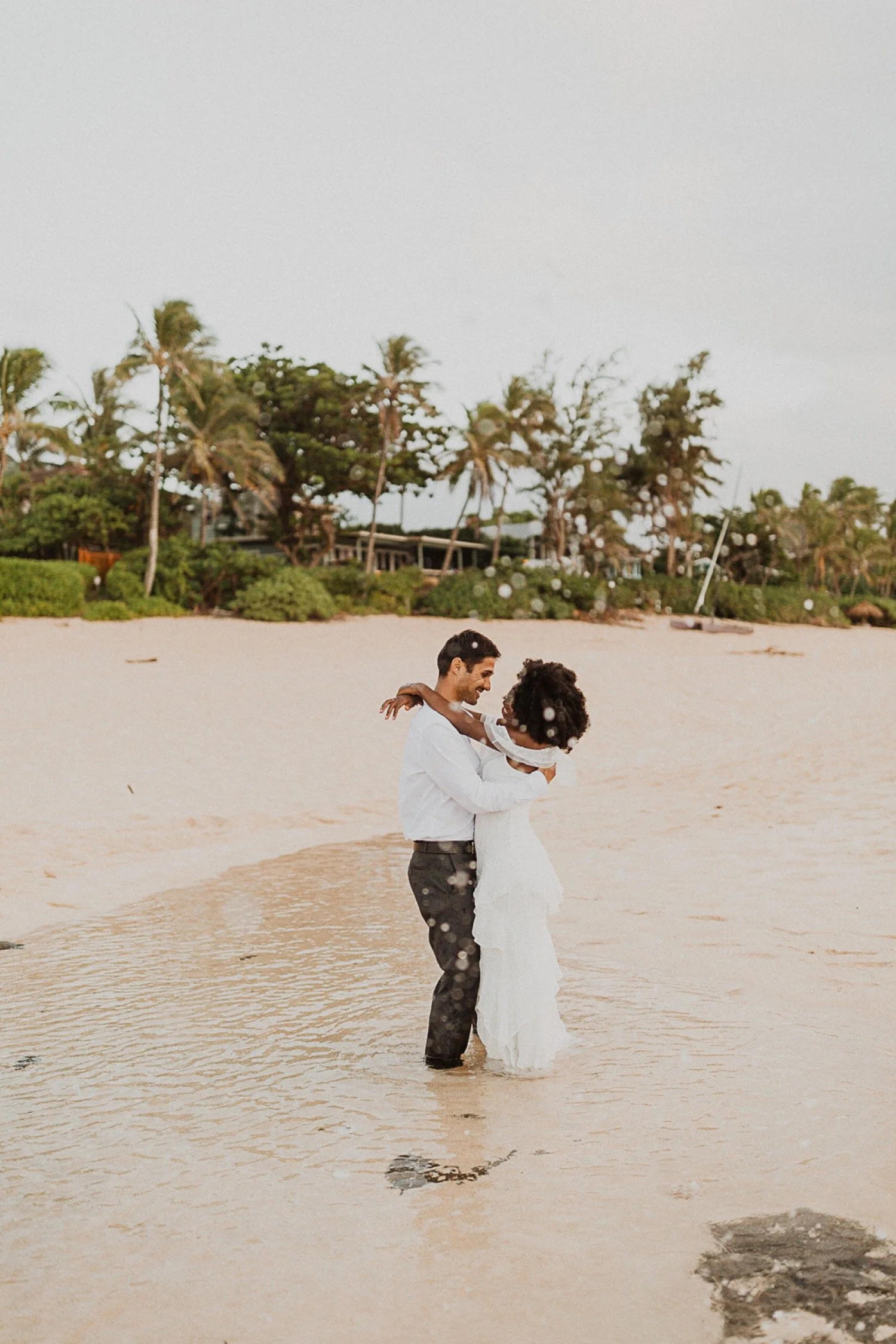 They had a sweet little picnic on the sand with fresh mango and coconuts. It was so simple but made the day feel even more special. Right as they sat down for their picnic it started to rain. They just embraced it and let it happen, and it ended up being so much fun!