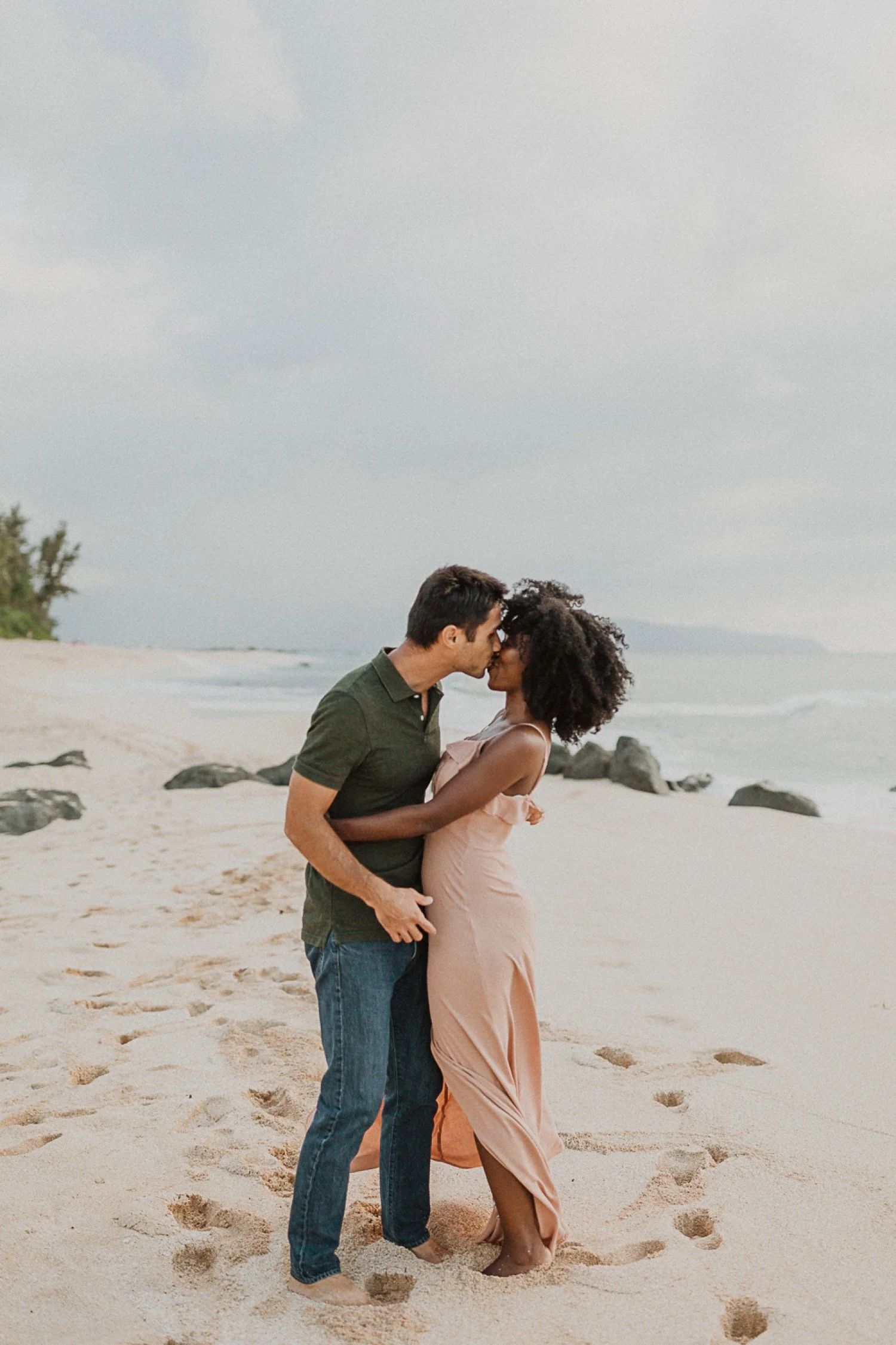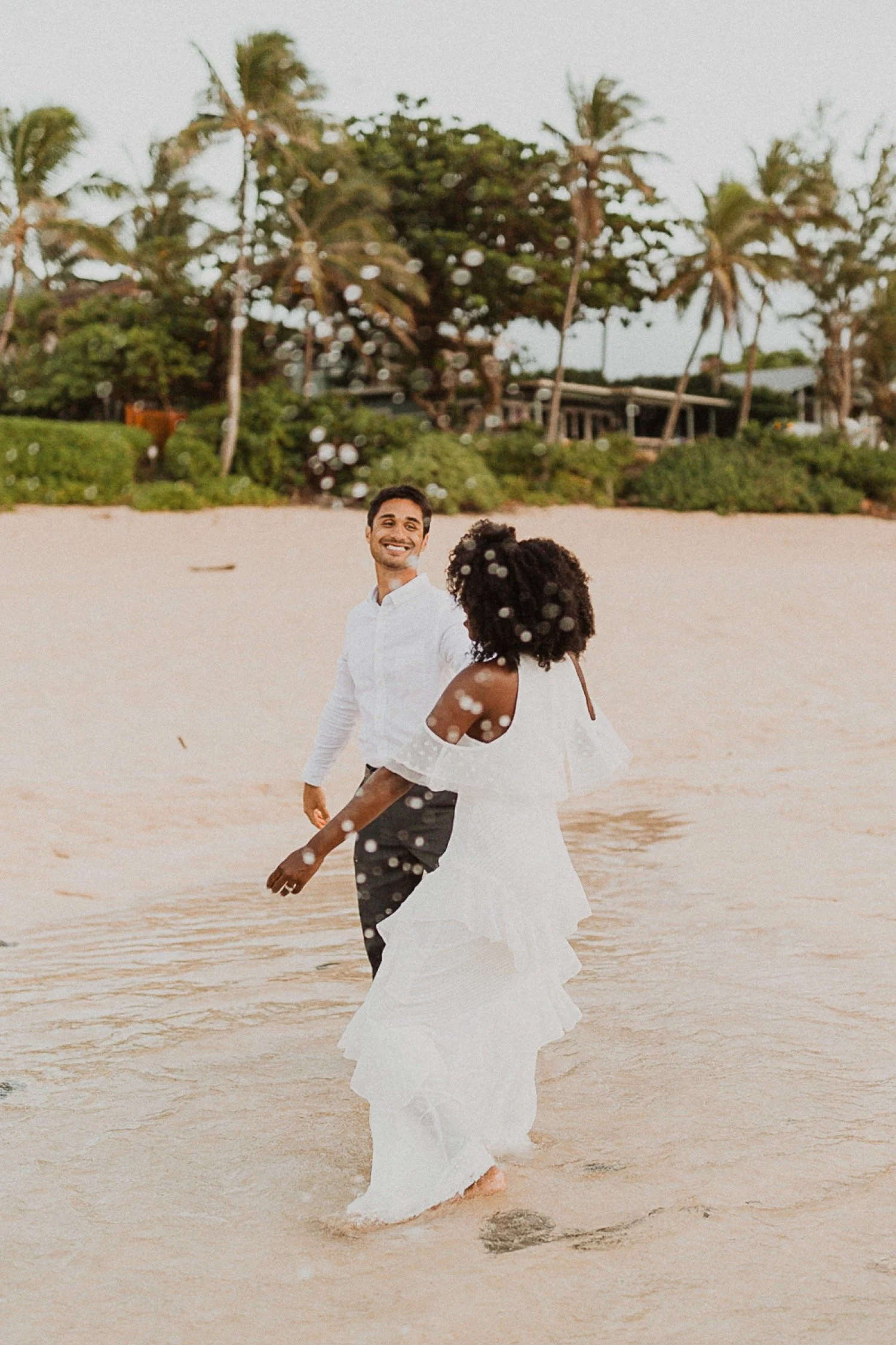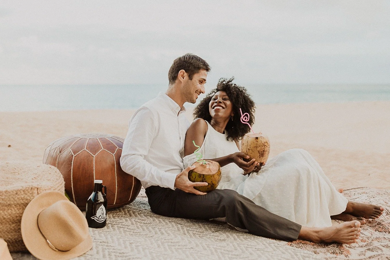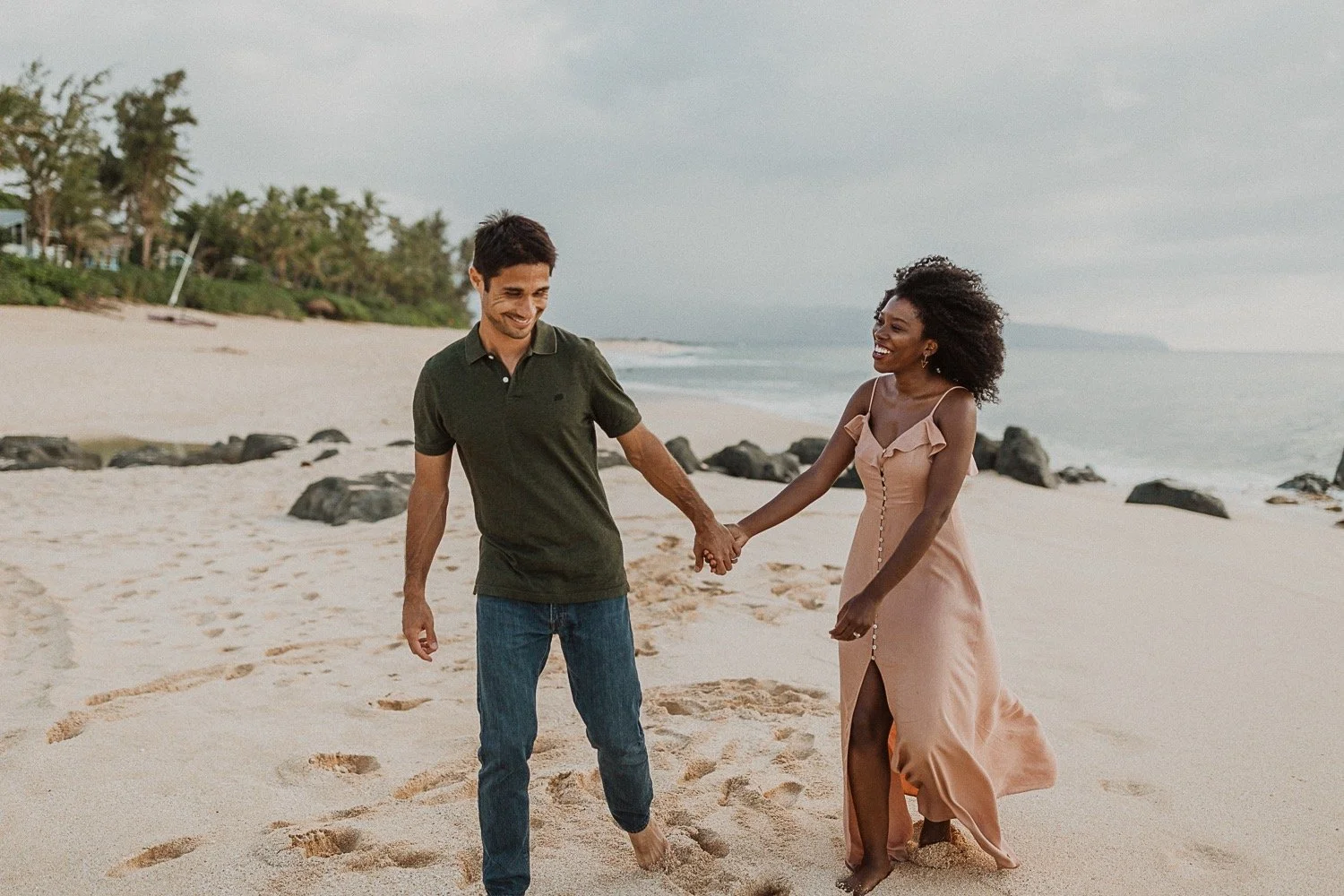They had a sweet little picnic on the sand with fresh mango and coconuts. It was so simple but made the day feel even more special. Right as they sat down for their picnic it started to rain. They just embraced it and let it happen, and it ended up being so much fun!