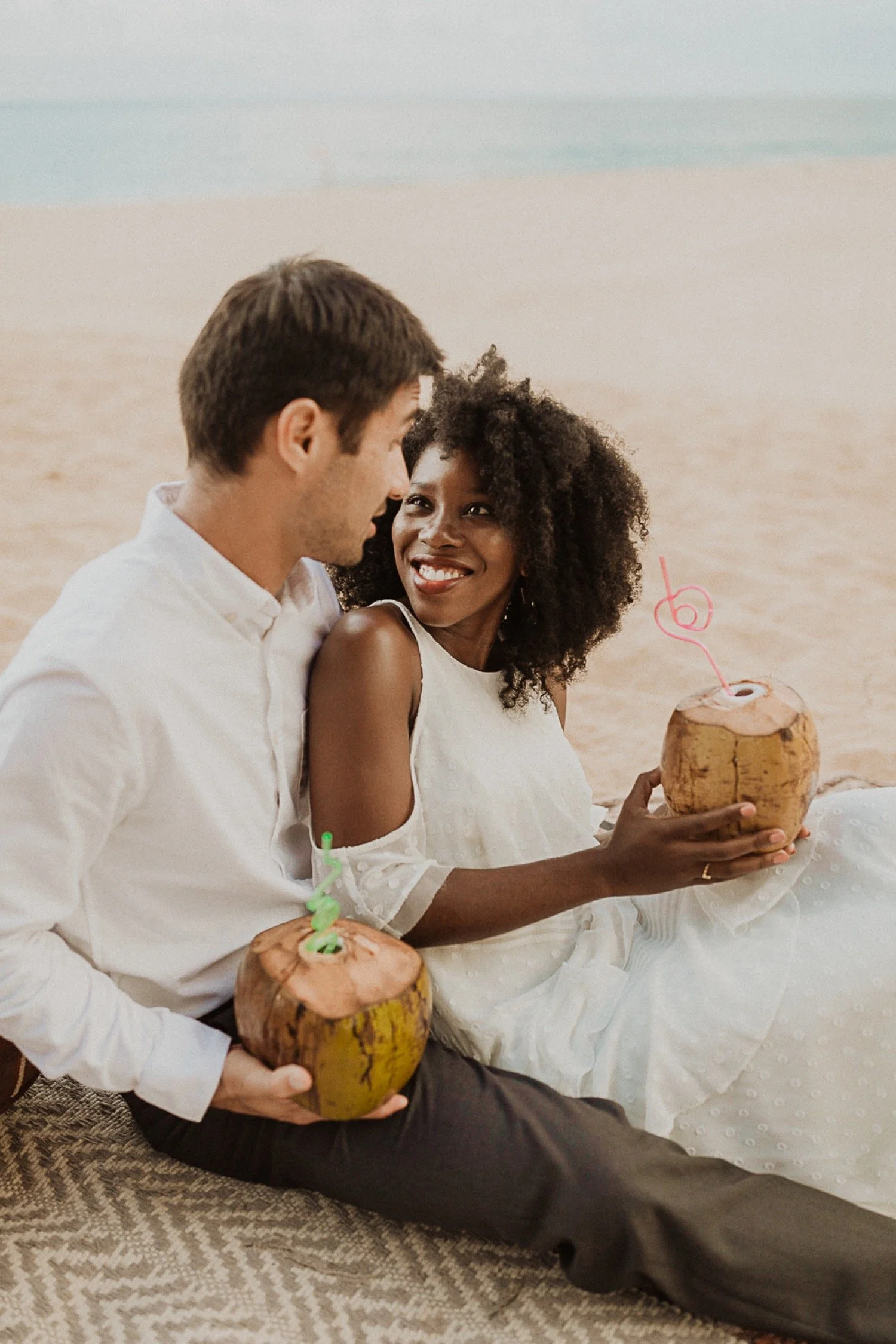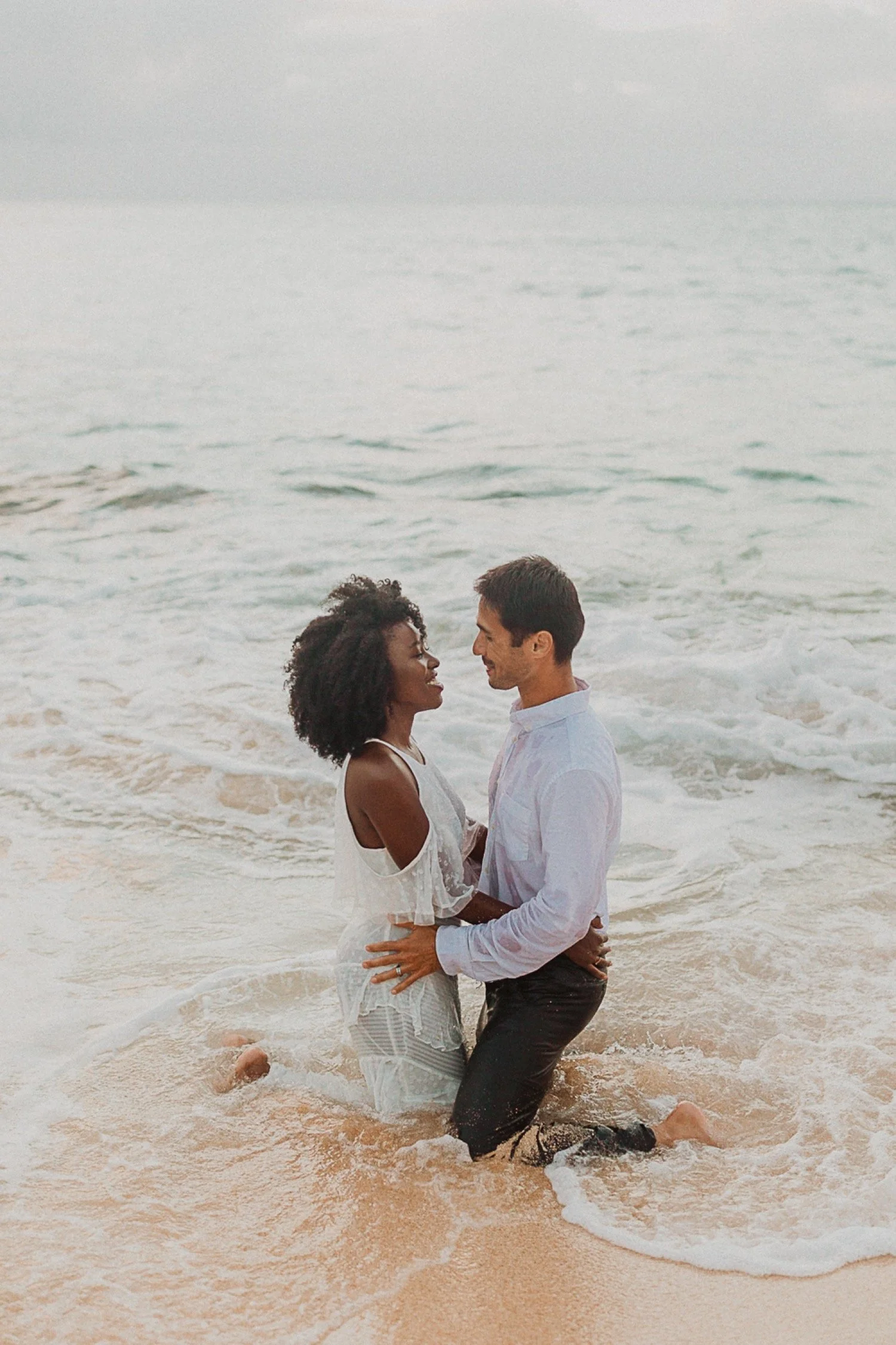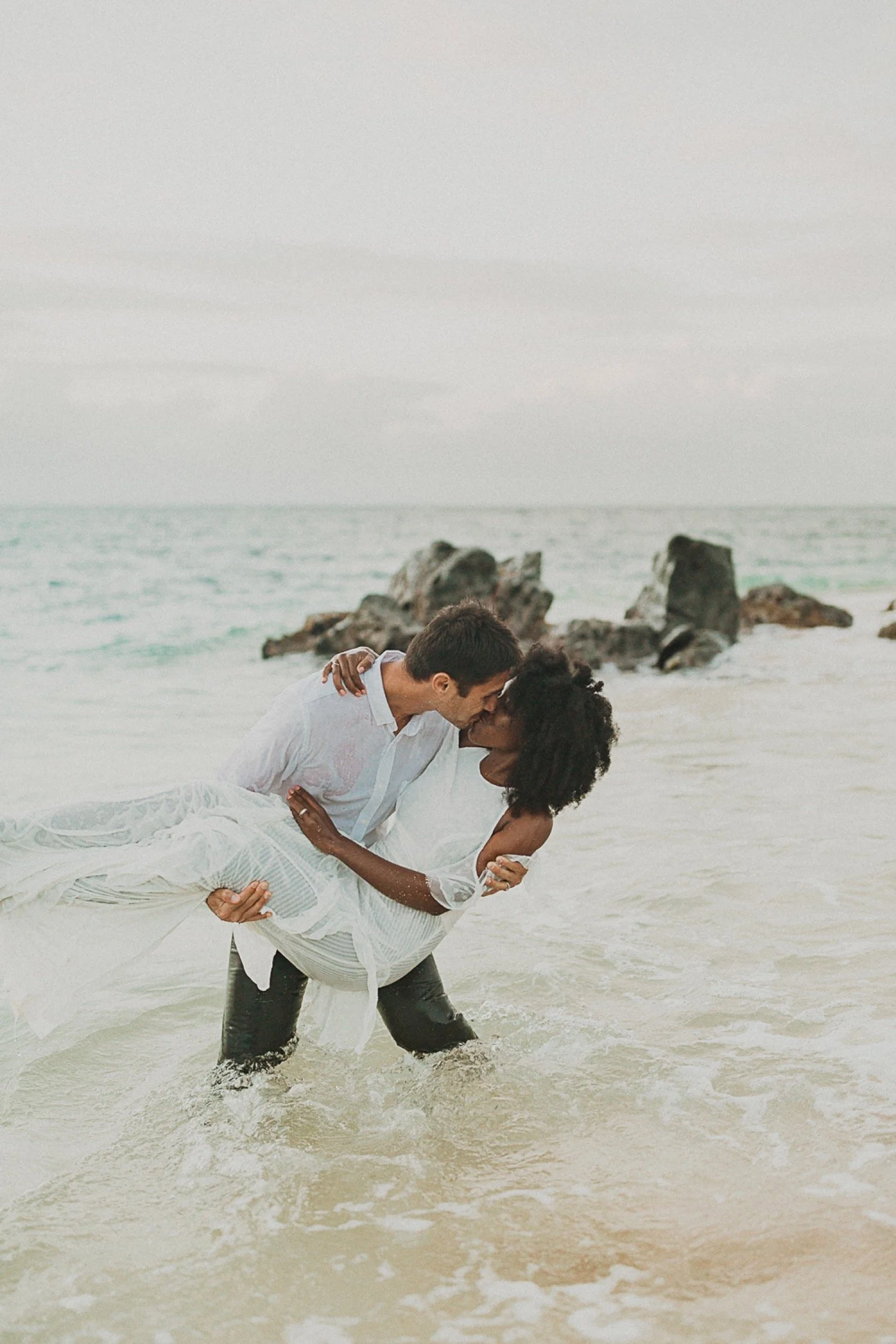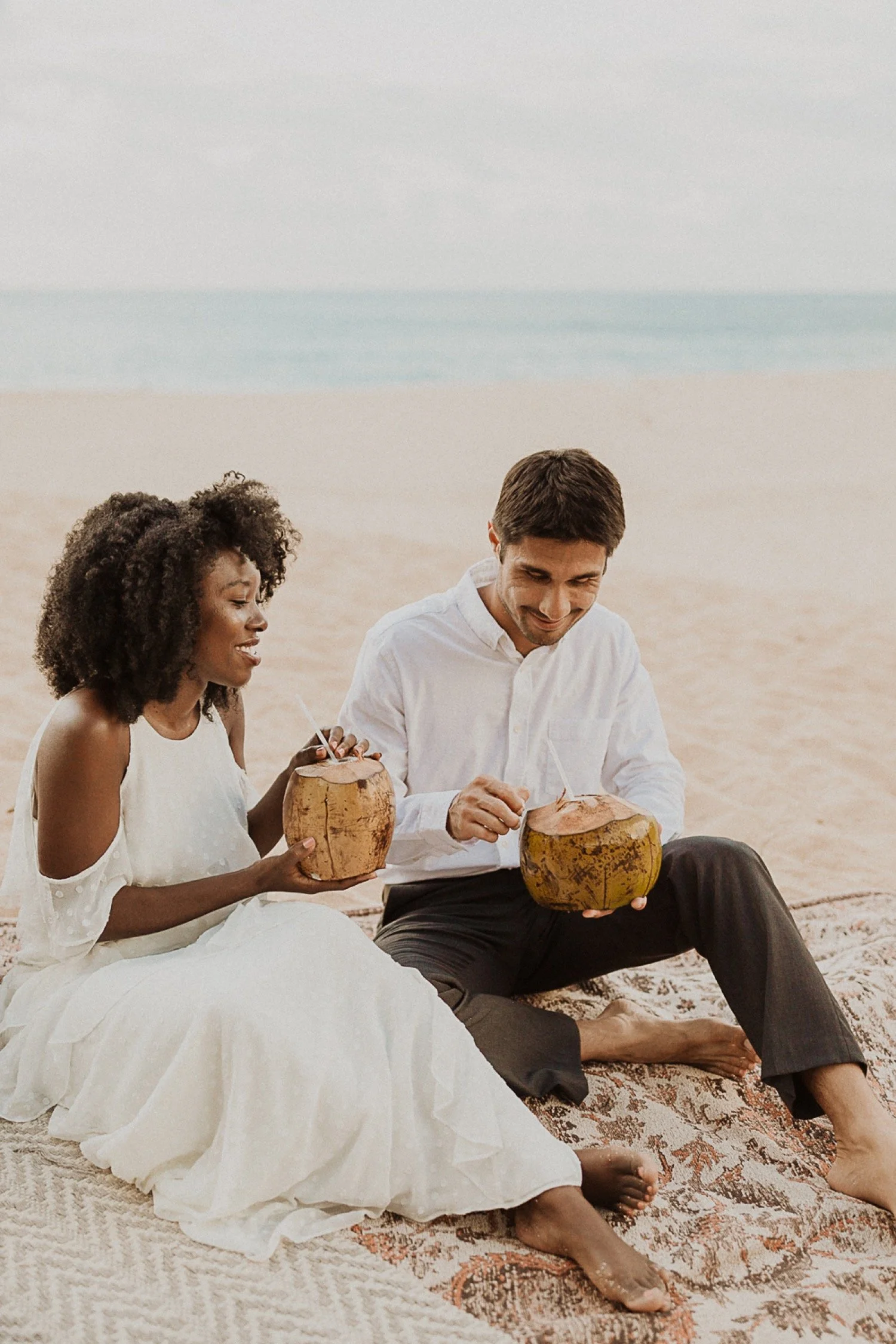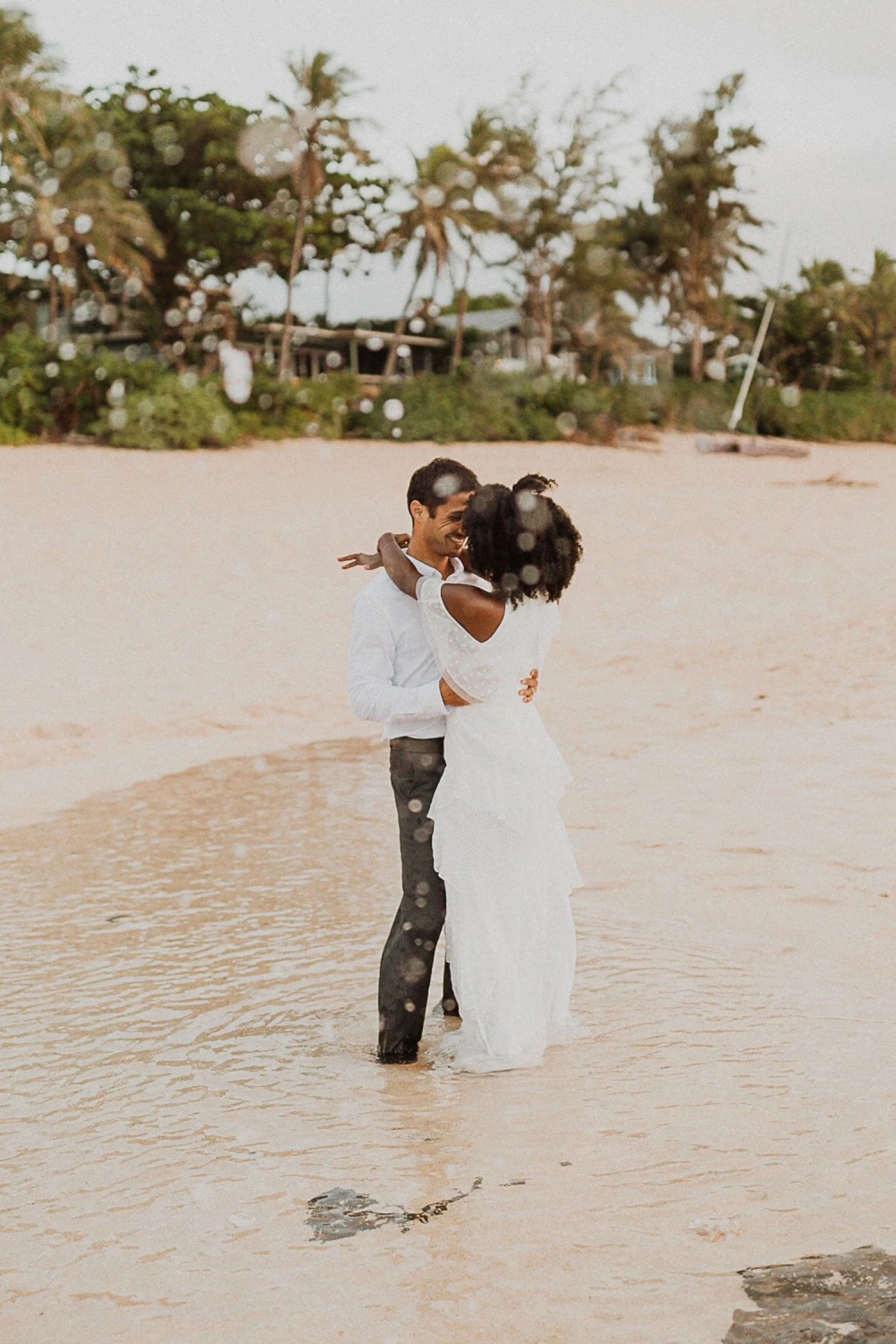 They had a sweet little picnic on the sand with fresh mango and coconuts. It was so simple but made the day feel even more special. Right as they sat down for their picnic it started to rain. They just embraced it and let it happen, and it ended up being so much fun!
