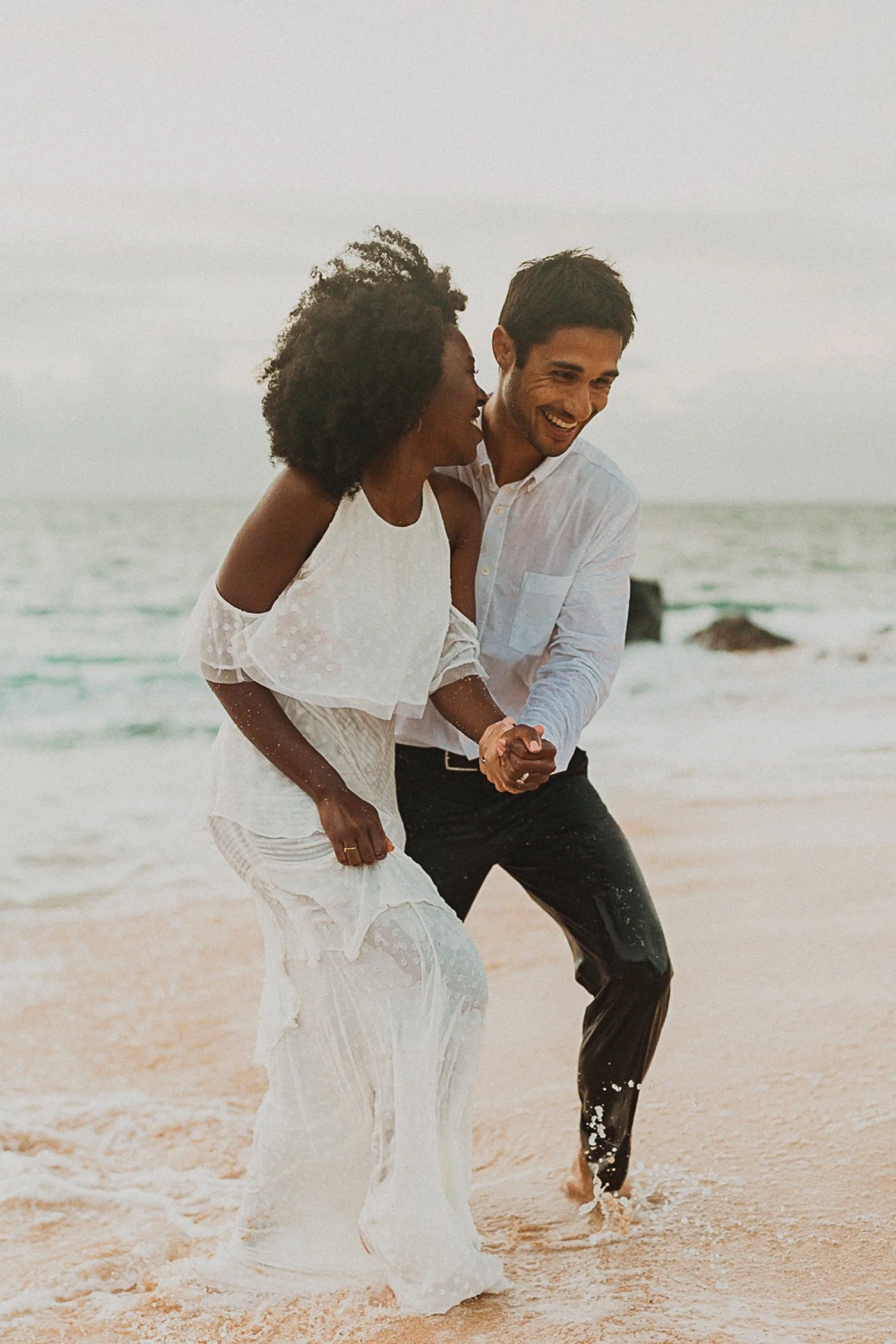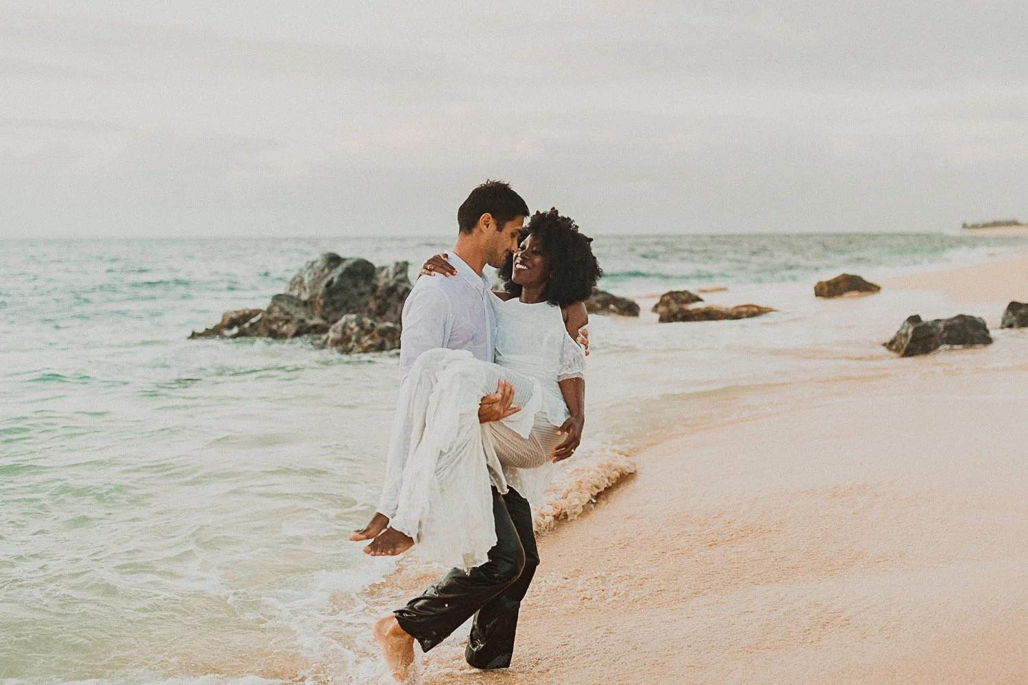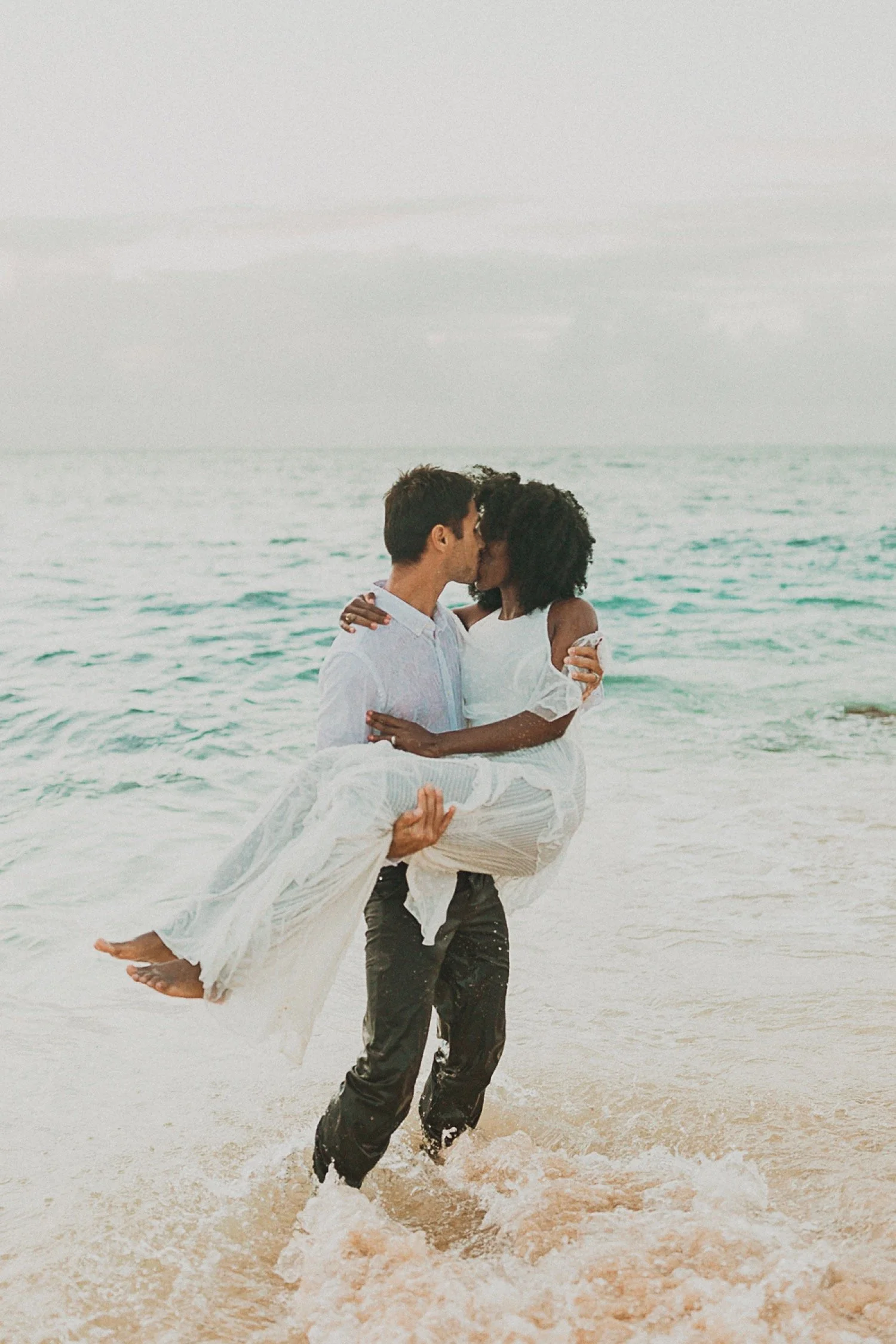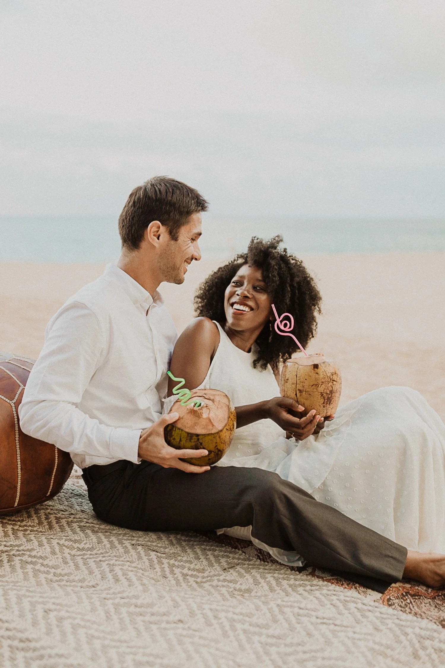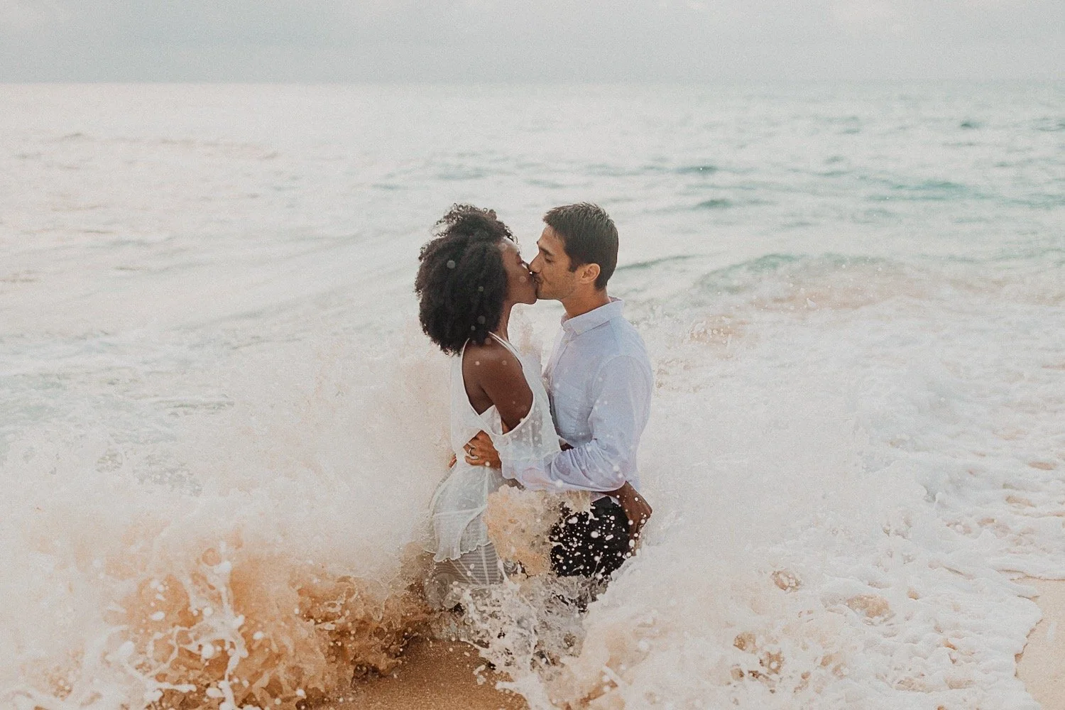They had a sweet little picnic on the sand with fresh mango and coconuts. It was so simple but made the day feel even more special. Right as they sat down for their picnic it started to rain. They just embraced it and let it happen, and it ended up being so much fun!