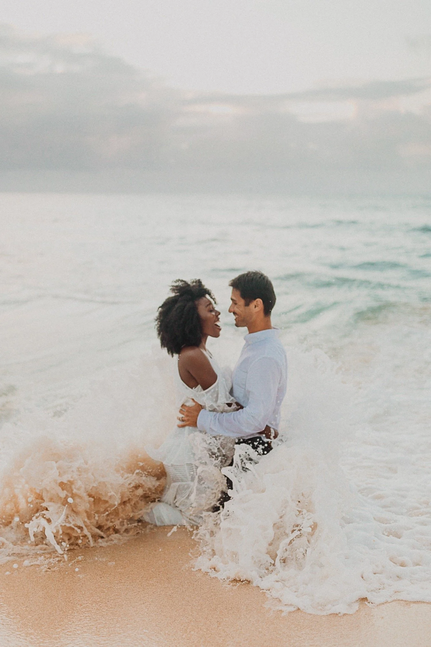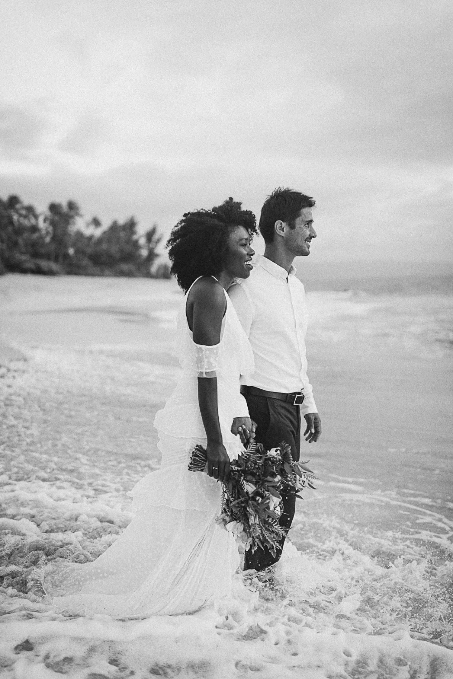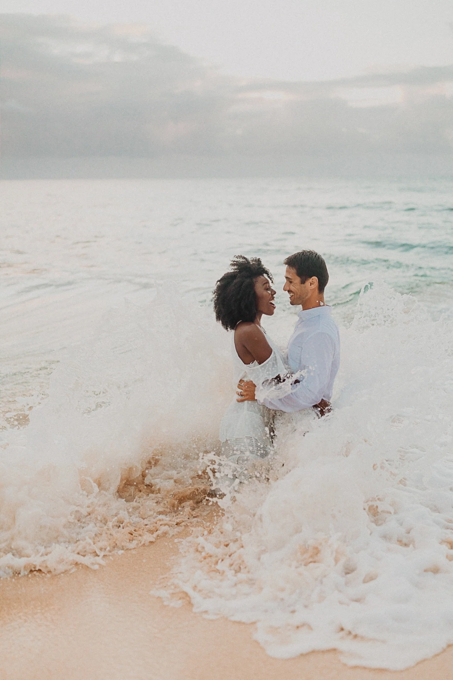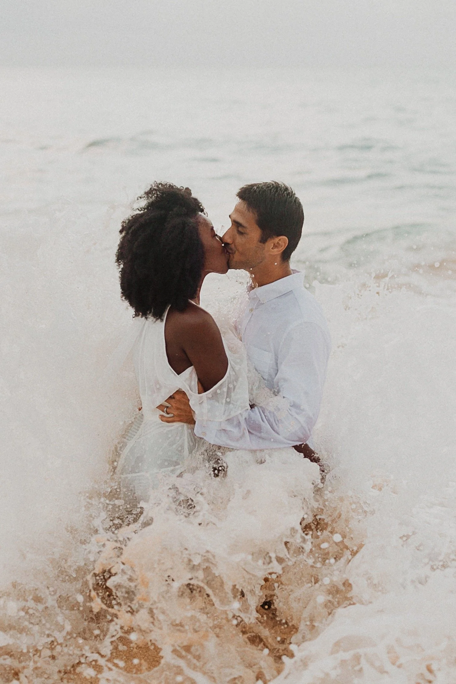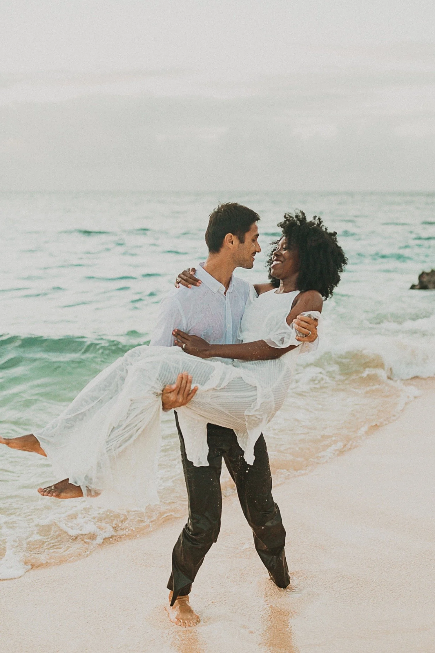 They had a sweet little picnic on the sand with fresh mango and coconuts. It was so simple but made the day feel even more special. Right as they sat down for their picnic it started to rain. They just embraced it and let it happen, and it ended up being so much fun!